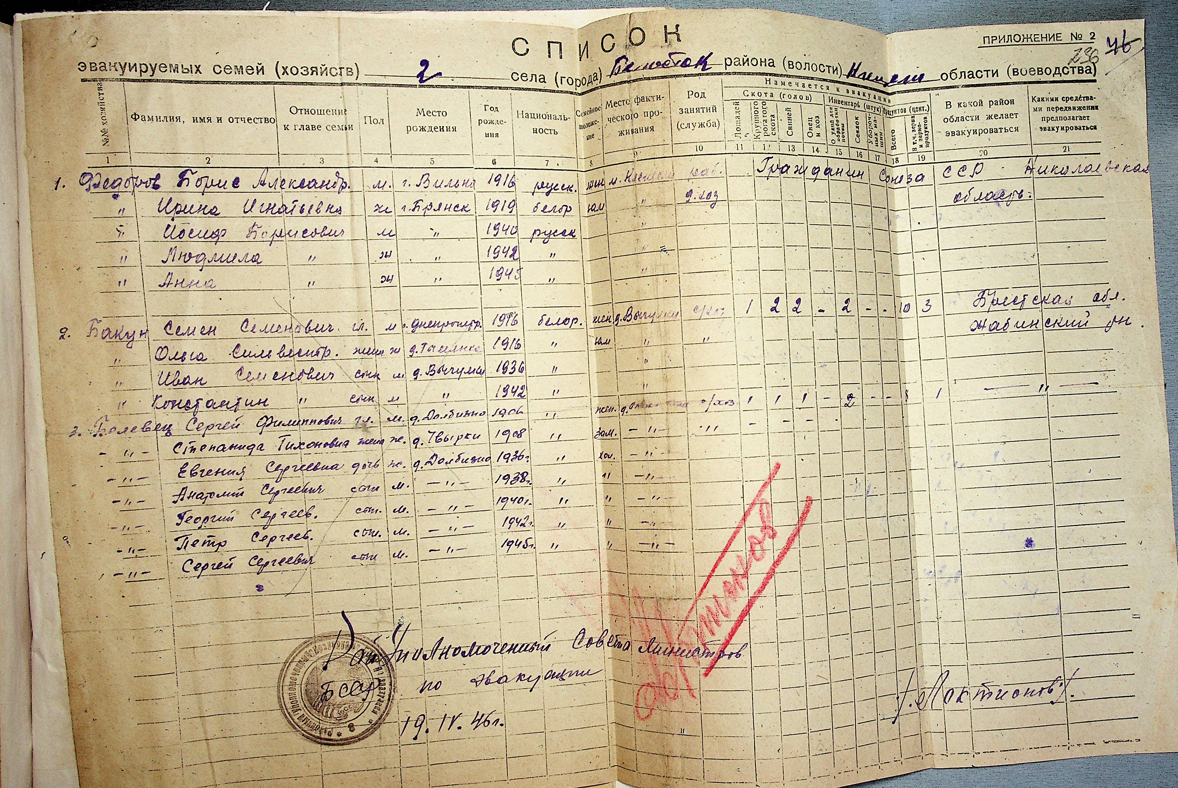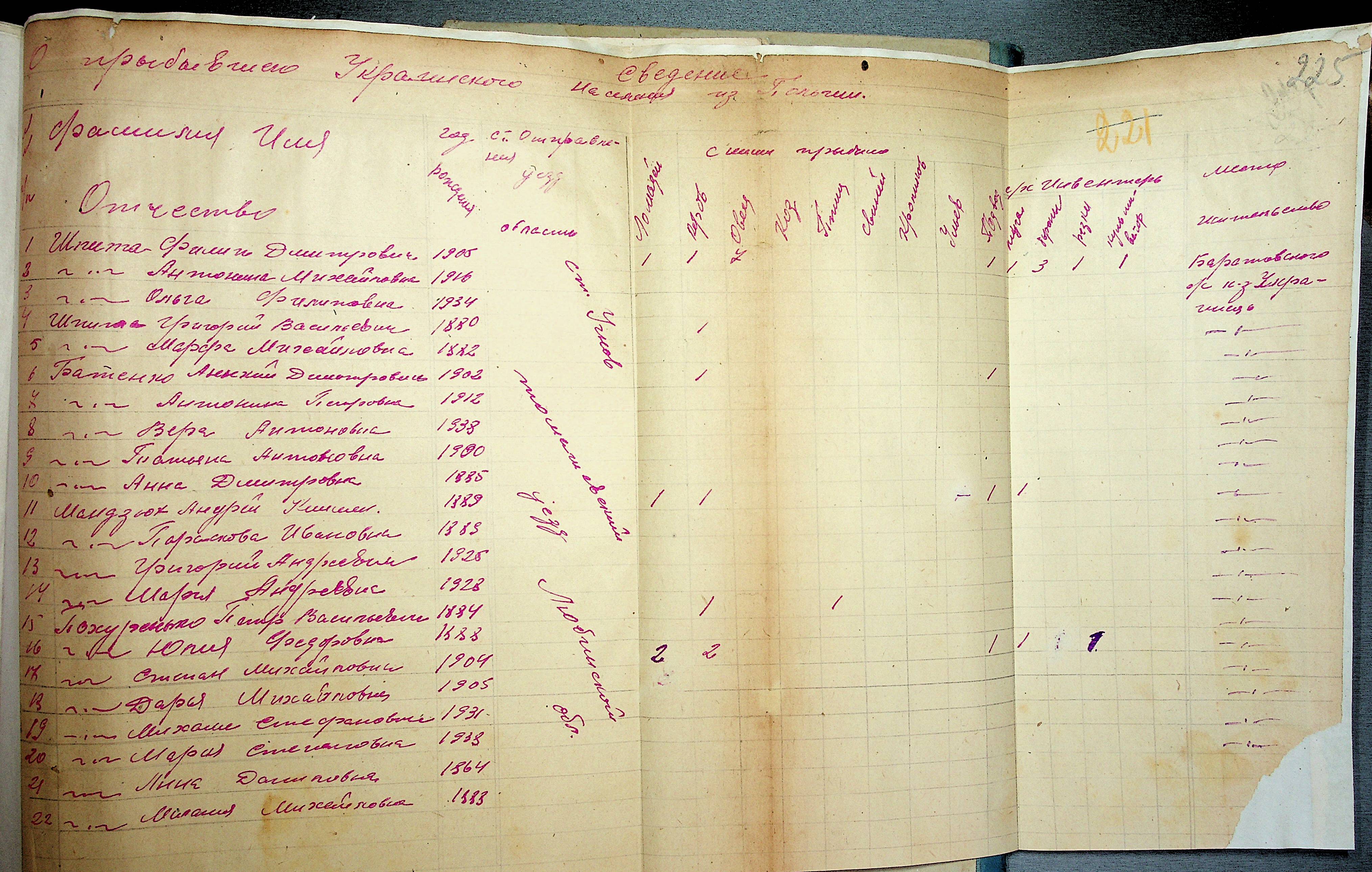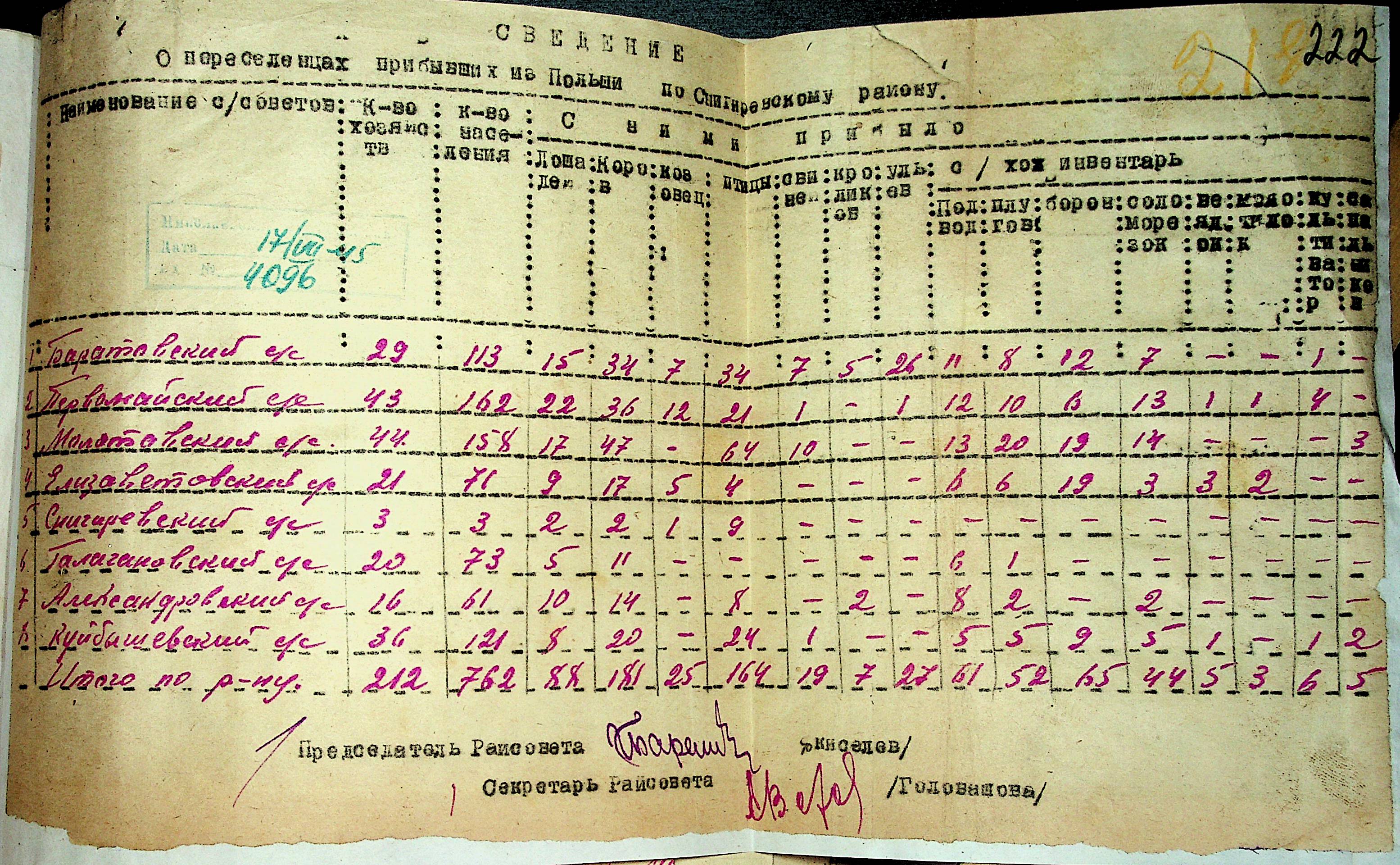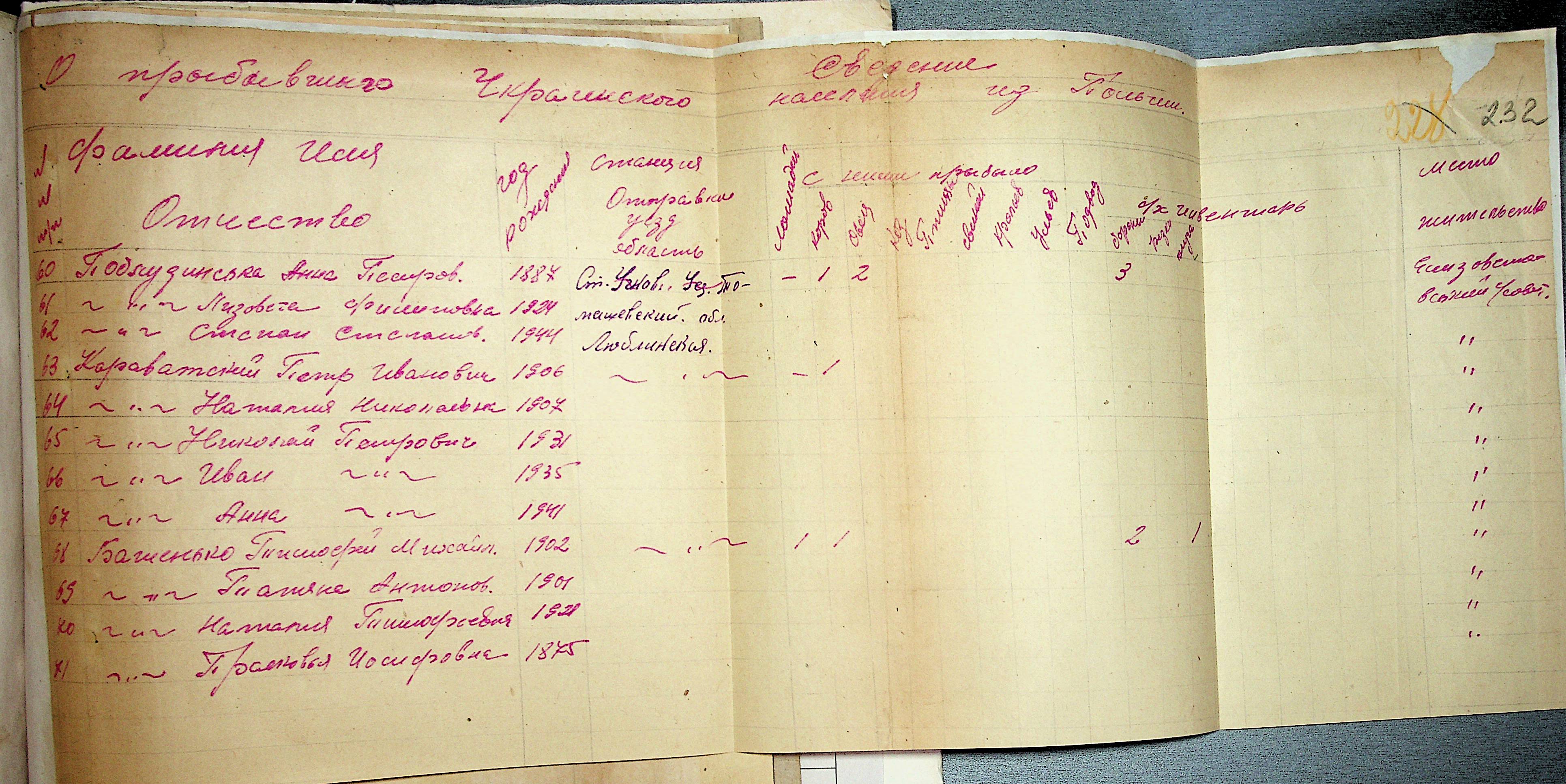 • • • • Справа № 1 “Документи (списки, відомості, переліки, листування) про евакуйовані українські сім’ї та господарства з Польщі, українців-переселенців, які прибули з західних областей УРСР, українських та білоруських громадян, які прибули з Казахстану до Миколаївської області на постійне місце проживання; про посіви, залишені в Польщі, кількість і наявність зернових, реманенту та худоби, привезених переселенцями”