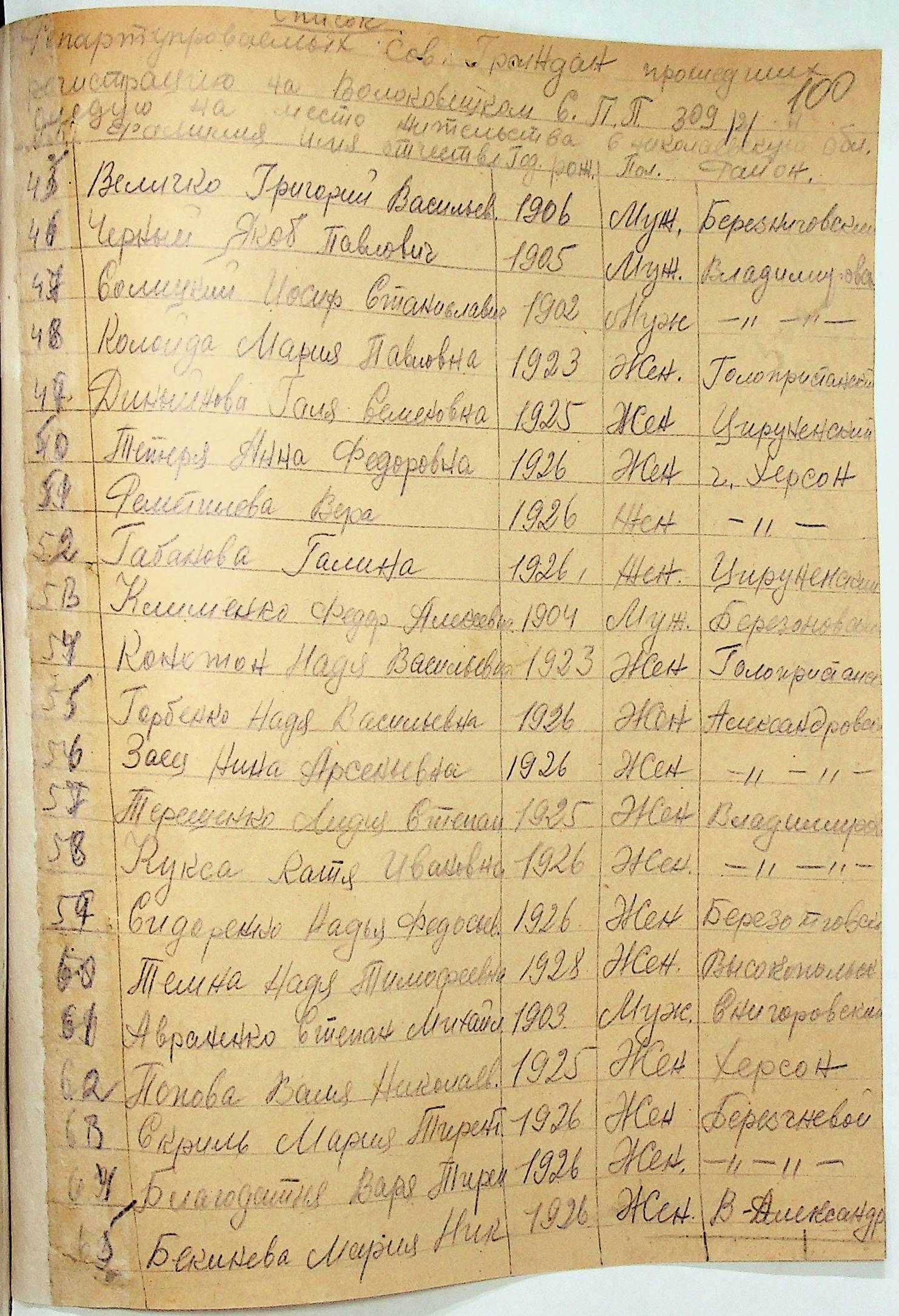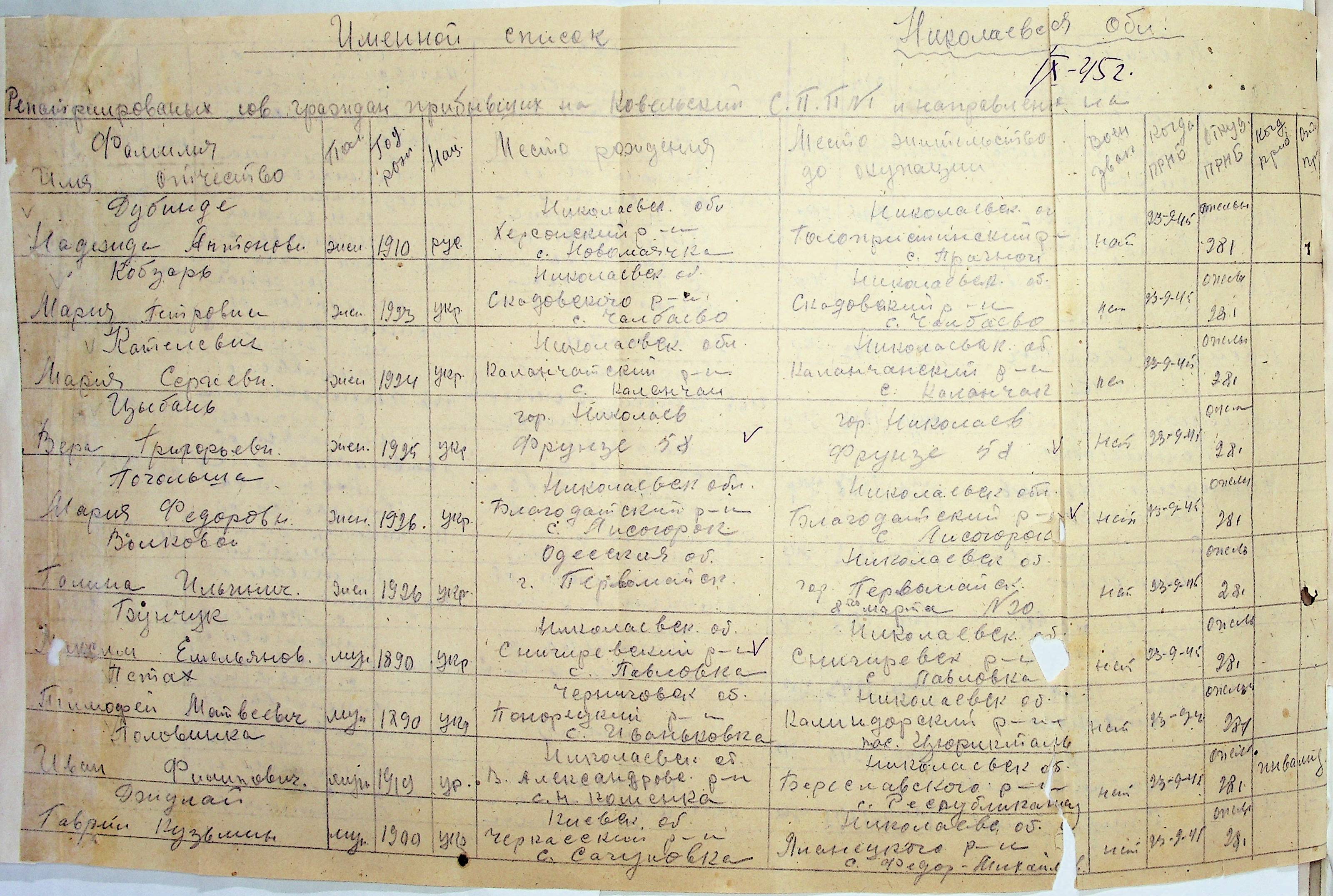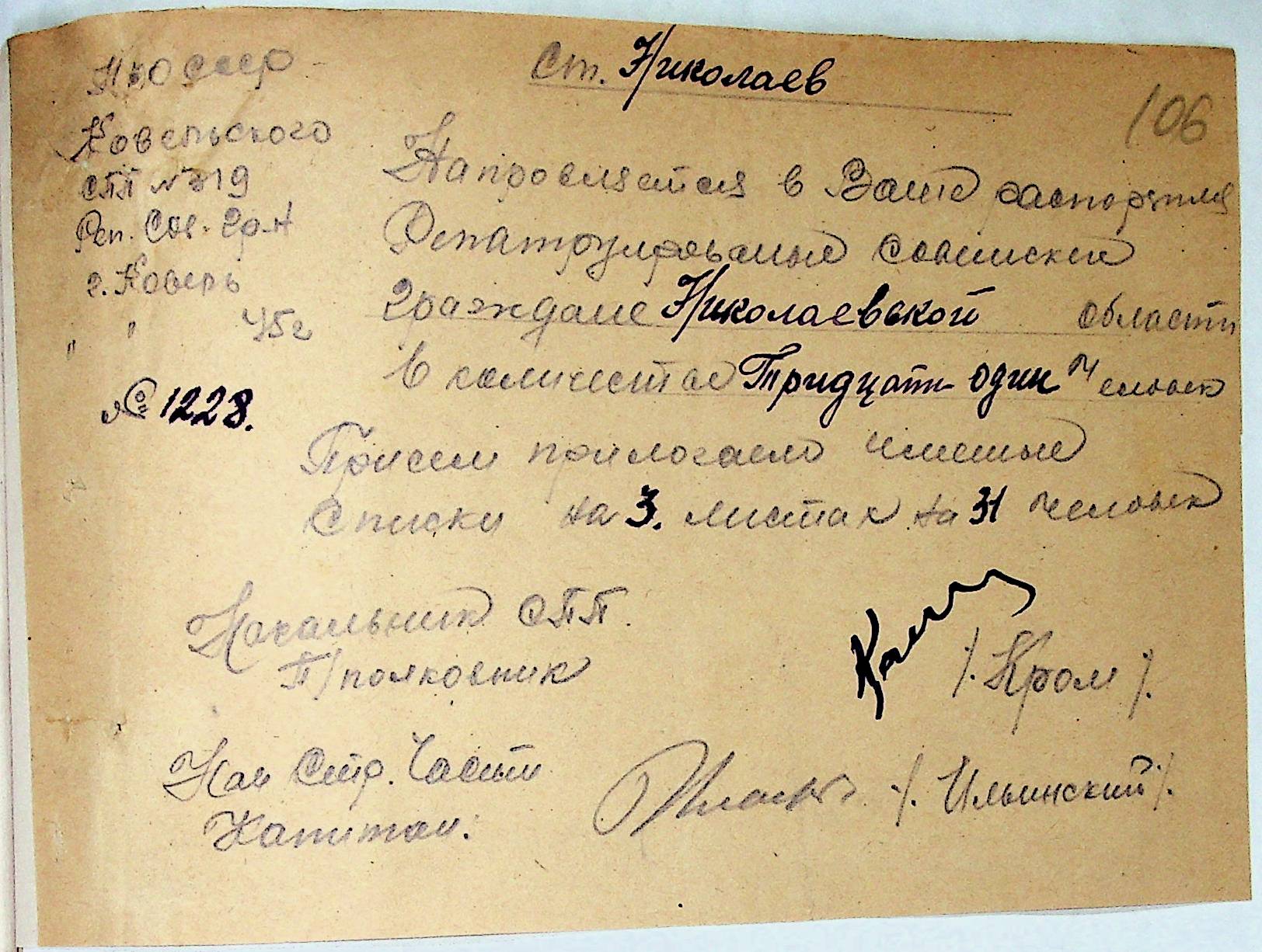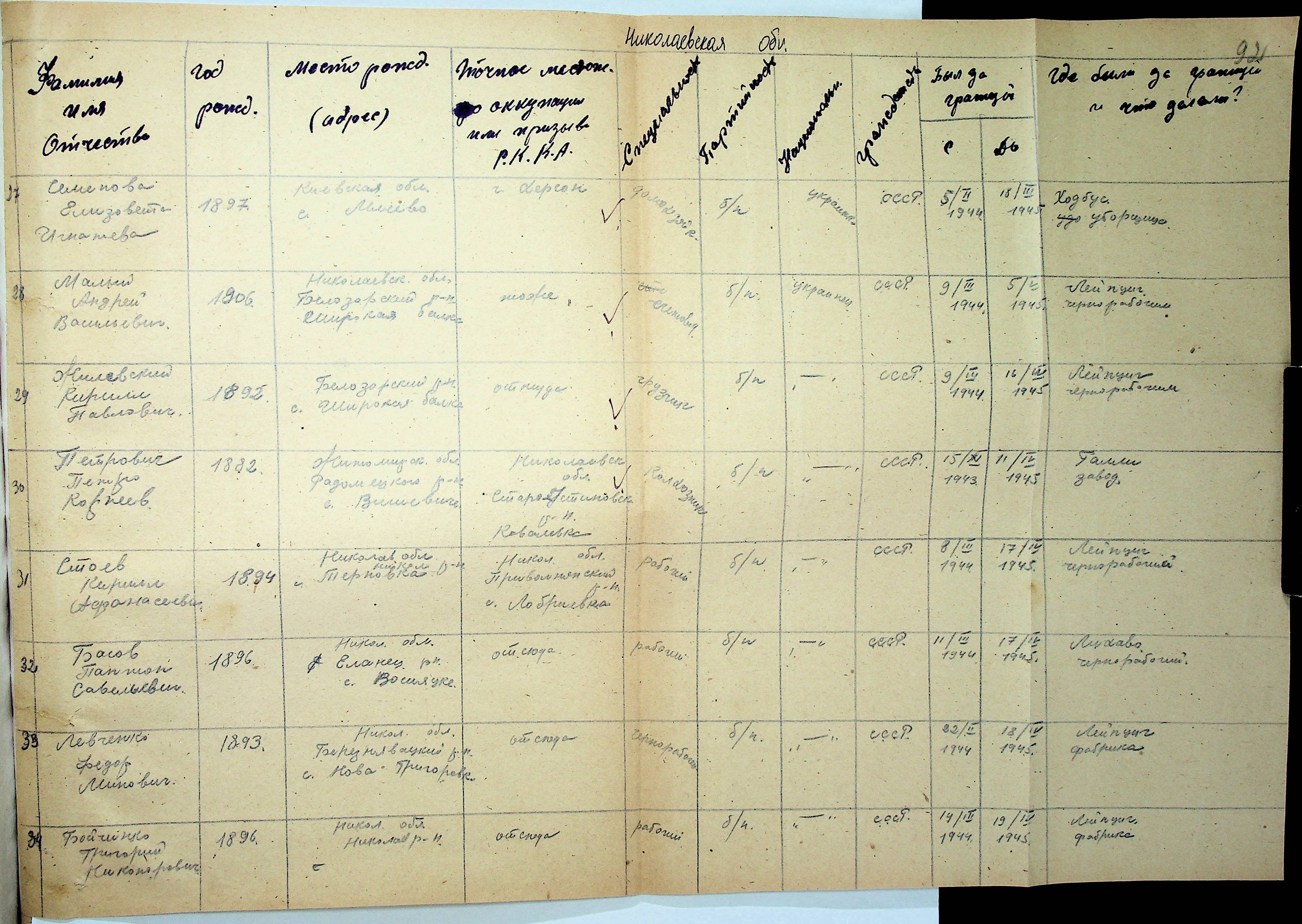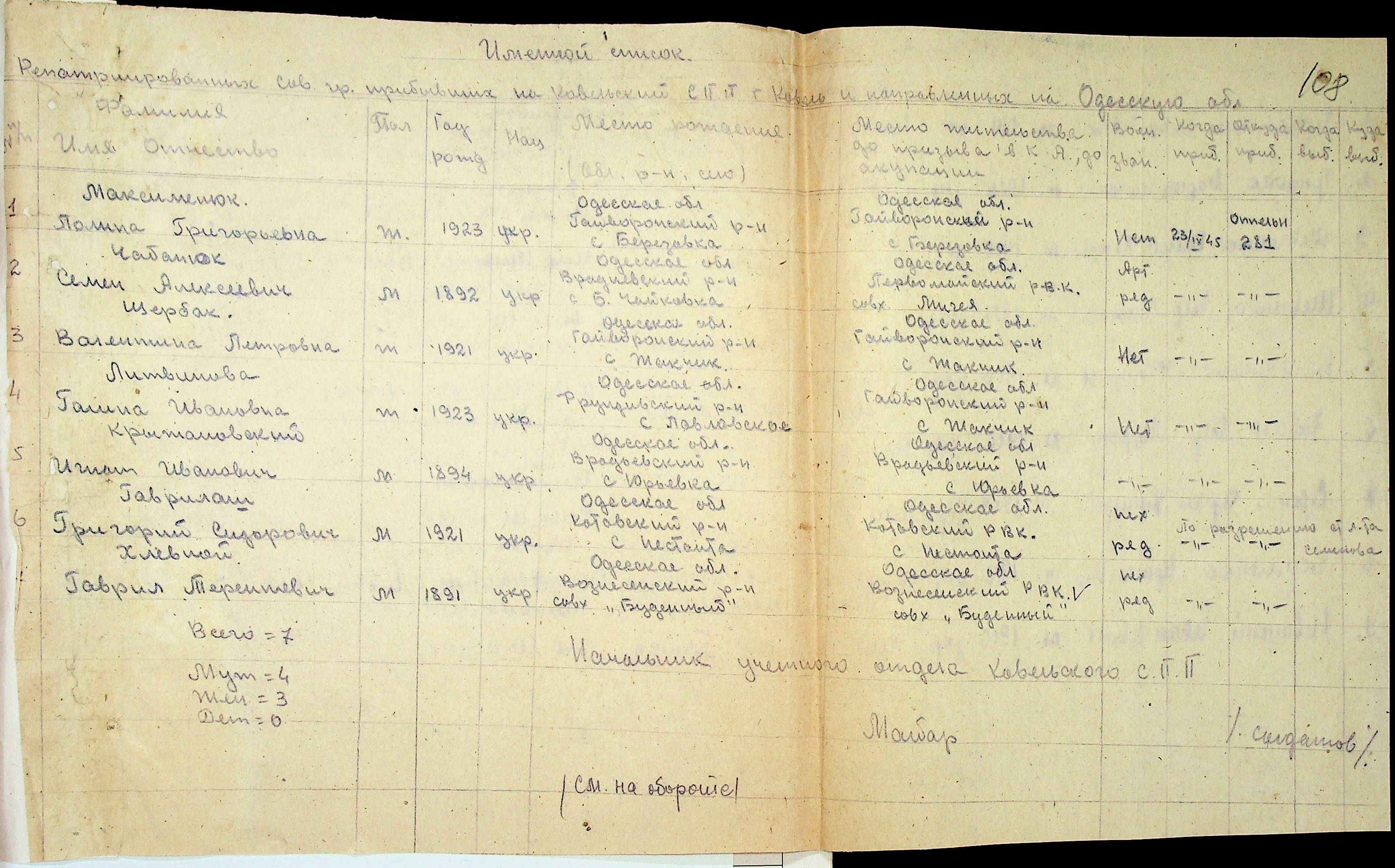 • • • • Справа № 6 “Списки репатрійованих радянських громадян, які вибули із ФЗПП і таборів та прибули на ЗПП міст Рава Руська, Ковель і Волковиськ та направлялися на постійне місце проживання до Миколаївської, Херсонської та Одеської областей.