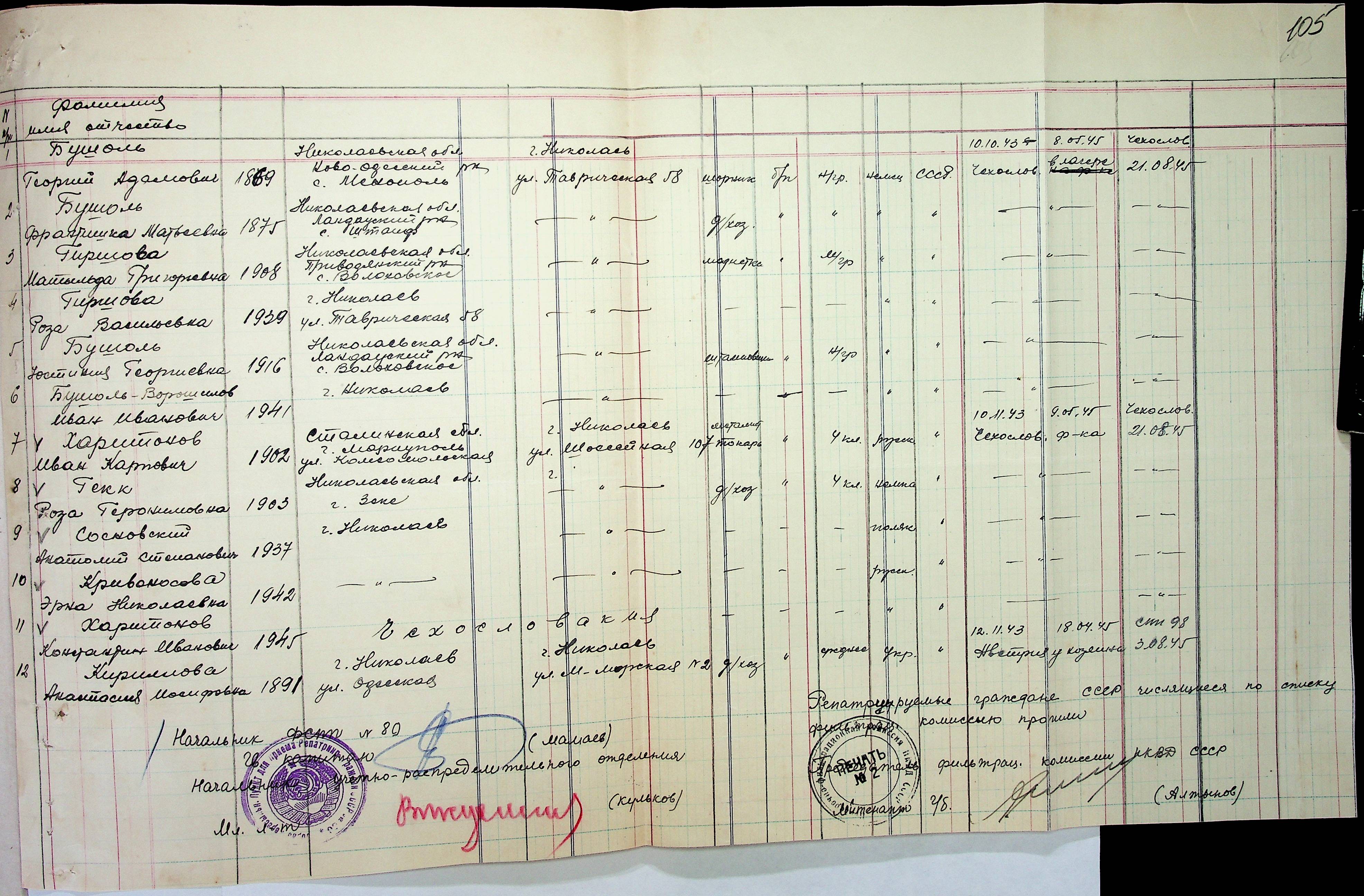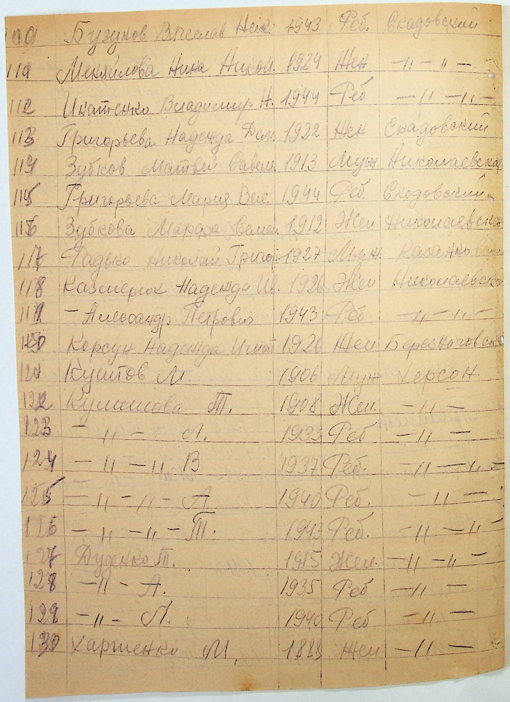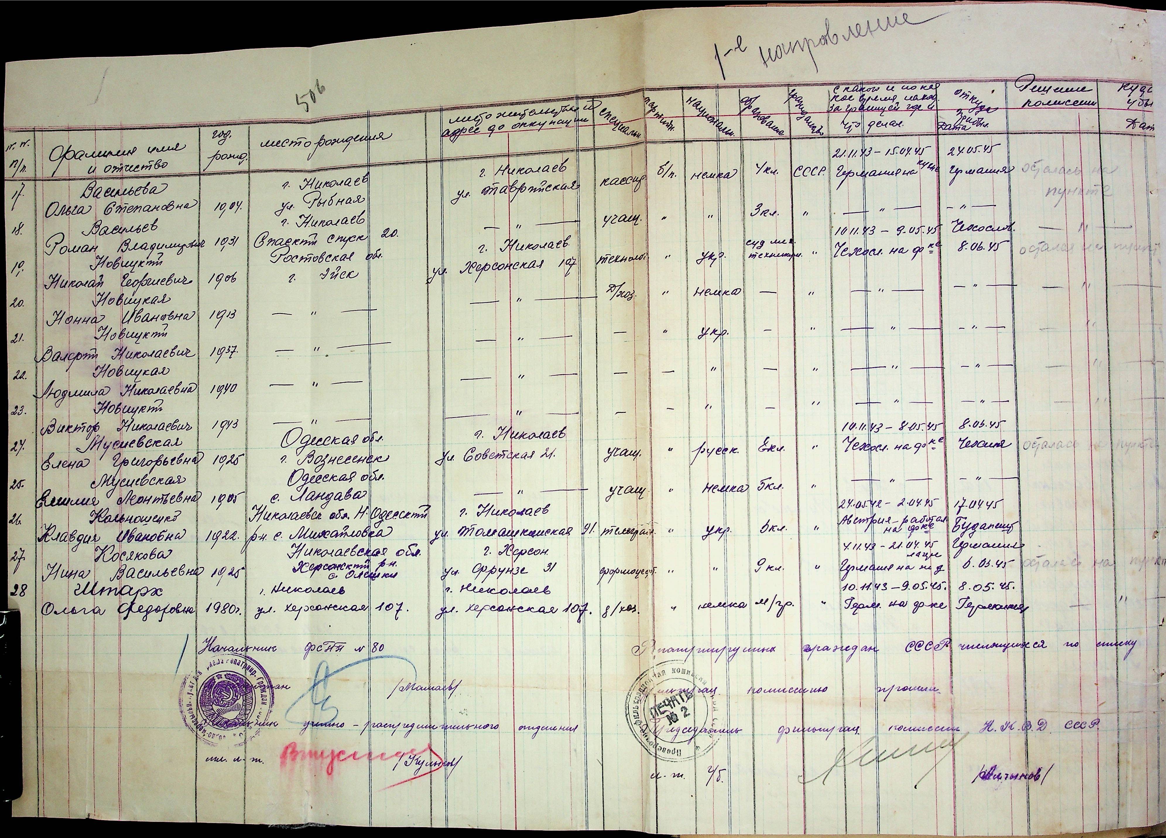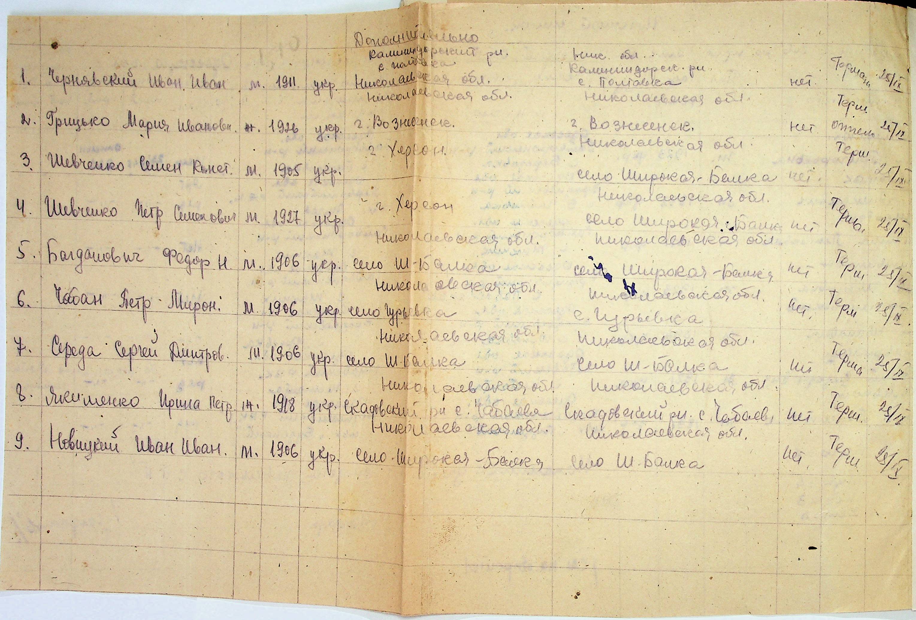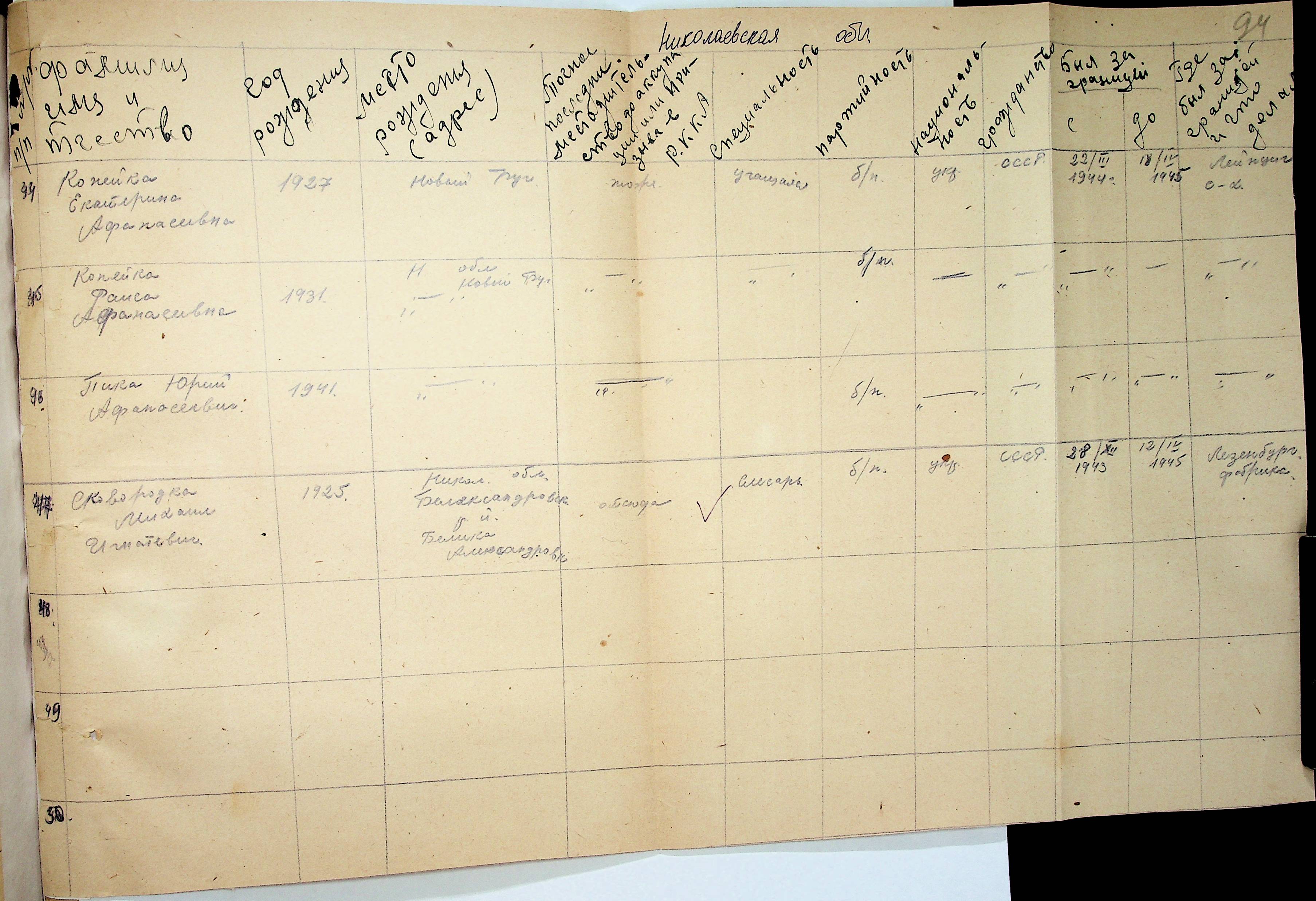 • • • • Справа № 6 “Списки репатрійованих радянських громадян, які вибули із ФЗПП і таборів та прибули на ЗПП міст Рава Руська, Ковель і Волковиськ та направлялися на постійне місце проживання до Миколаївської, Херсонської та Одеської областей.