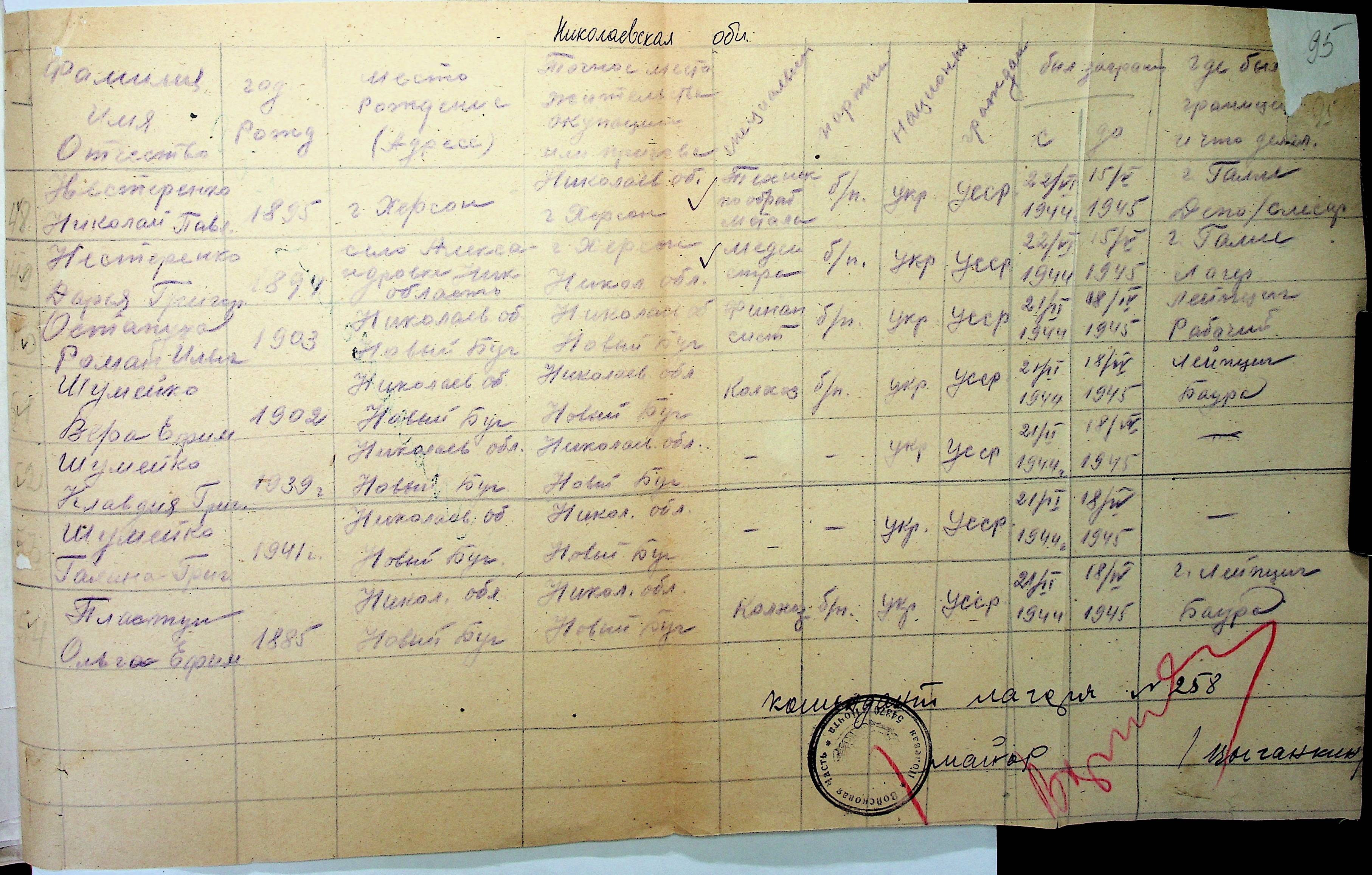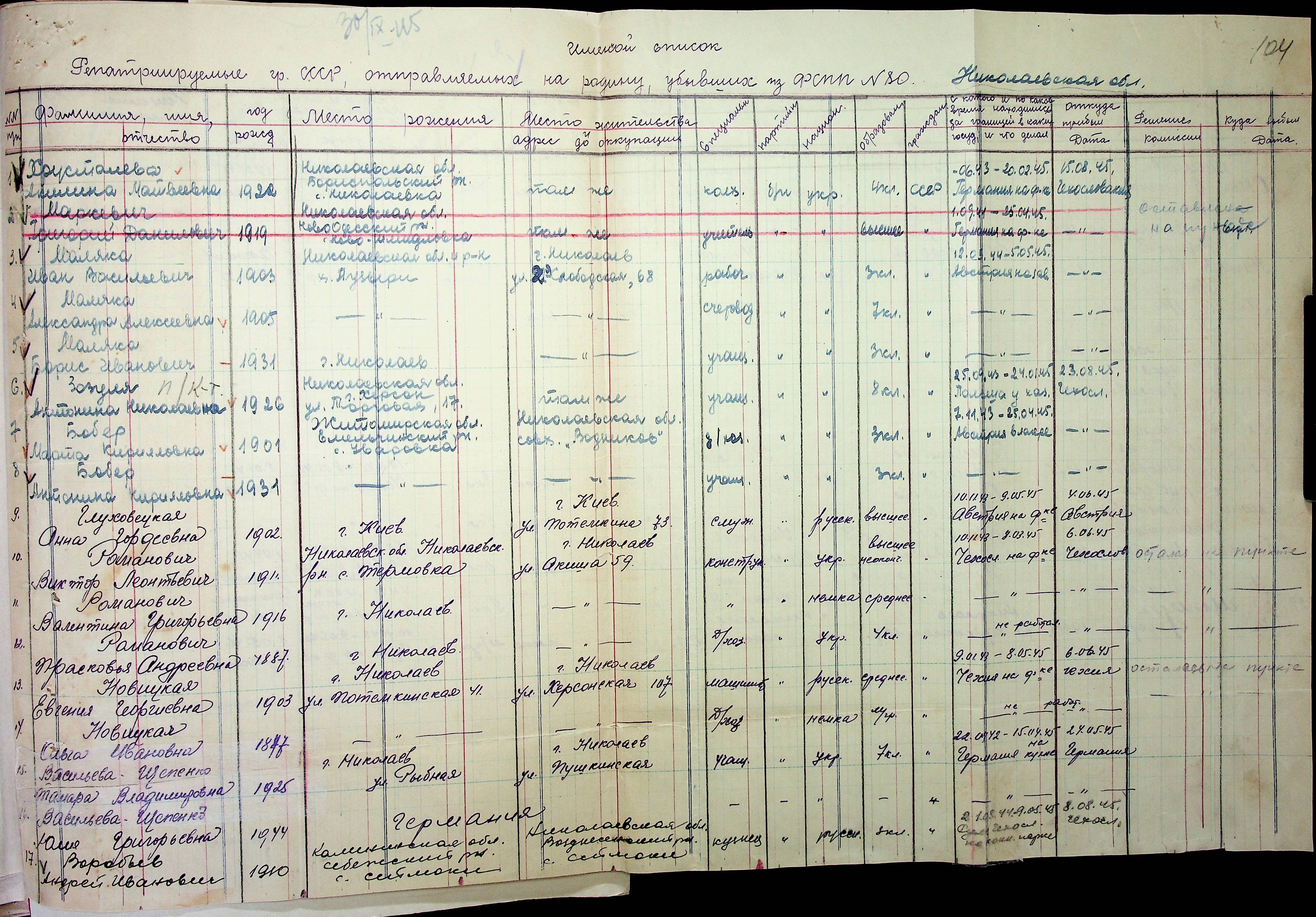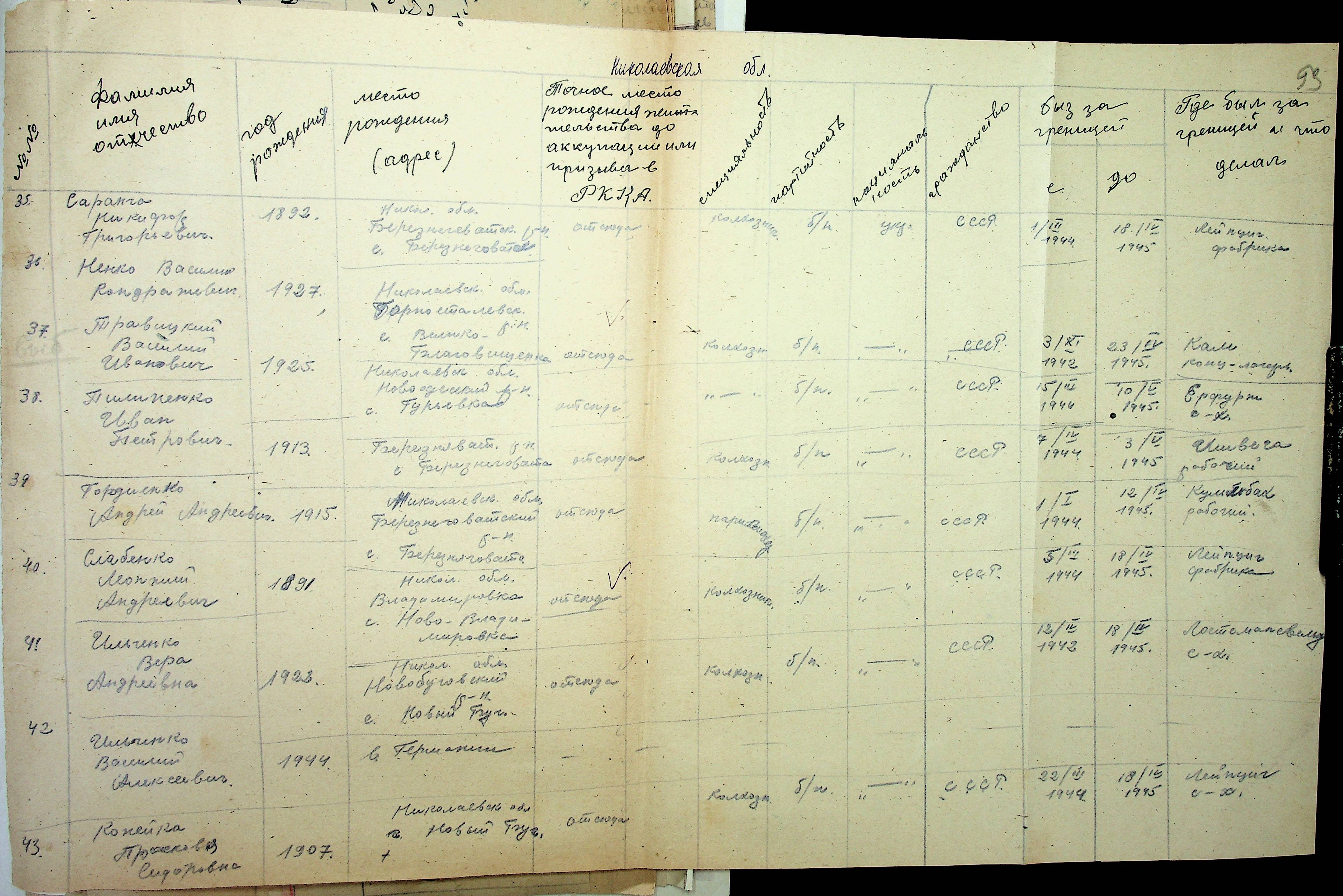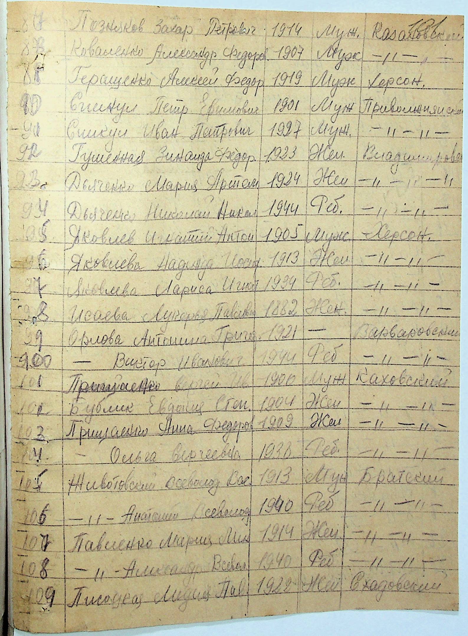• • • • Справа № 6 “Списки репатрійованих радянських громадян, які вибули із ФЗПП і таборів та прибули на ЗПП міст Рава Руська, Ковель і Волковиськ та направлялися на постійне місце проживання до Миколаївської, Херсонської та Одеської областей.