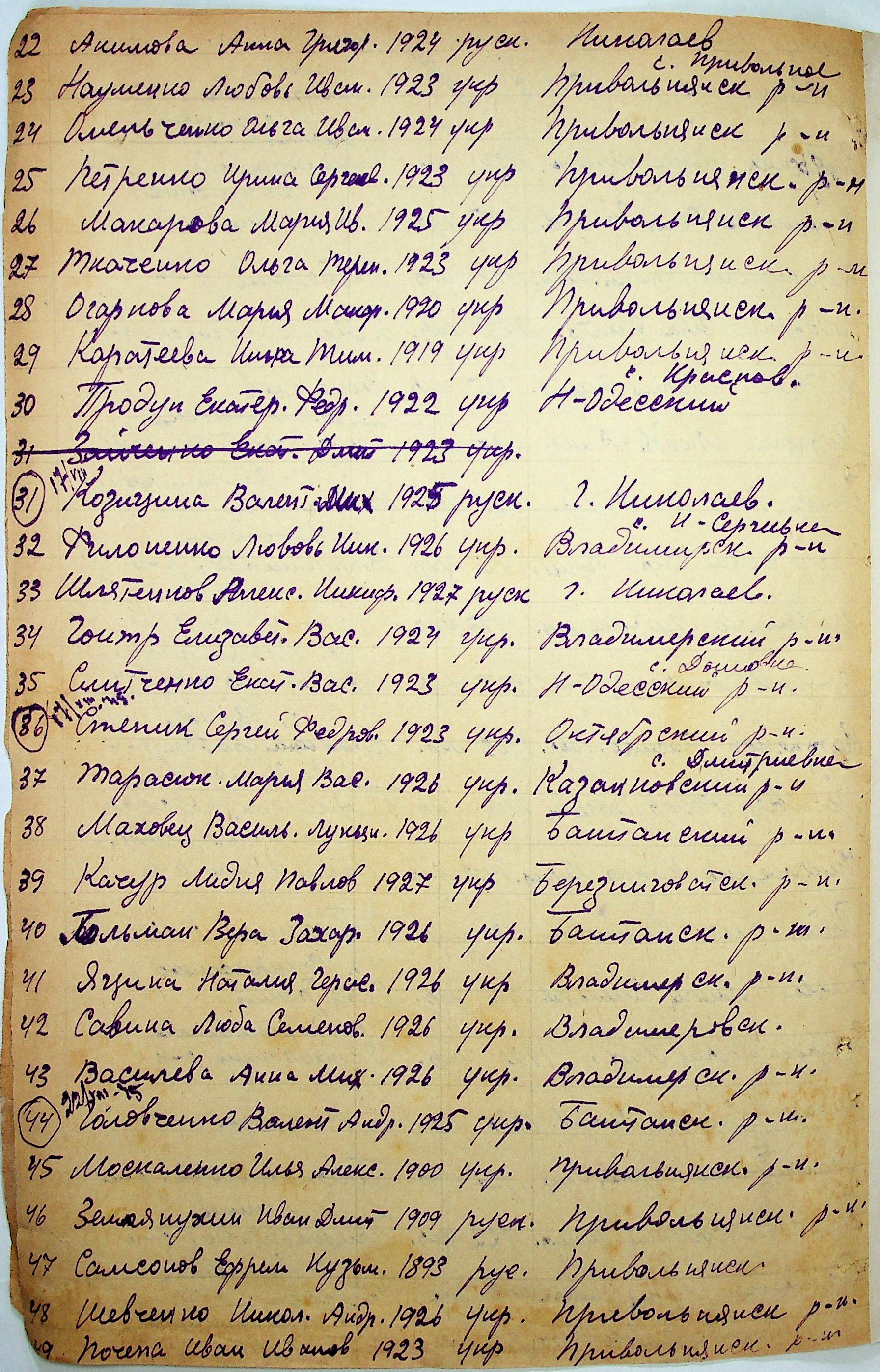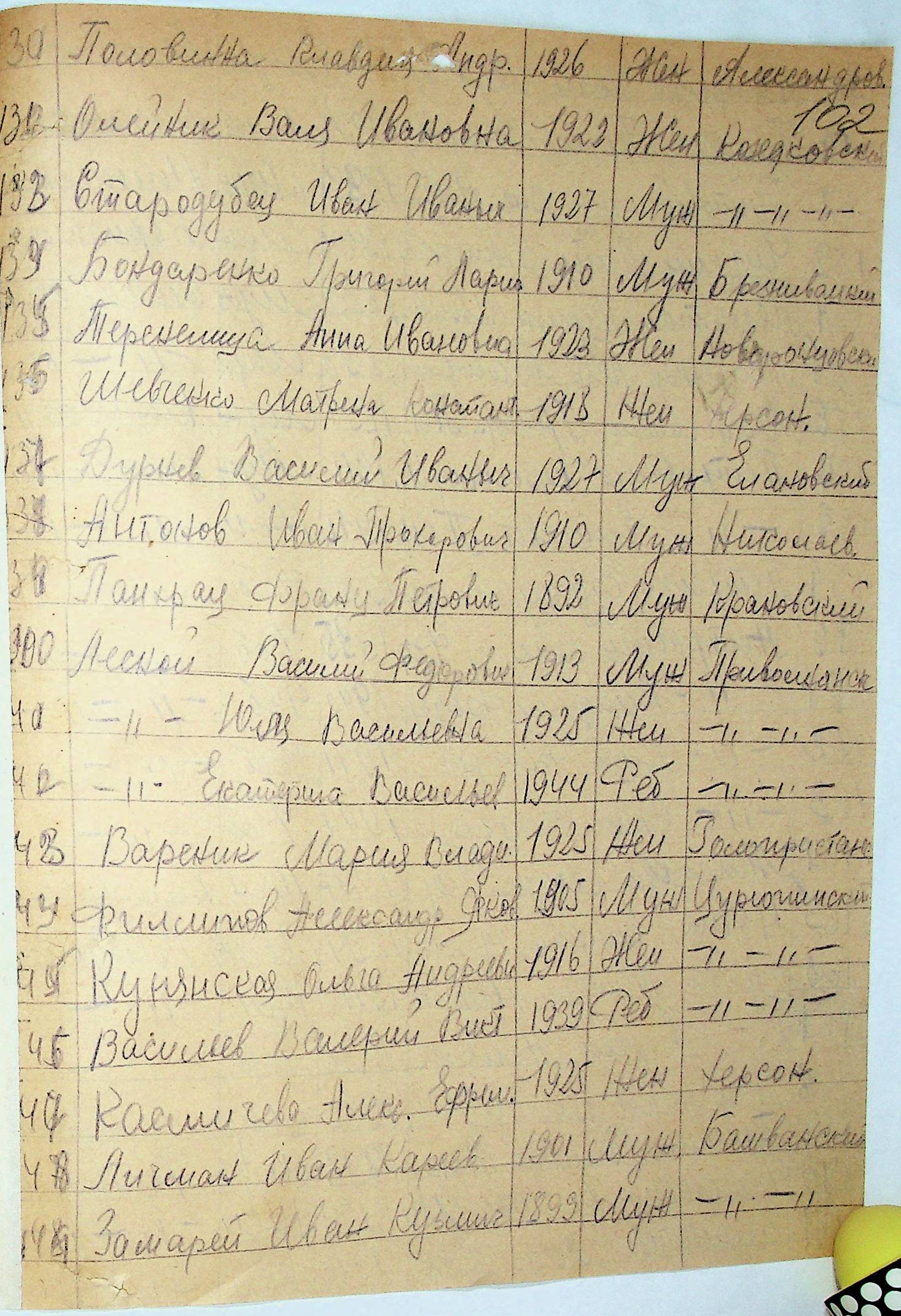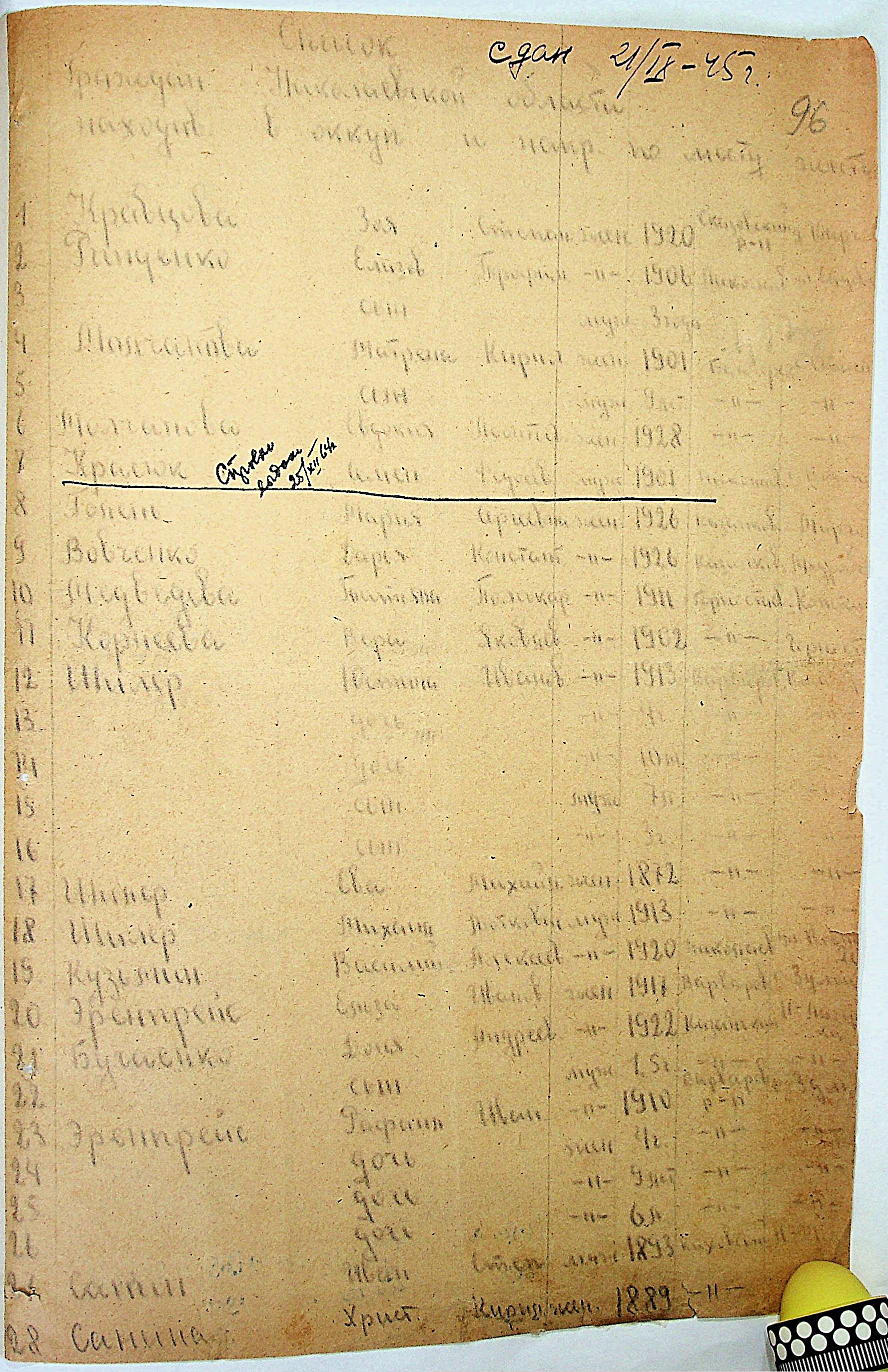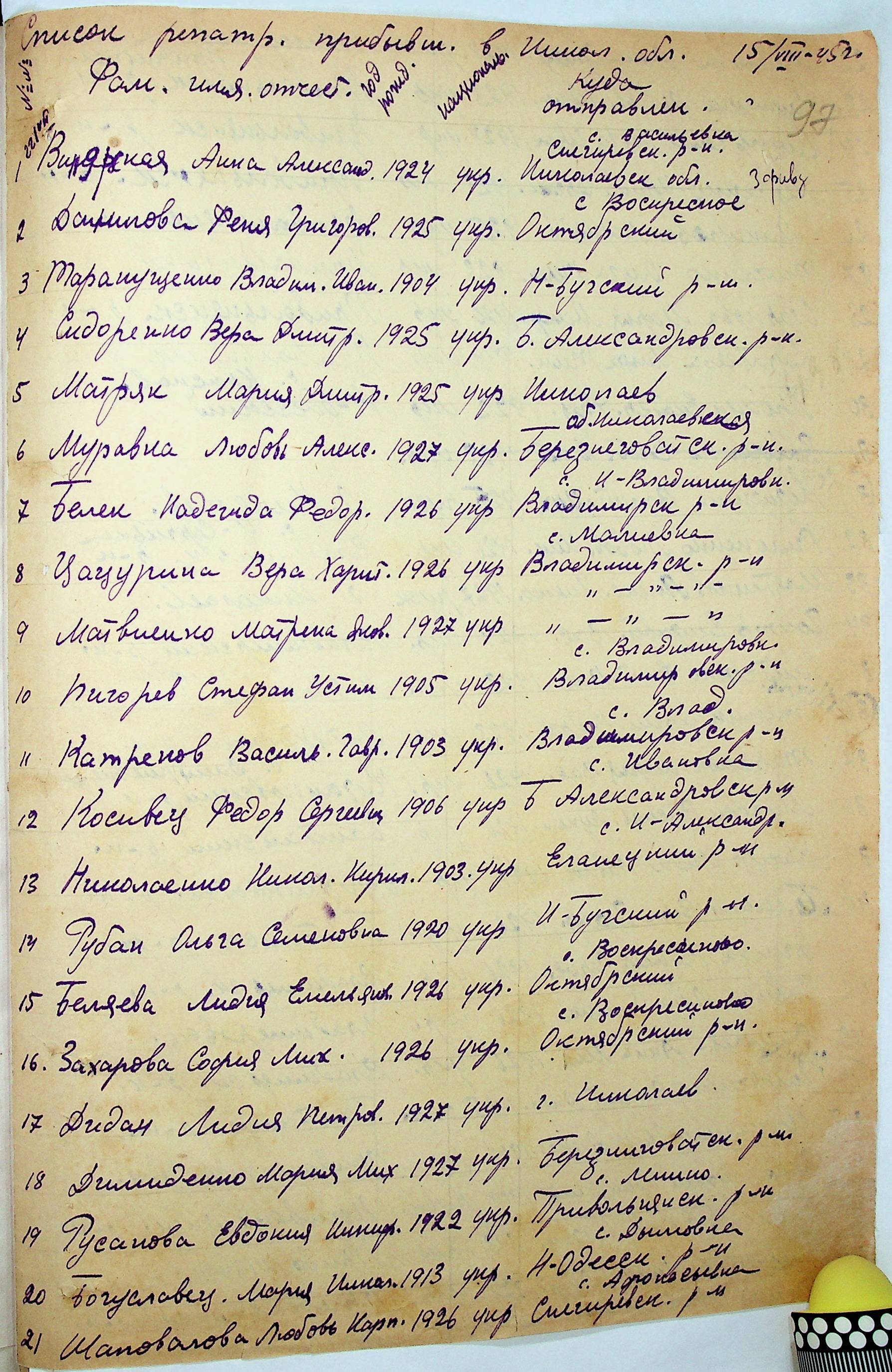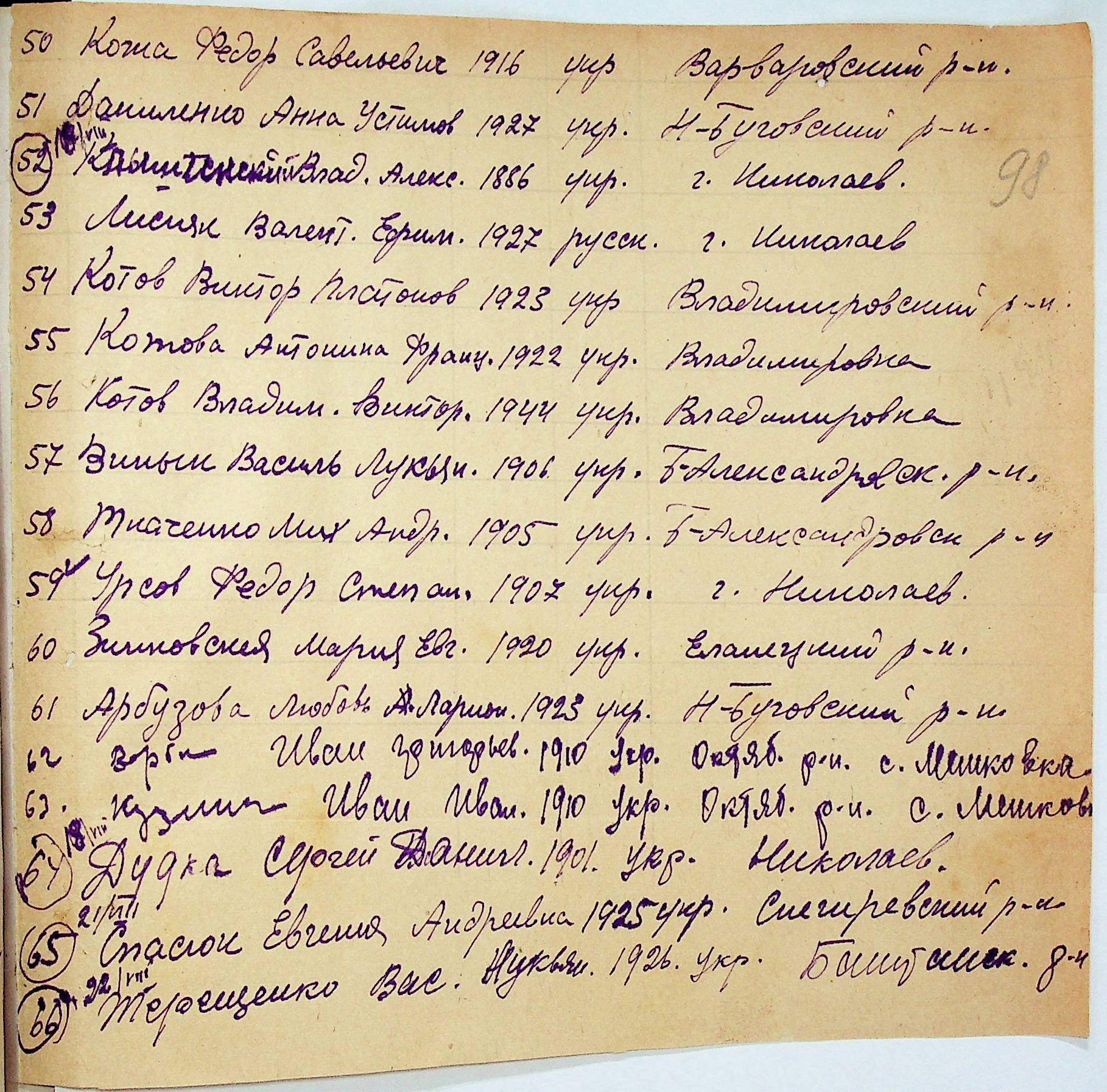 • • • • Справа № 6 “Списки репатрійованих радянських громадян, які вибули із ФЗПП і таборів та прибули на ЗПП міст Рава Руська, Ковель і Волковиськ та направлялися на постійне місце проживання до Миколаївської, Херсонської та Одеської областей.