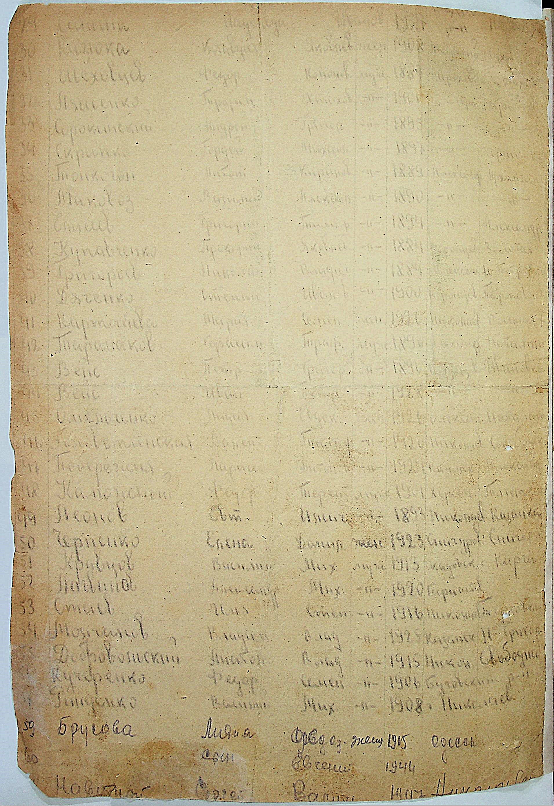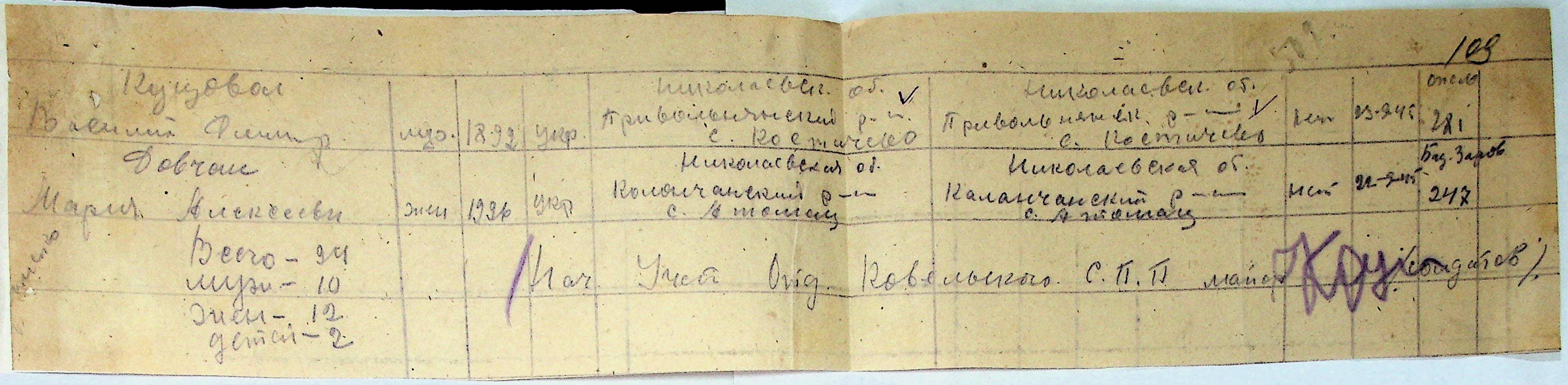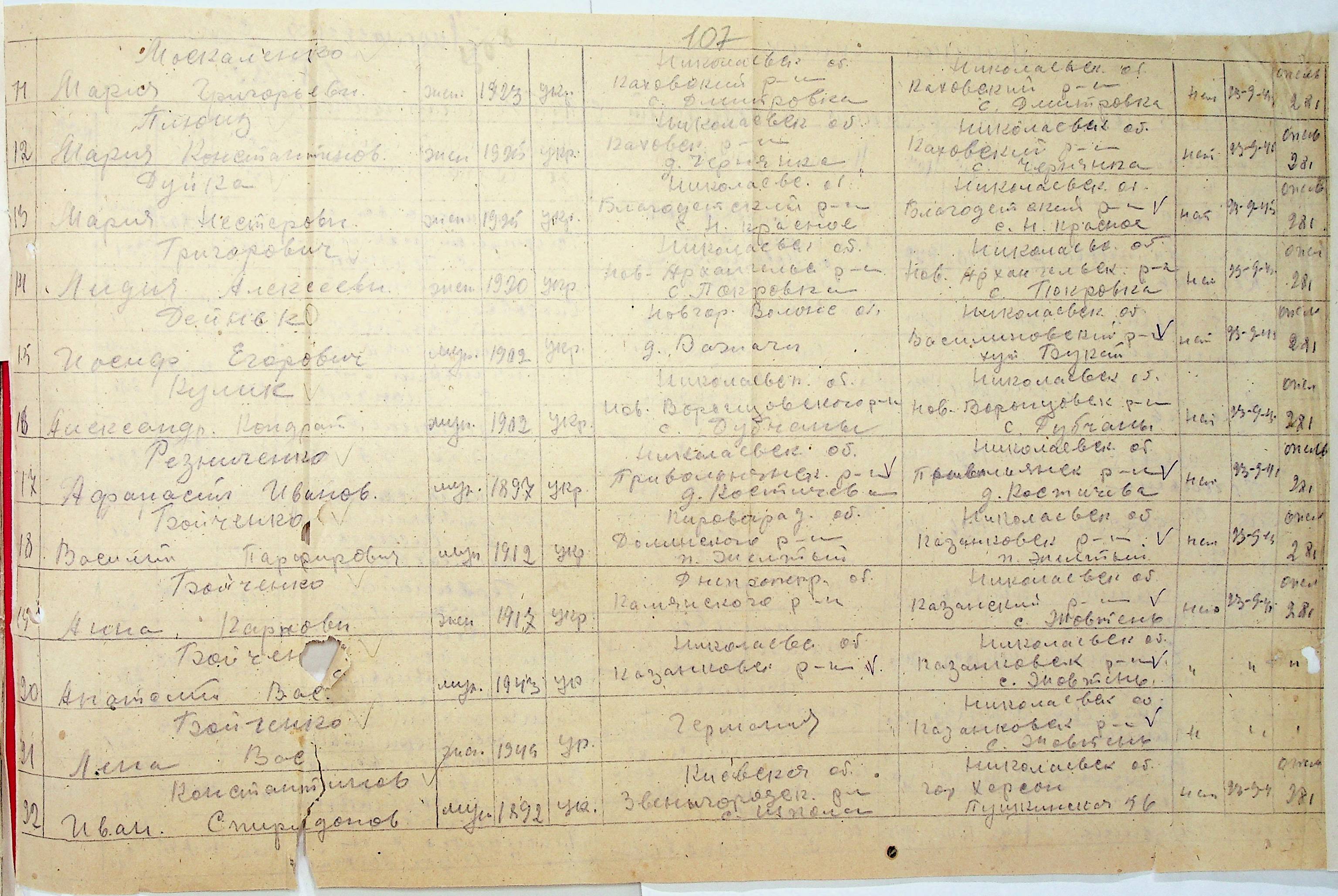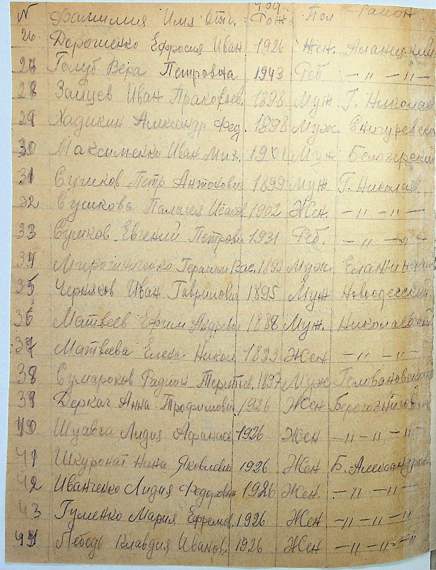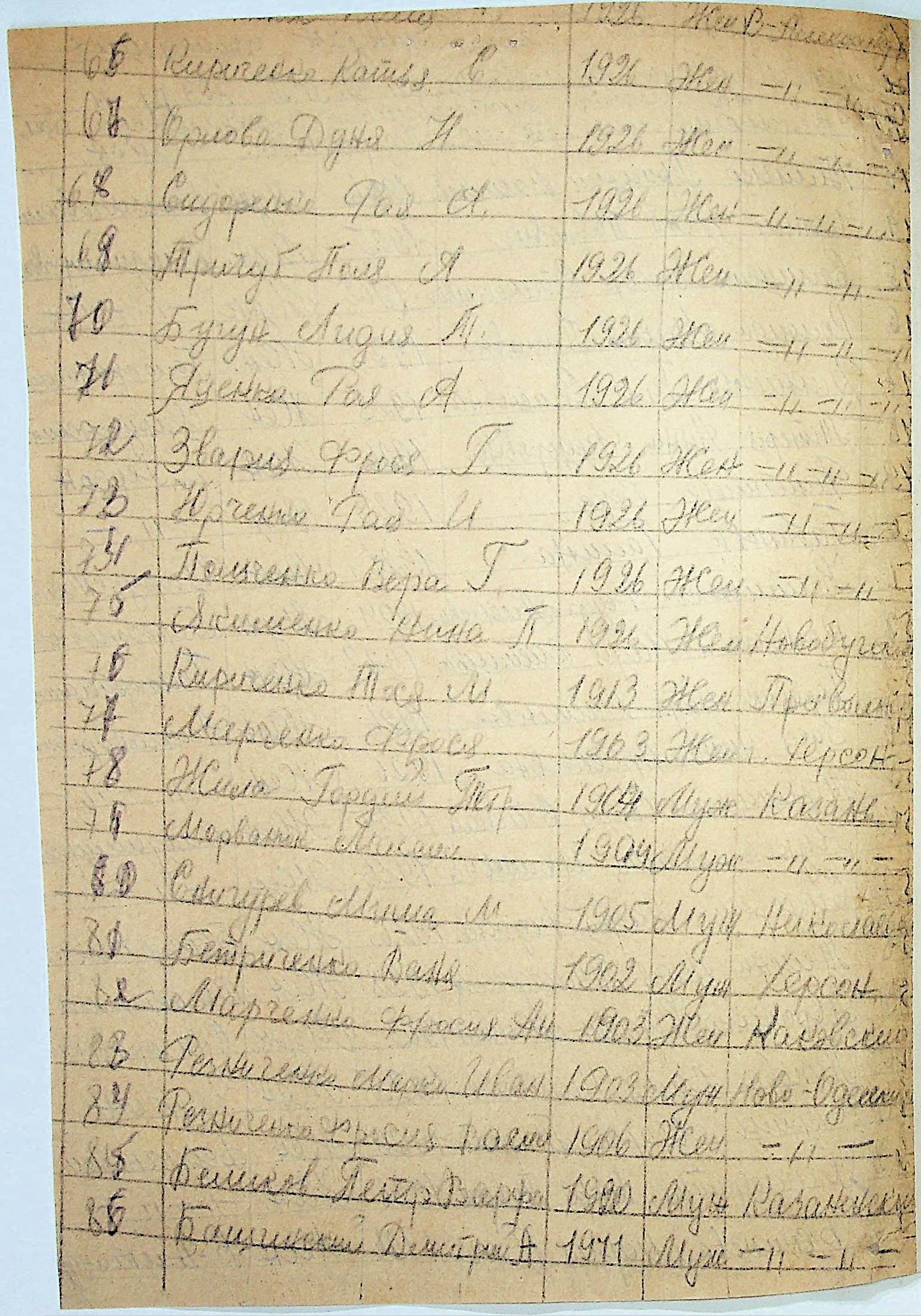 • • • • Справа № 6 “Списки репатрійованих радянських громадян, які вибули із ФЗПП і таборів та прибули на ЗПП міст Рава Руська, Ковель і Волковиськ та направлялися на постійне місце проживання до Миколаївської, Херсонської та Одеської областей.