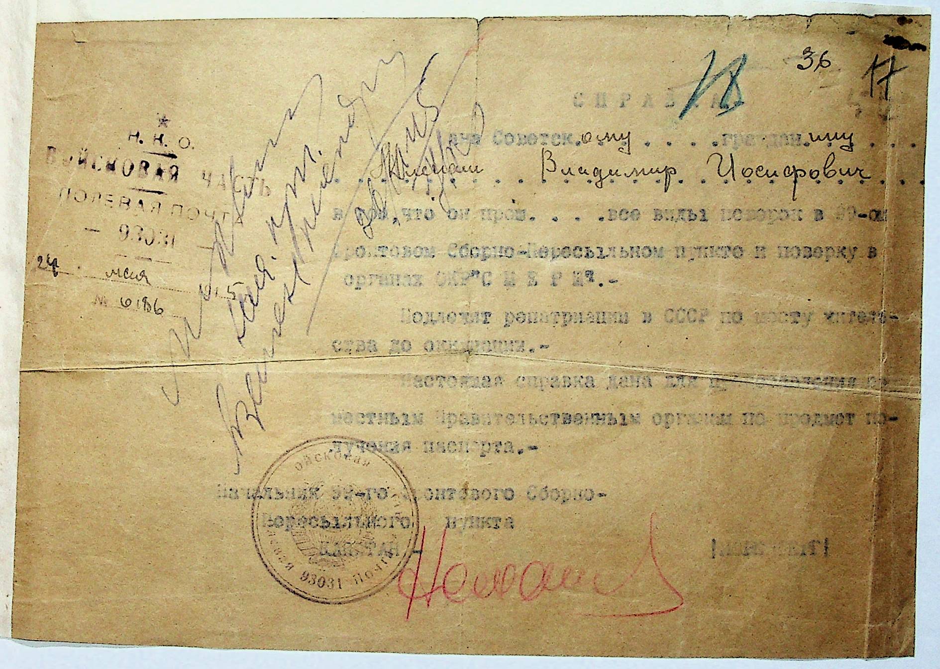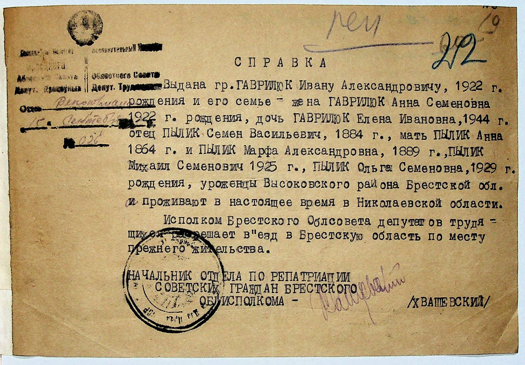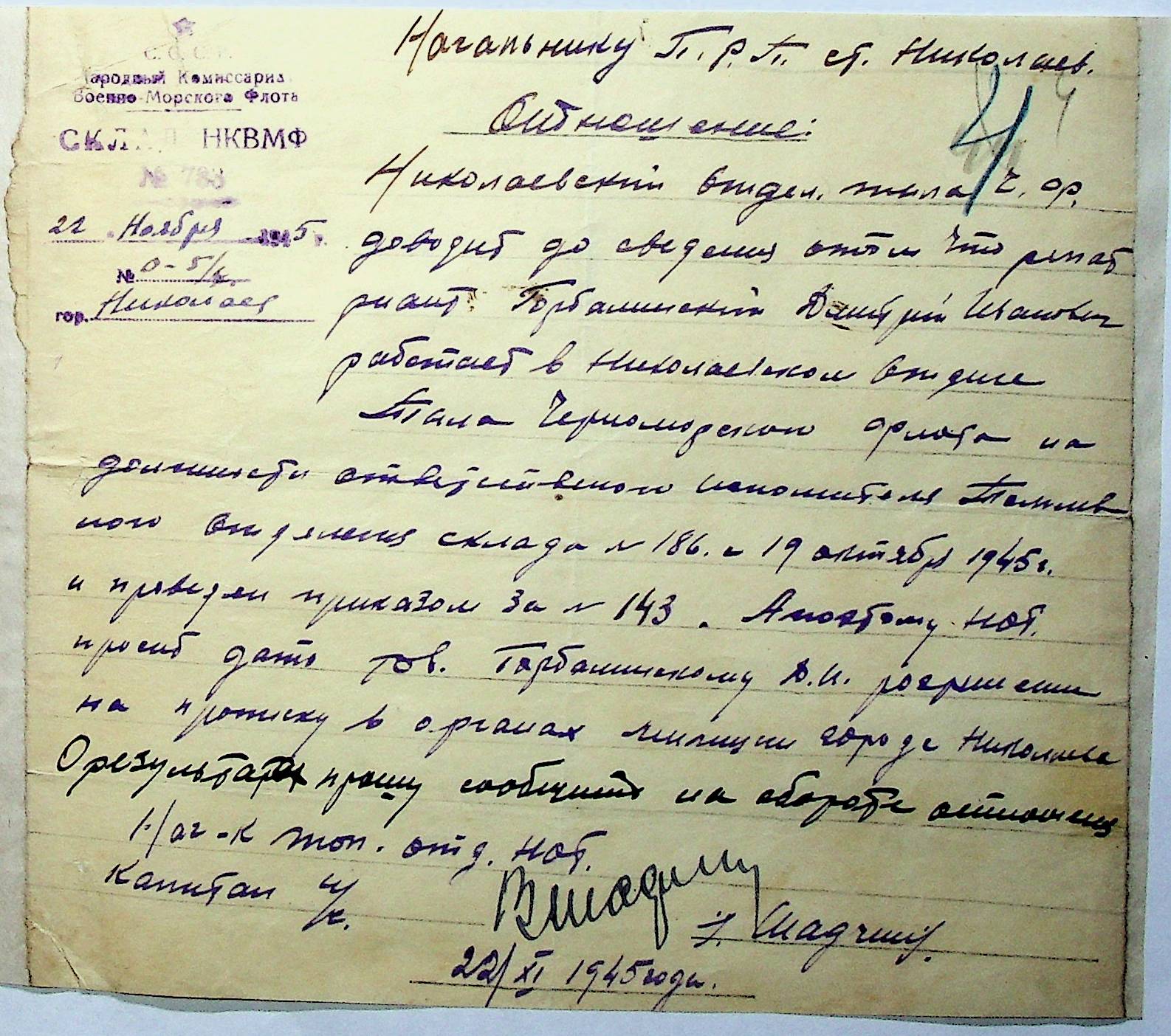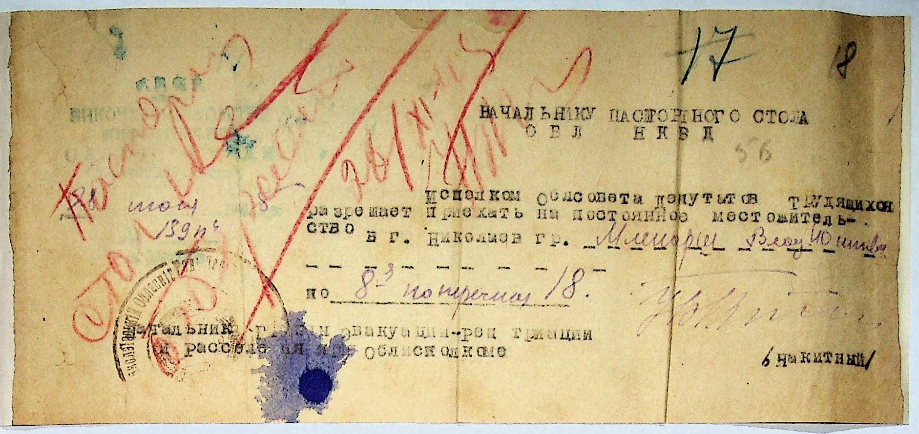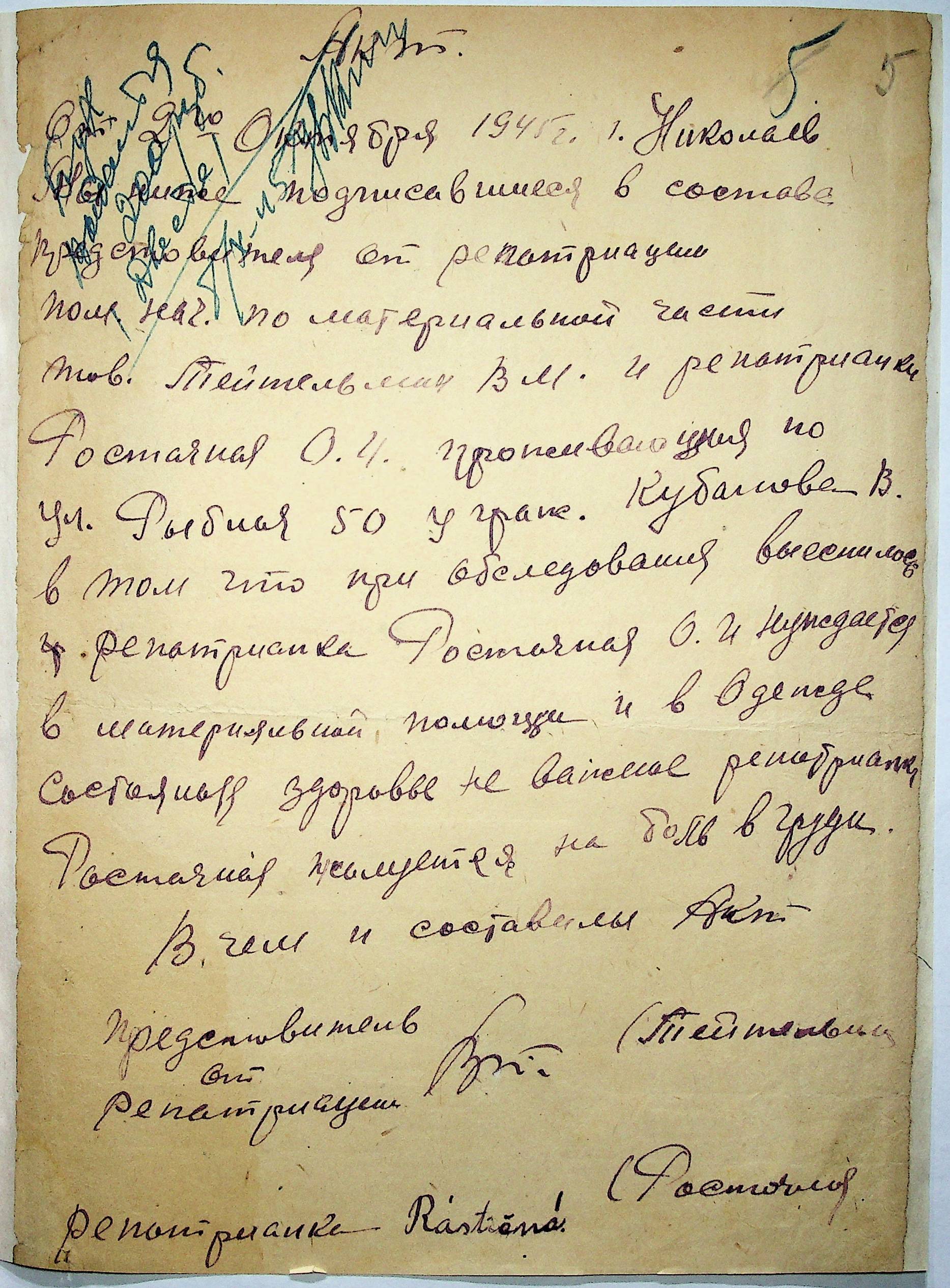 • • • • Справа № 10 “Документи (списки, атестати на продовольство, відомості, довідки, акти, заяви, посвідчення, листу-вання) на осіб, які прибули в м. Миколаїв із інших областей за час нацистської окупації, на громадян, які повернулися з вигнання і прямують до Херсонської області; про обстеження матеріального стану репатрійованих громадян, забезпе-чення їх житлом, надання дозволу на прописку, працевлаштування; про рух репатріантів, склад та стан їх сімей, реєстрацію, проходження спецперевірки в органах окр«СМЕРШ»”