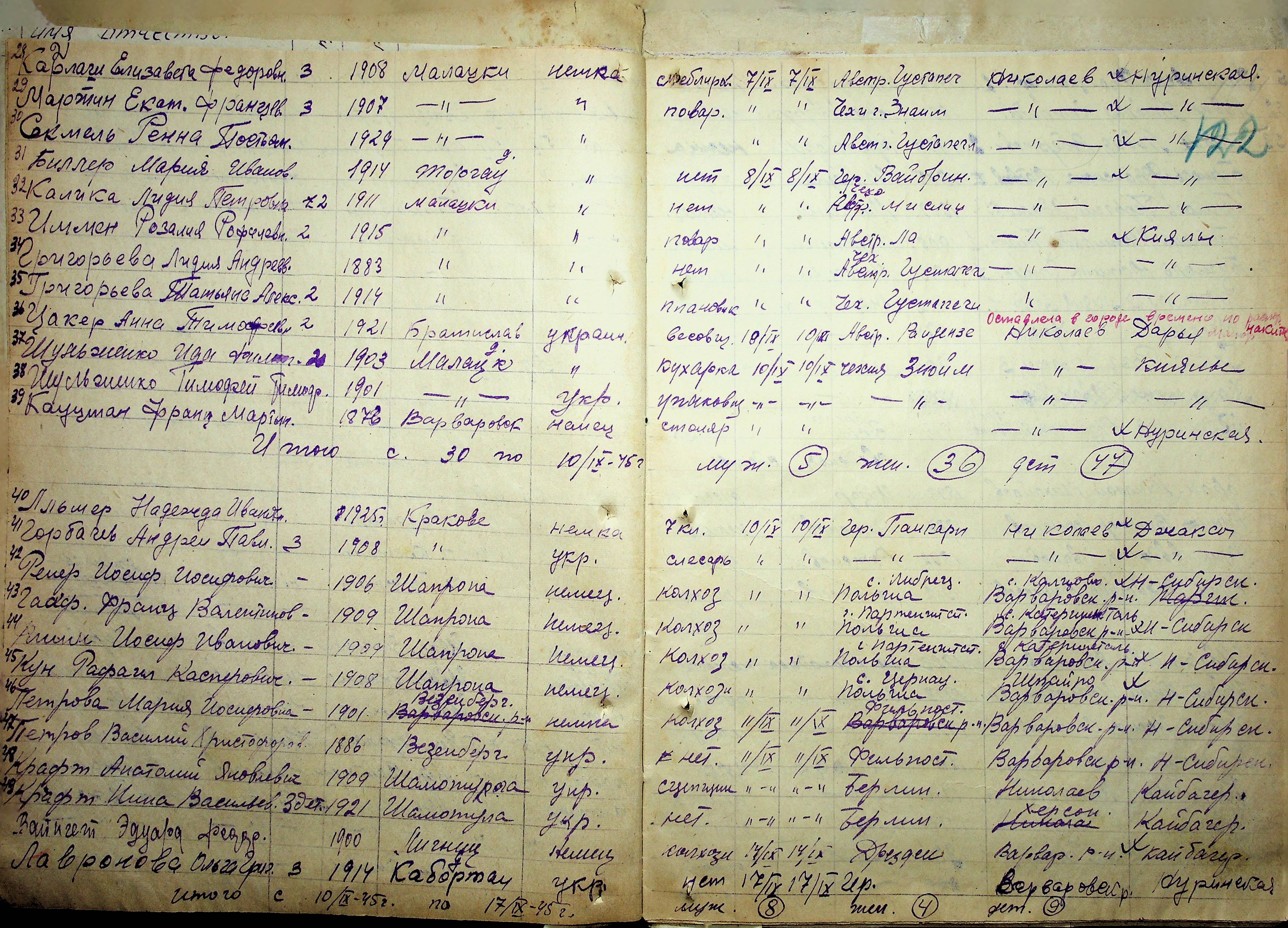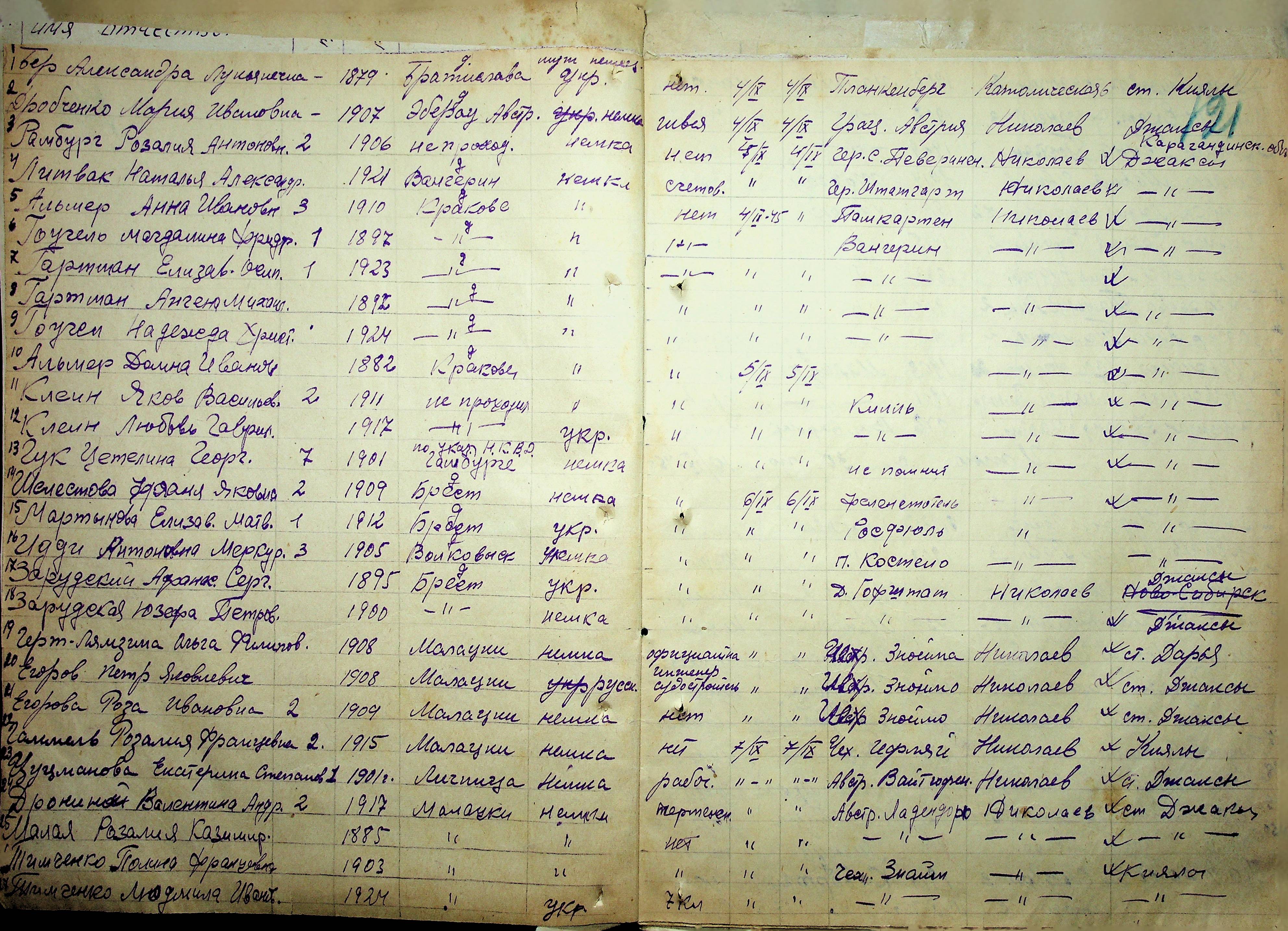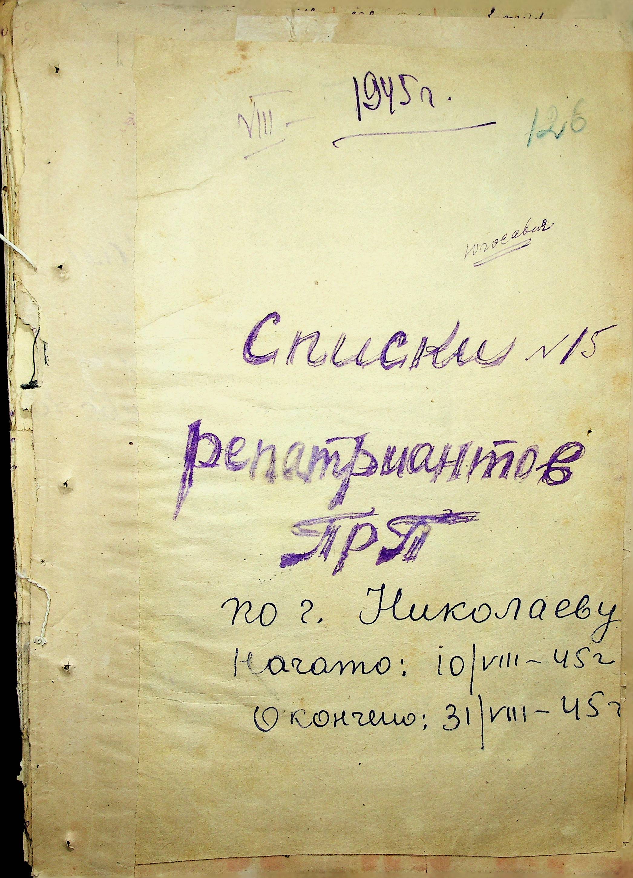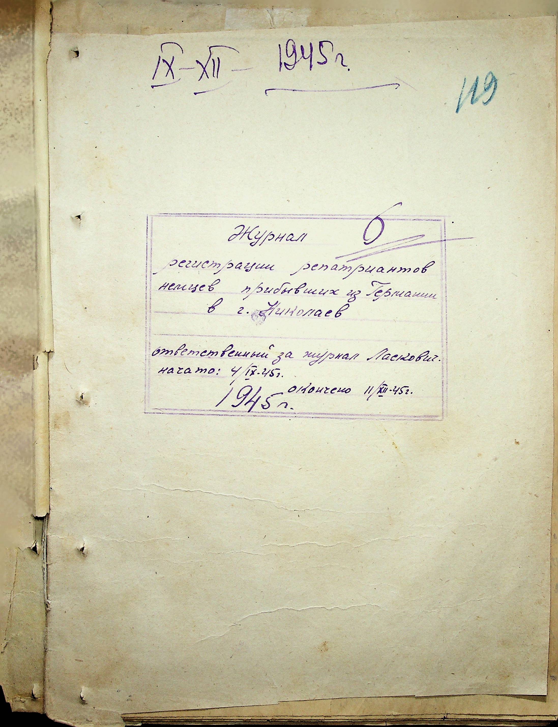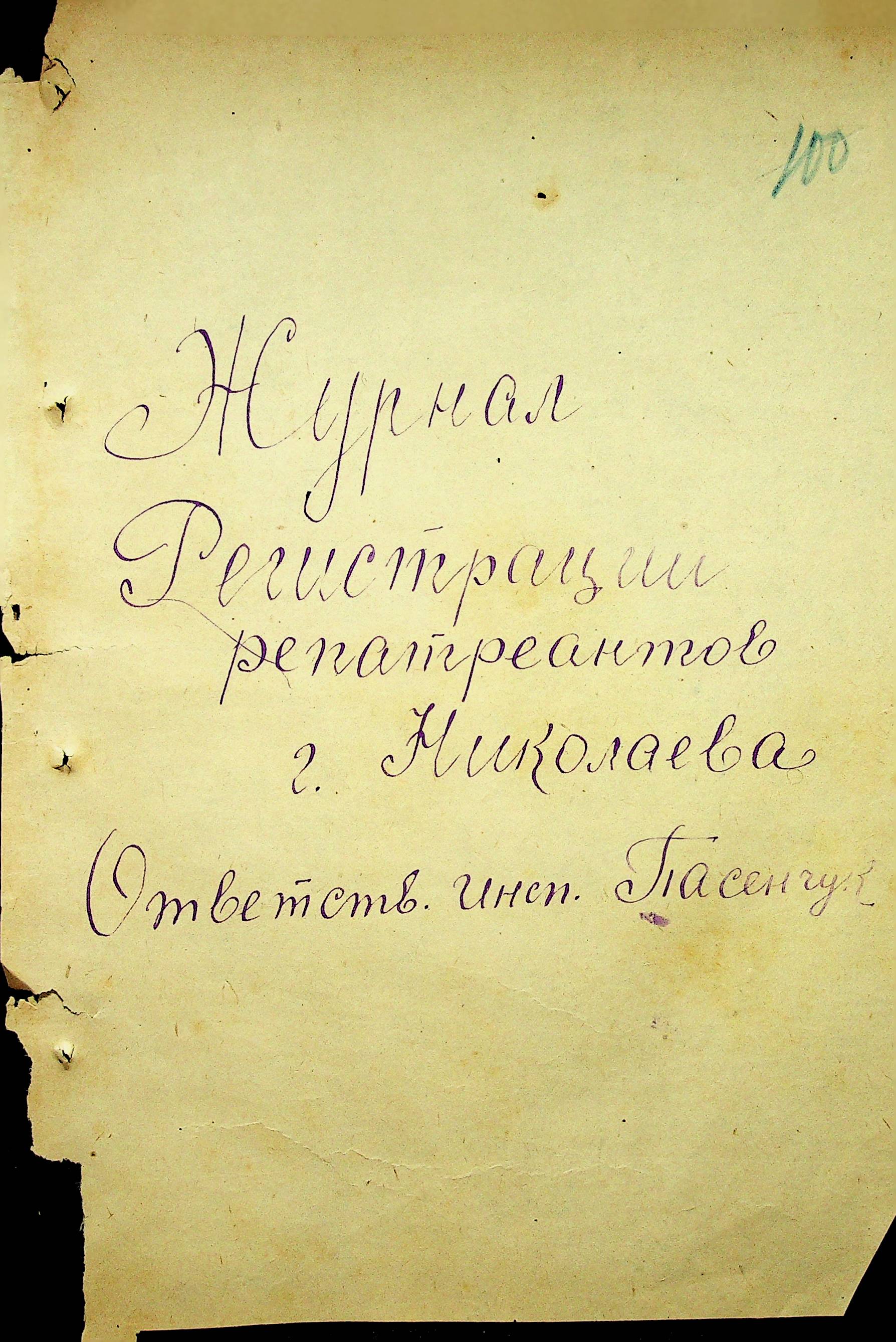 • • • • Справа № 11 “Журнал реєстрації репатріантів, які прибули до м. Миколаєва і Миколаївської області”