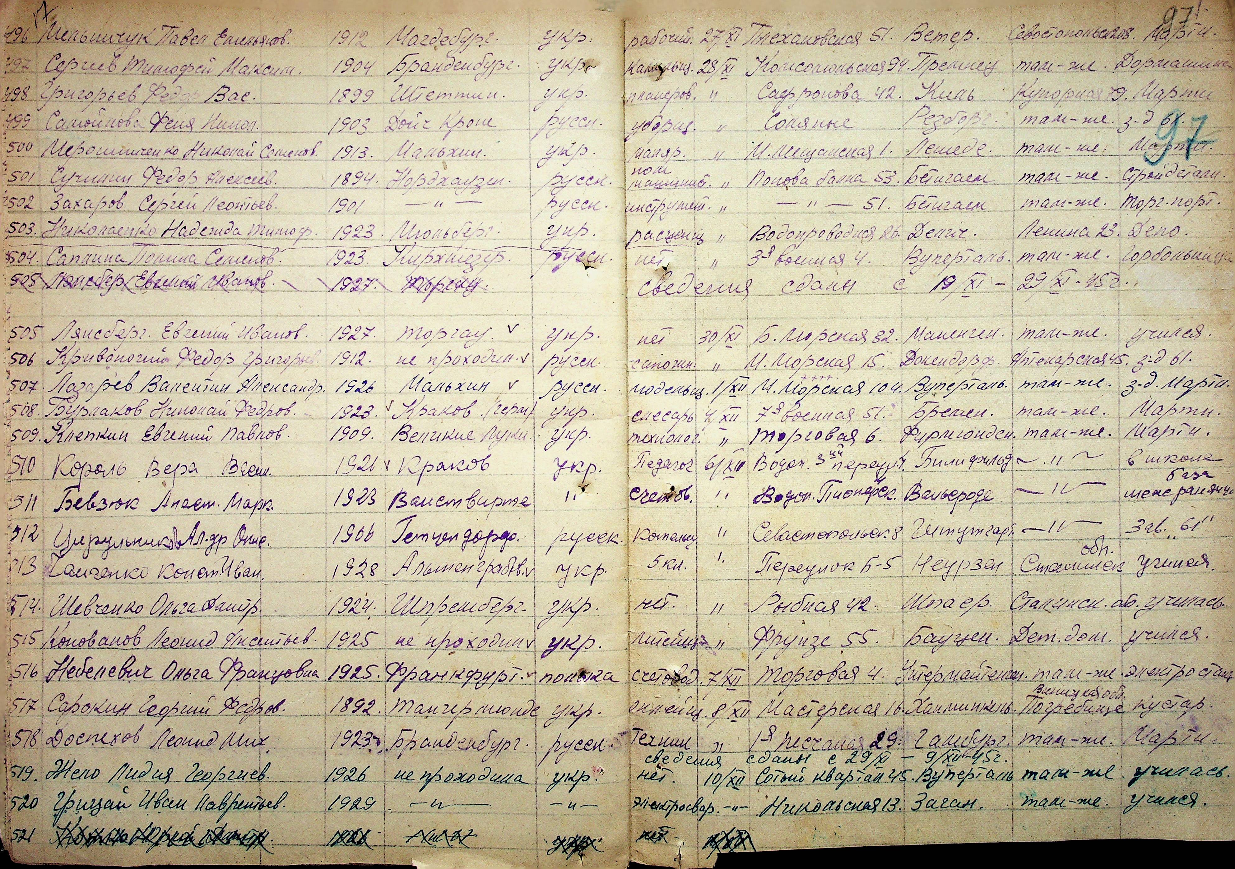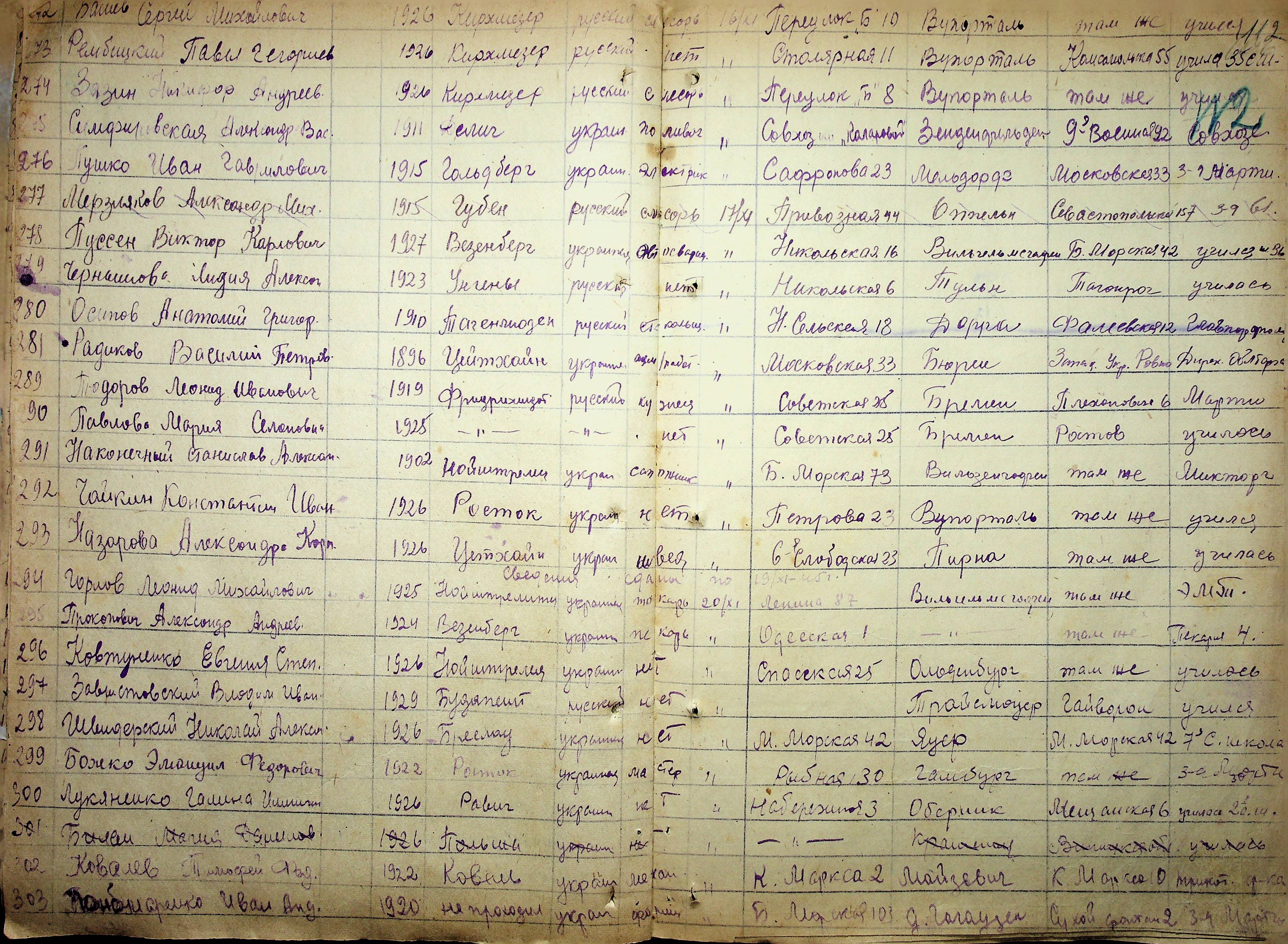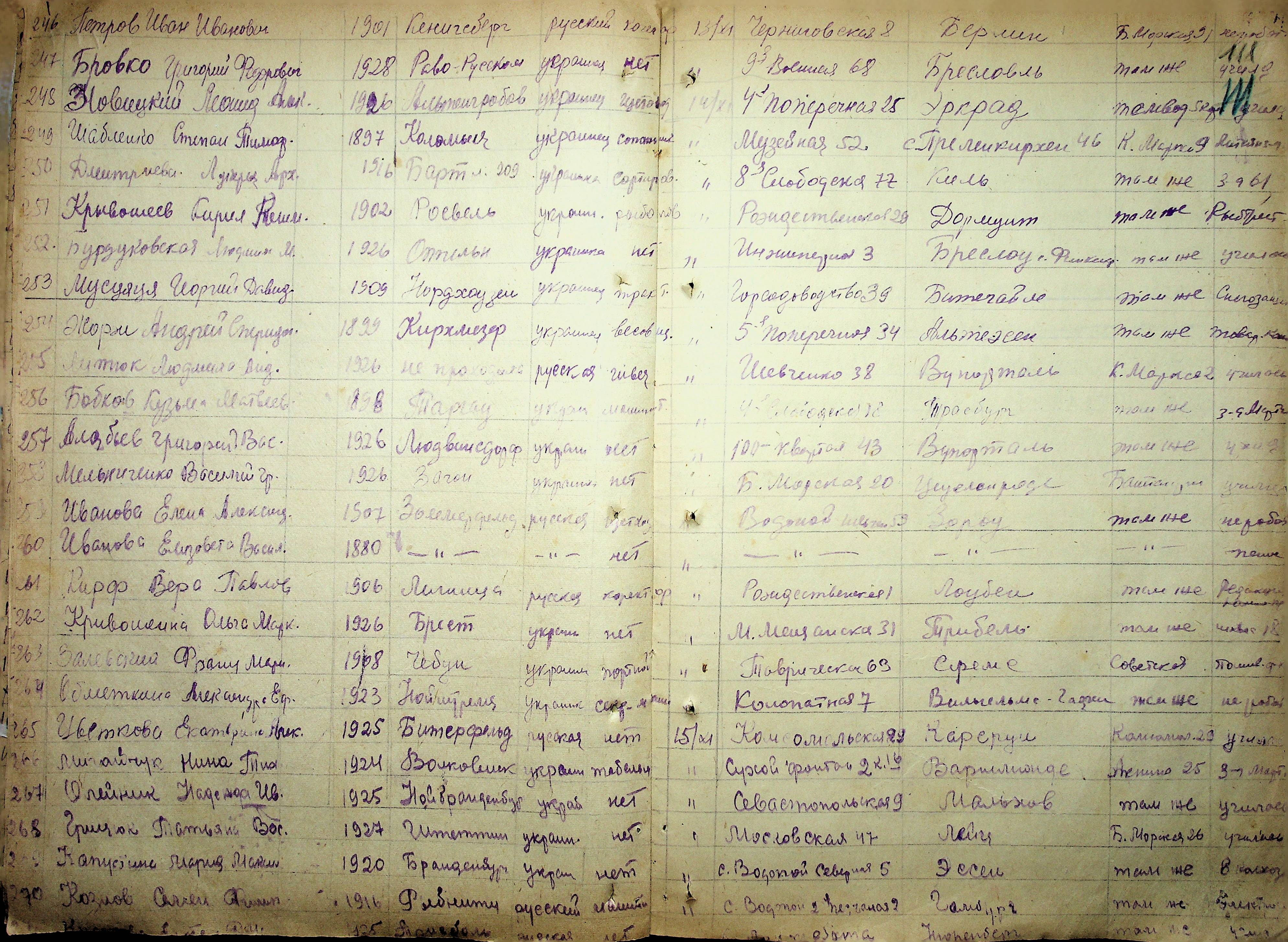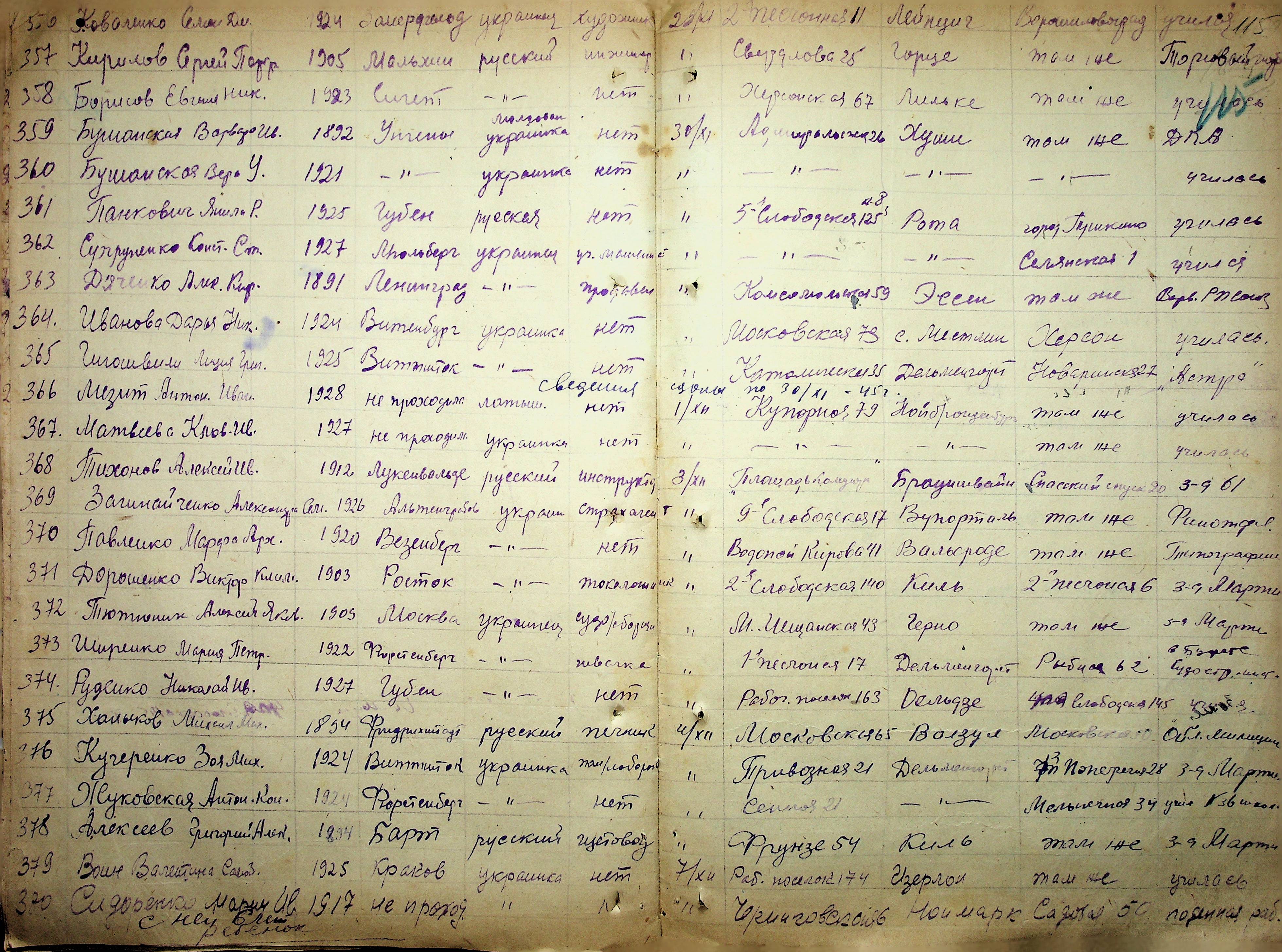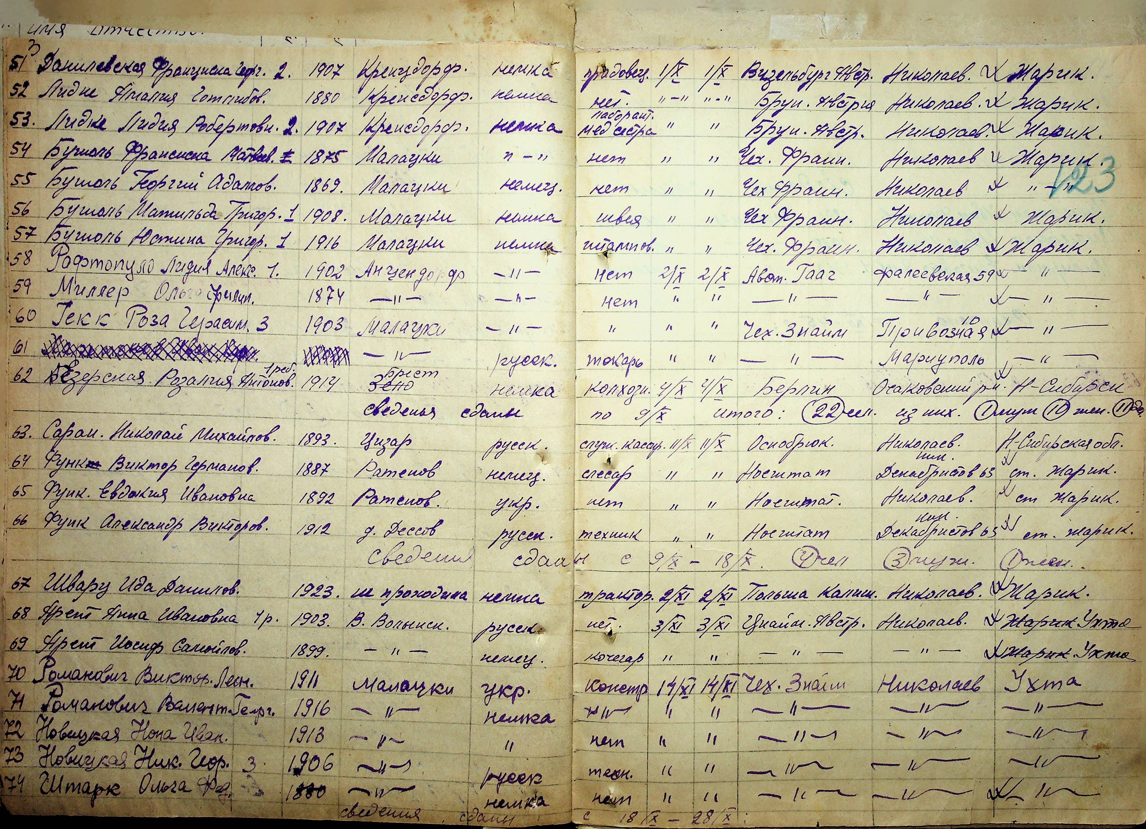 • • • • Справа № 11 “Журнал реєстрації репатріантів, які прибули до м. Миколаєва і Миколаївської області”