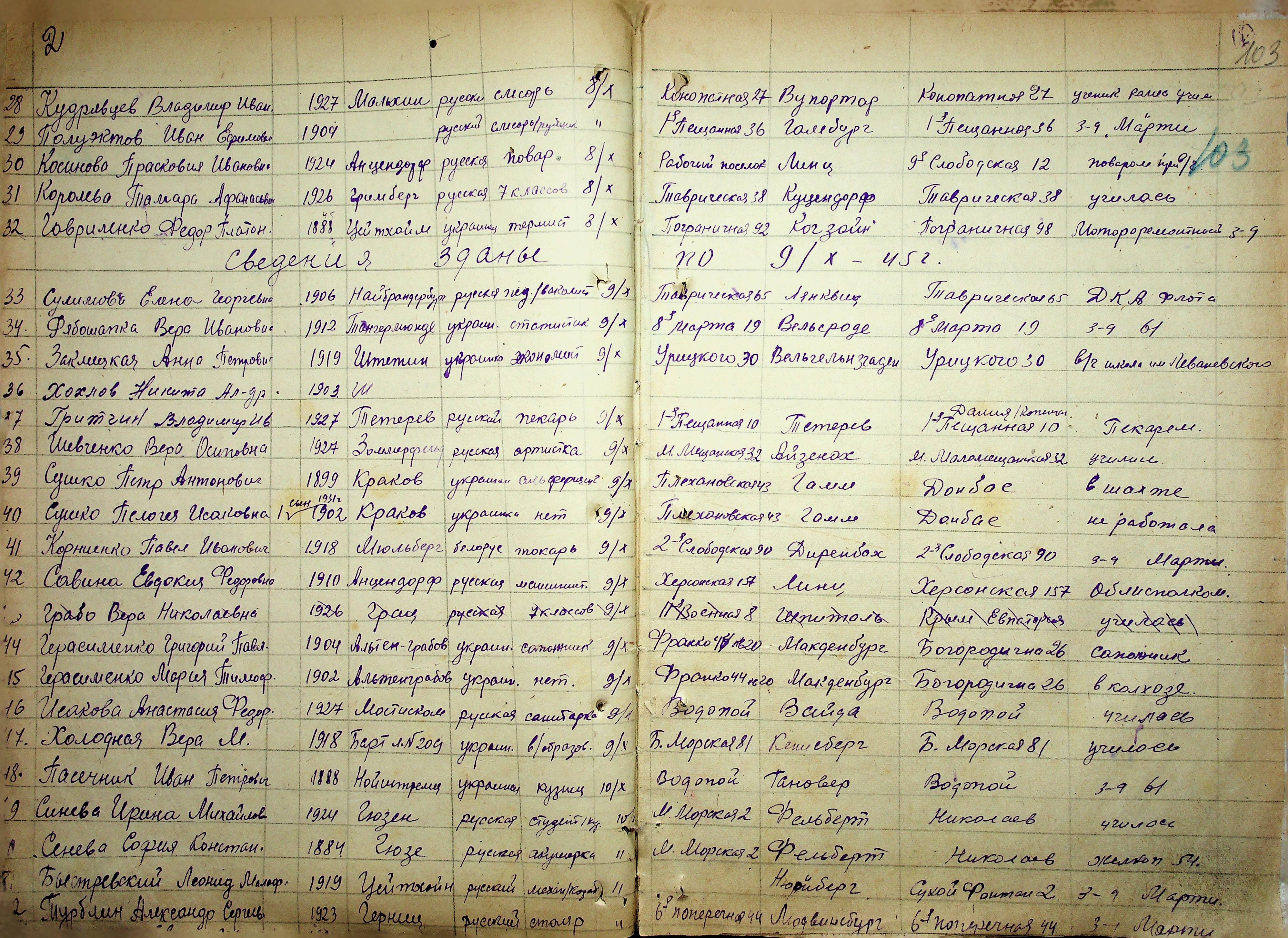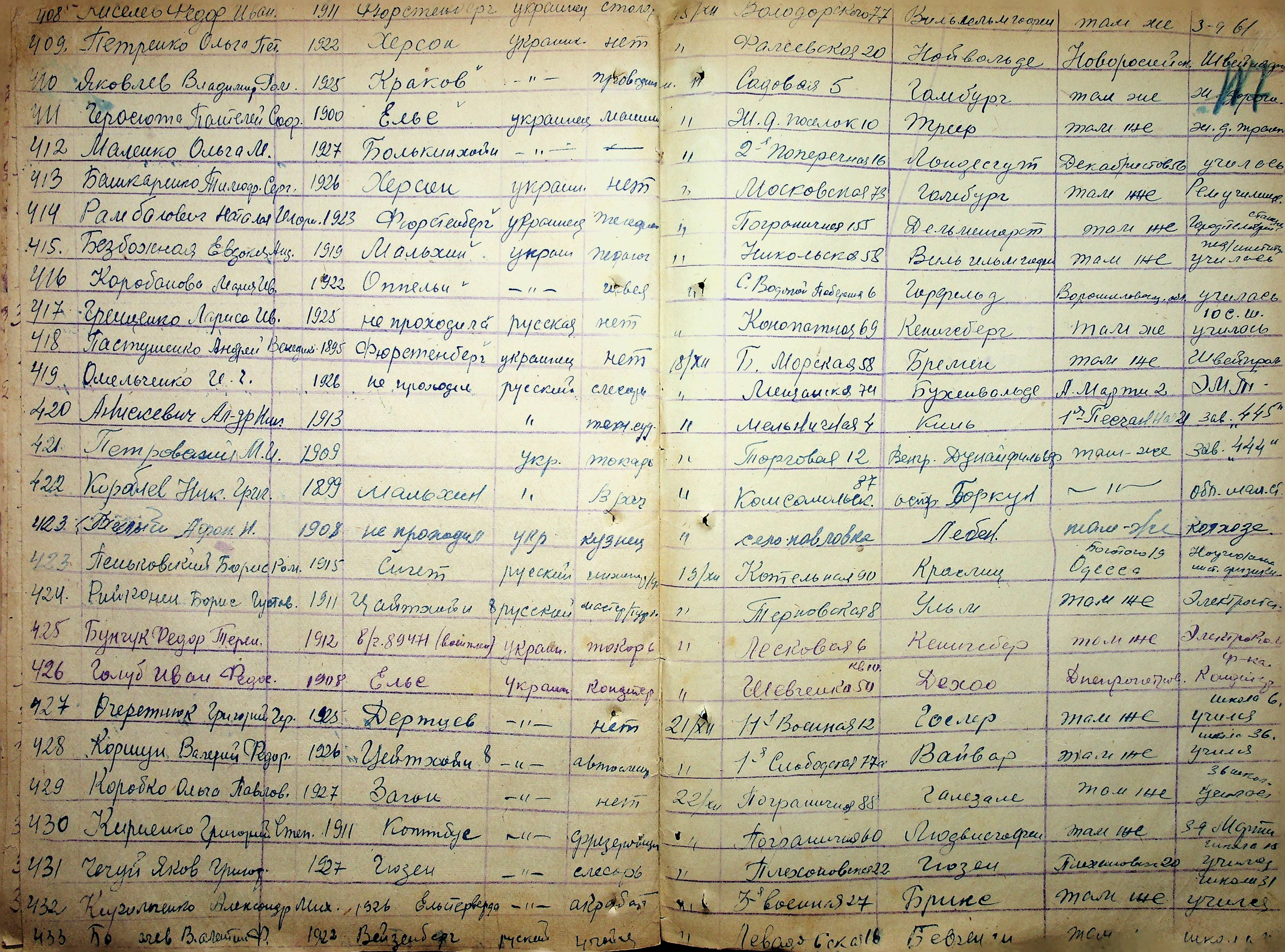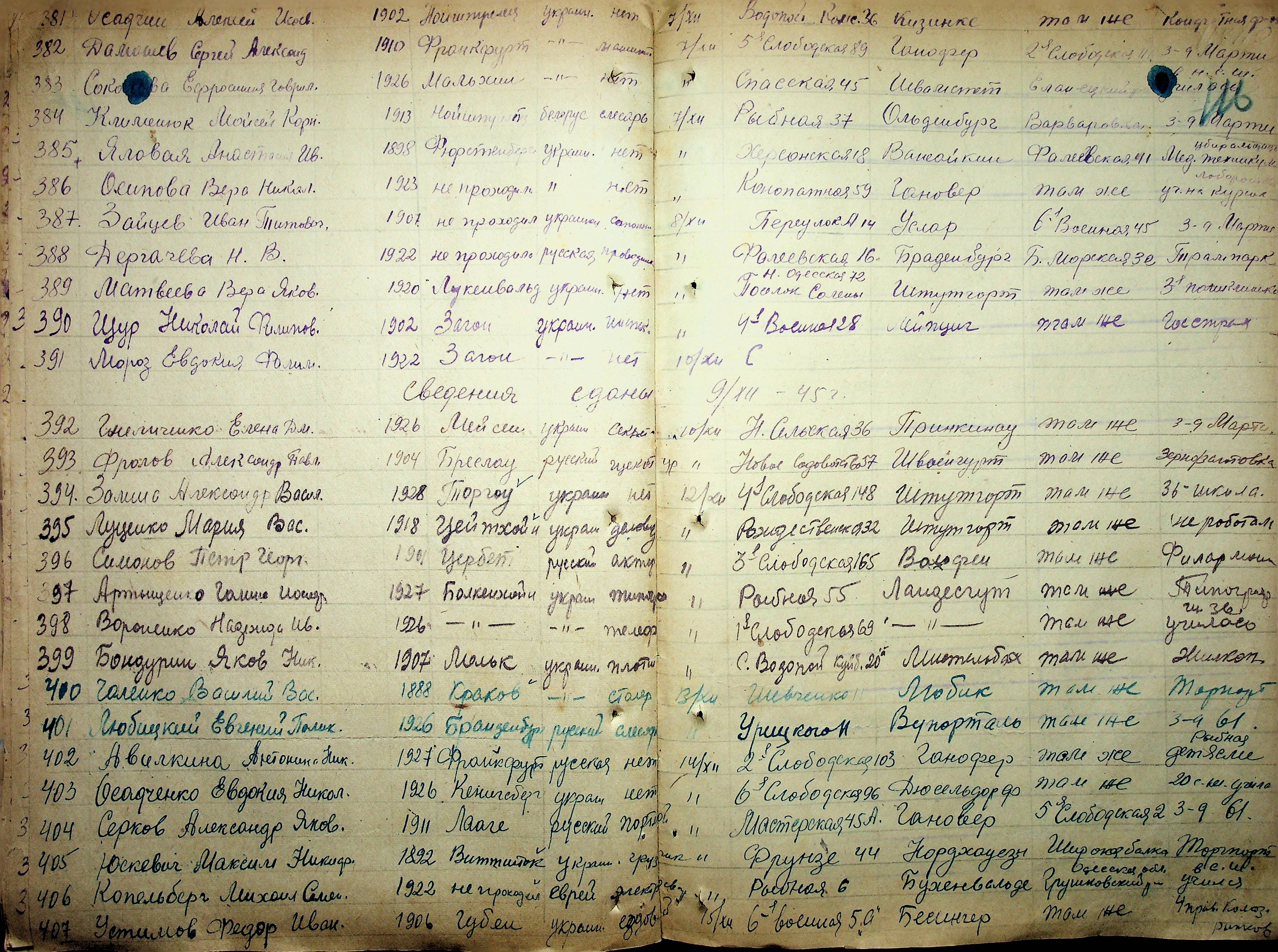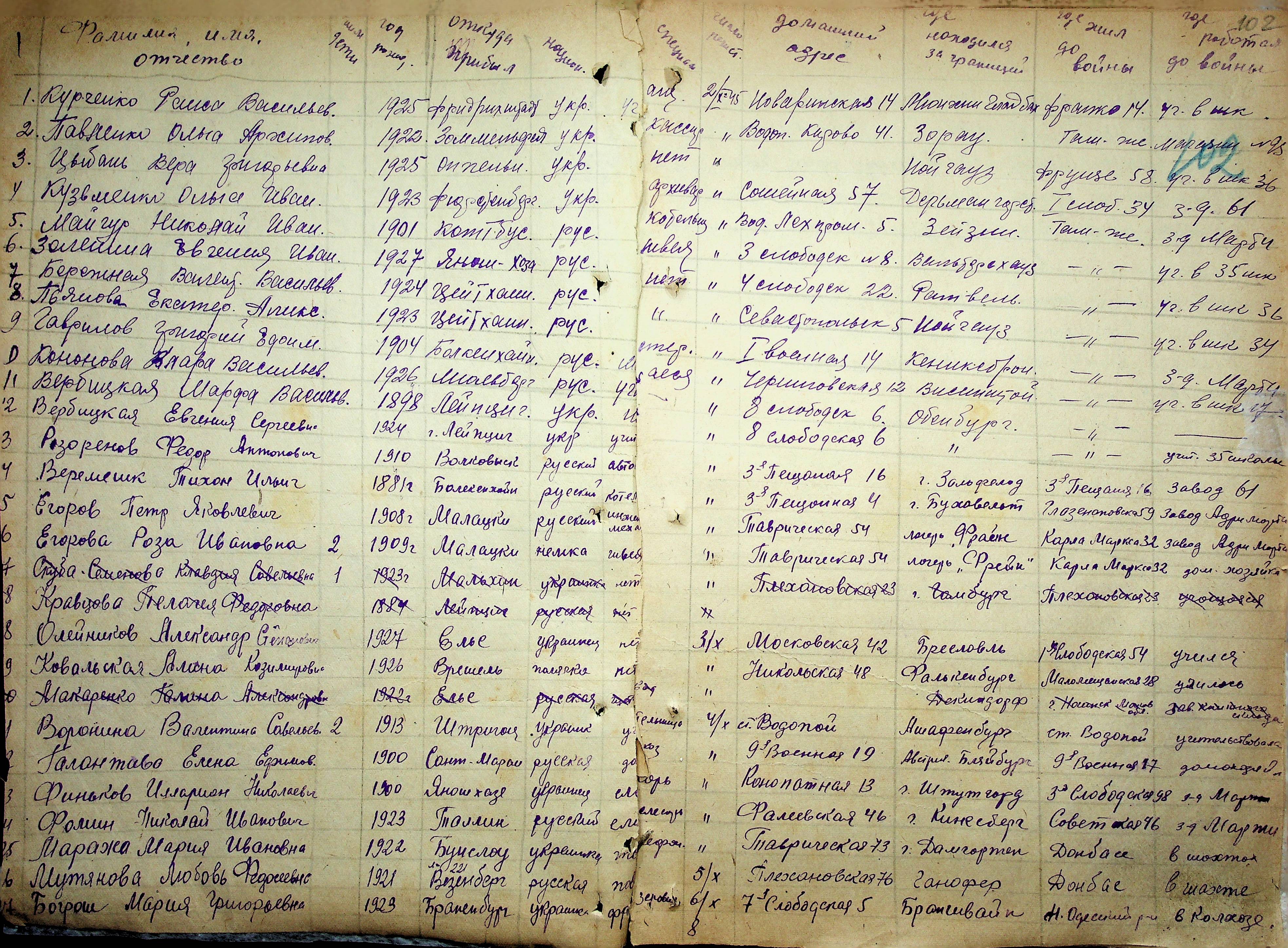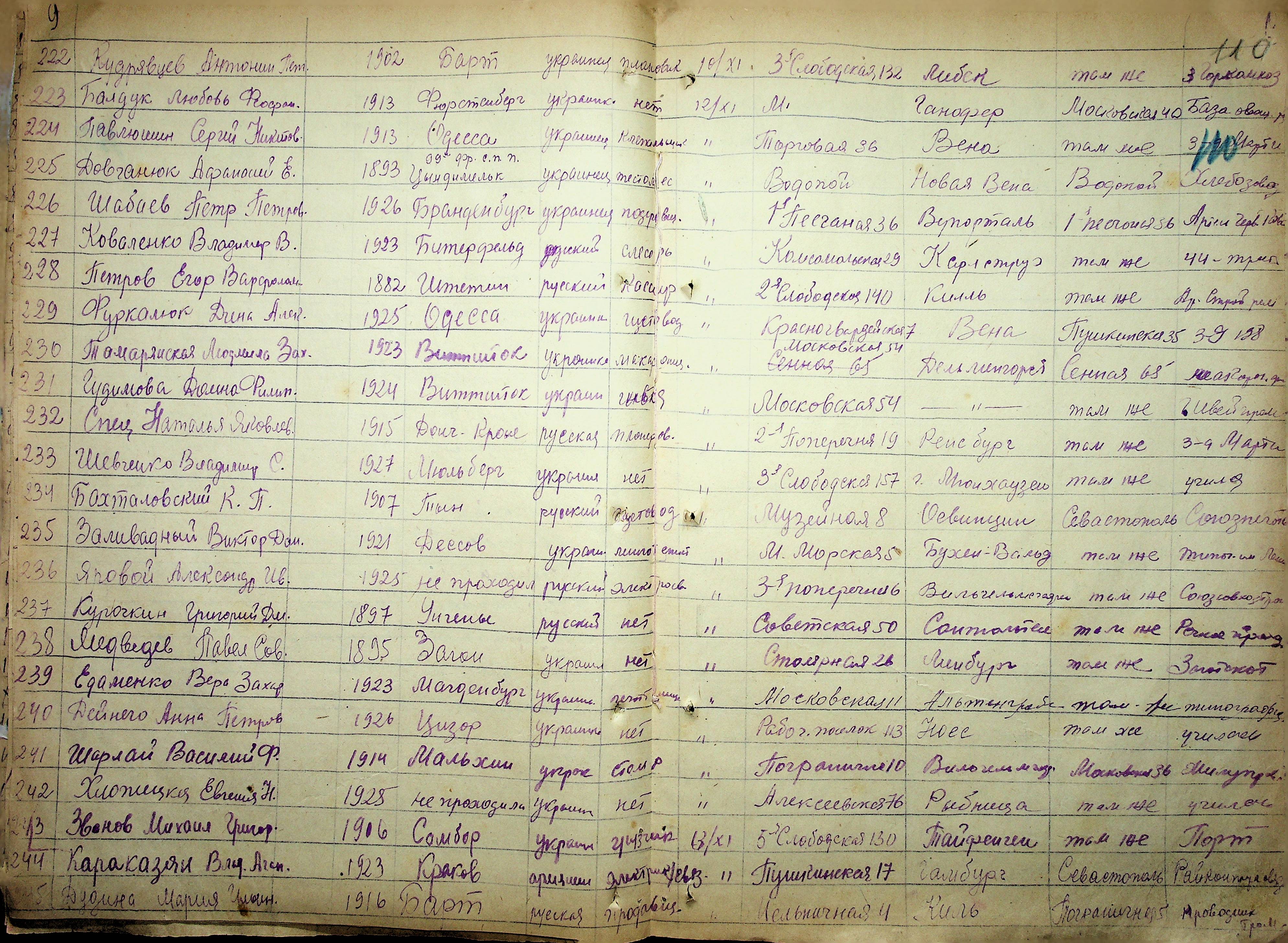 • • • • Справа № 11 “Журнал реєстрації репатріантів, які прибули до м. Миколаєва і Миколаївської області”