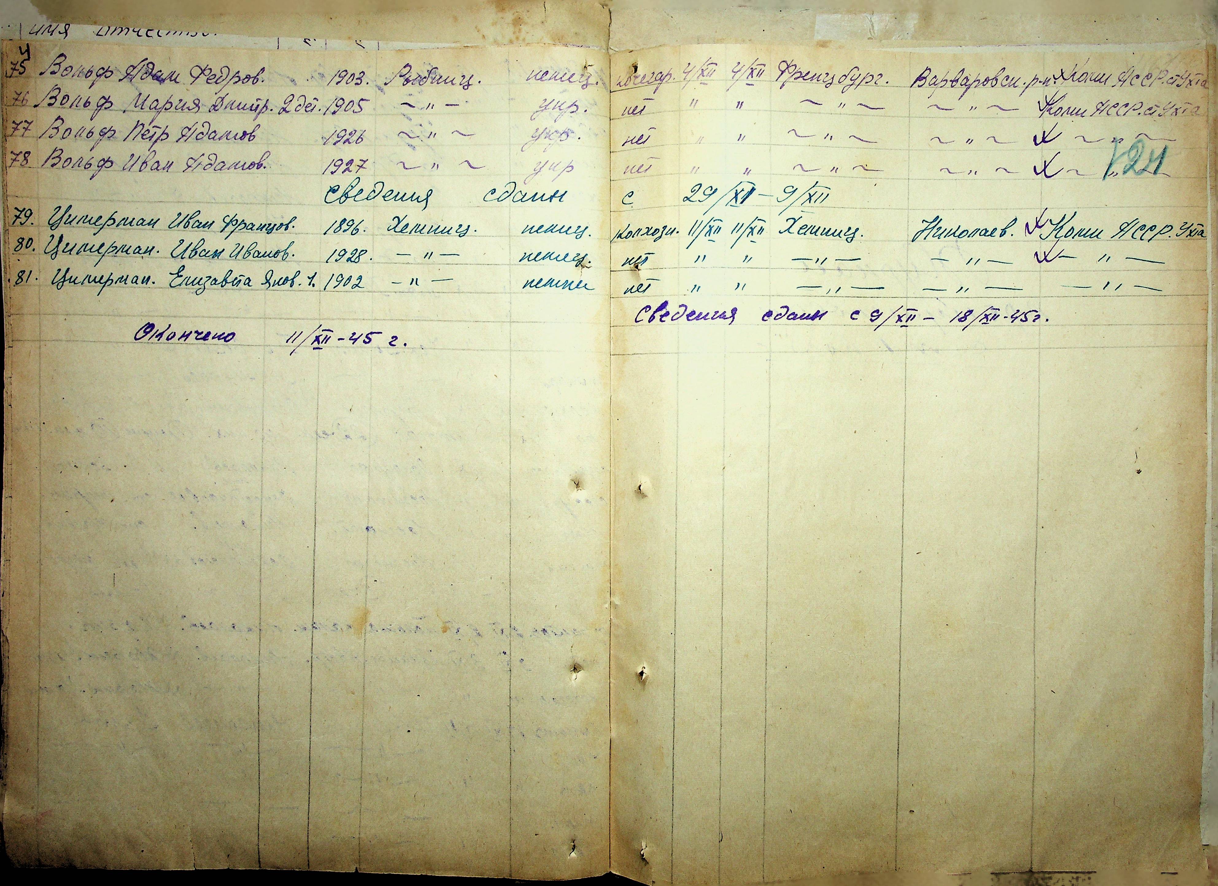 ◦ ◦ Фонд № Р-6197 “Колекція документів щодо евакуйованих, репатрійованих осіб та переселенців”
