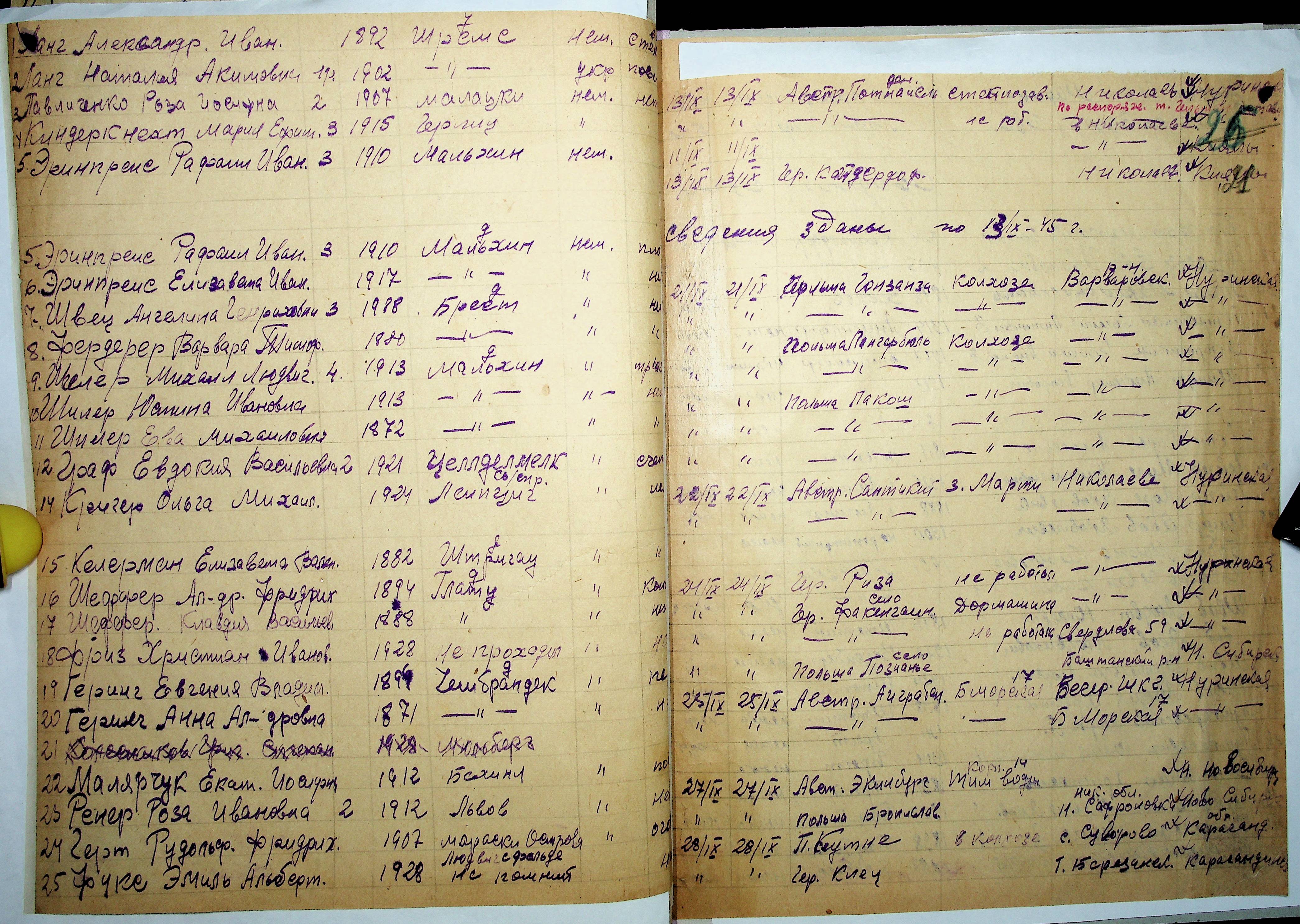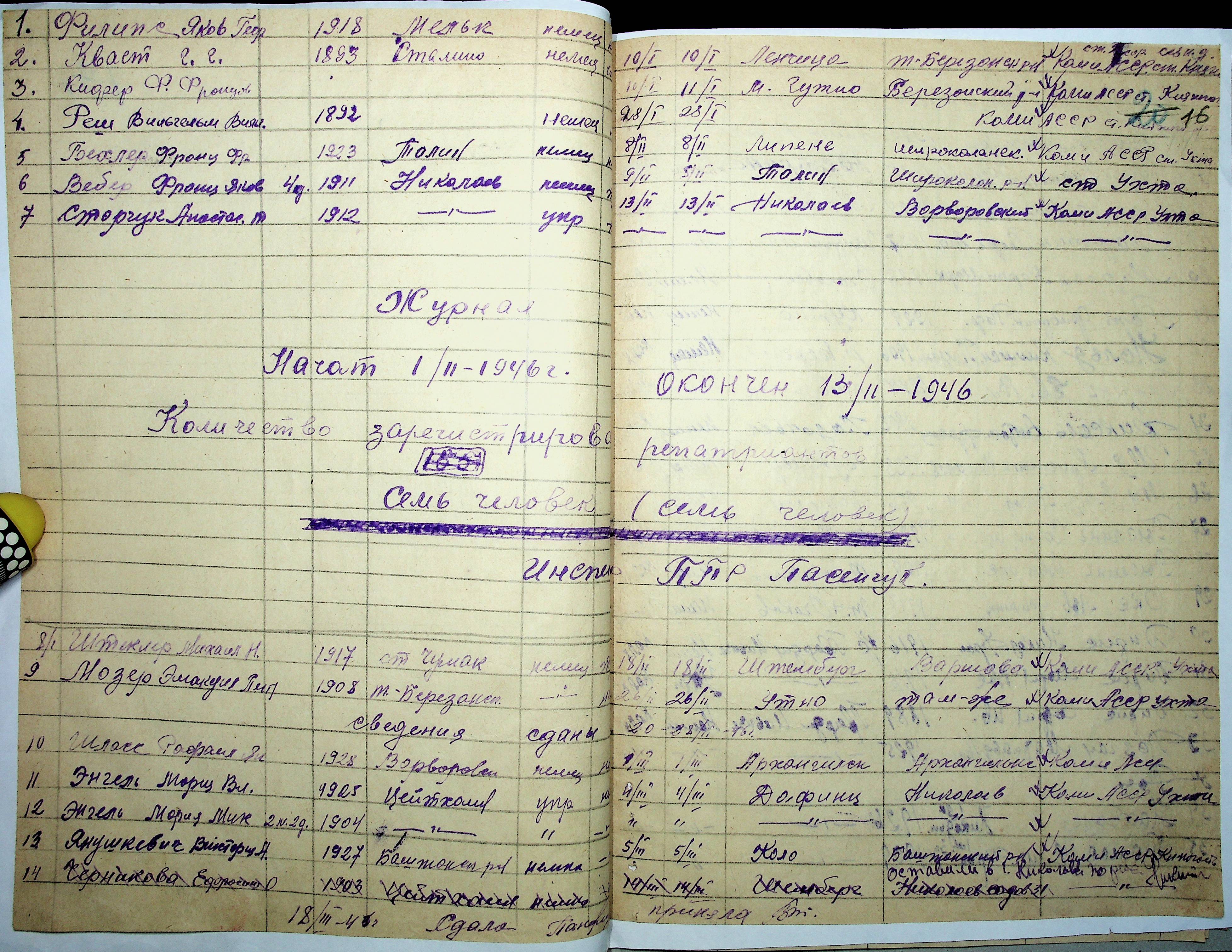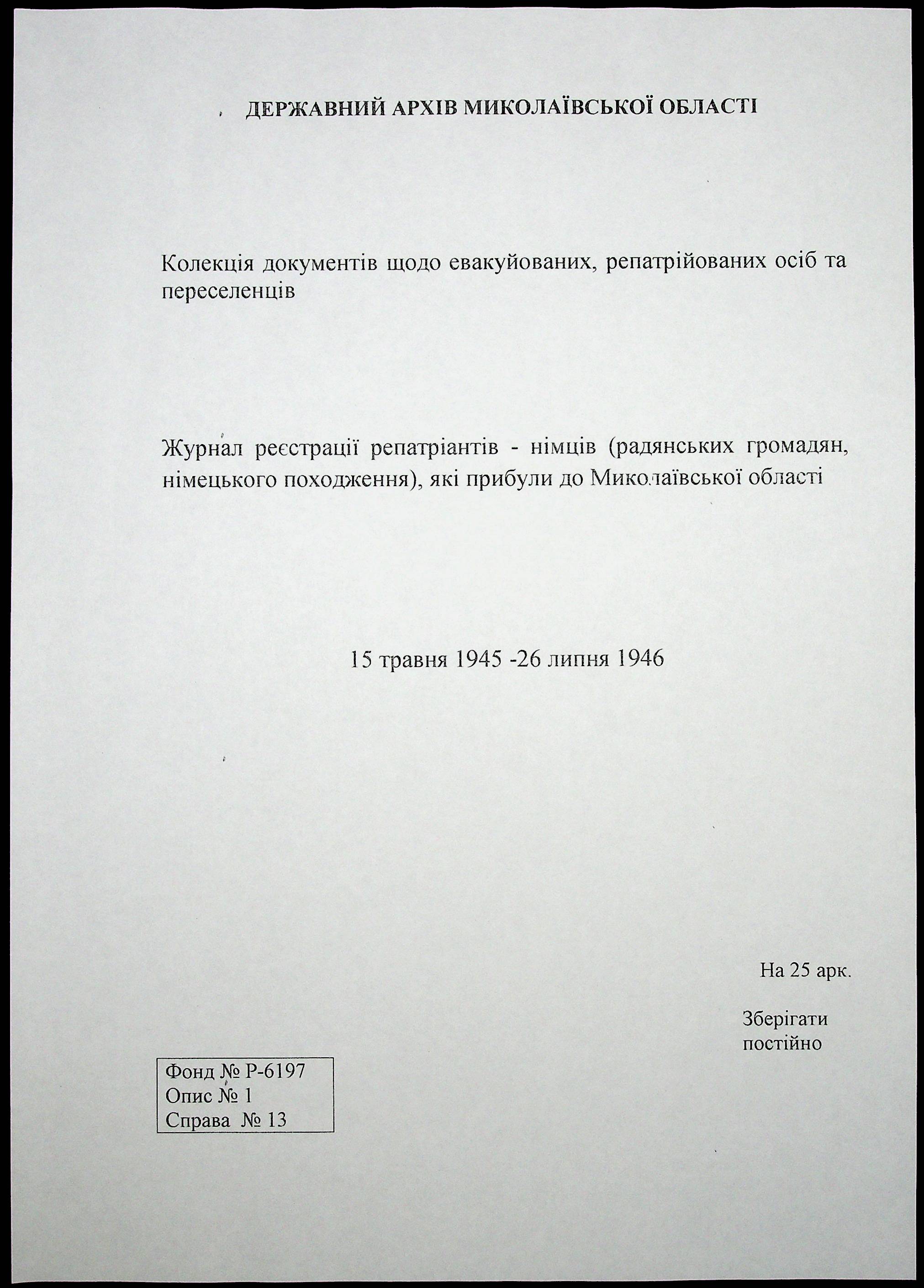 • • • • Справа № 13 “Журнал реєстрації репатріантів – німців (радянських громадян, німецького походження), які прибули до Миколаївської області”