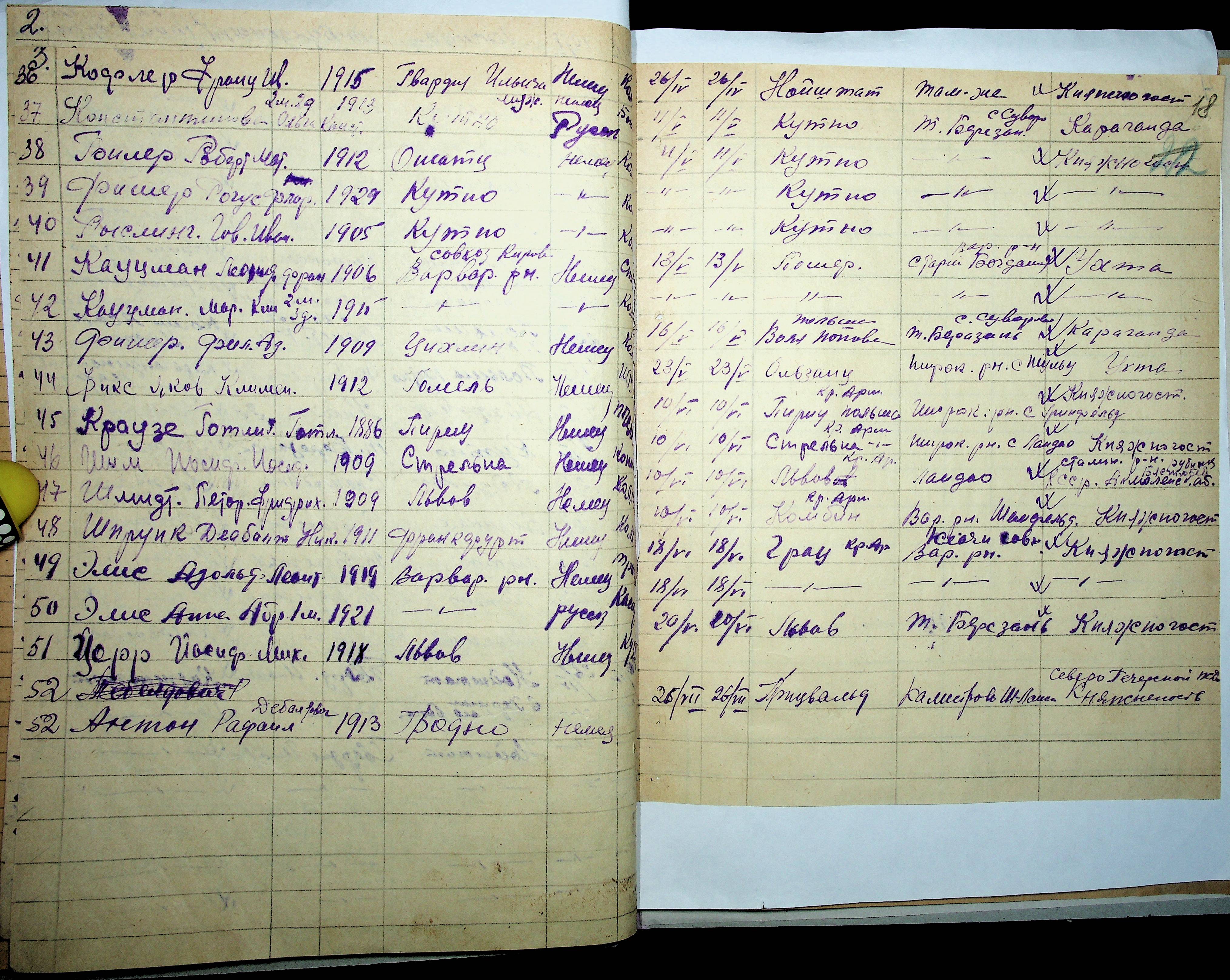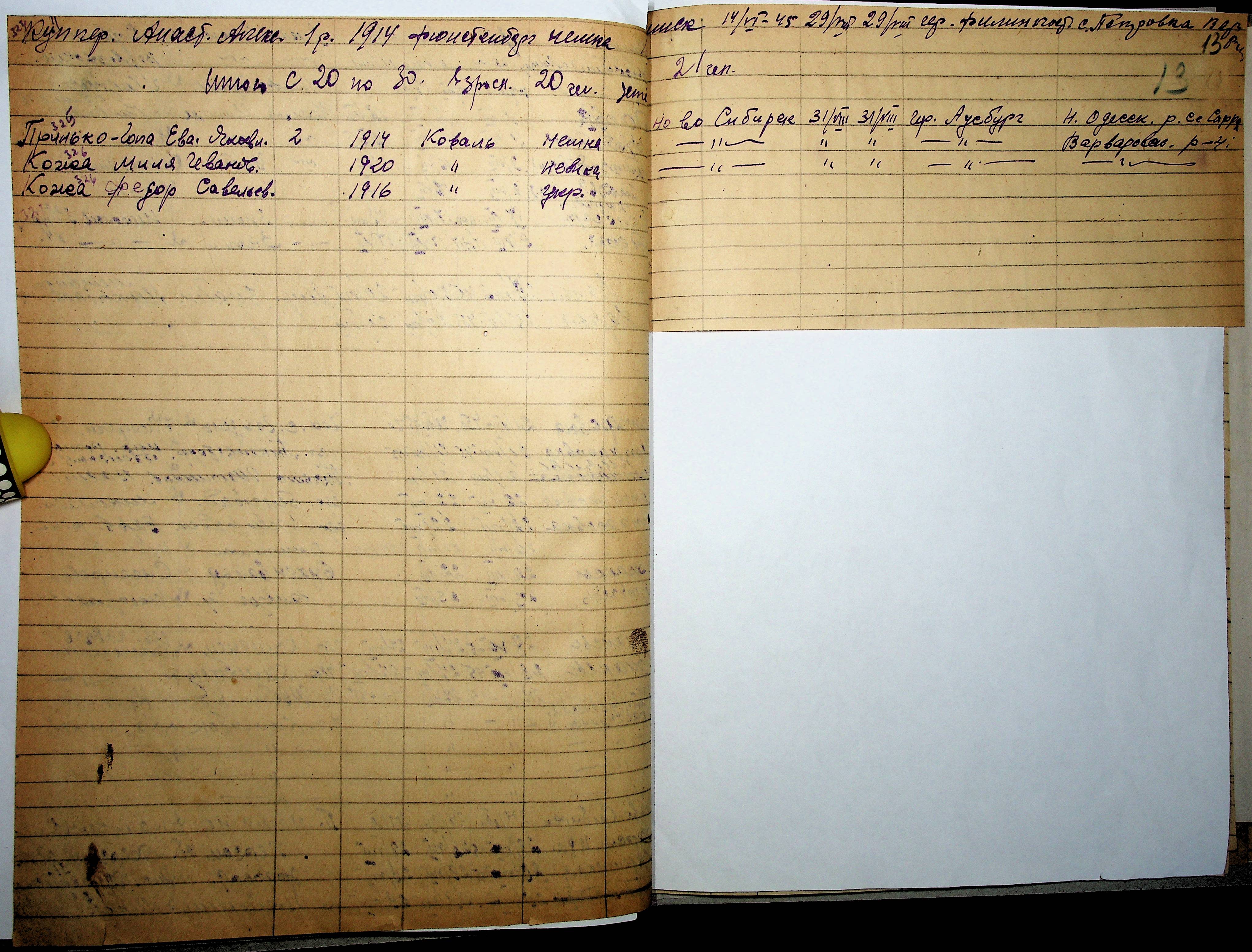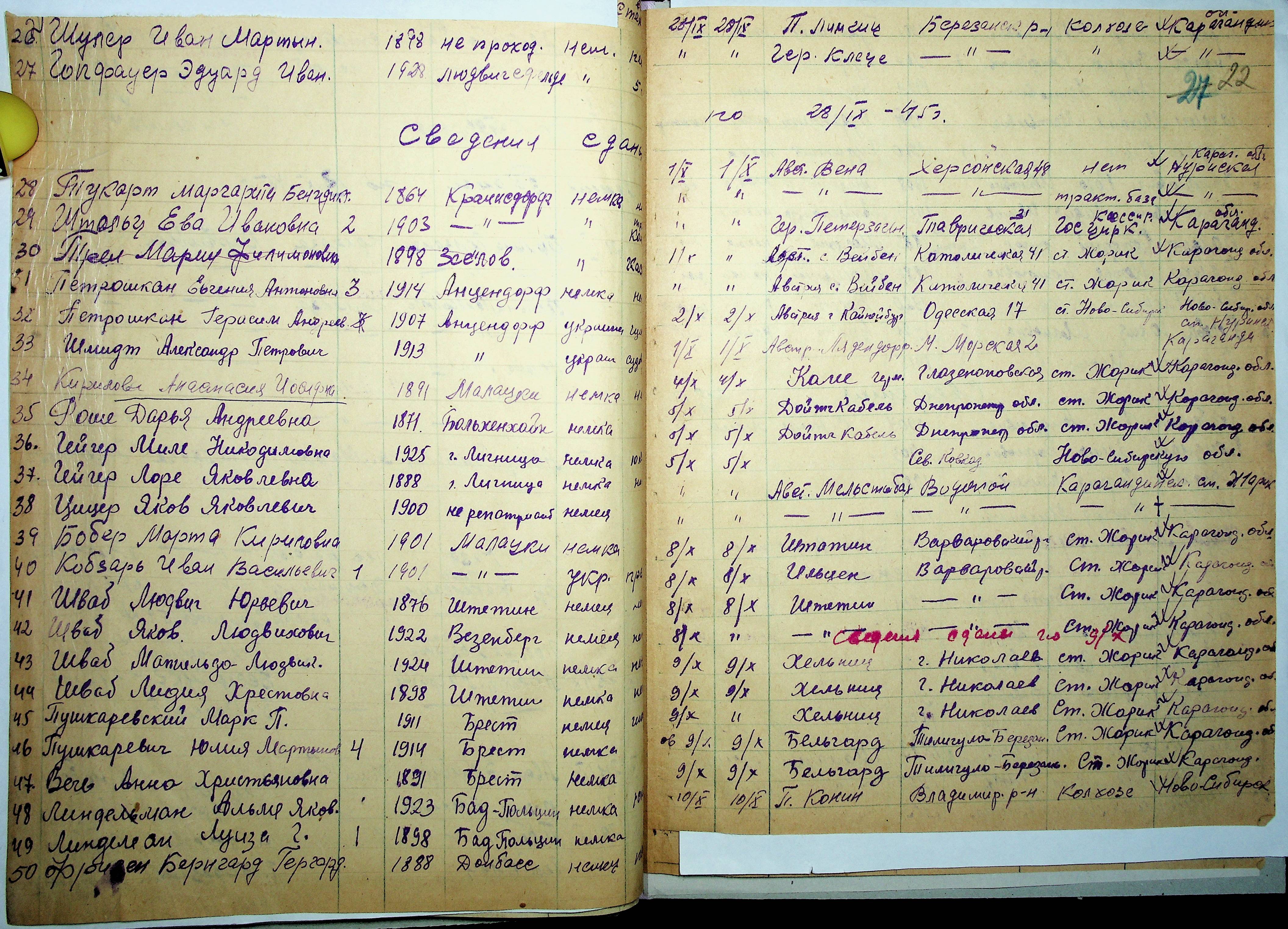 • • • • Справа № 13 “Журнал реєстрації репатріантів – німців (радянських громадян, німецького походження), які прибули до Миколаївської області”