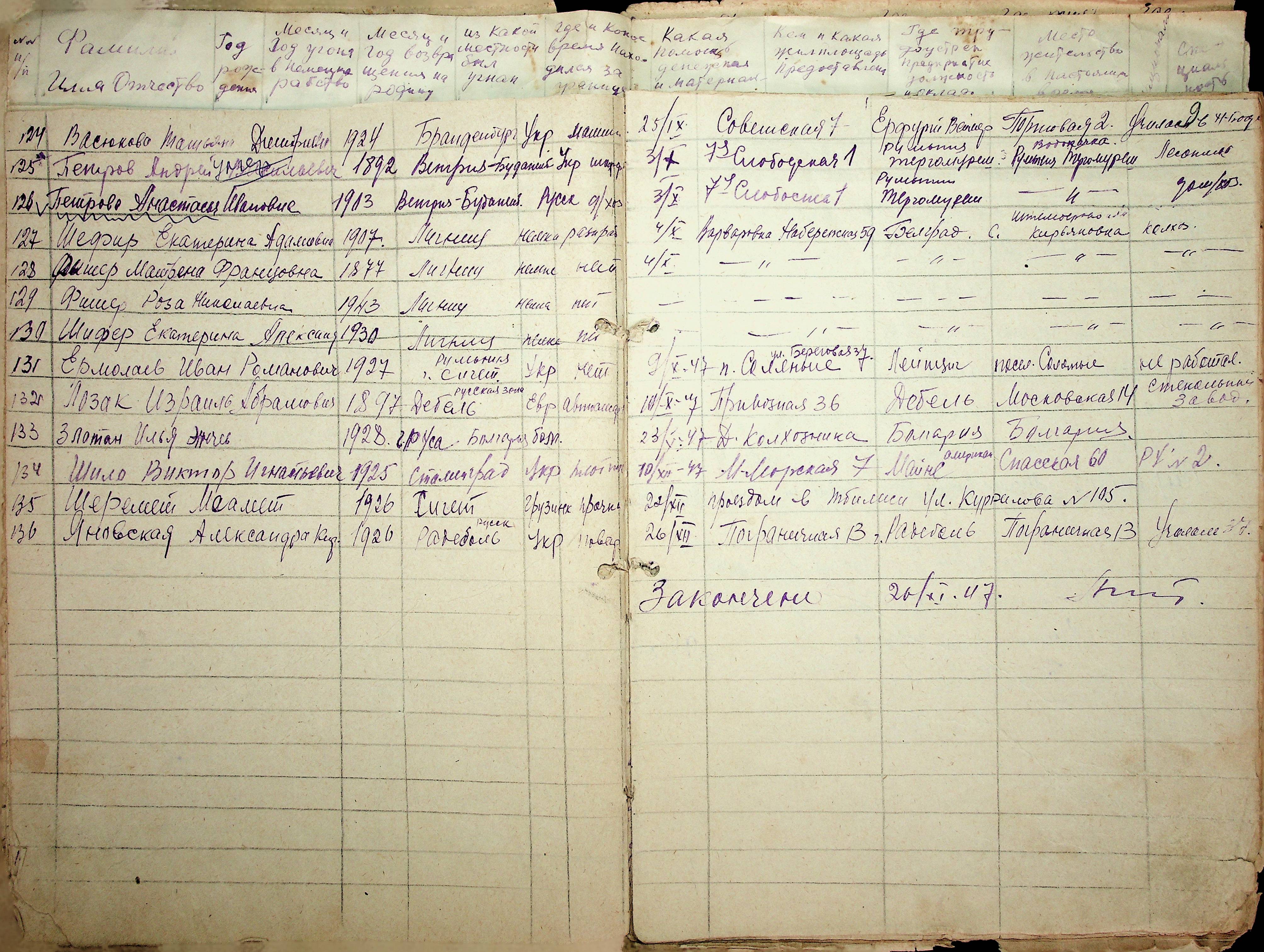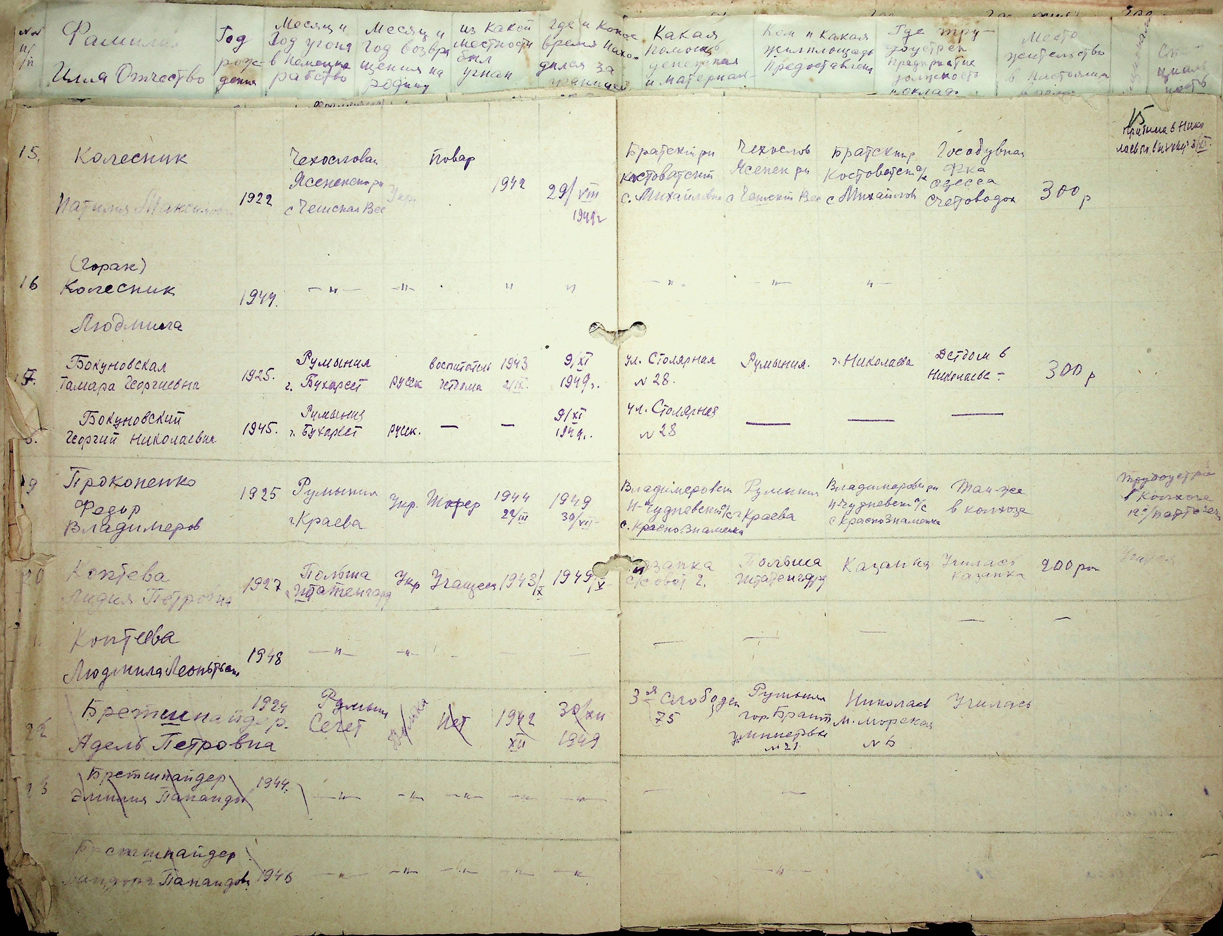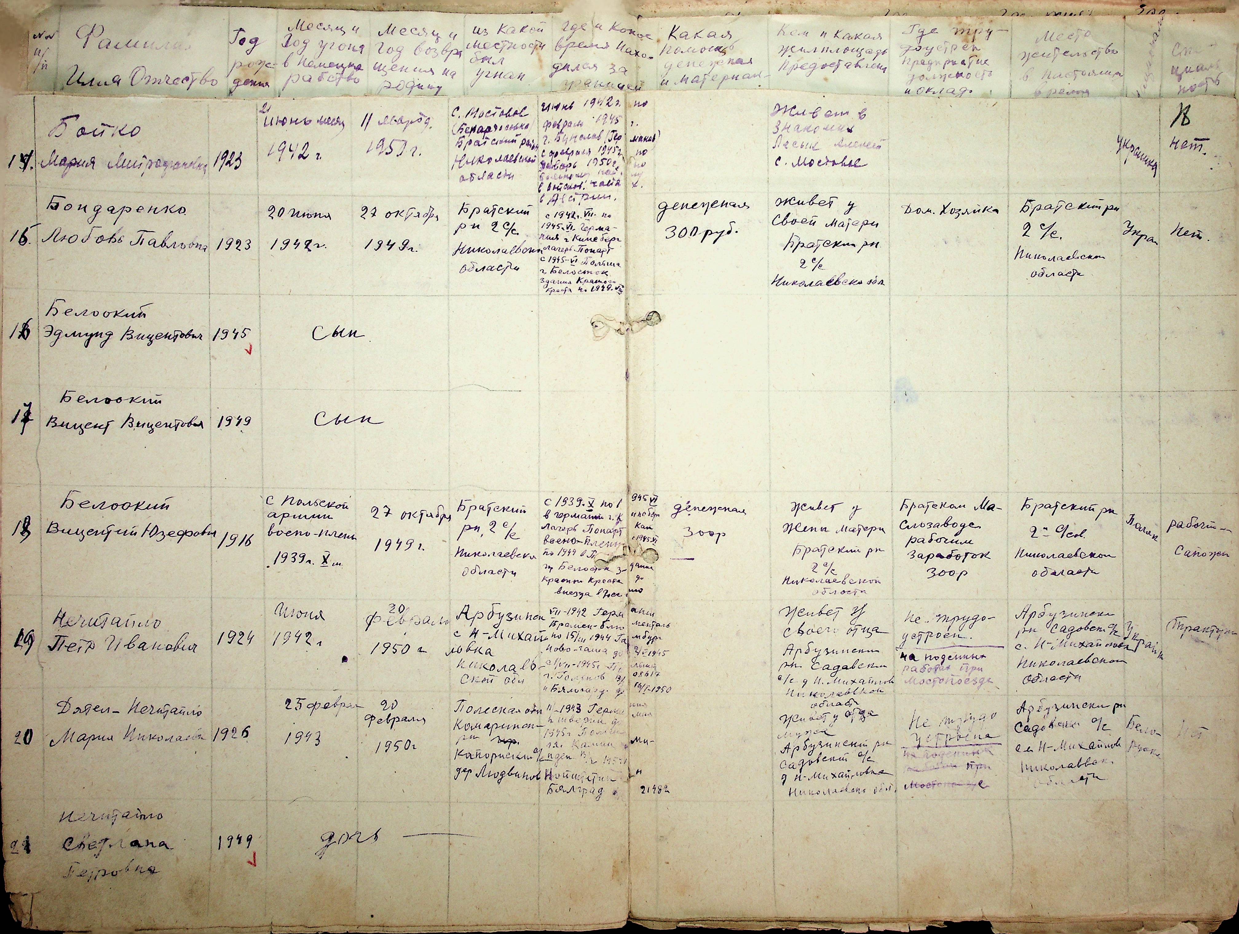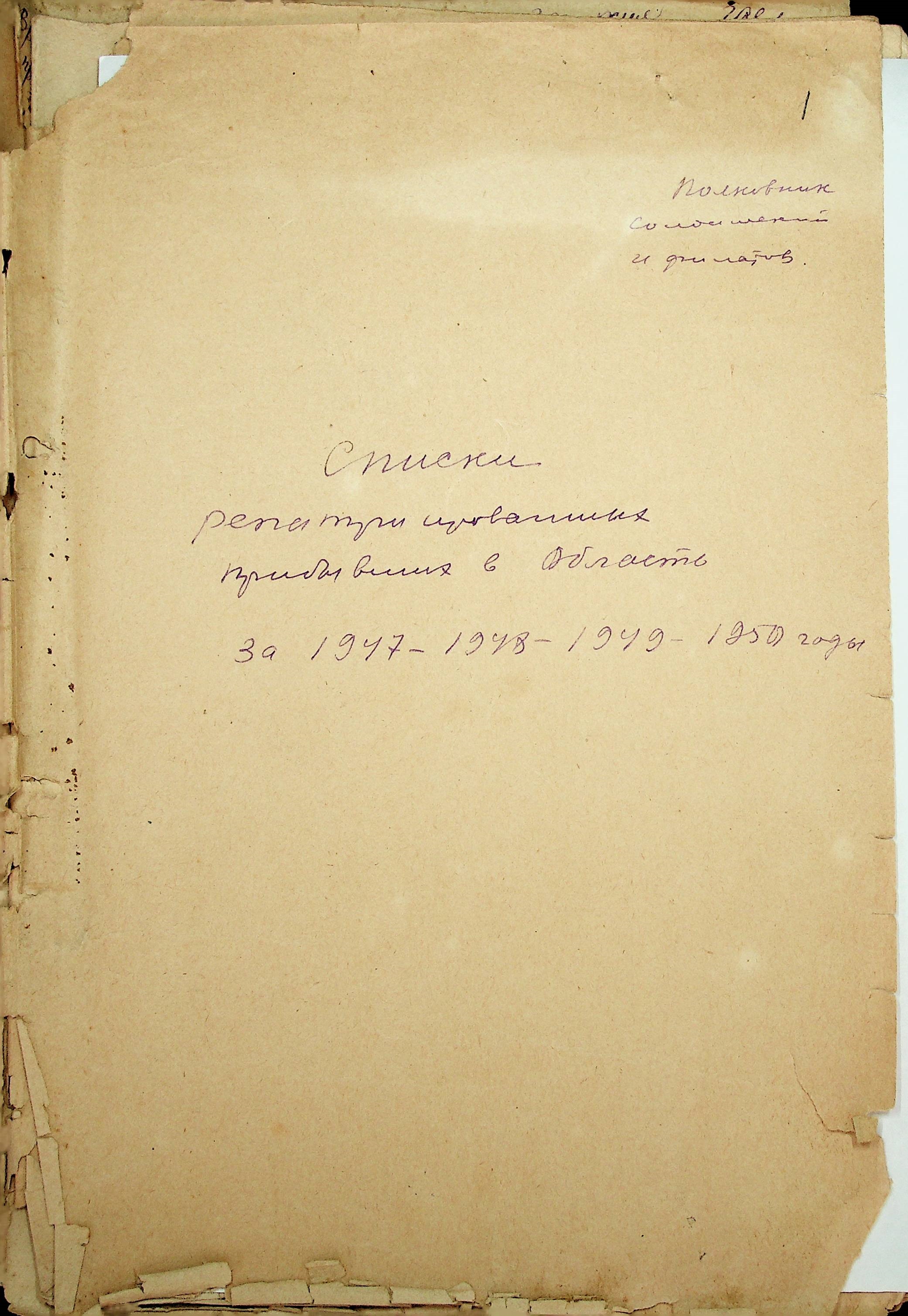 • • • • Справа № 22а “Списки репатрійованих осіб, які прибули з Польщі, Румунії, Німеччини, Чехословаччини та інших країн світу до м. Миколаєва та Миколаївської області протягом 1947-1952 років”