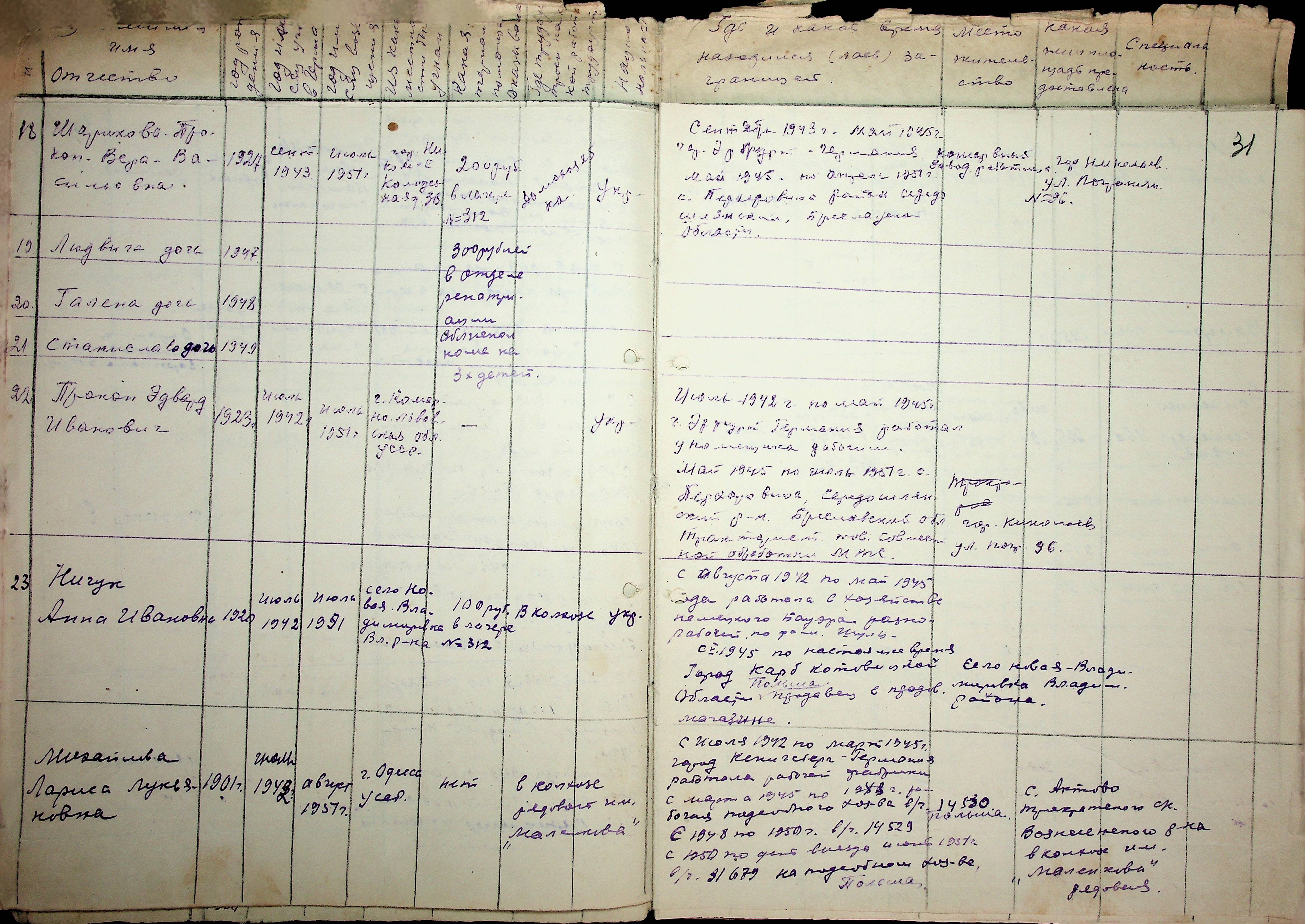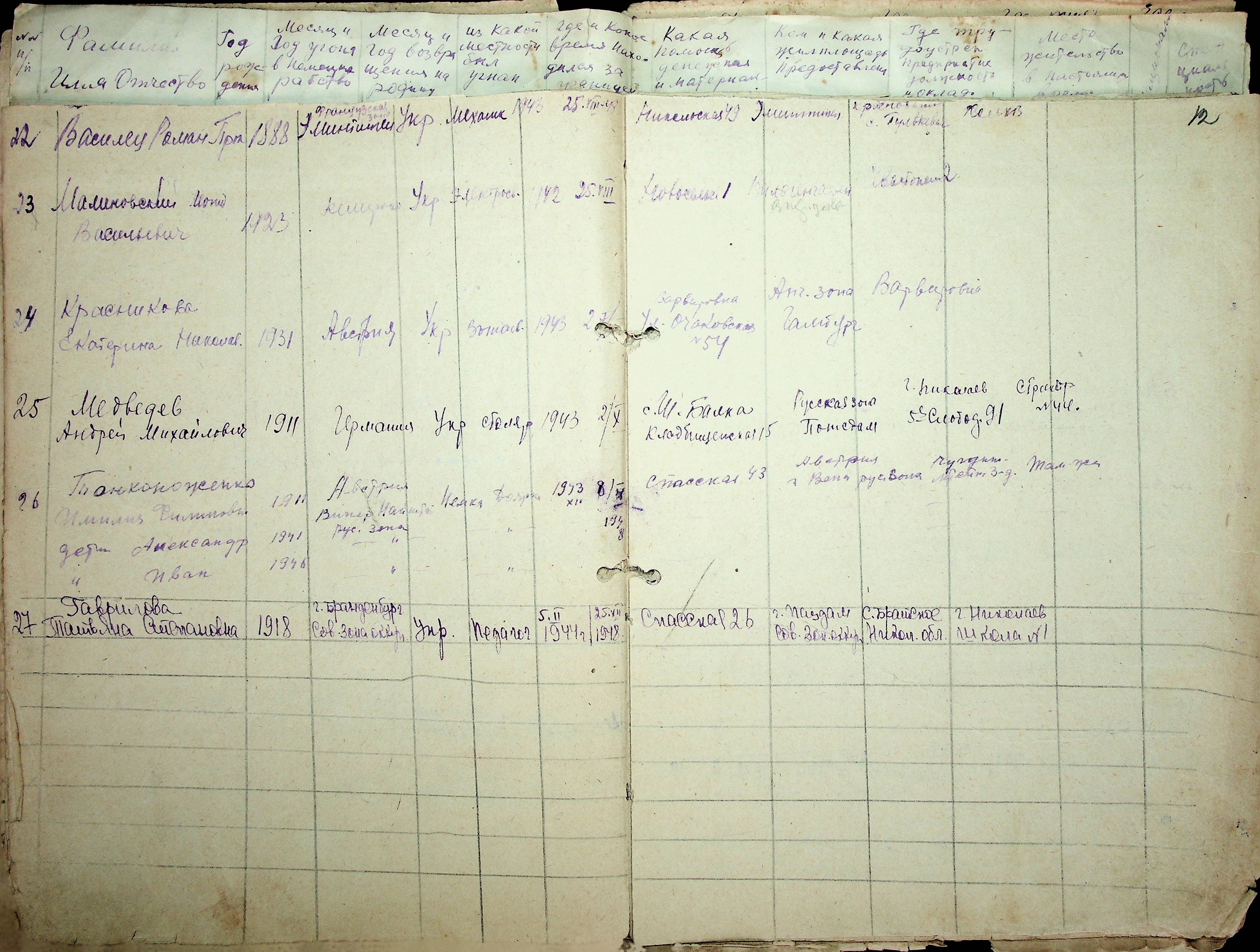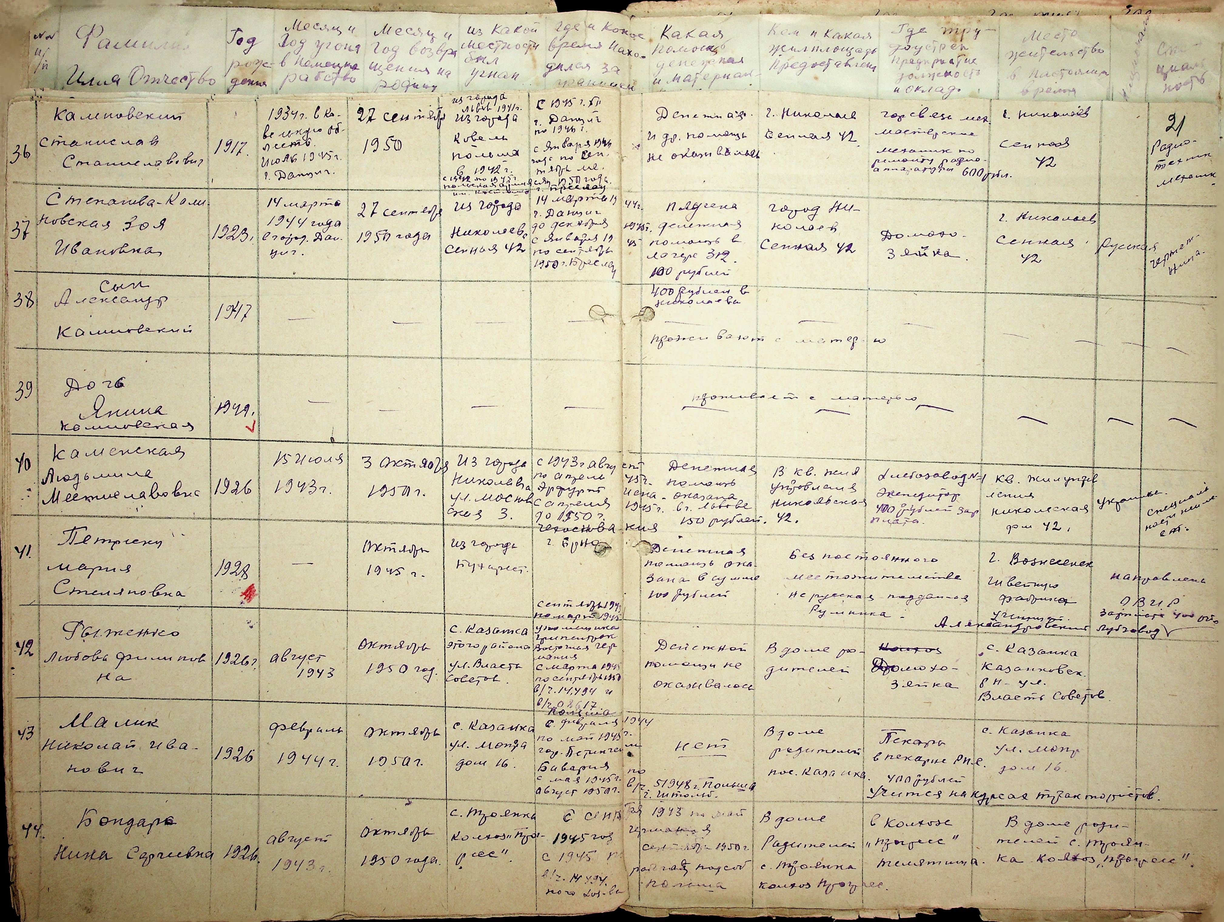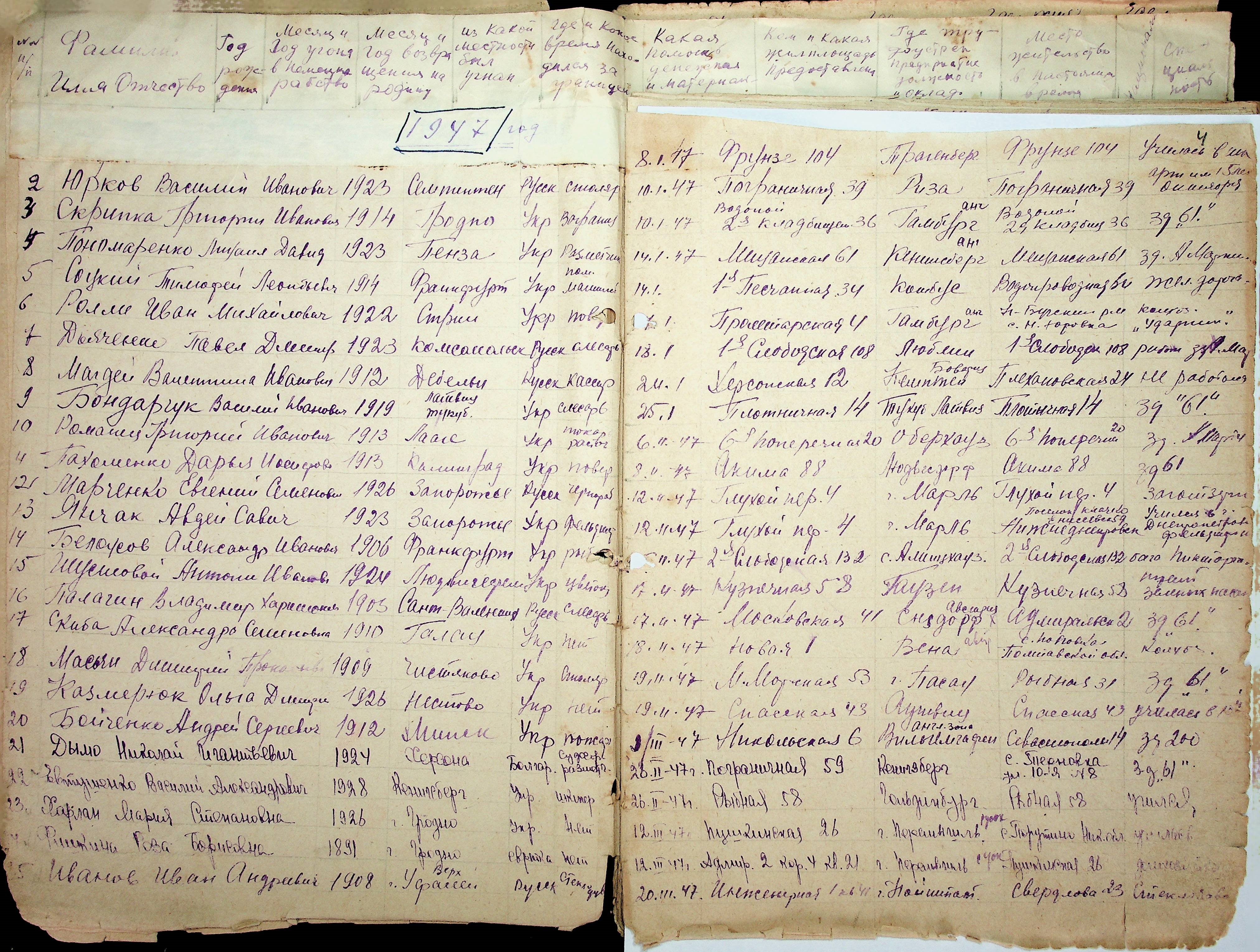 • • • • Справа № 22а “Списки репатрійованих осіб, які прибули з Польщі, Румунії, Німеччини, Чехословаччини та інших країн світу до м. Миколаєва та Миколаївської області протягом 1947-1952 років”