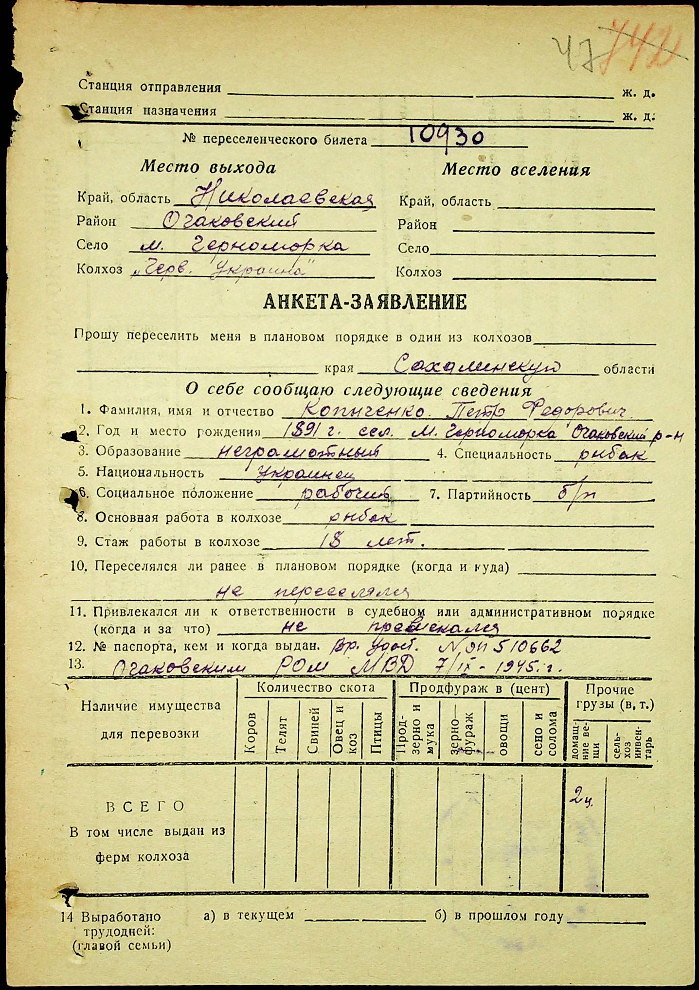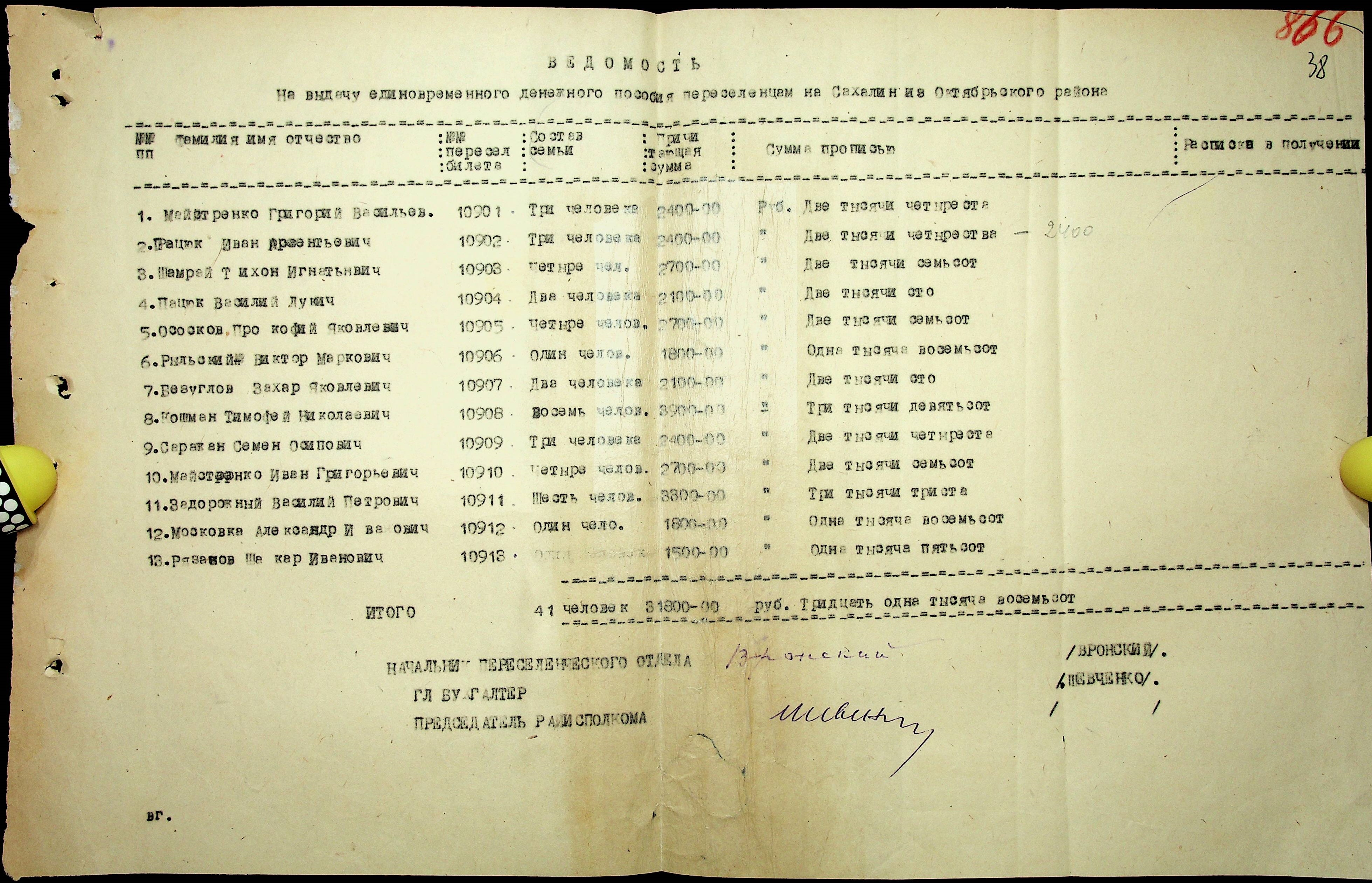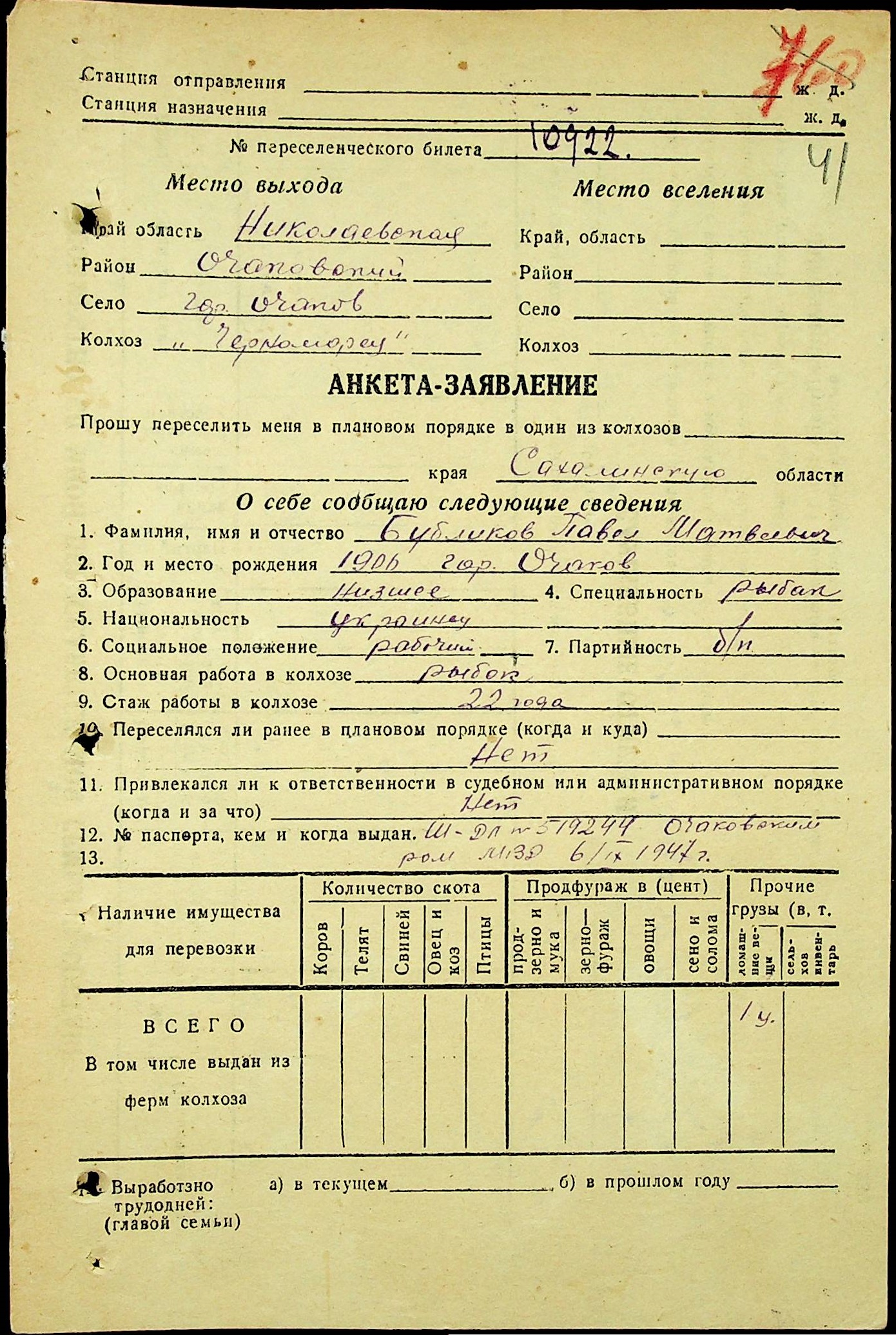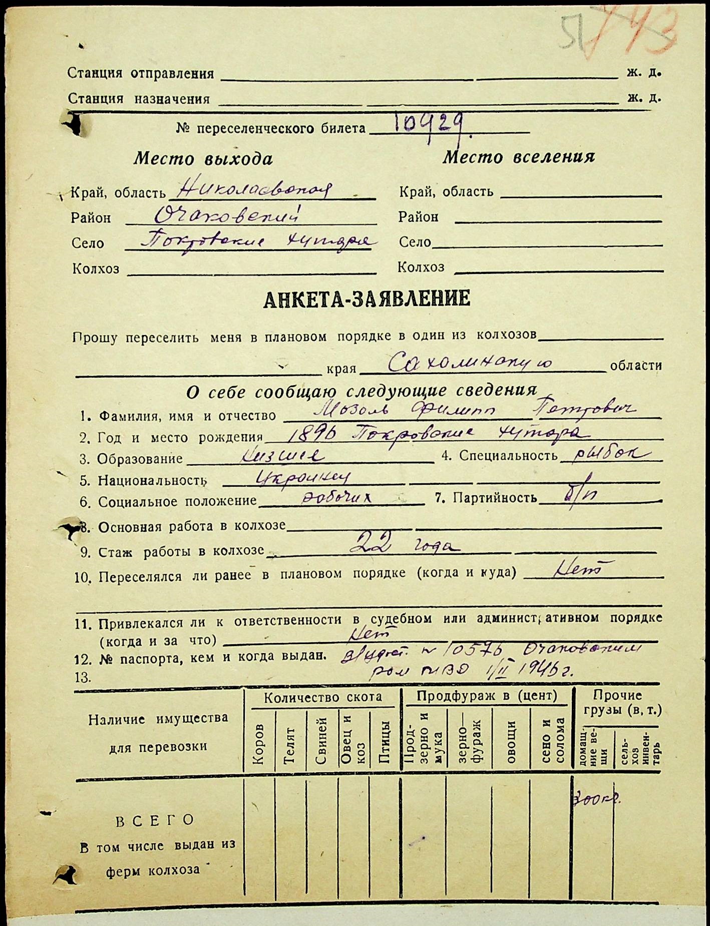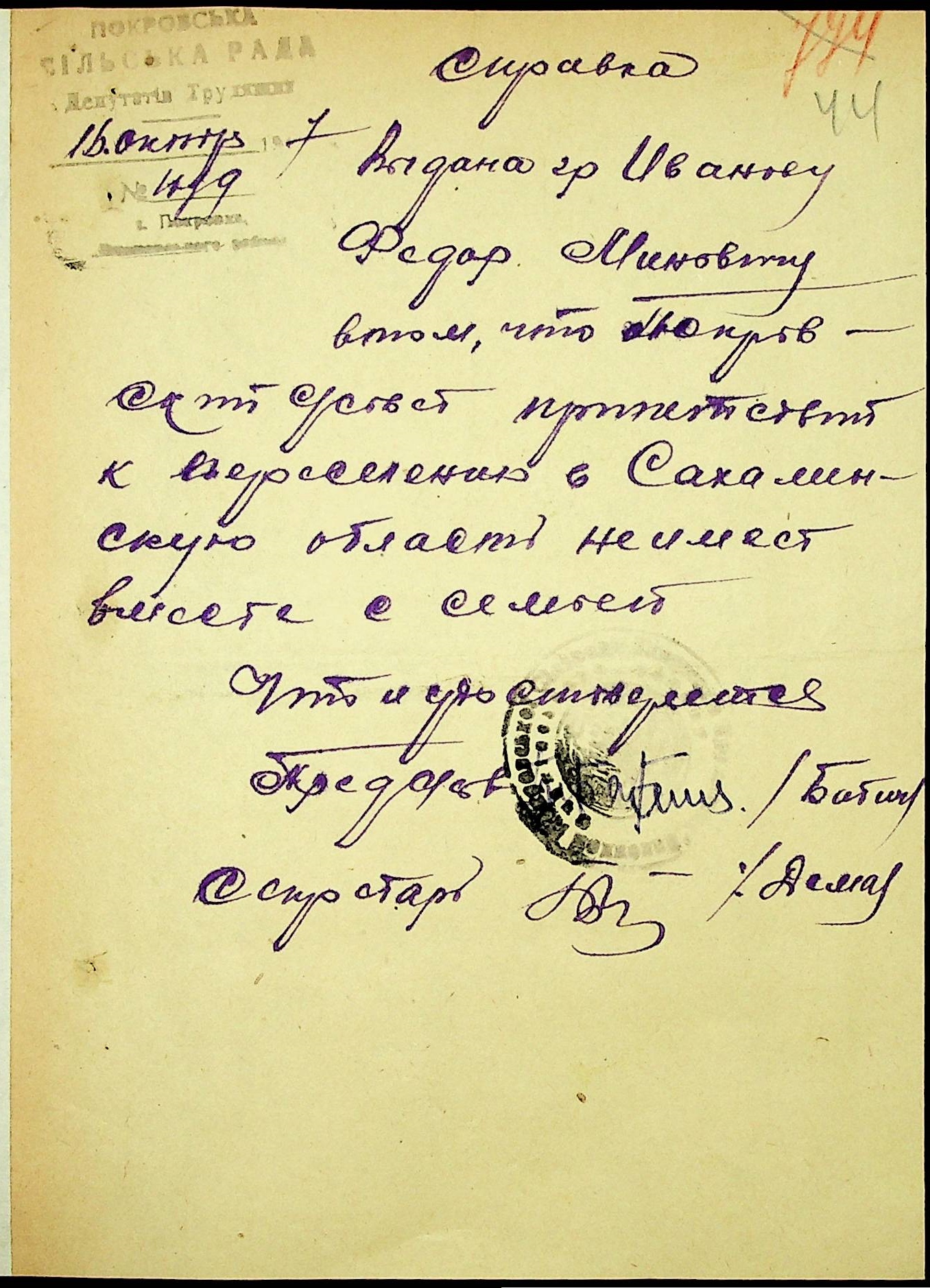 • • • • Справа № 25 “Документи (протокол, списки, описи майна, анкети-заяви, відомості, довідки) про відбір осіб для планового, добровільного переселення до Сахалінської області, надання їм одноразової допомоги та проведення медичного обстеження”