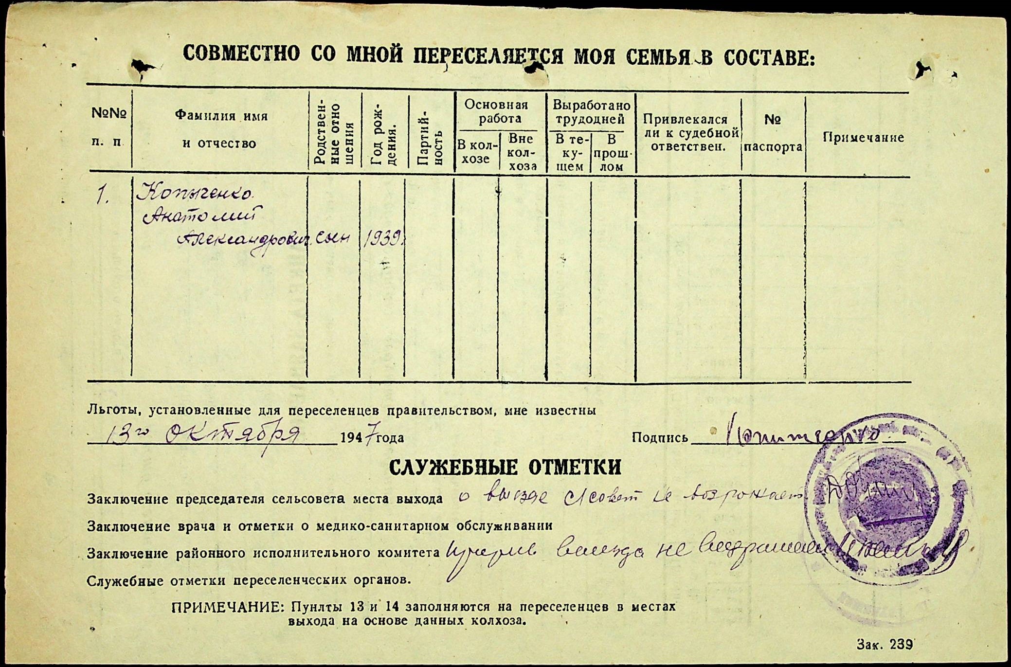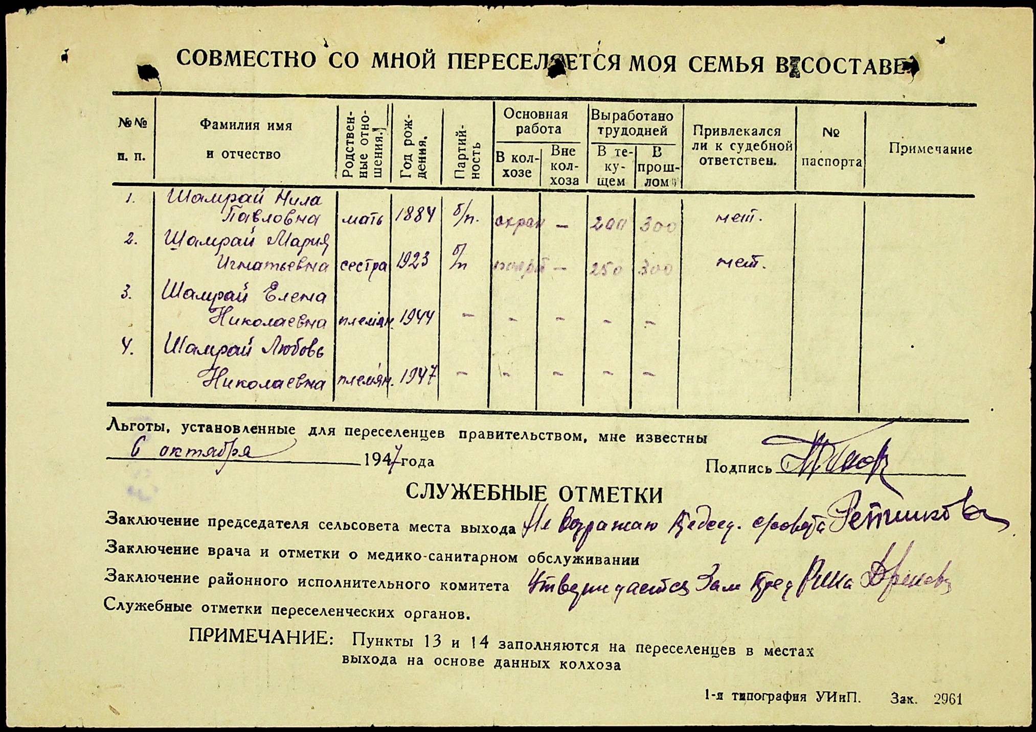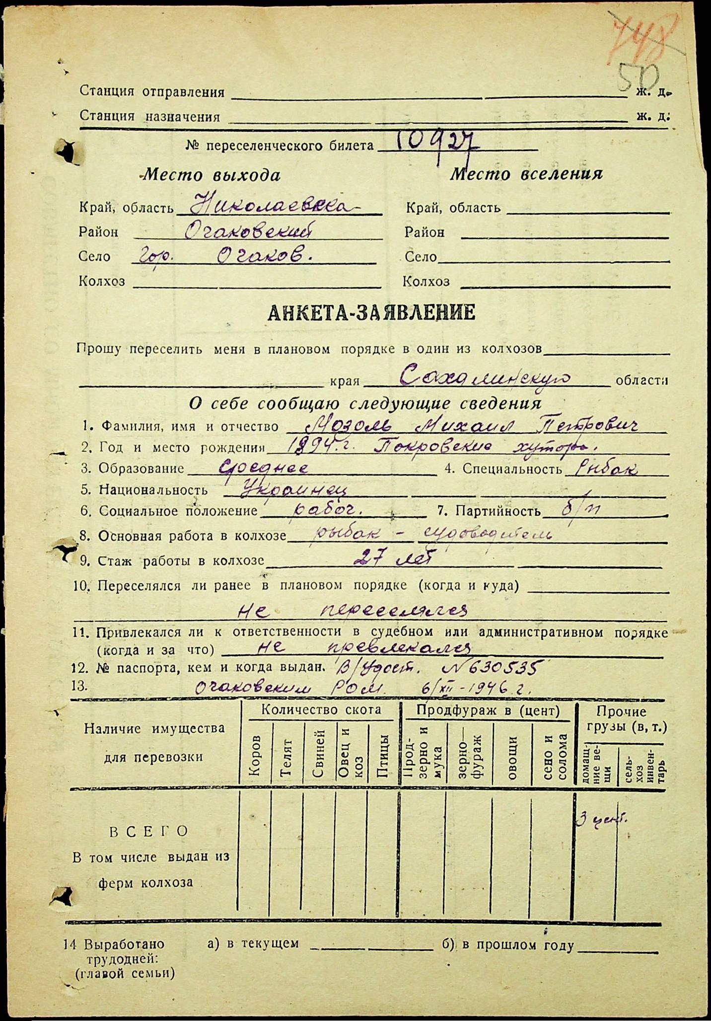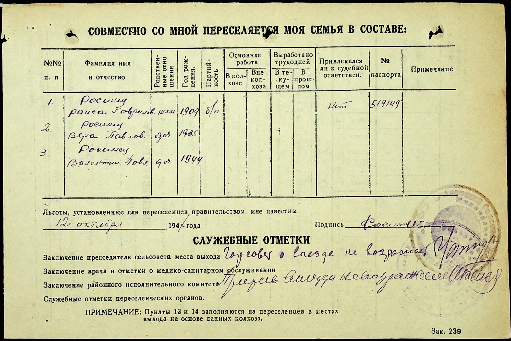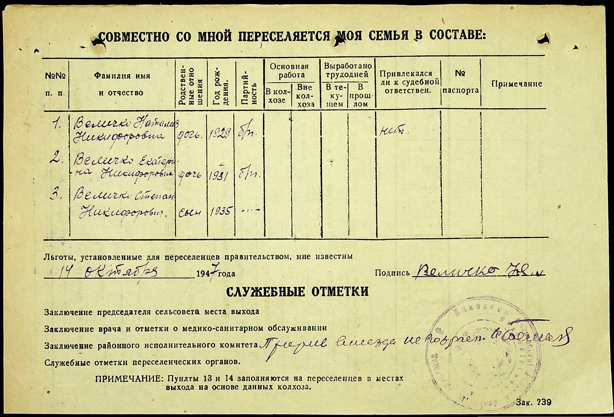 • • • • Справа № 25 “Документи (протокол, списки, описи майна, анкети-заяви, відомості, довідки) про відбір осіб для планового, добровільного переселення до Сахалінської області, надання їм одноразової допомоги та проведення медичного обстеження”