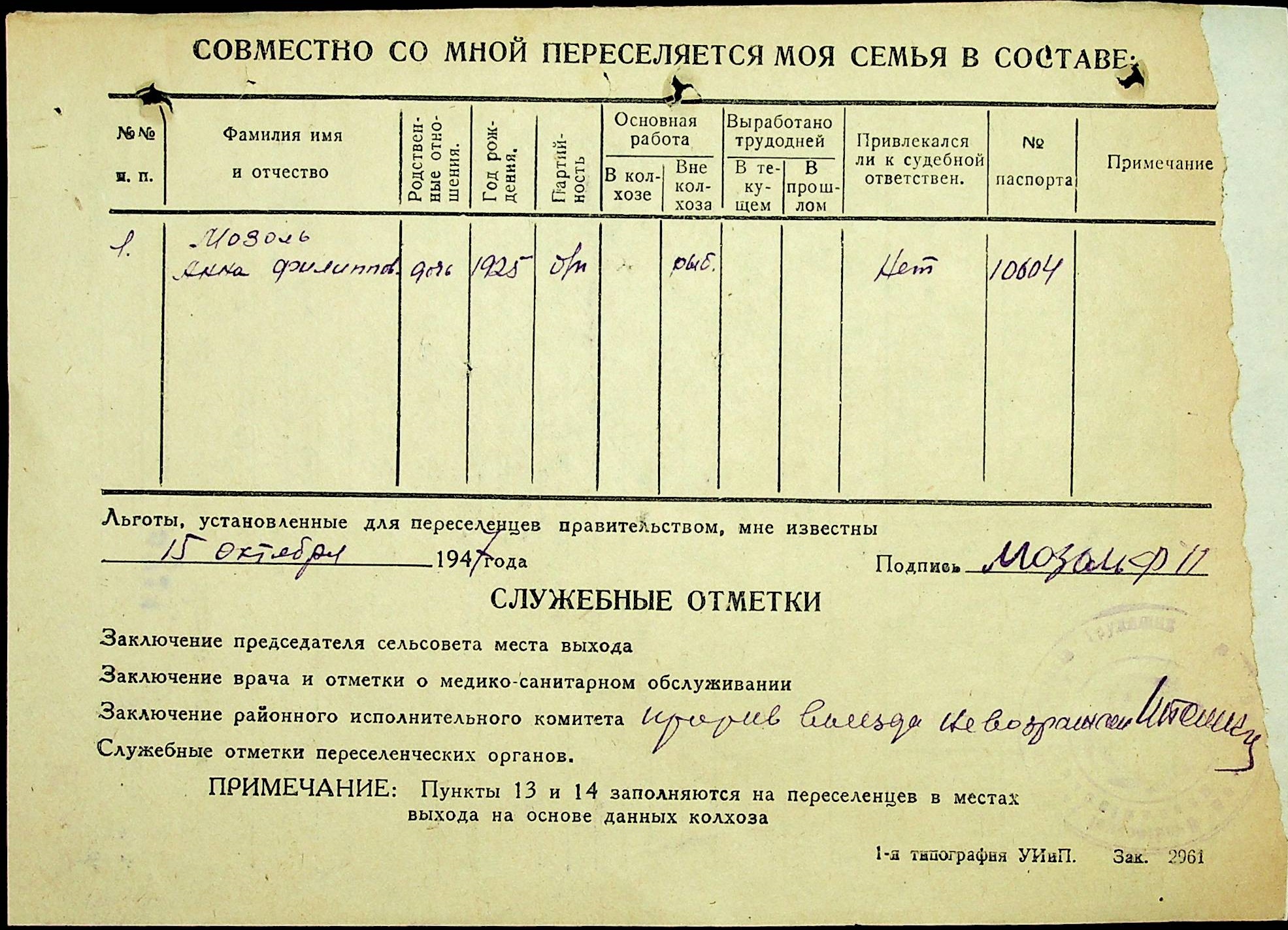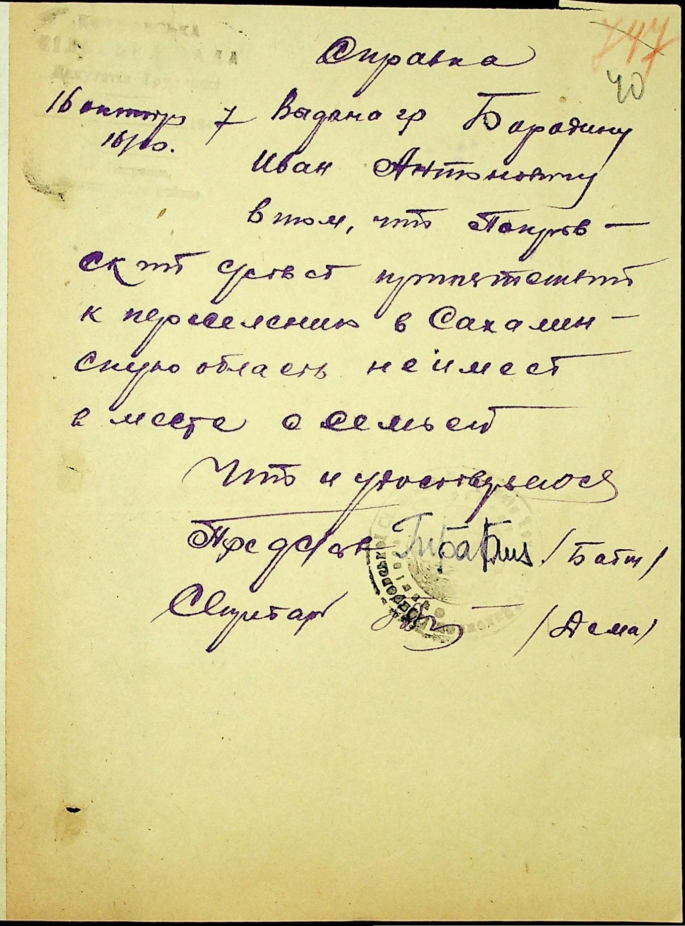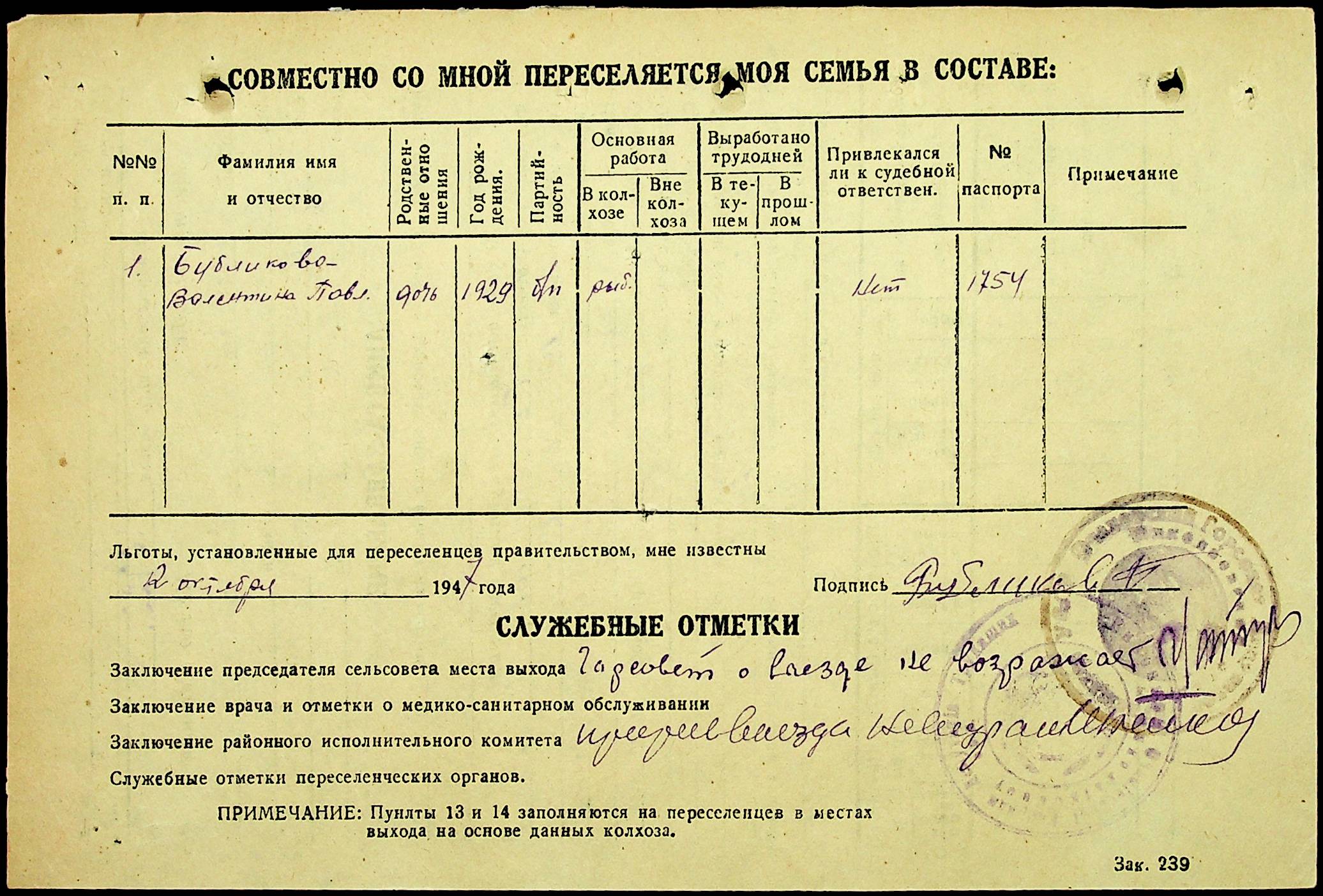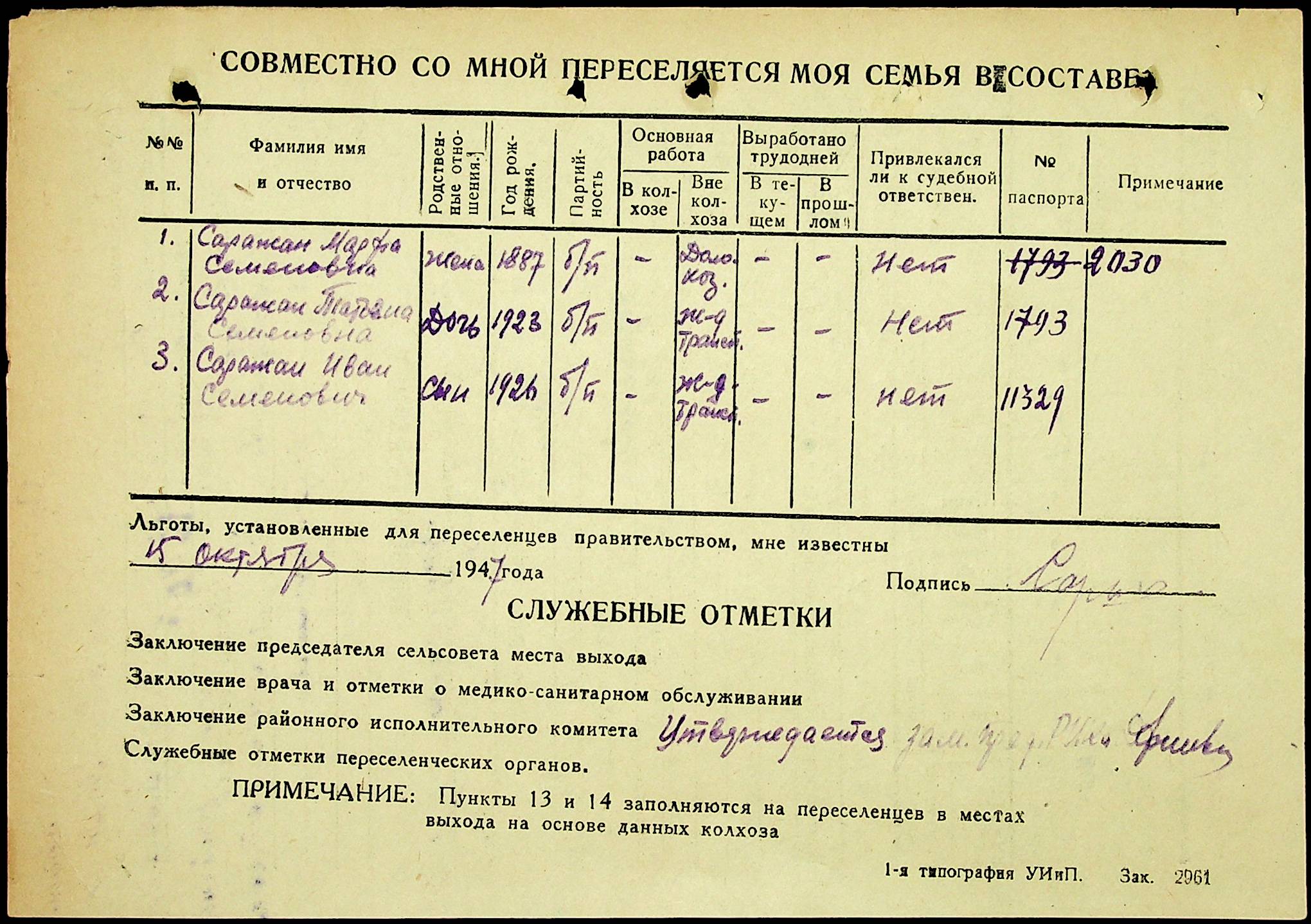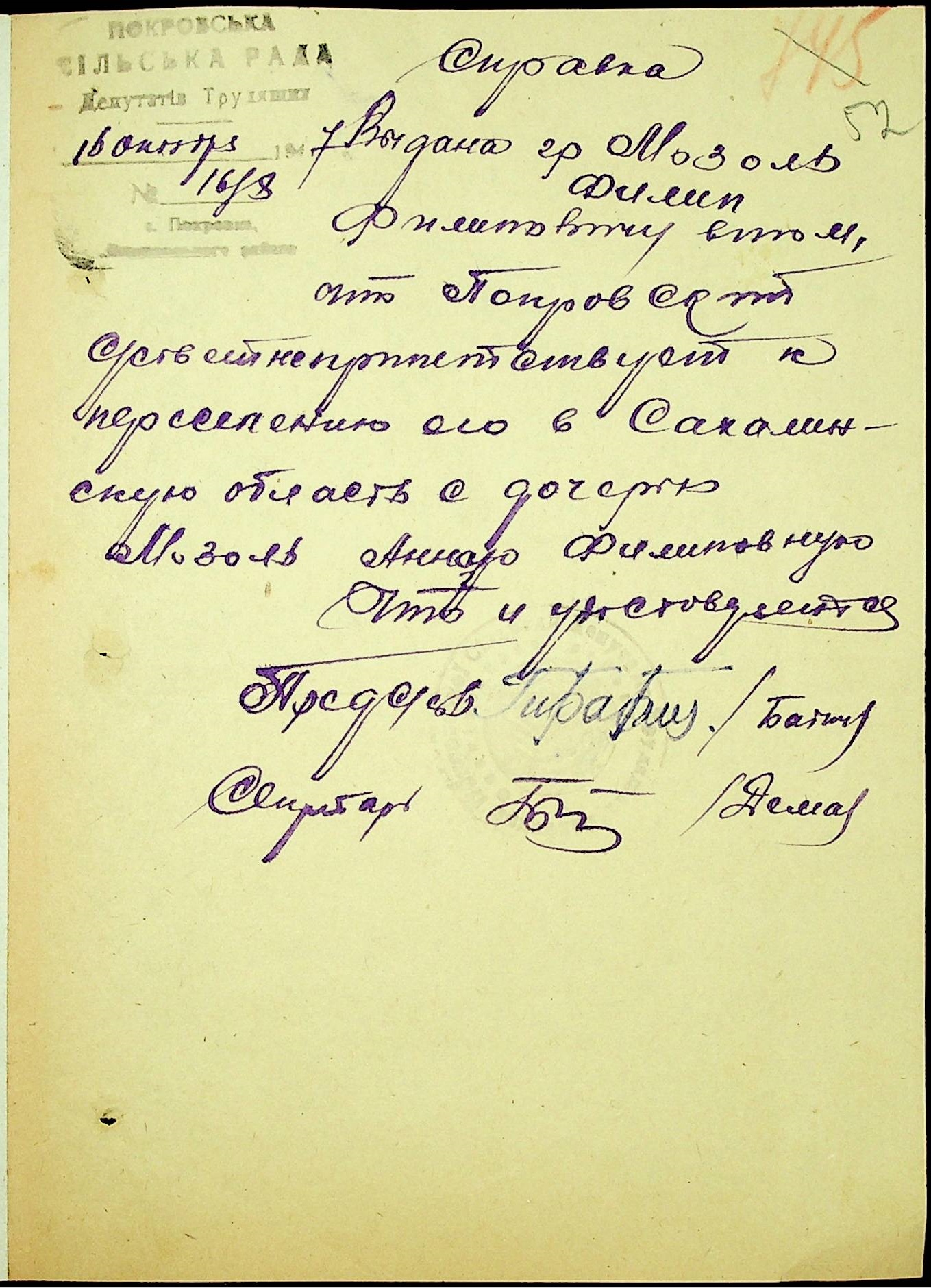 • • • • Справа № 25 “Документи (протокол, списки, описи майна, анкети-заяви, відомості, довідки) про відбір осіб для планового, добровільного переселення до Сахалінської області, надання їм одноразової допомоги та проведення медичного обстеження”