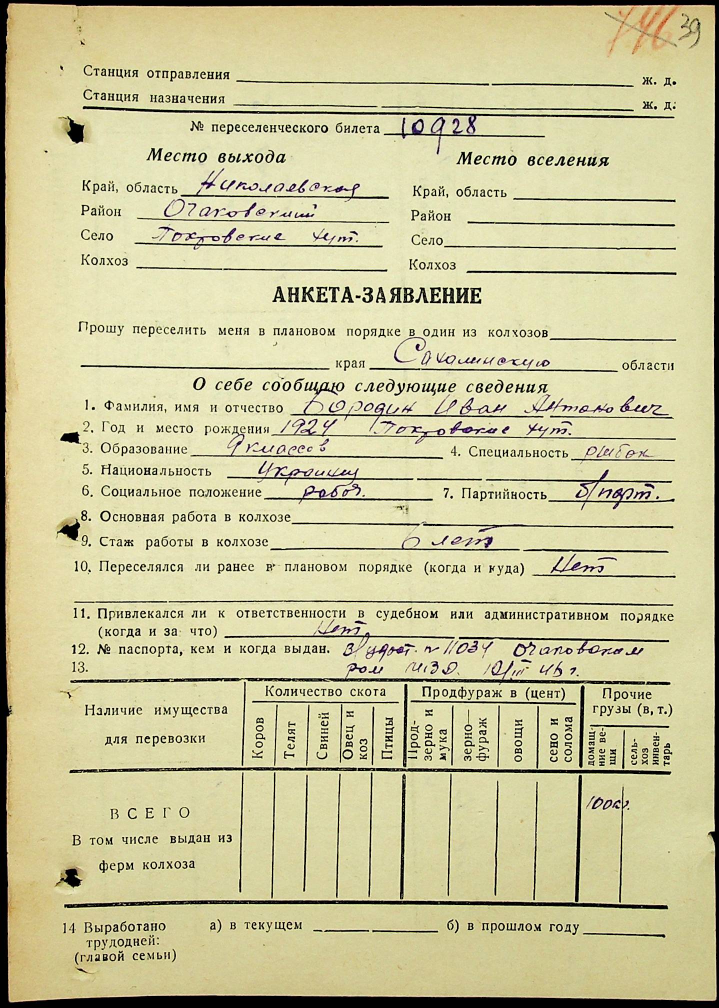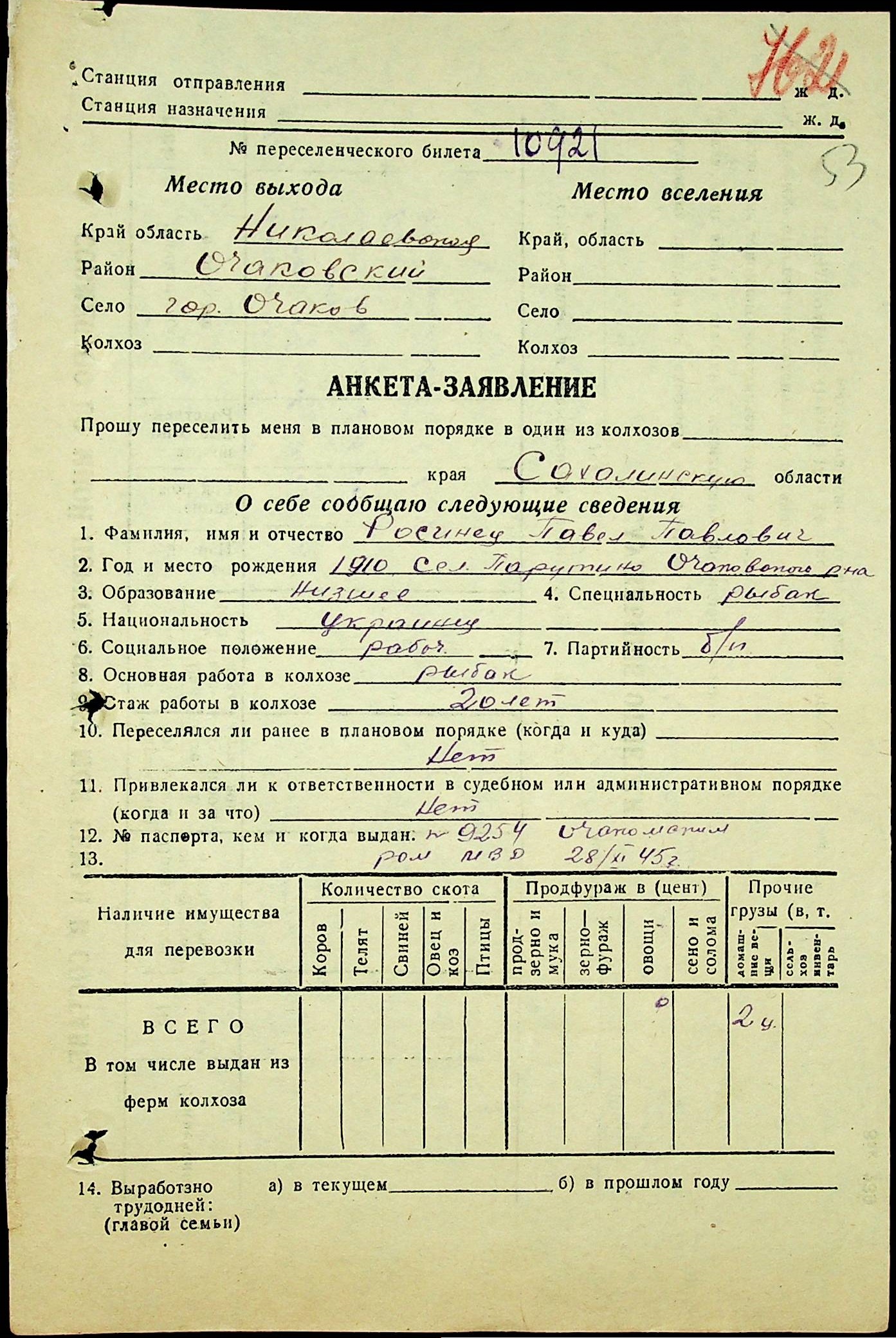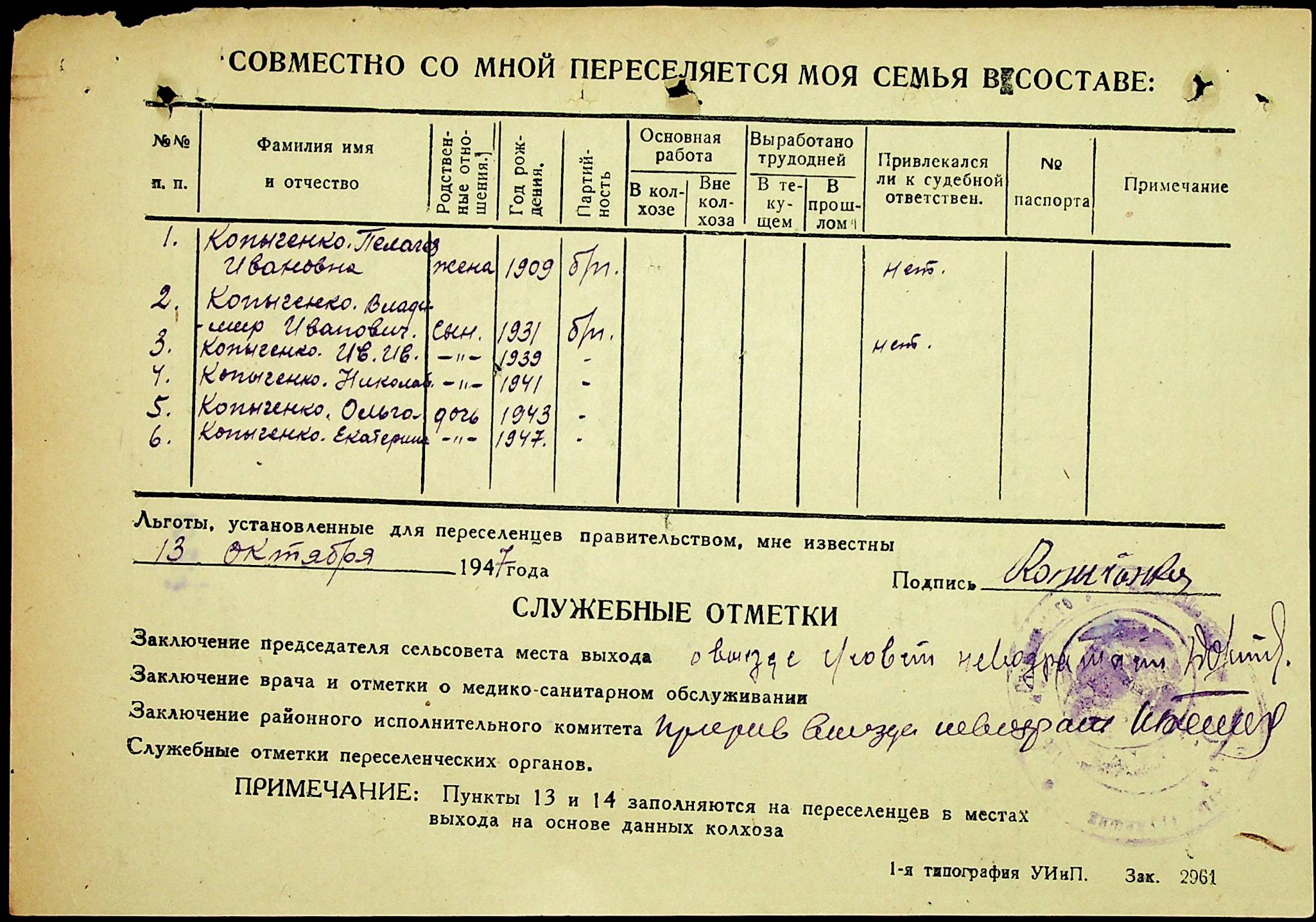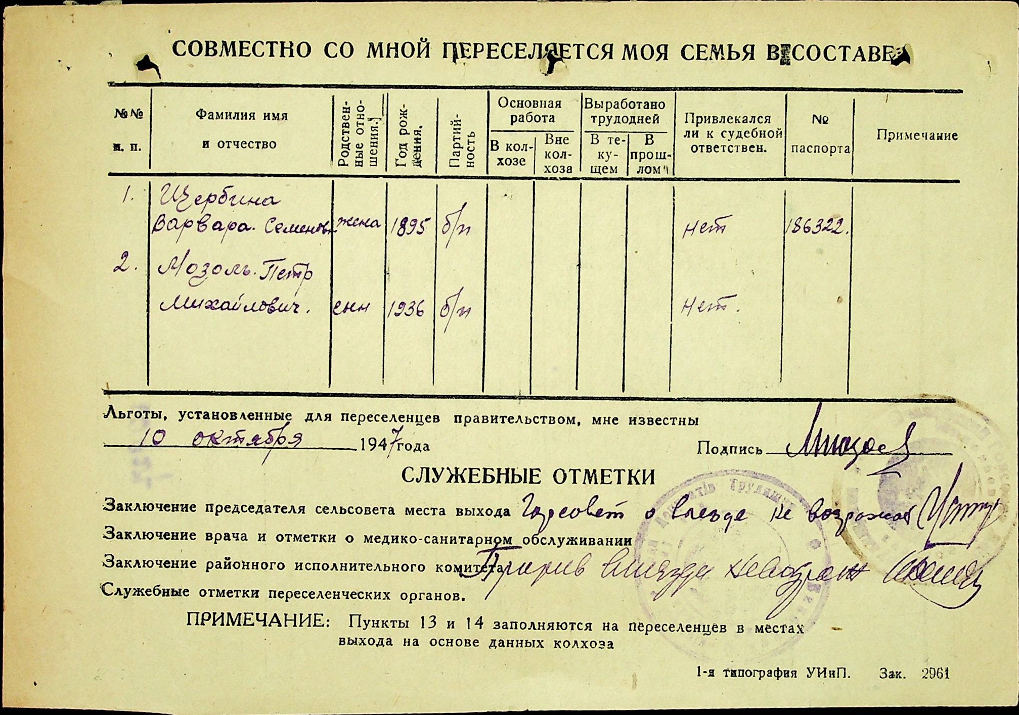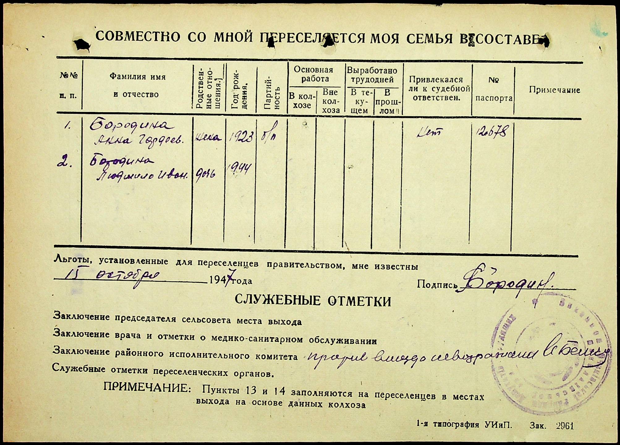 • • • • Справа № 25 “Документи (протокол, списки, описи майна, анкети-заяви, відомості, довідки) про відбір осіб для планового, добровільного переселення до Сахалінської області, надання їм одноразової допомоги та проведення медичного обстеження”