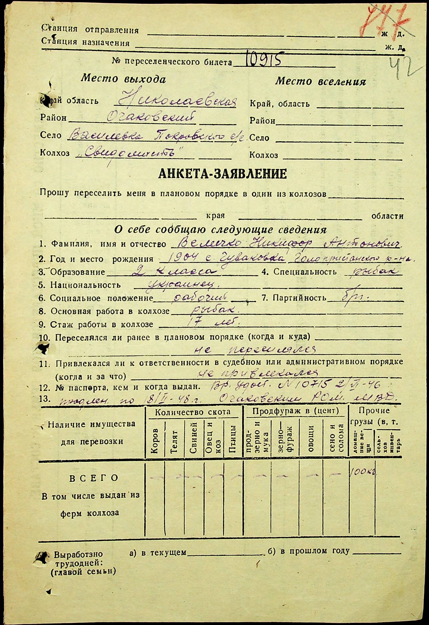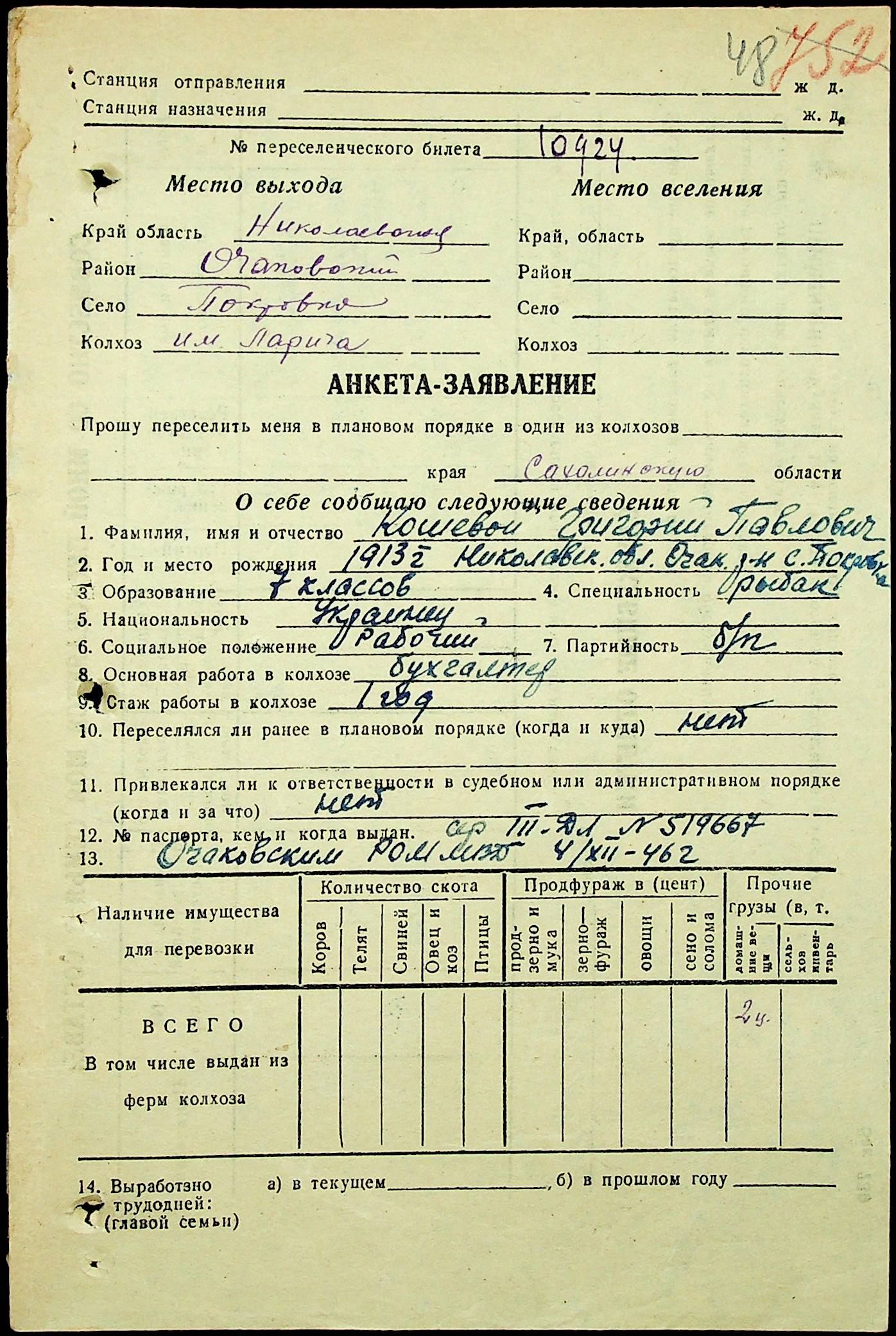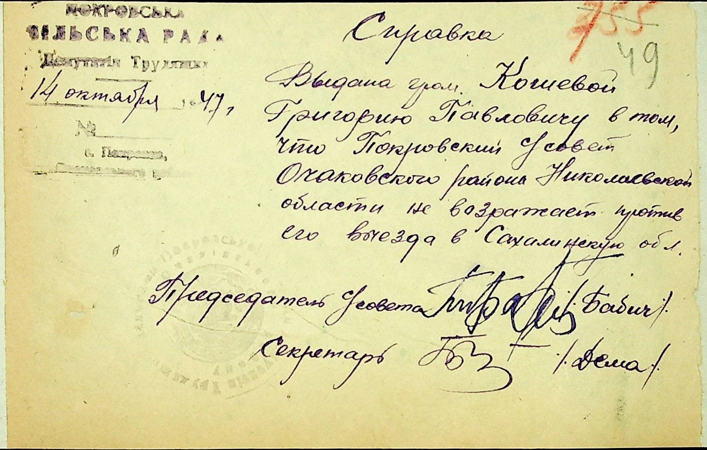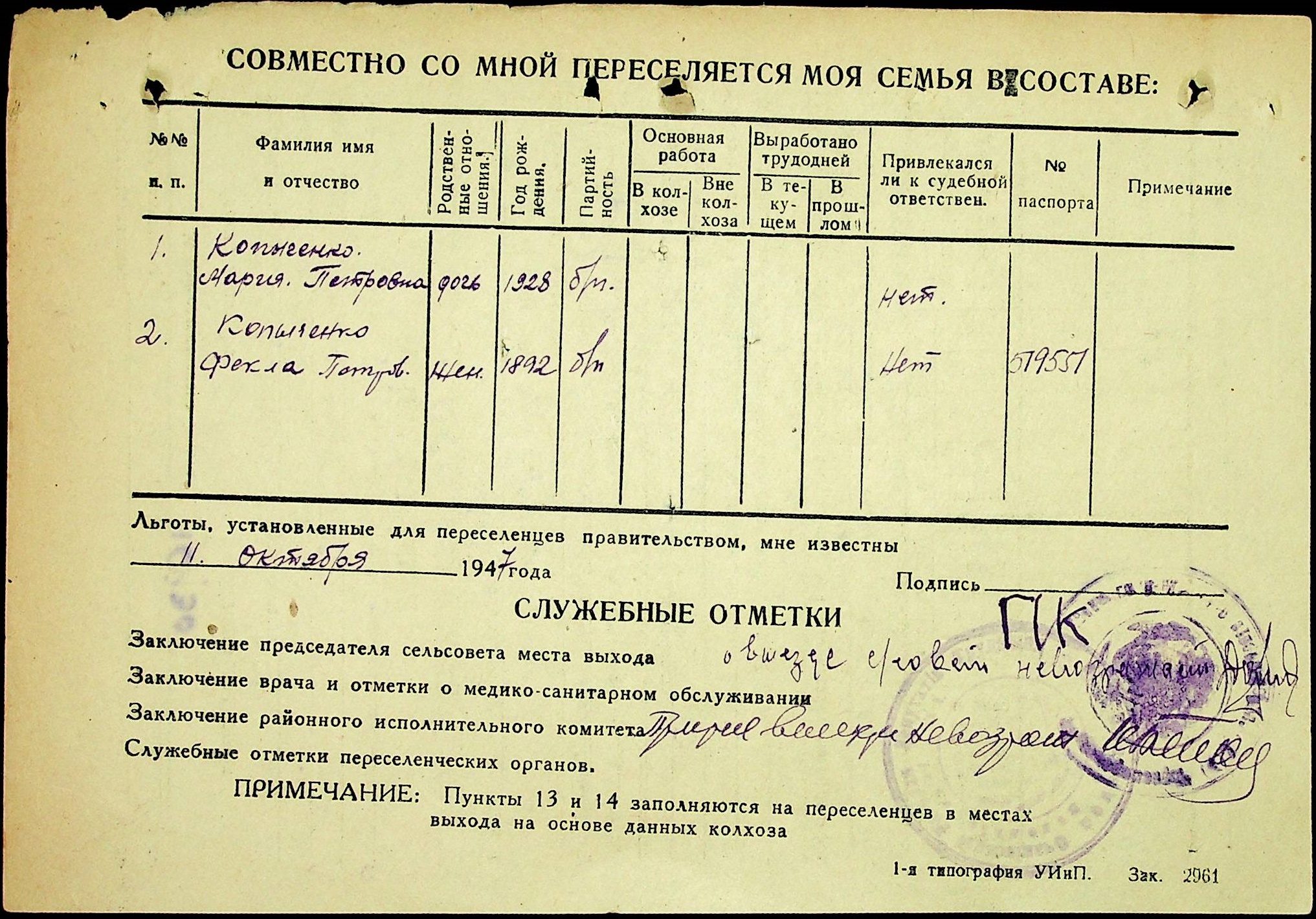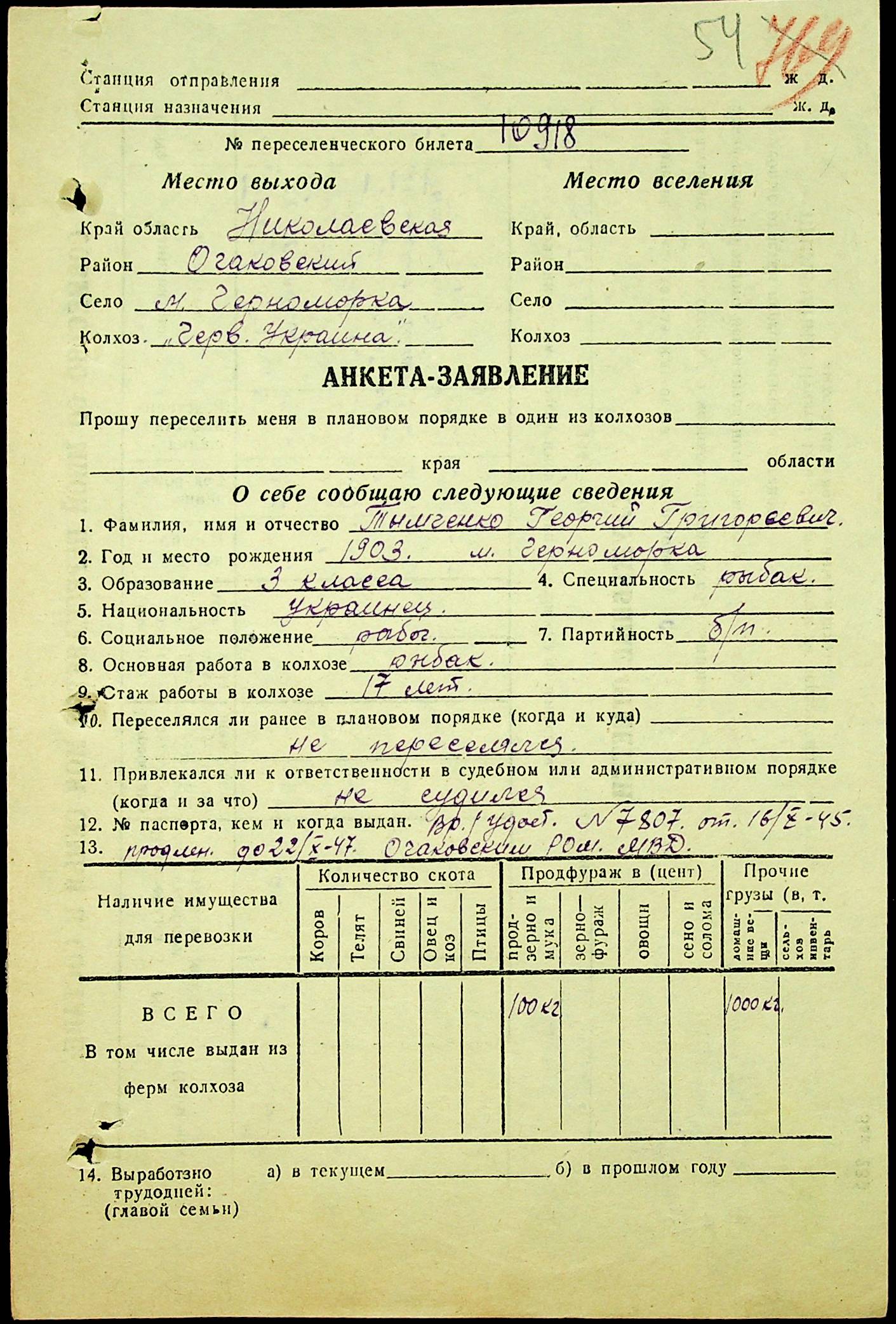 • • • • Справа № 25 “Документи (протокол, списки, описи майна, анкети-заяви, відомості, довідки) про відбір осіб для планового, добровільного переселення до Сахалінської області, надання їм одноразової допомоги та проведення медичного обстеження”