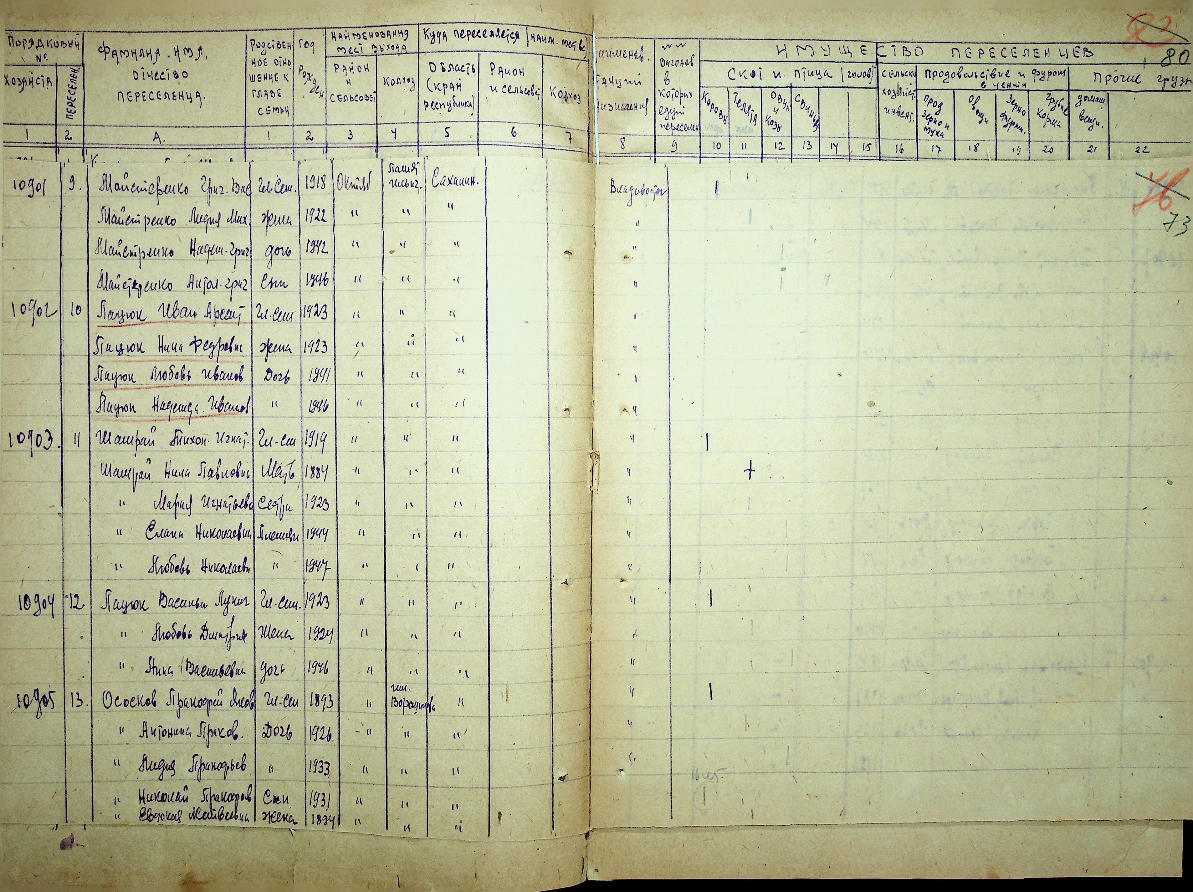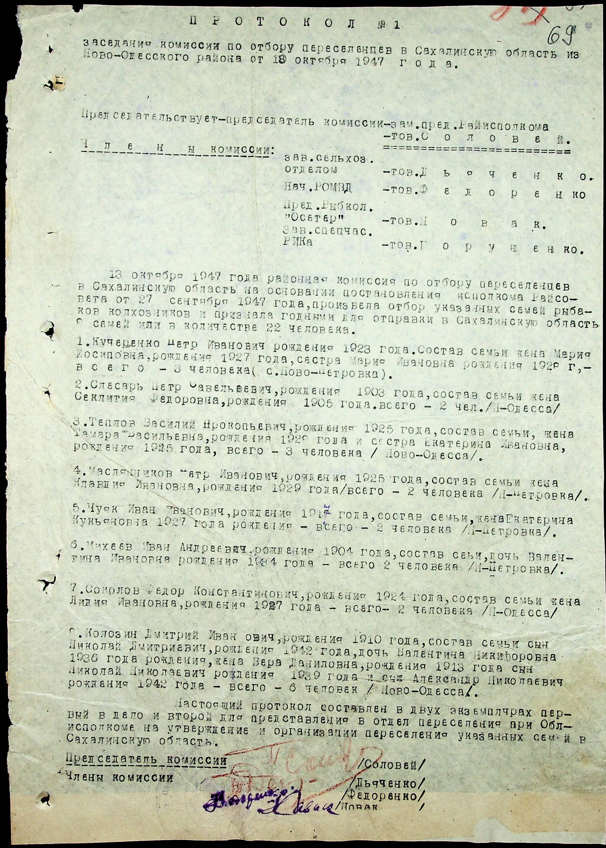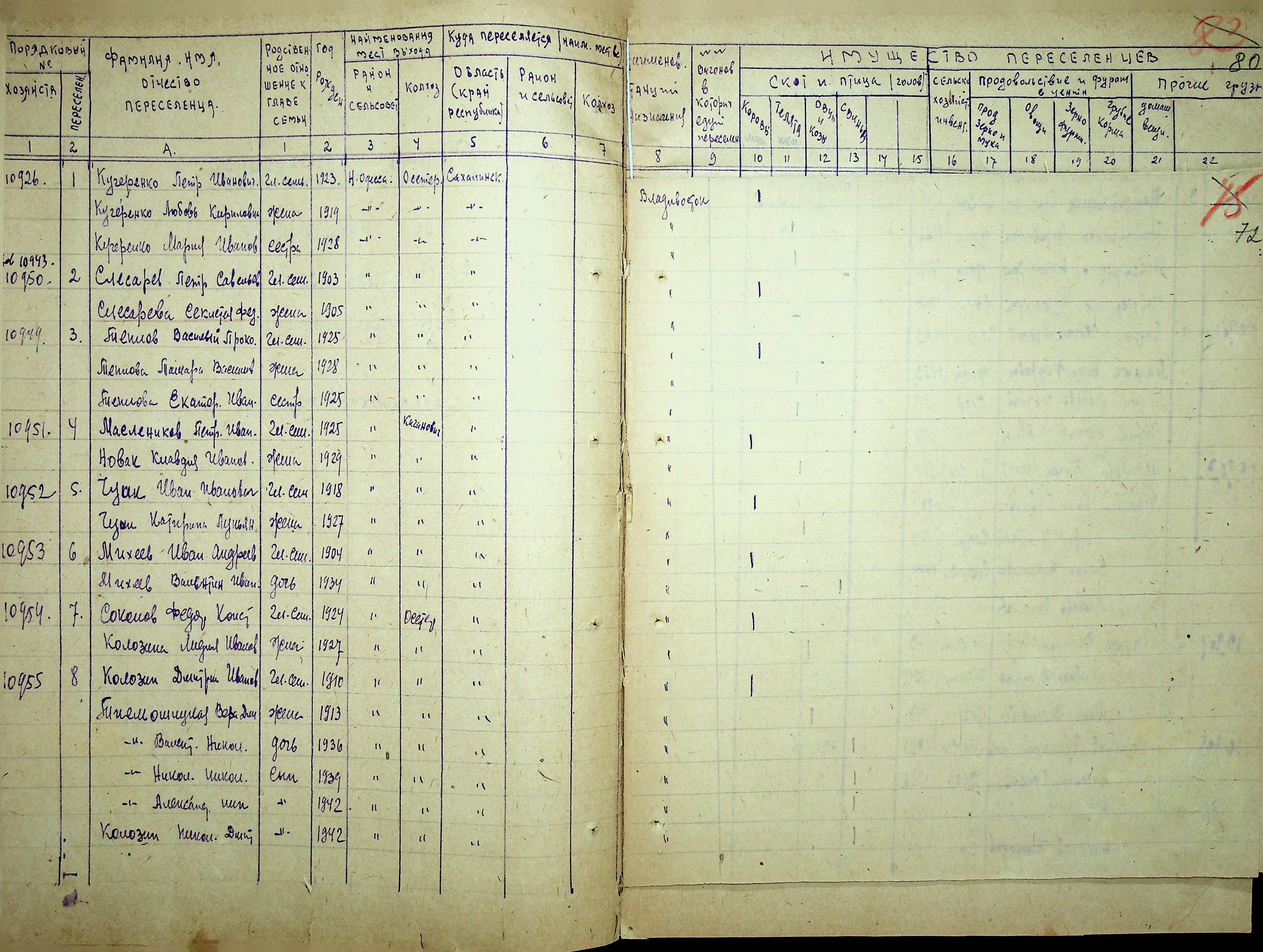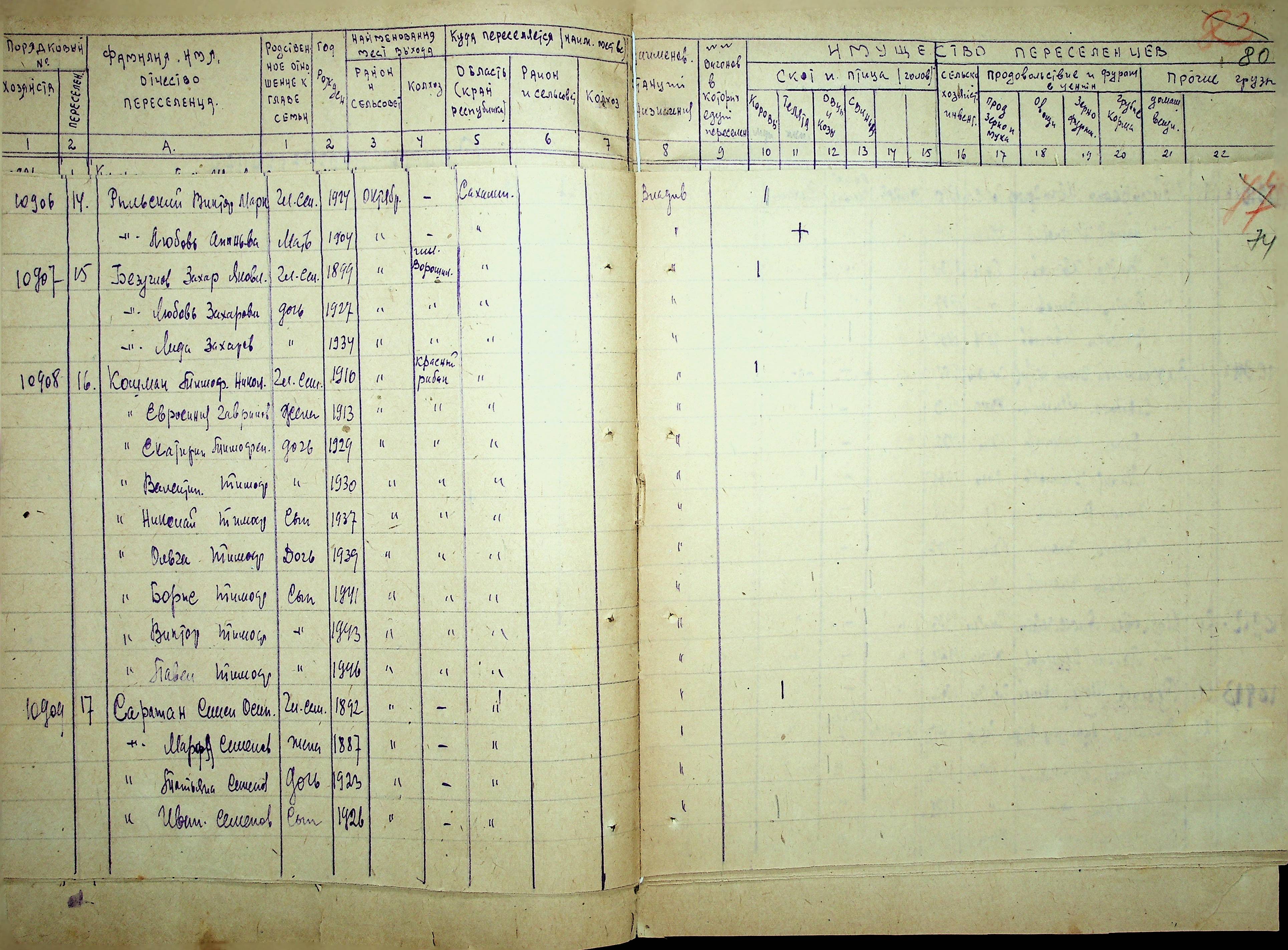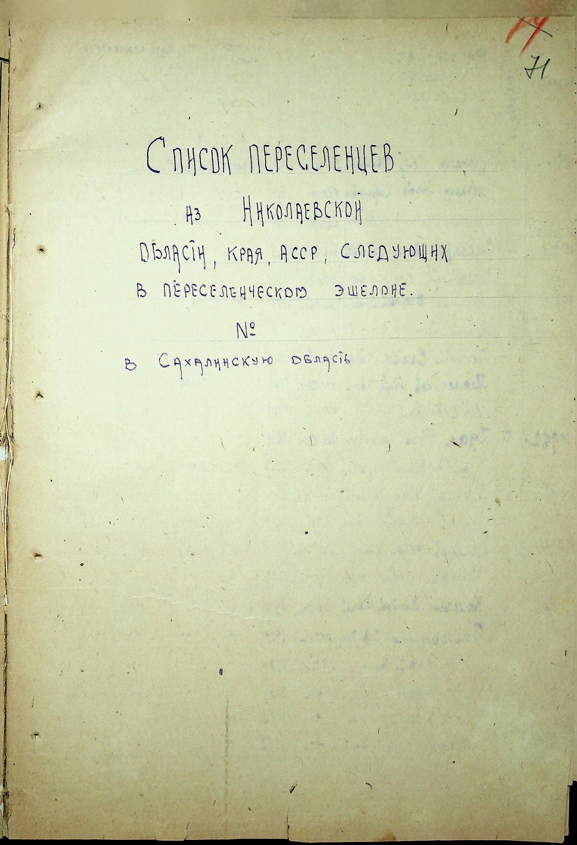 • • • • Справа № 25 “Документи (протокол, списки, описи майна, анкети-заяви, відомості, довідки) про відбір осіб для планового, добровільного переселення до Сахалінської області, надання їм одноразової допомоги та проведення медичного обстеження”