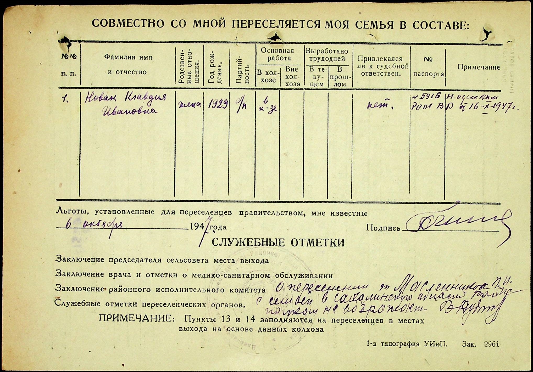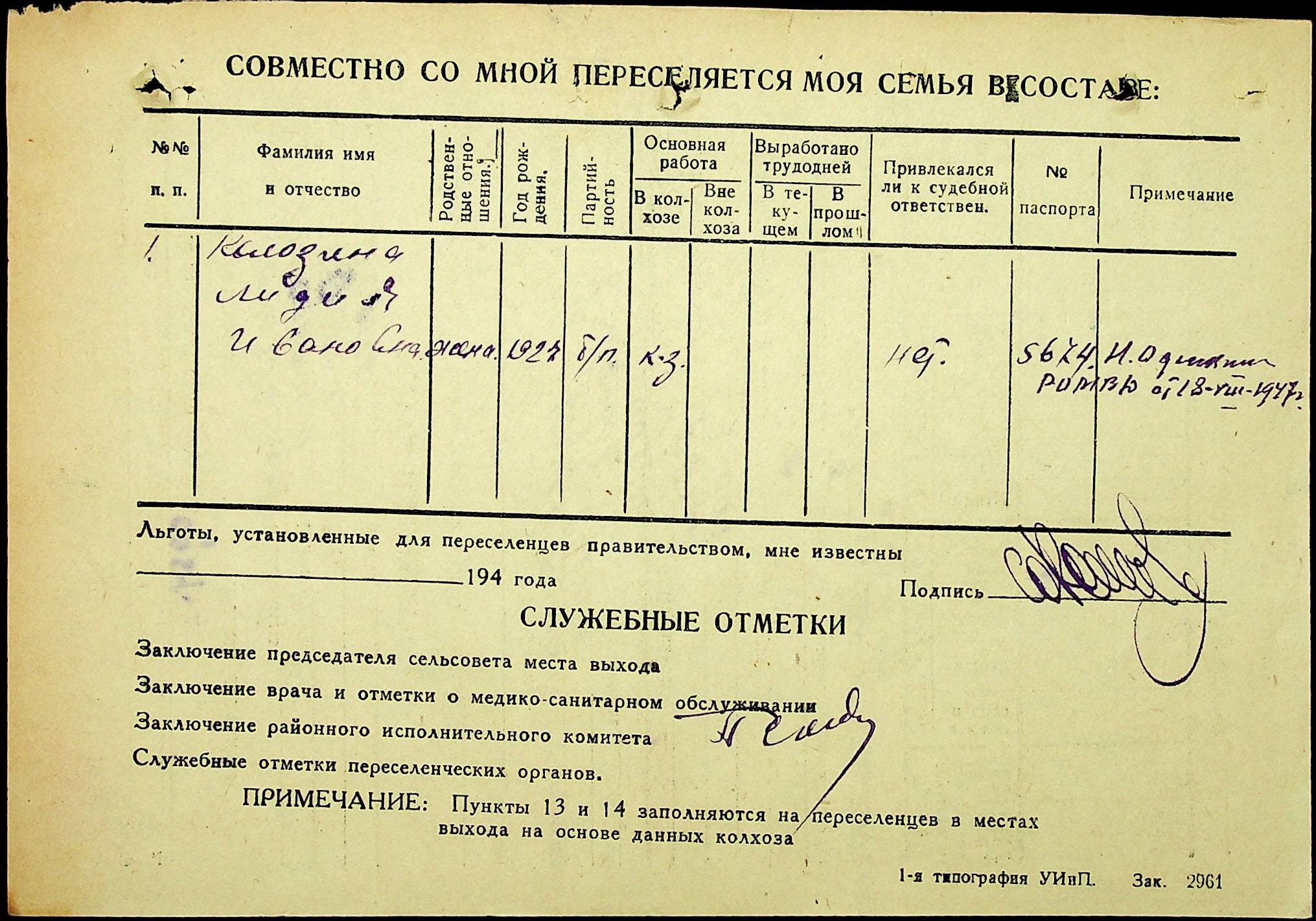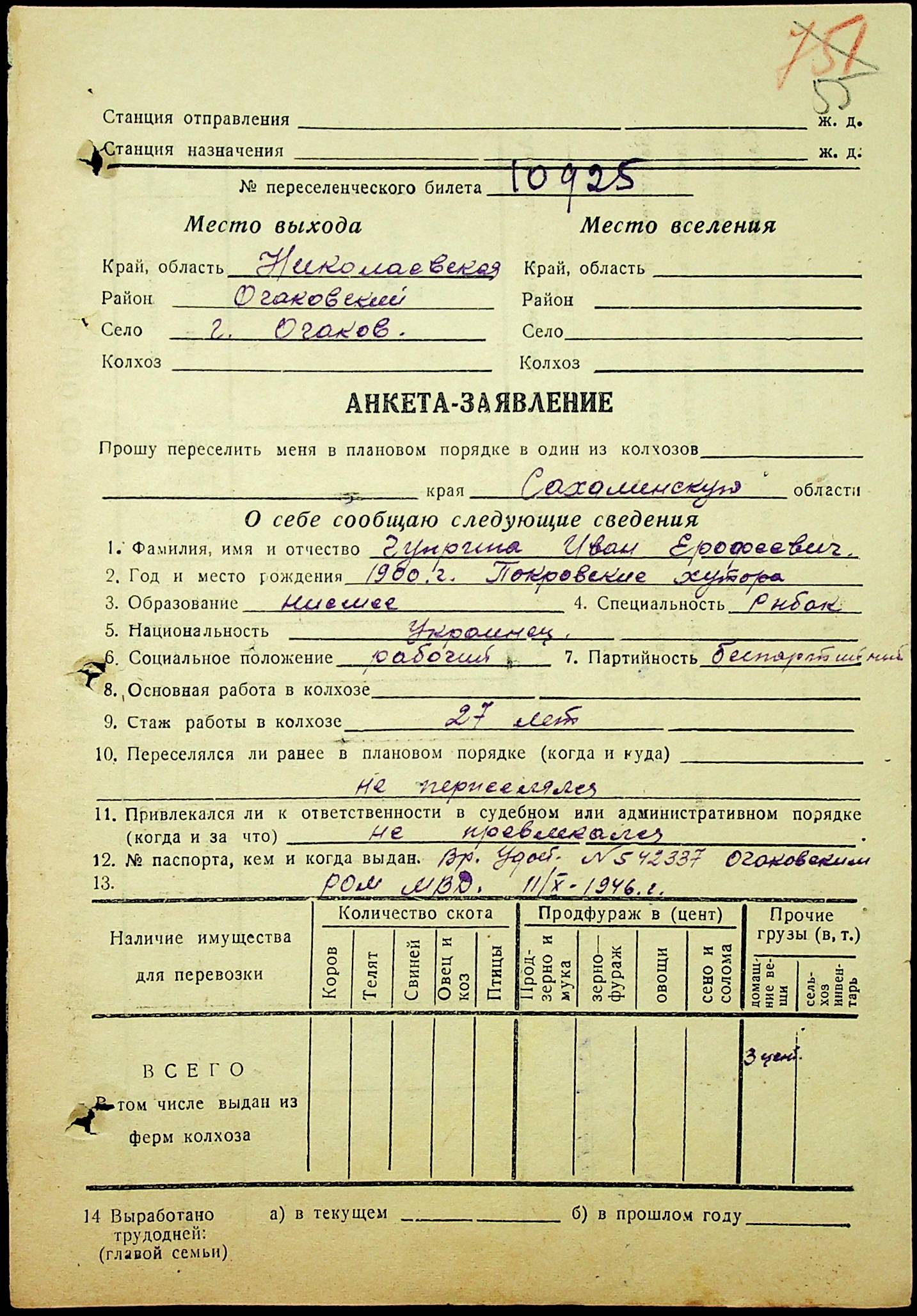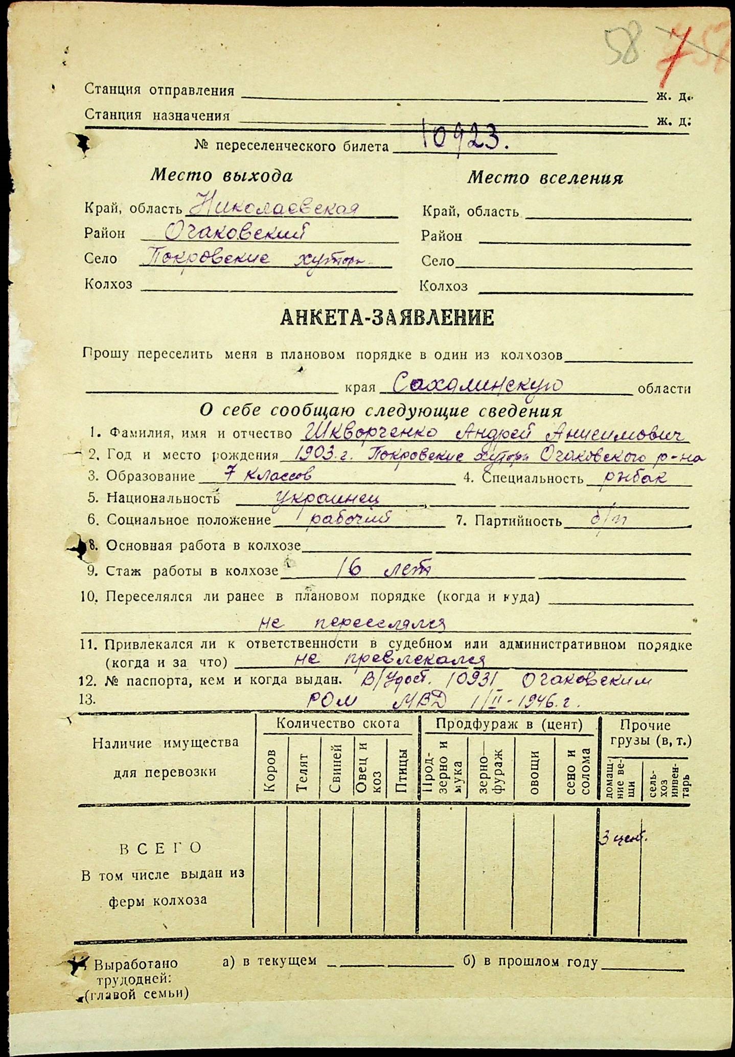 • • • • Справа № 25 “Документи (протокол, списки, описи майна, анкети-заяви, відомості, довідки) про відбір осіб для планового, добровільного переселення до Сахалінської області, надання їм одноразової допомоги та проведення медичного обстеження”