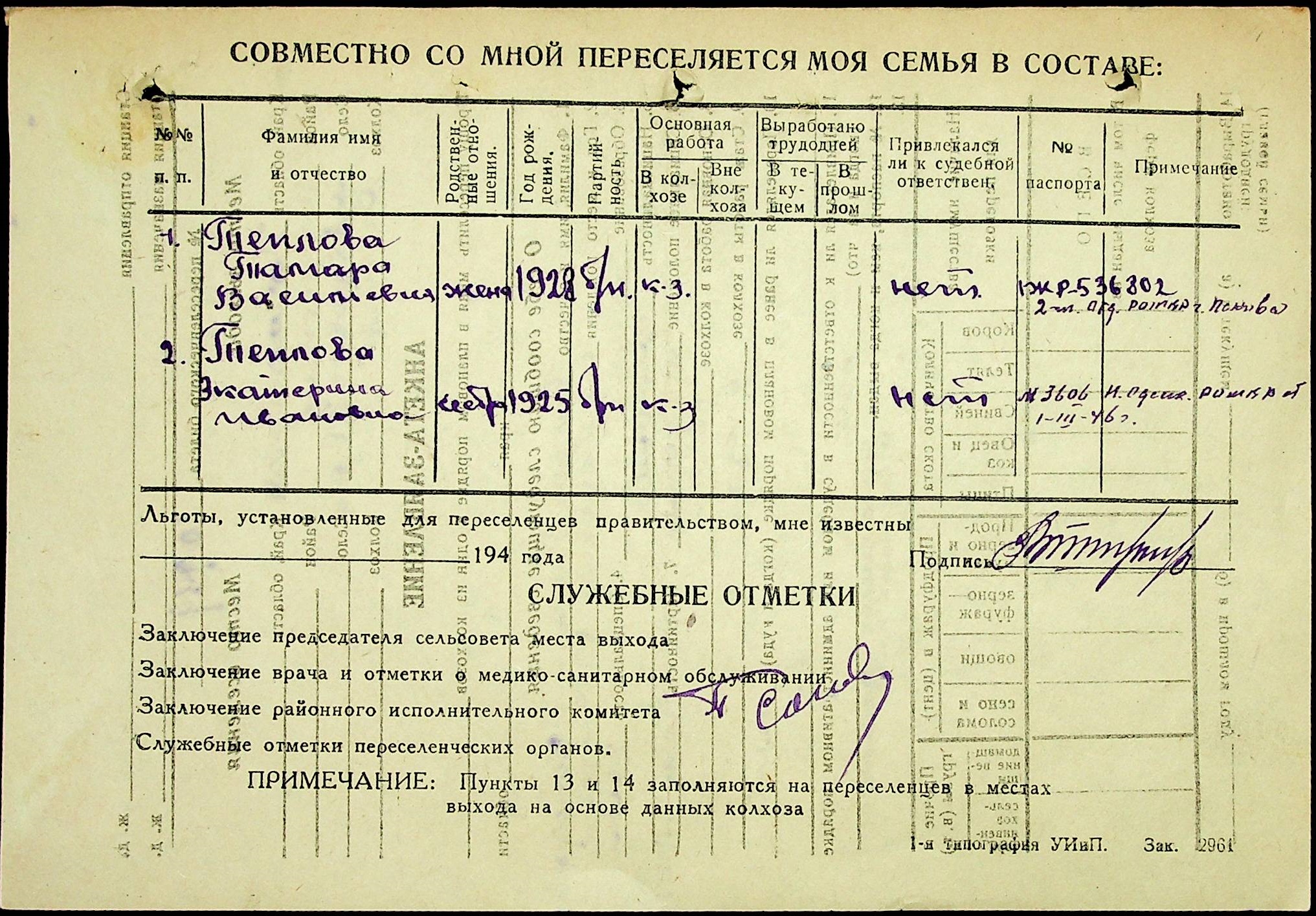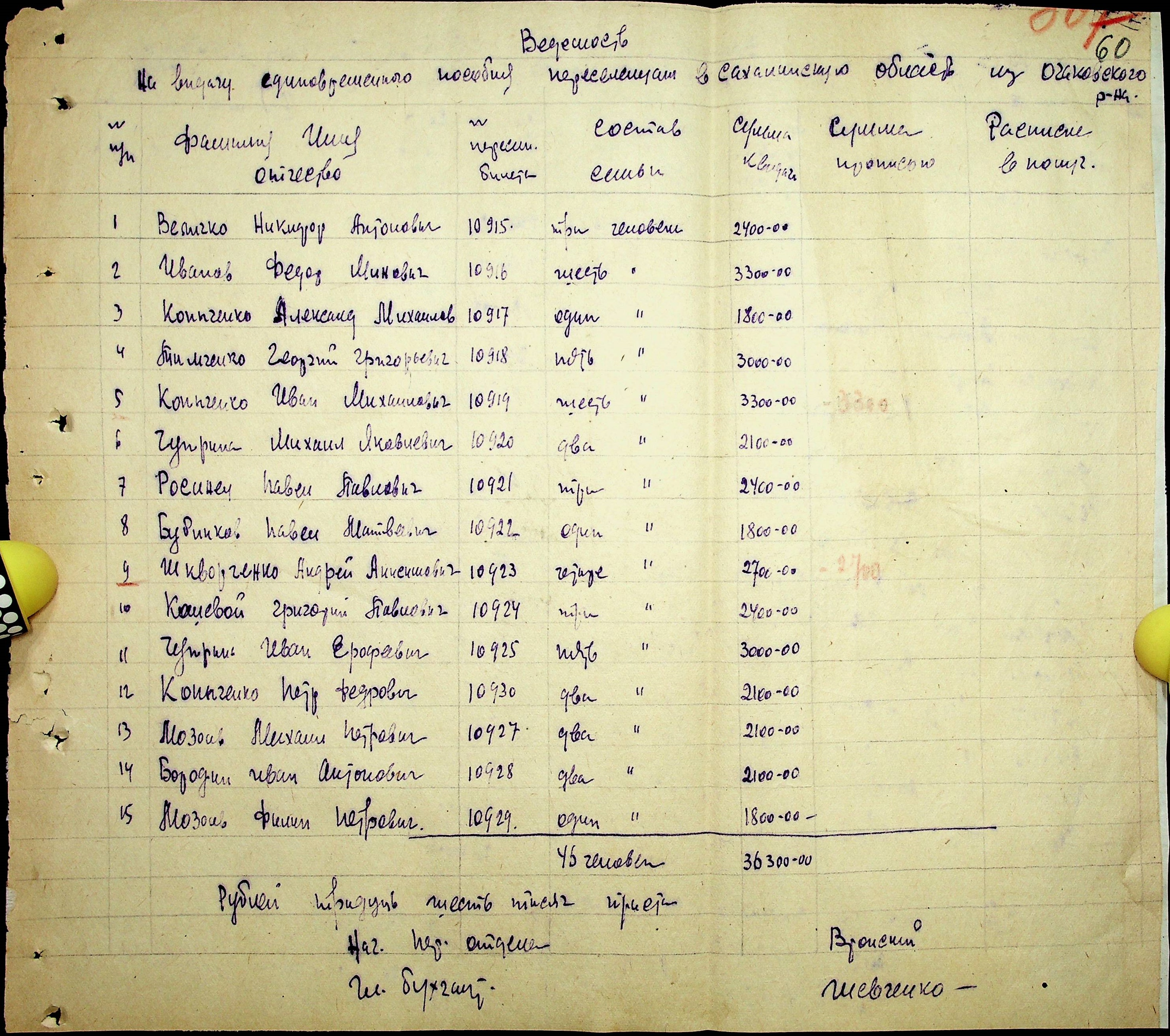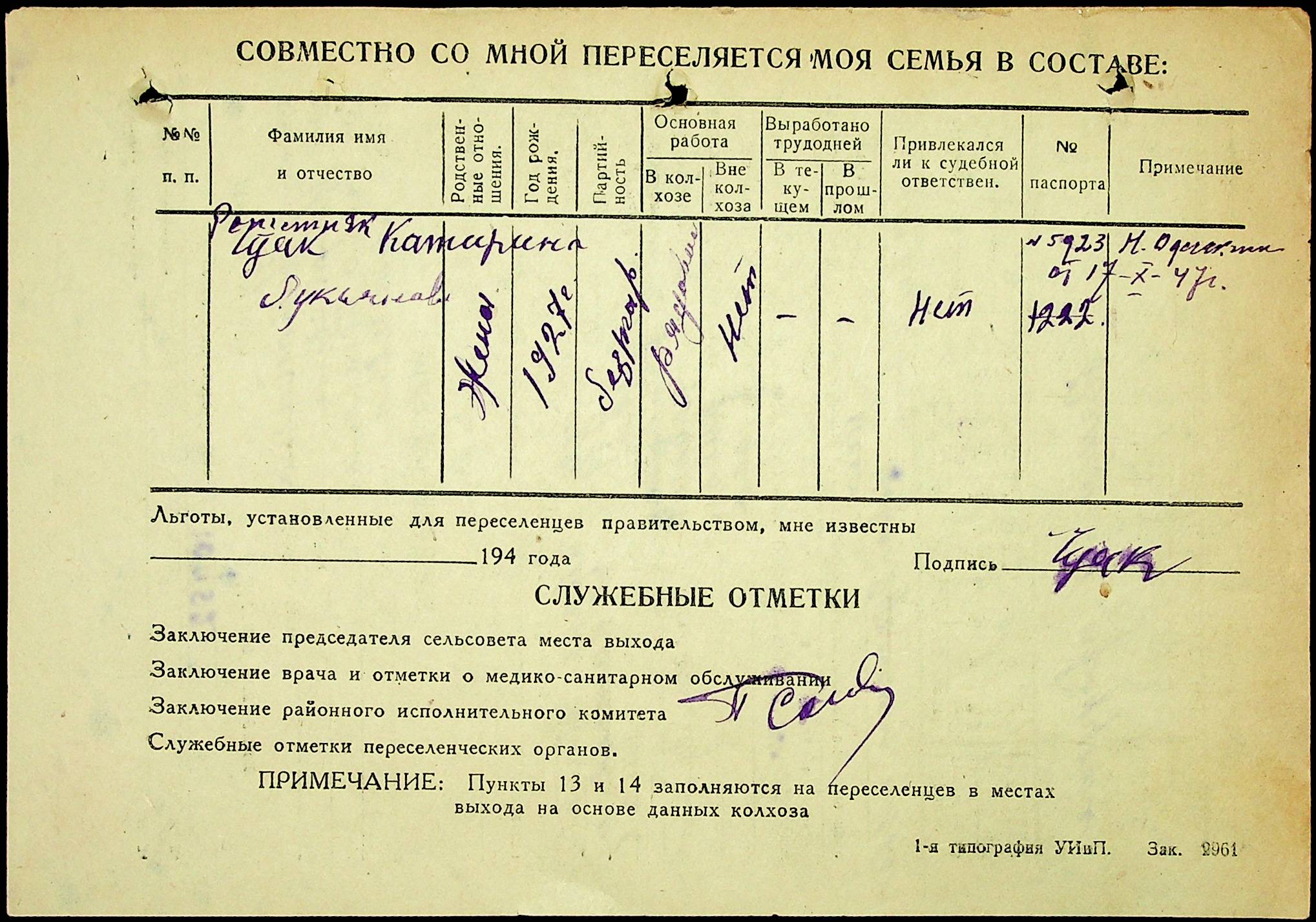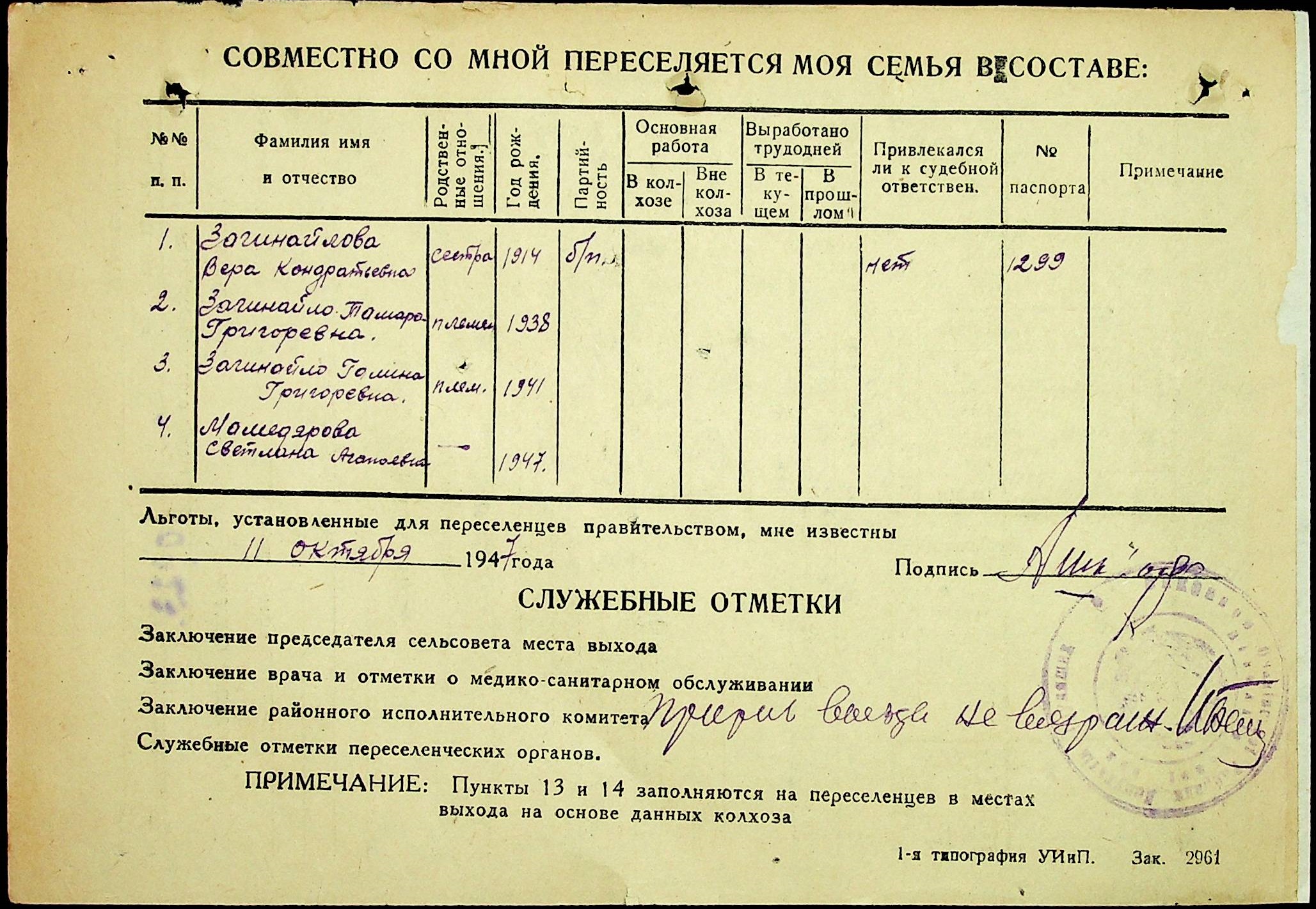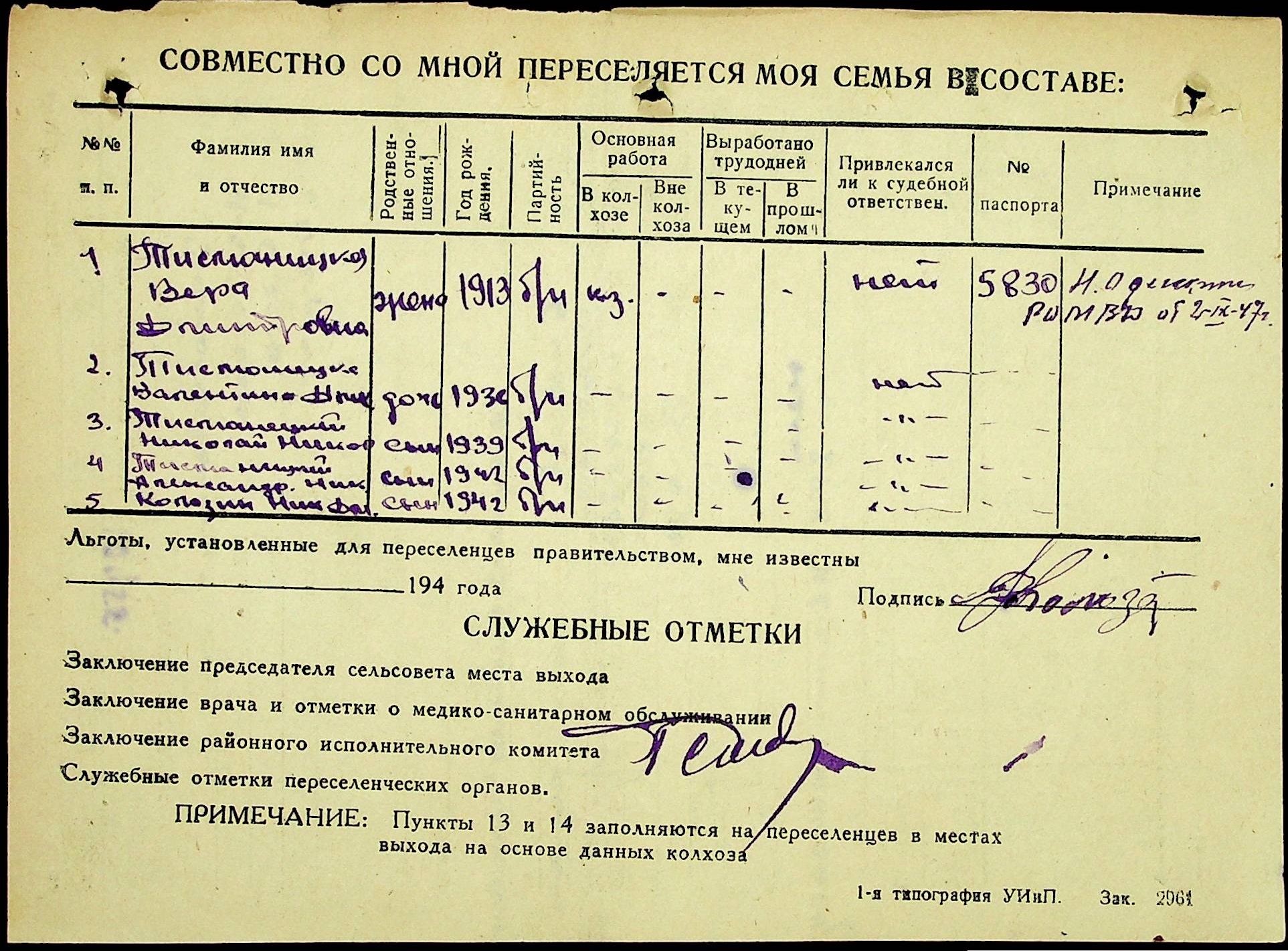 • • • • Справа № 25 “Документи (протокол, списки, описи майна, анкети-заяви, відомості, довідки) про відбір осіб для планового, добровільного переселення до Сахалінської області, надання їм одноразової допомоги та проведення медичного обстеження”