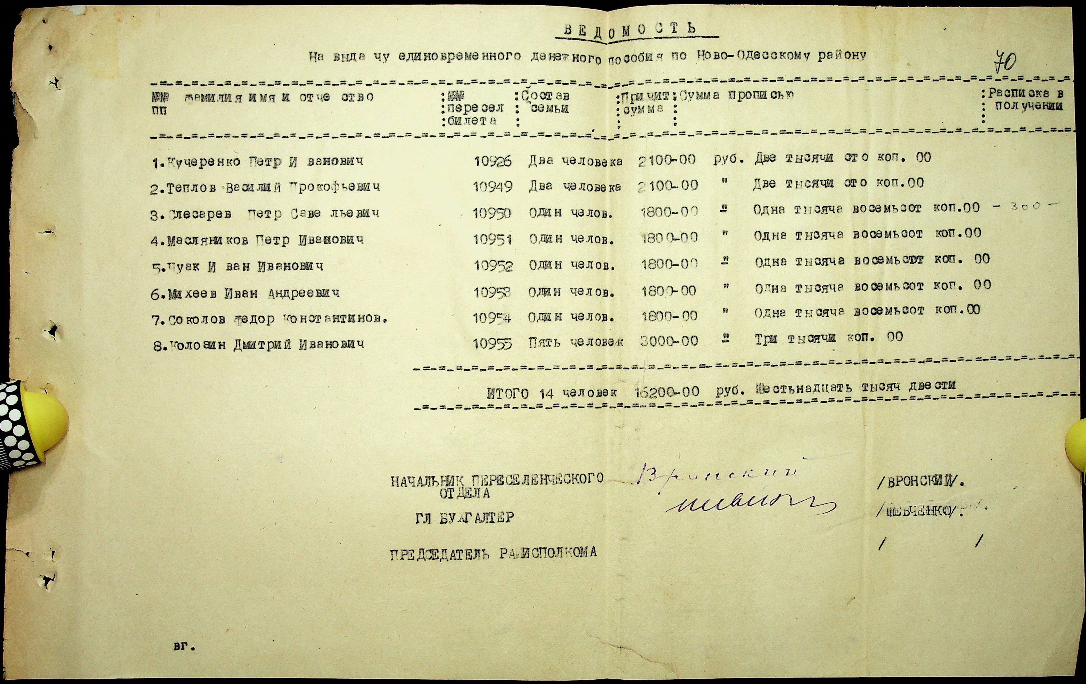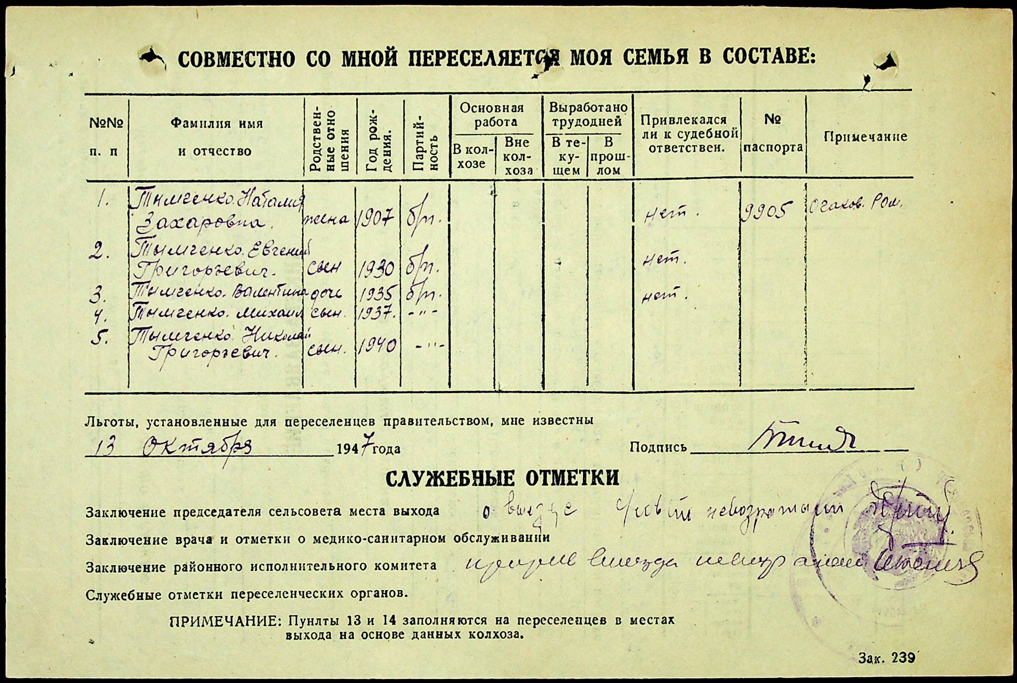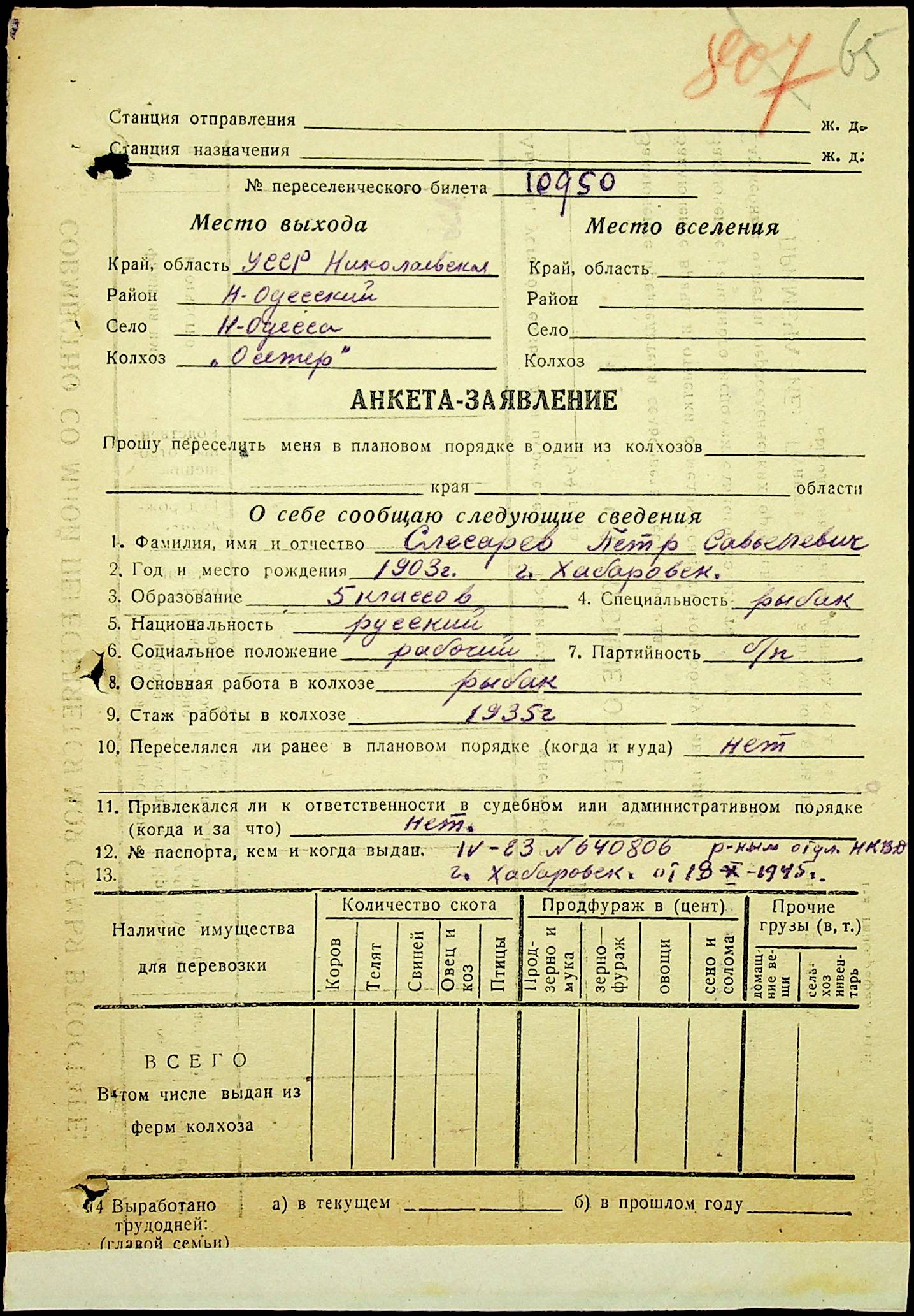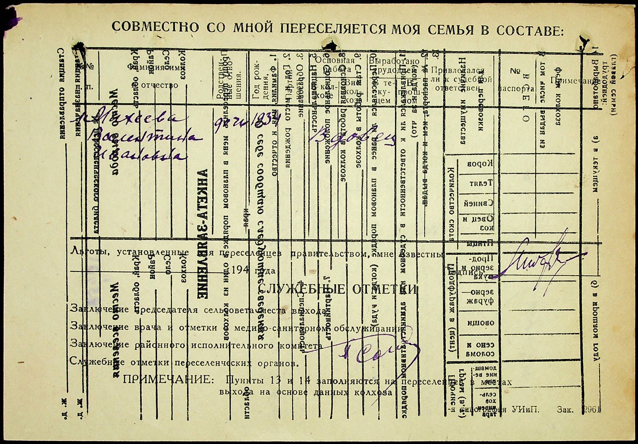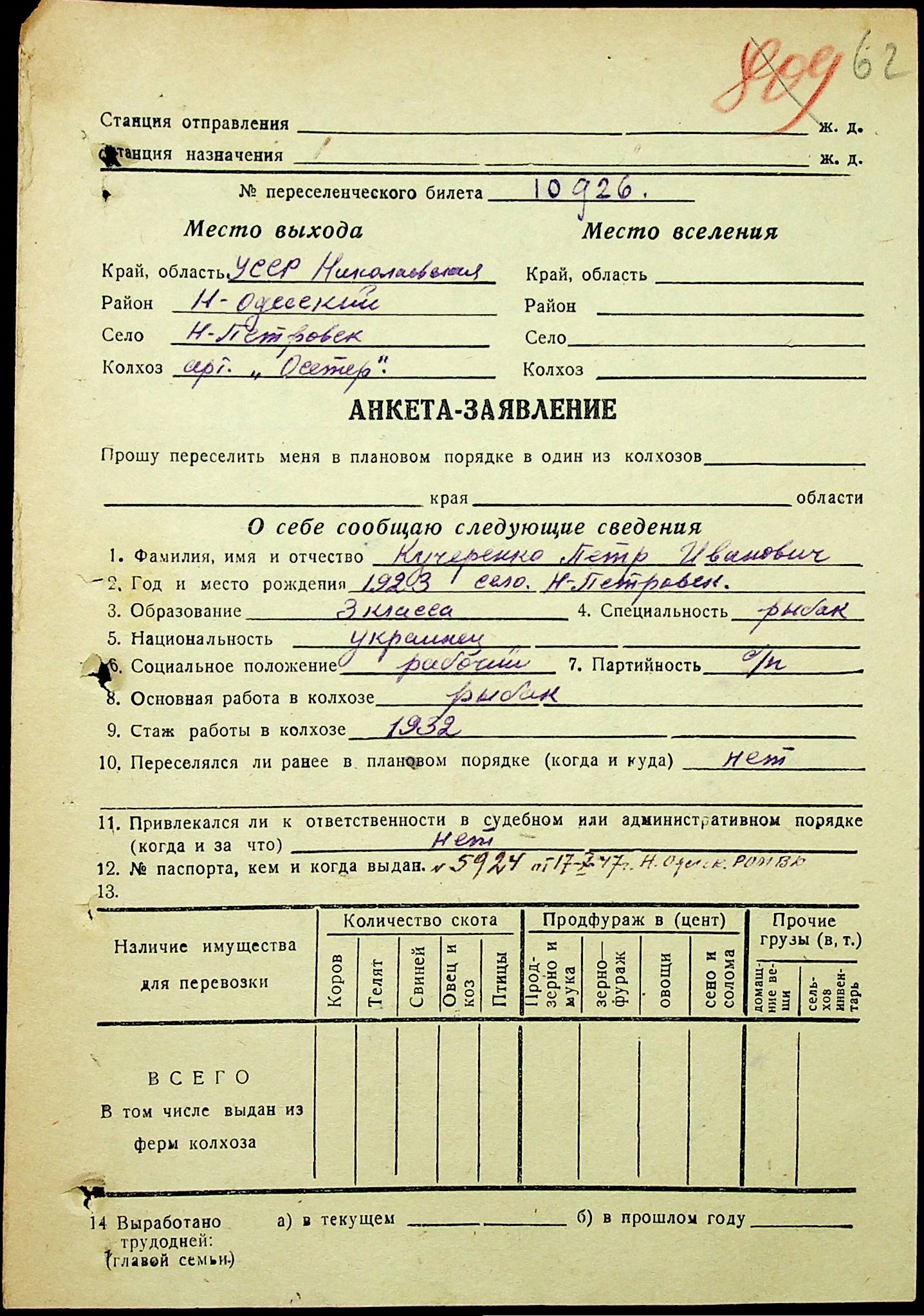 • • • • Справа № 25 “Документи (протокол, списки, описи майна, анкети-заяви, відомості, довідки) про відбір осіб для планового, добровільного переселення до Сахалінської області, надання їм одноразової допомоги та проведення медичного обстеження”