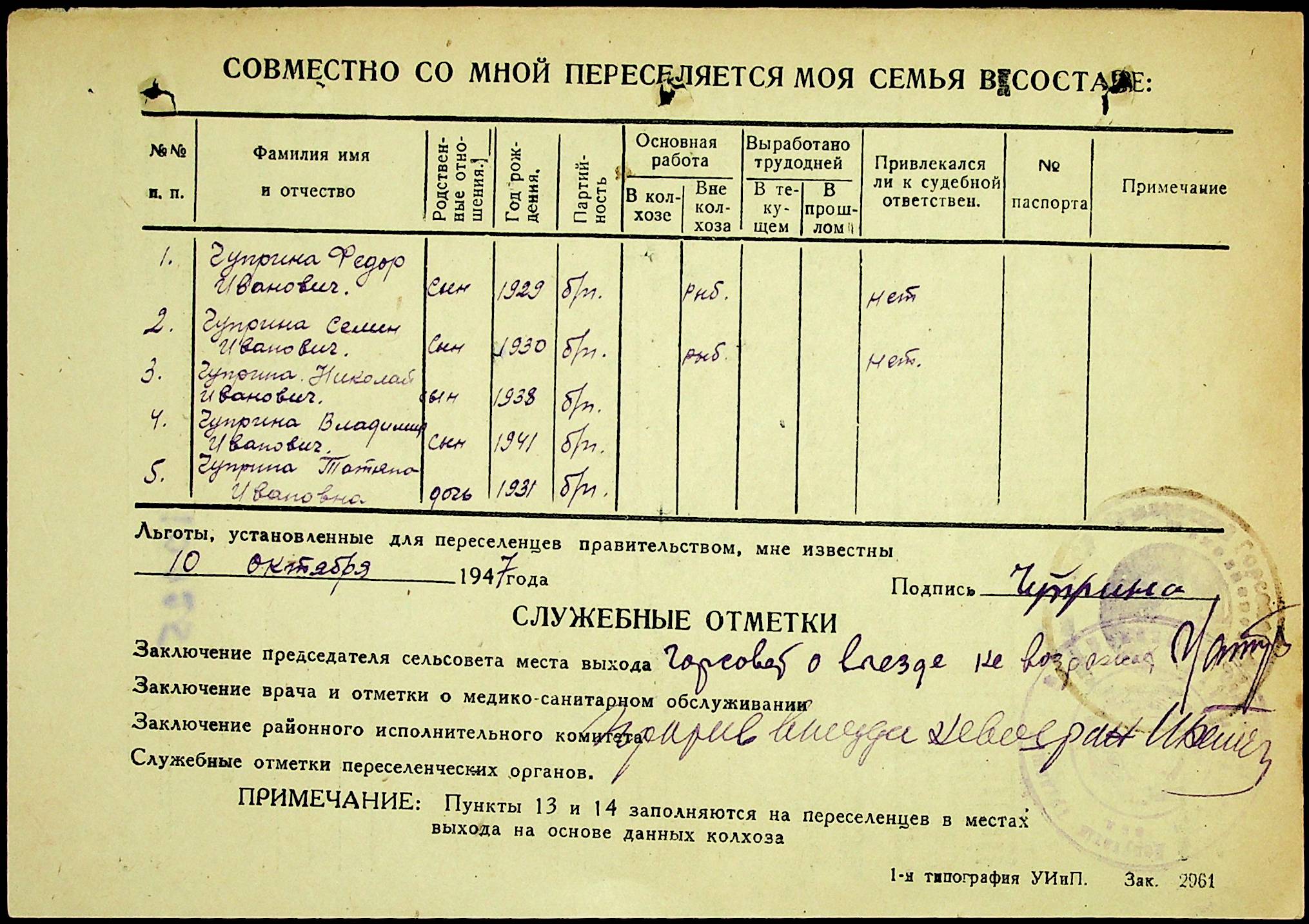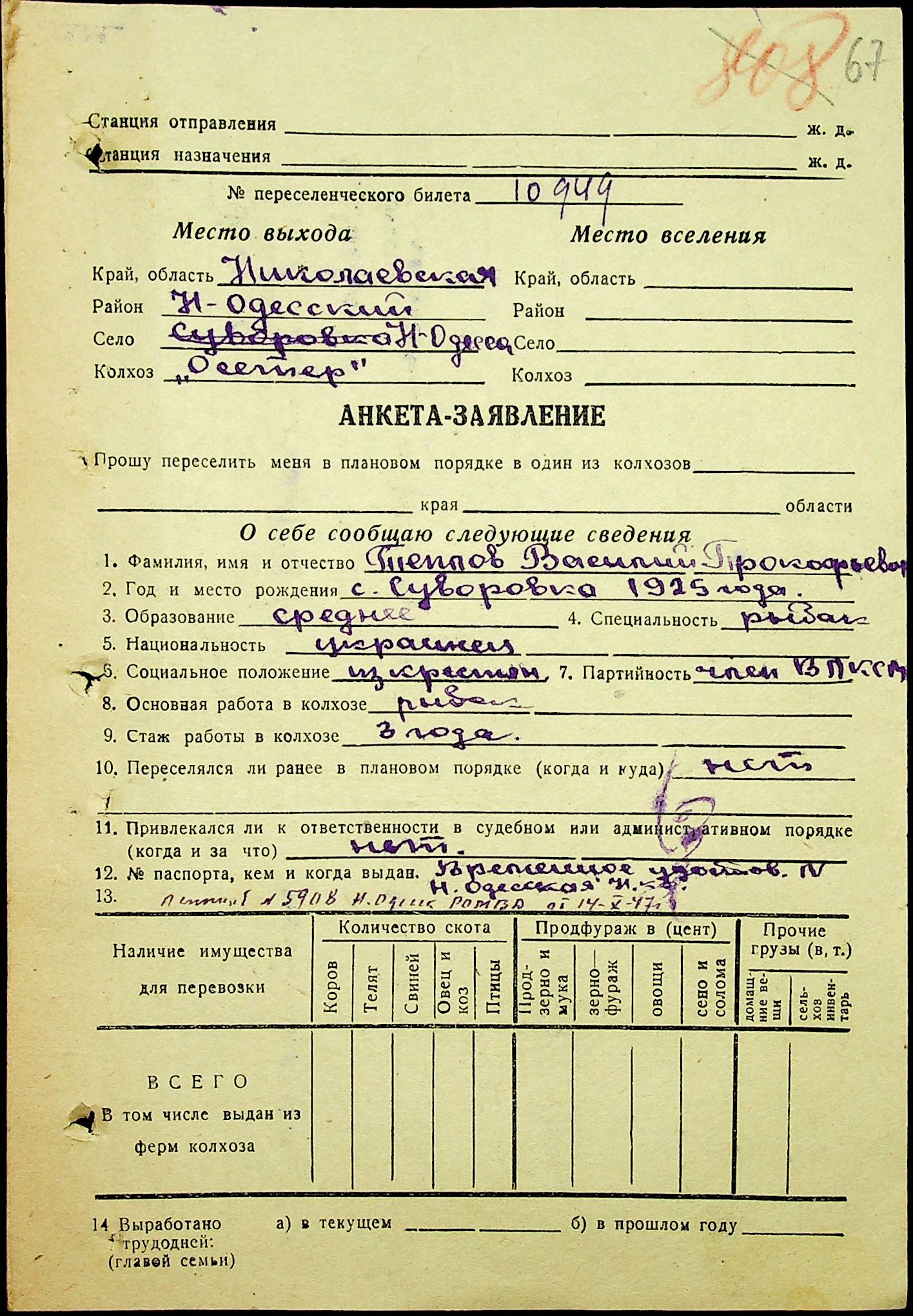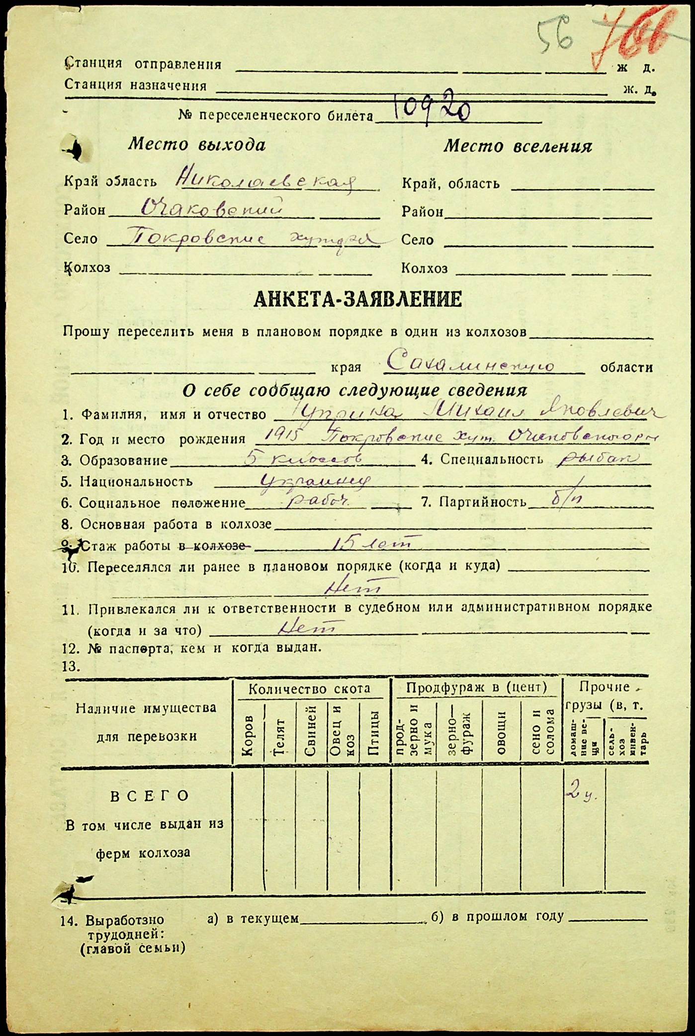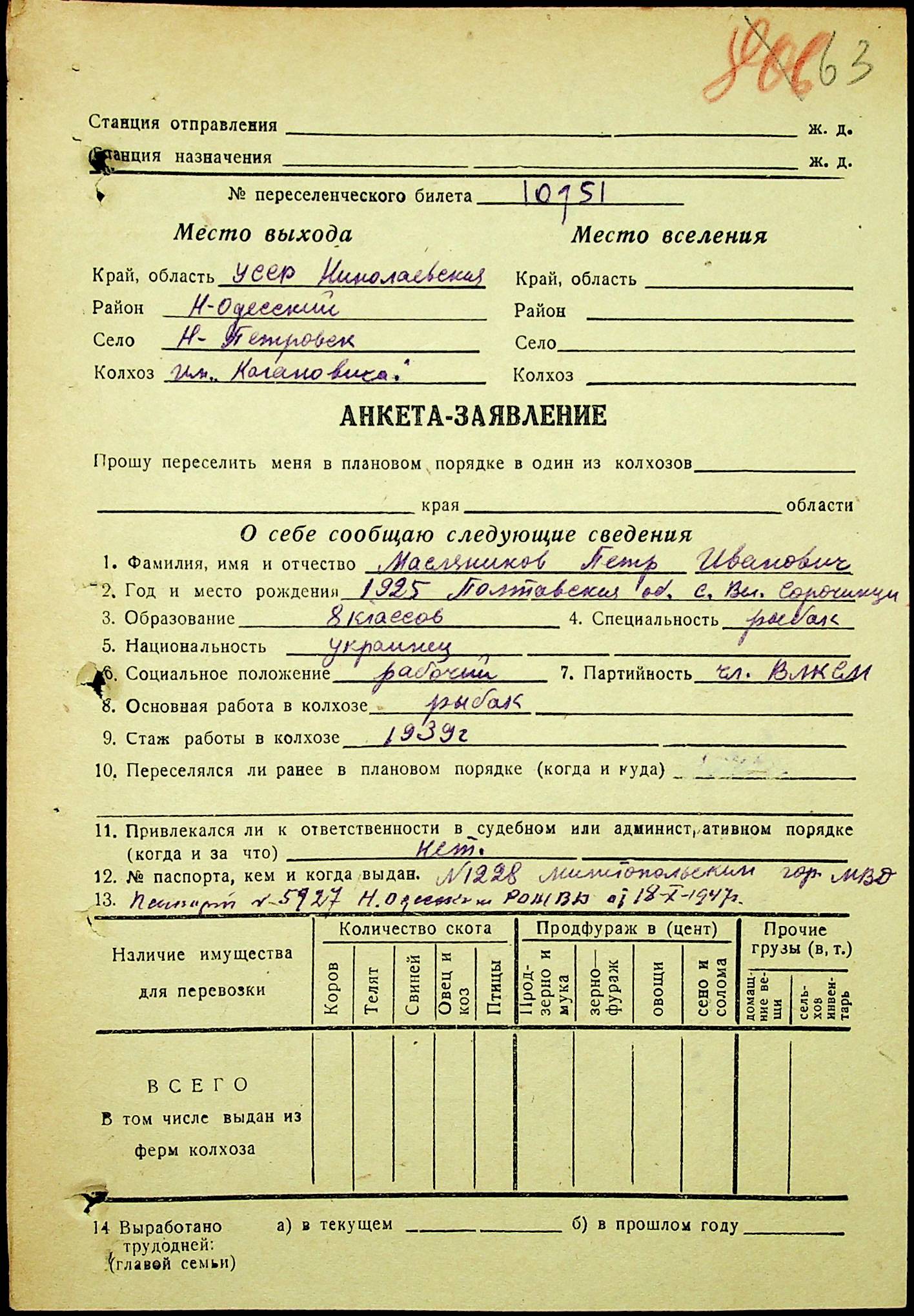 • • • • Справа № 25 “Документи (протокол, списки, описи майна, анкети-заяви, відомості, довідки) про відбір осіб для планового, добровільного переселення до Сахалінської області, надання їм одноразової допомоги та проведення медичного обстеження”