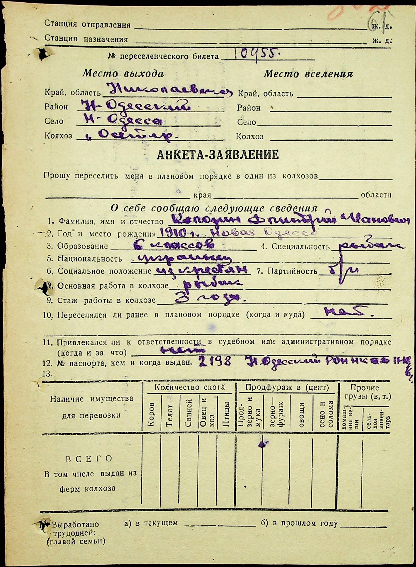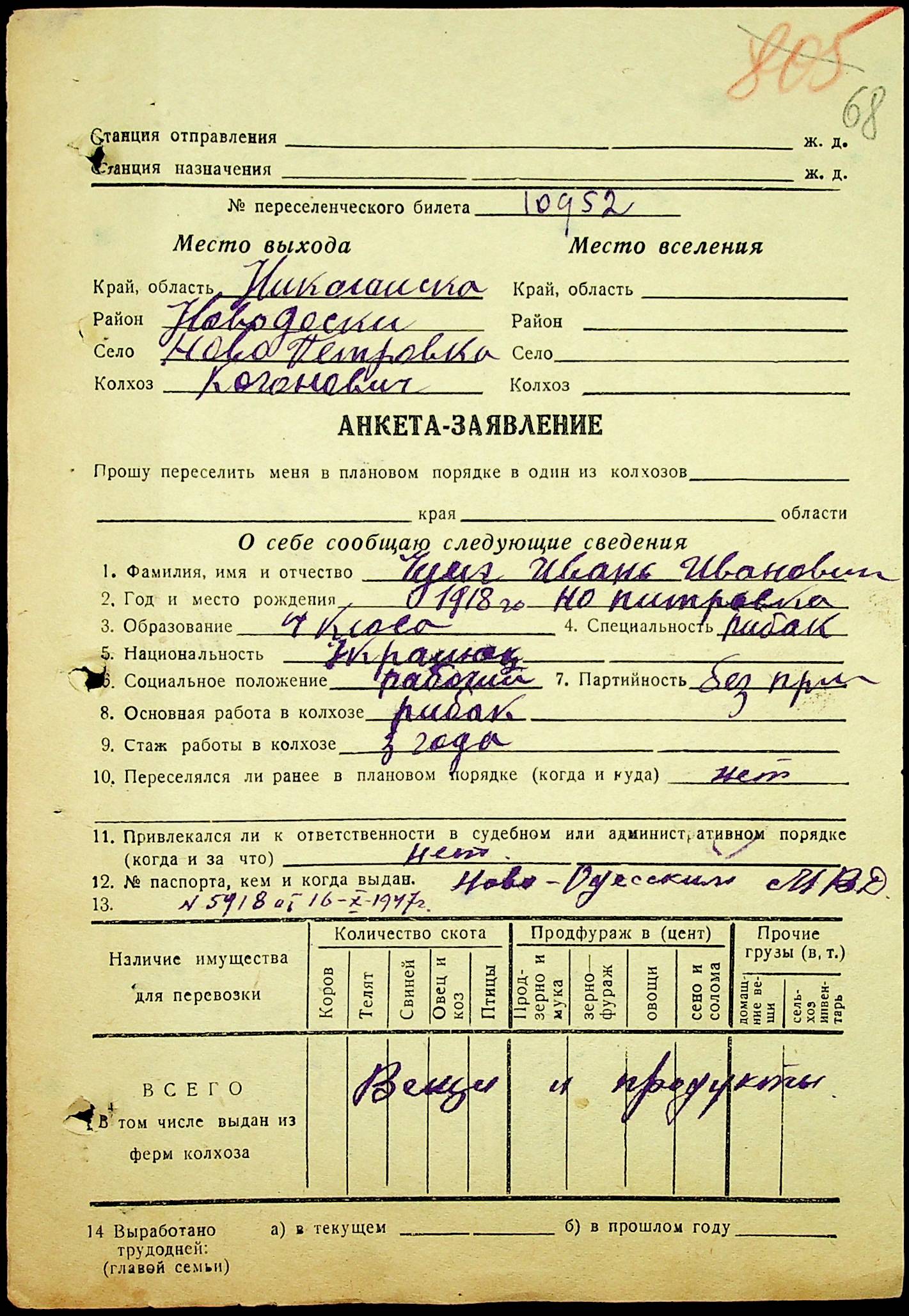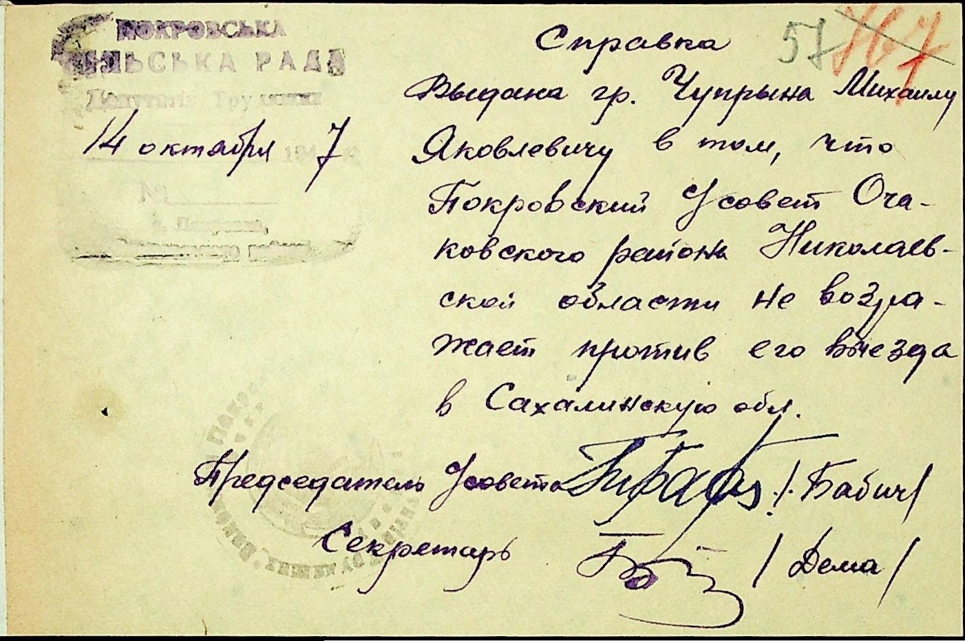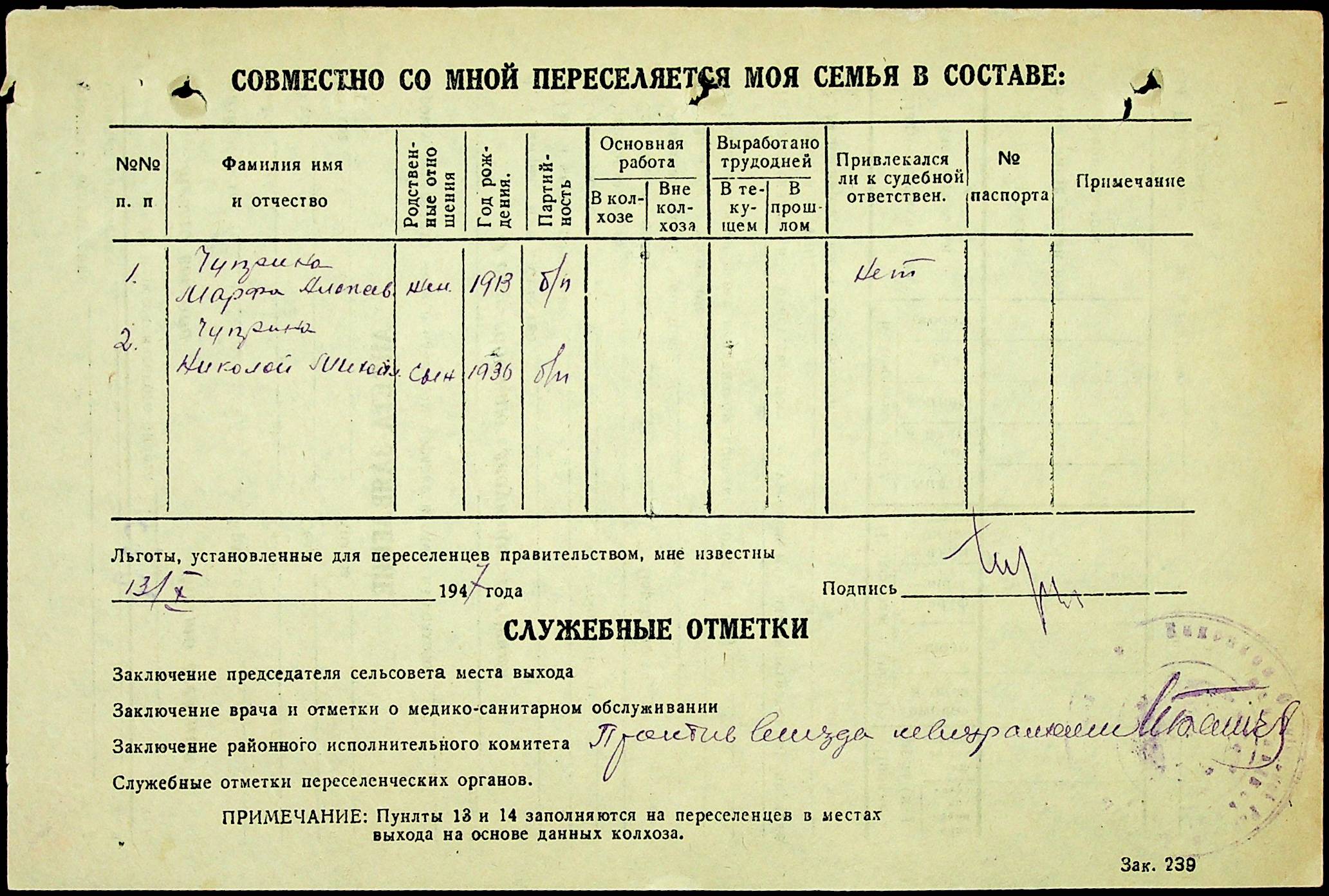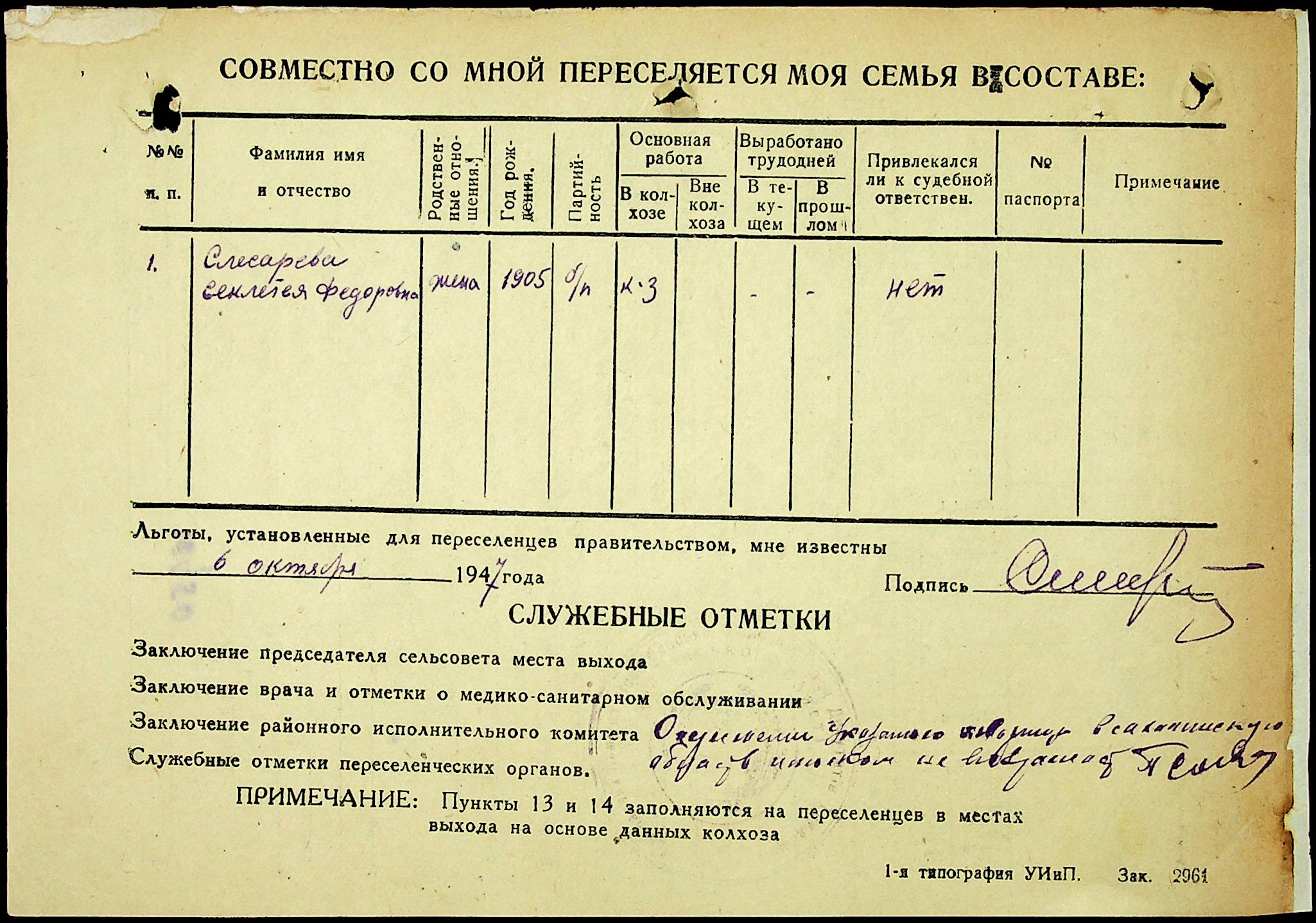 • • • • Справа № 25 “Документи (протокол, списки, описи майна, анкети-заяви, відомості, довідки) про відбір осіб для планового, добровільного переселення до Сахалінської області, надання їм одноразової допомоги та проведення медичного обстеження”