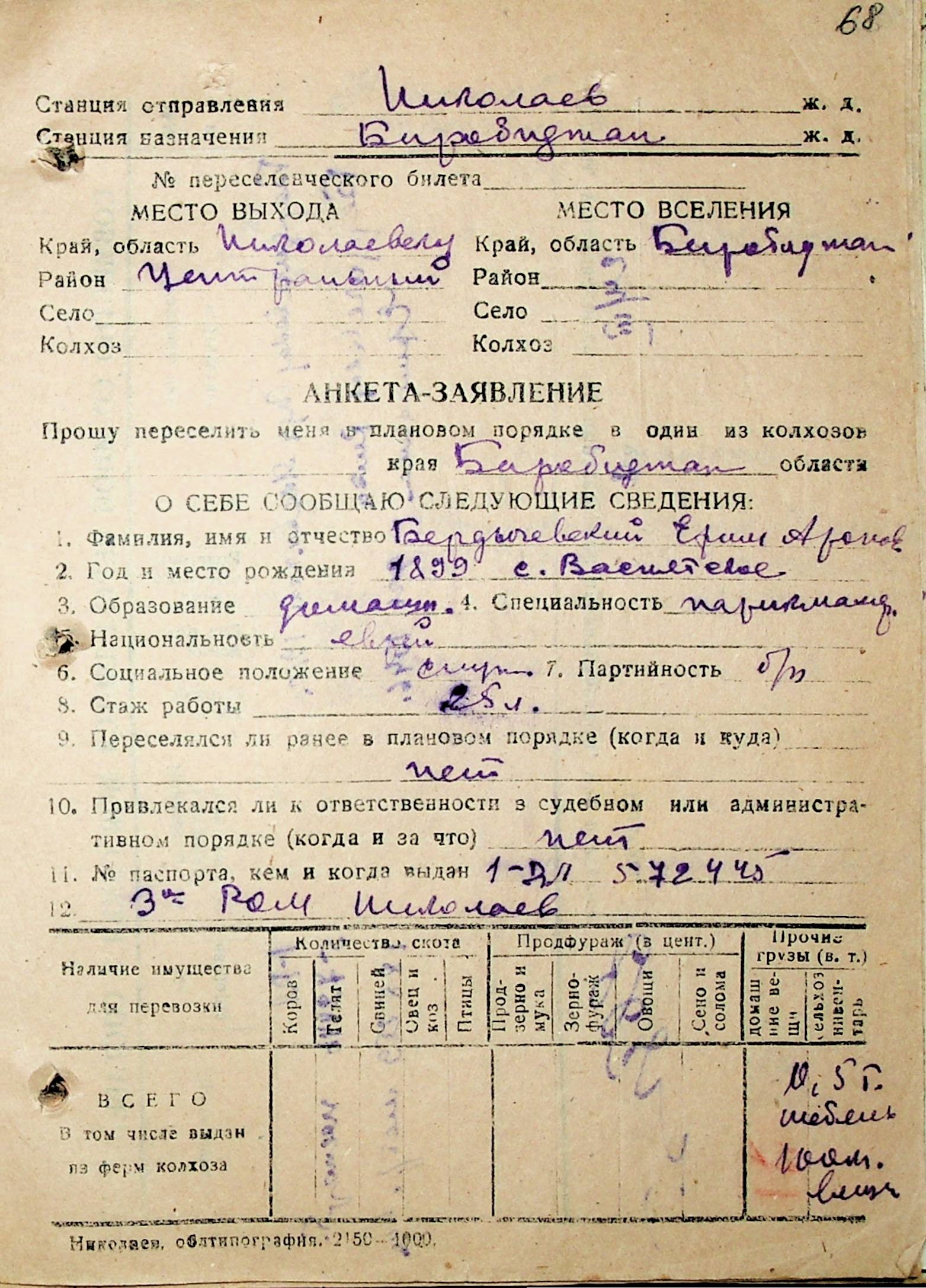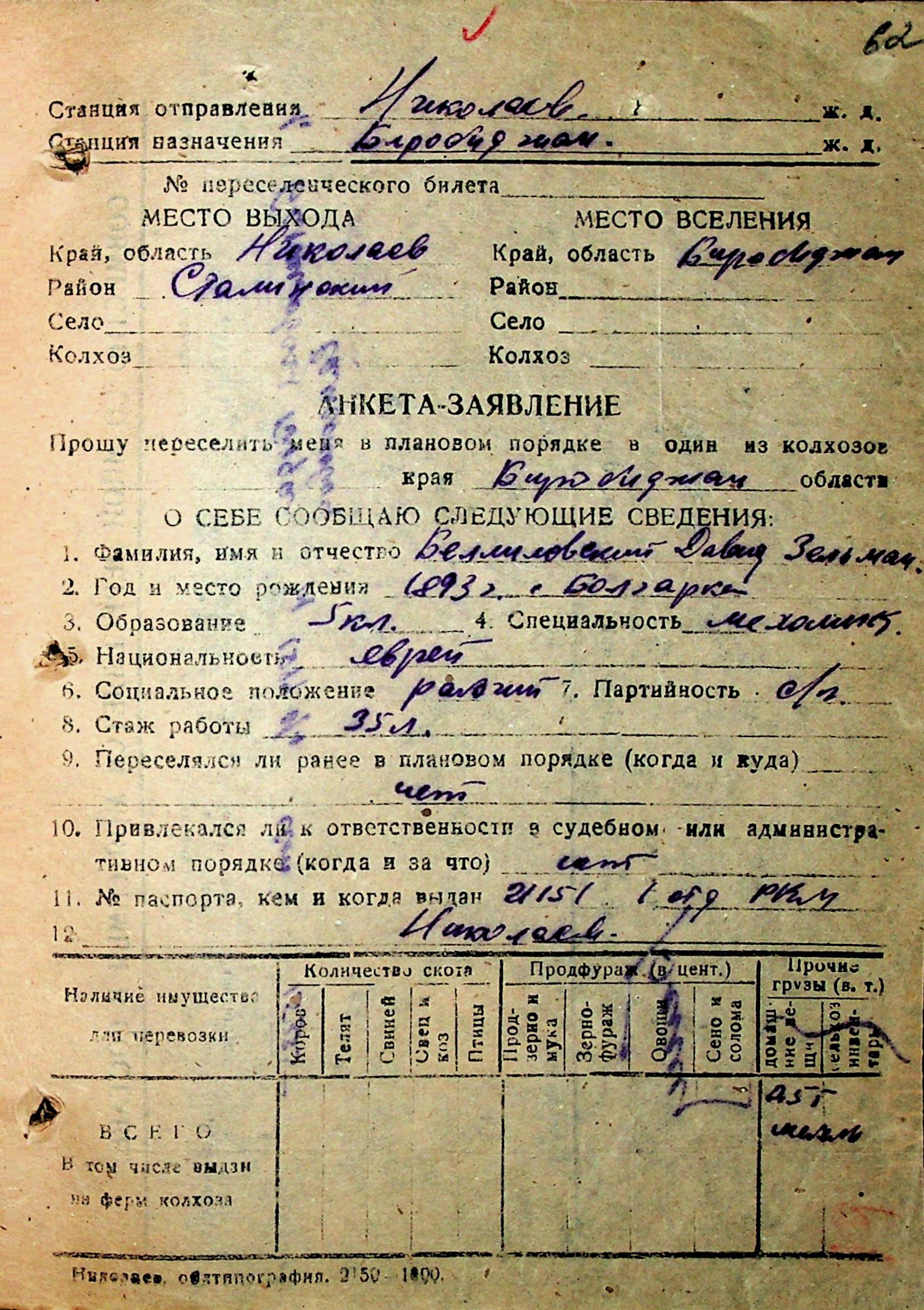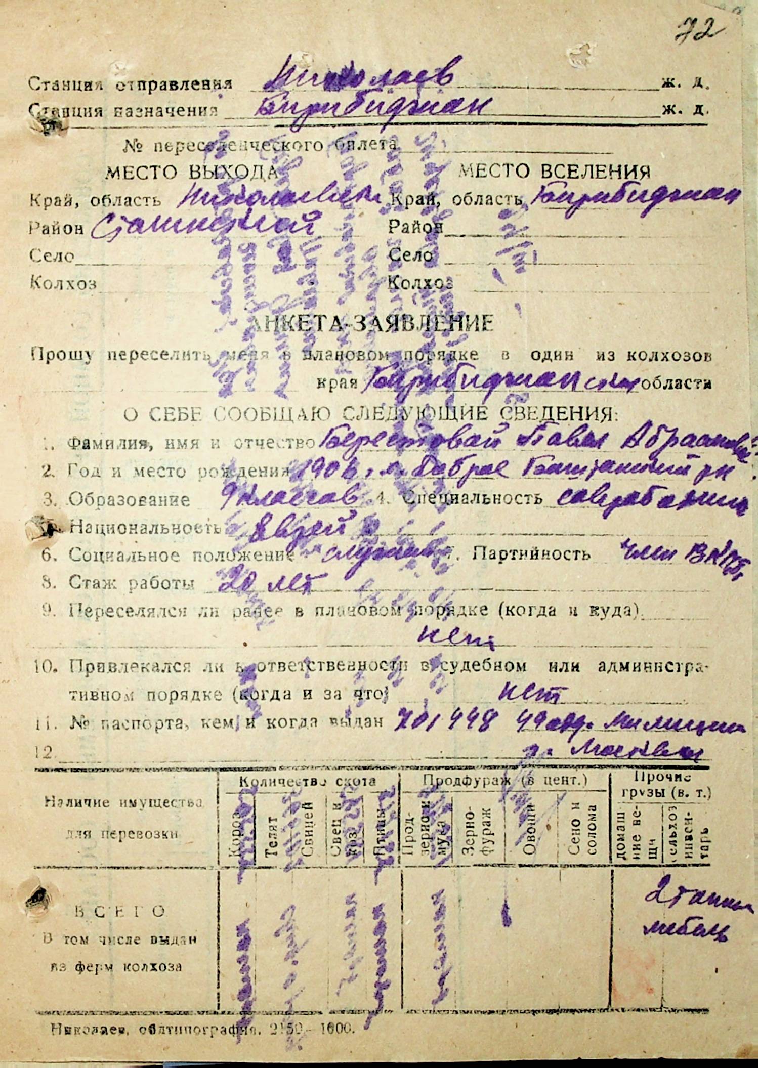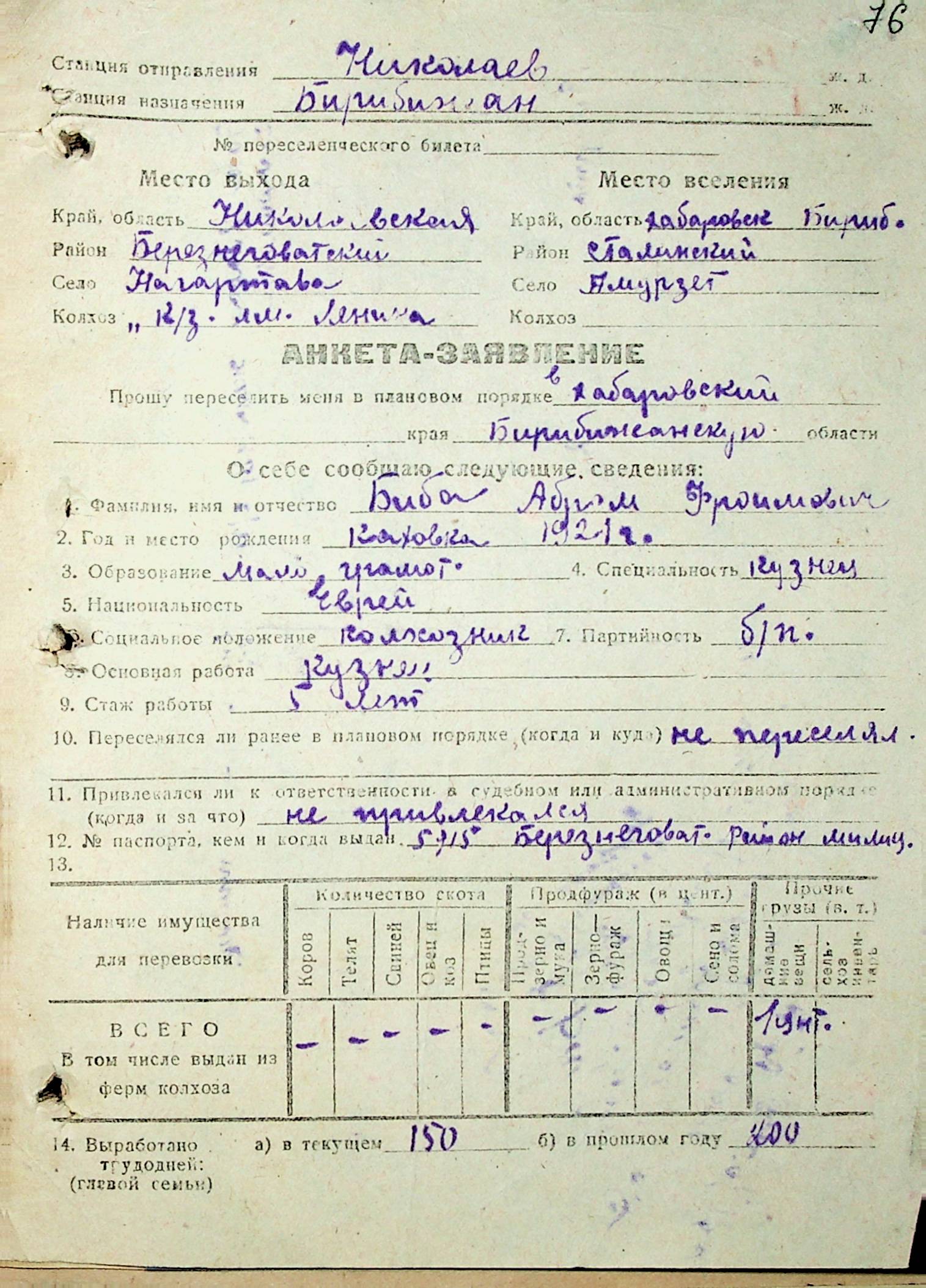• • • • Справа № 29 “Анкети-заяви осіб, від’їжджаючих до Єврейської автономної області у 1948 році. Прізвища з літери «А» по літеру «Г»”