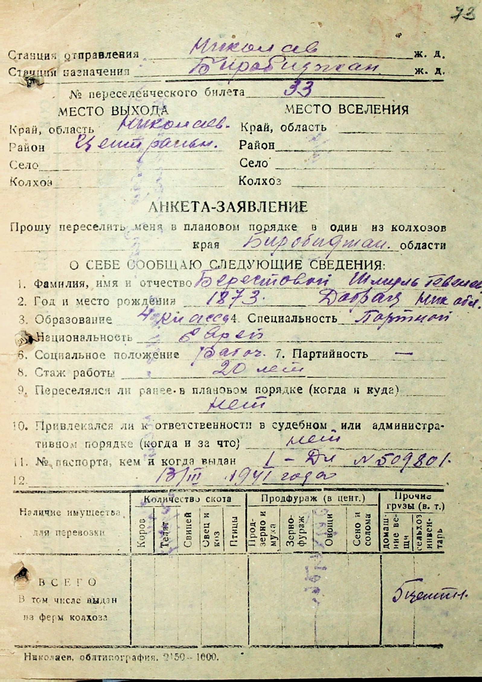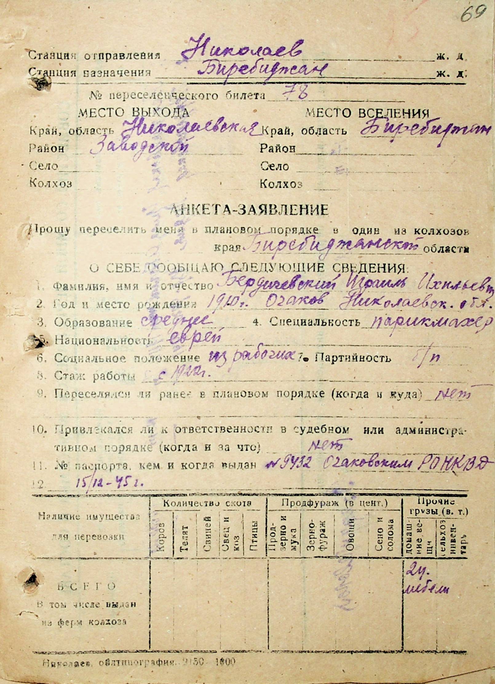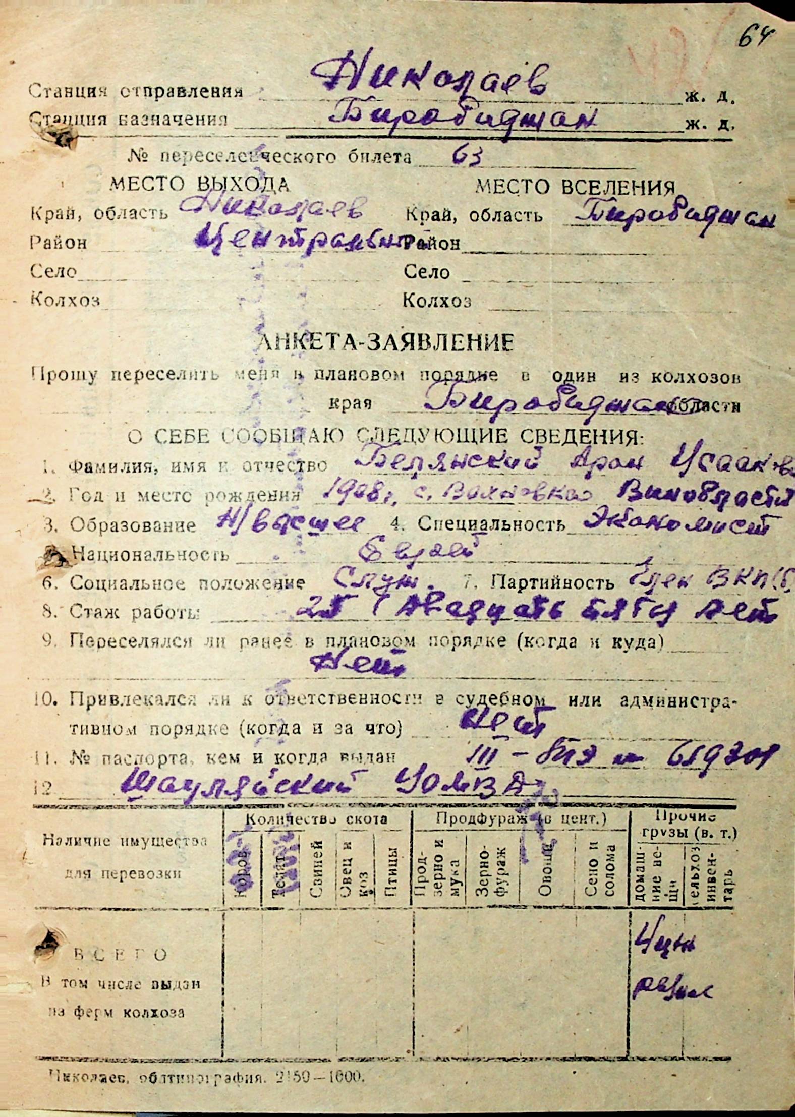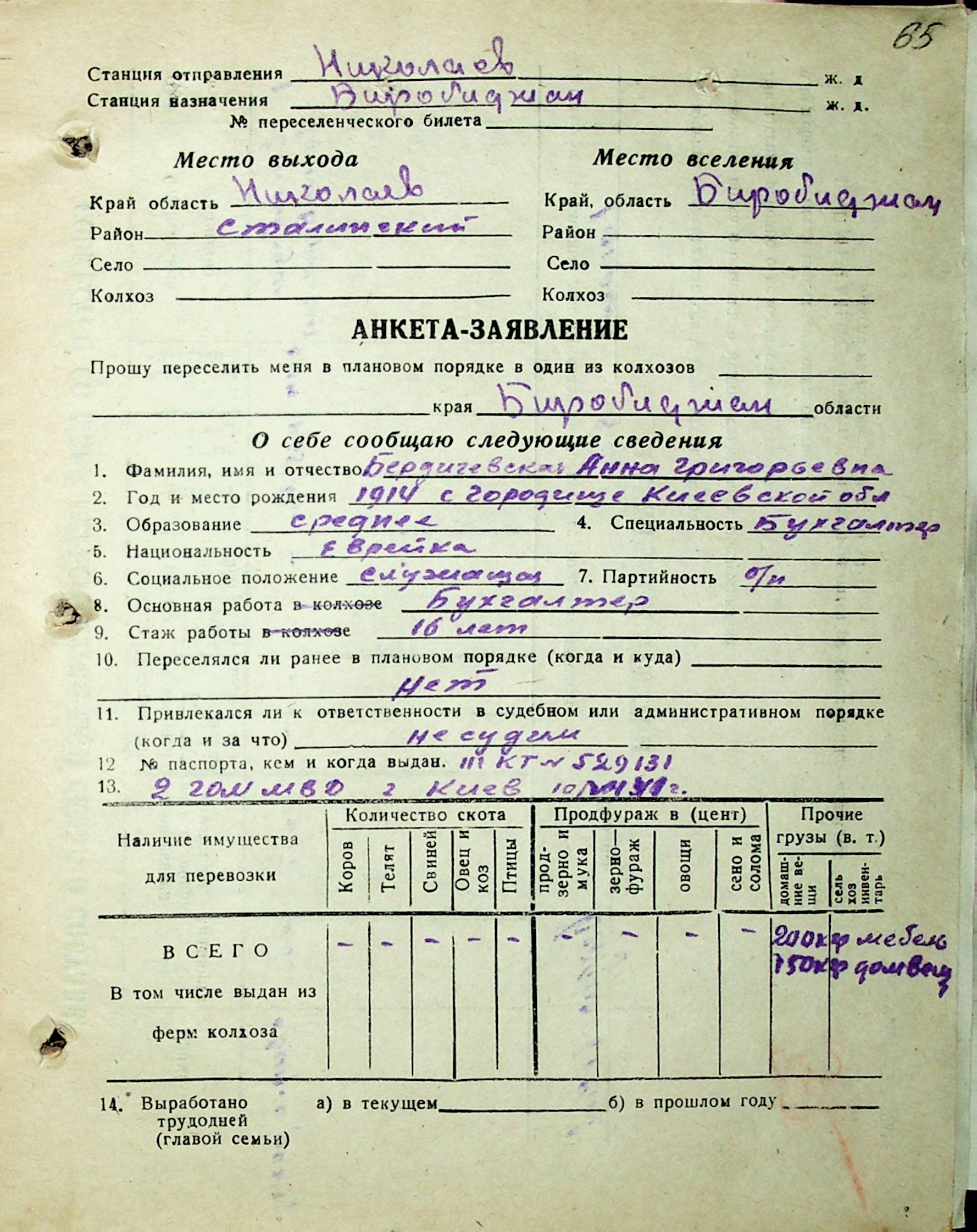 • • • • Справа № 29 “Анкети-заяви осіб, від’їжджаючих до Єврейської автономної області у 1948 році. Прізвища з літери «А» по літеру «Г»”