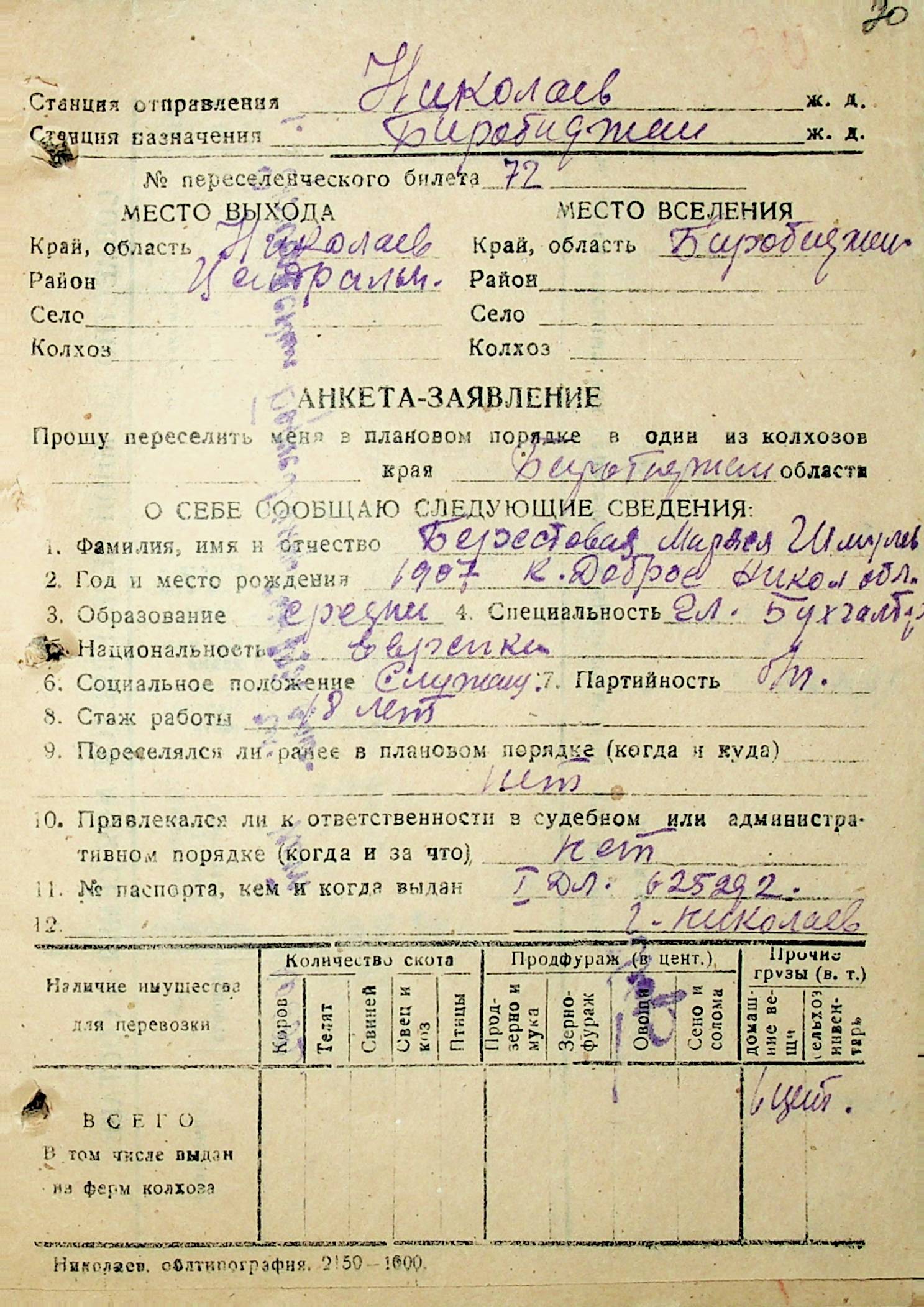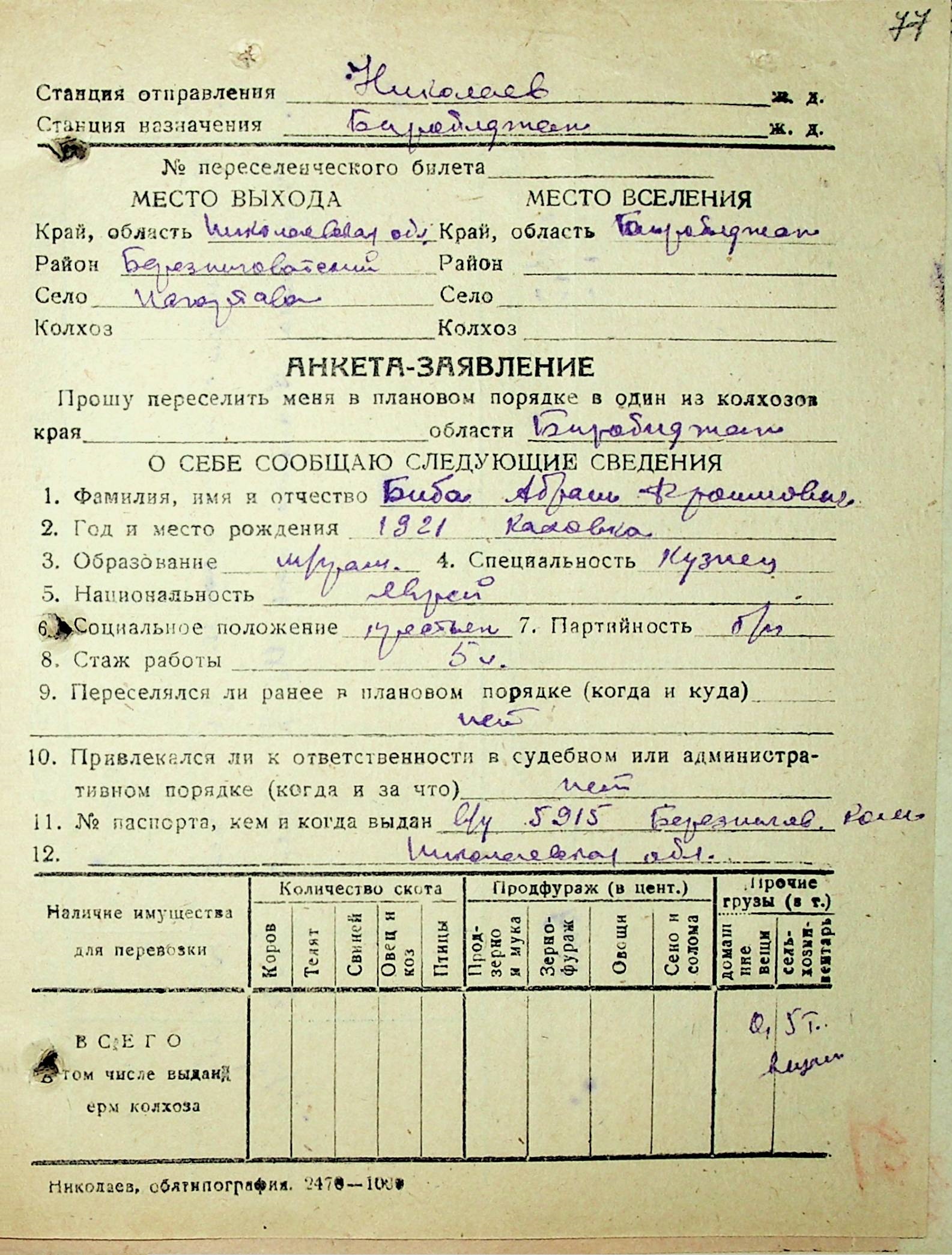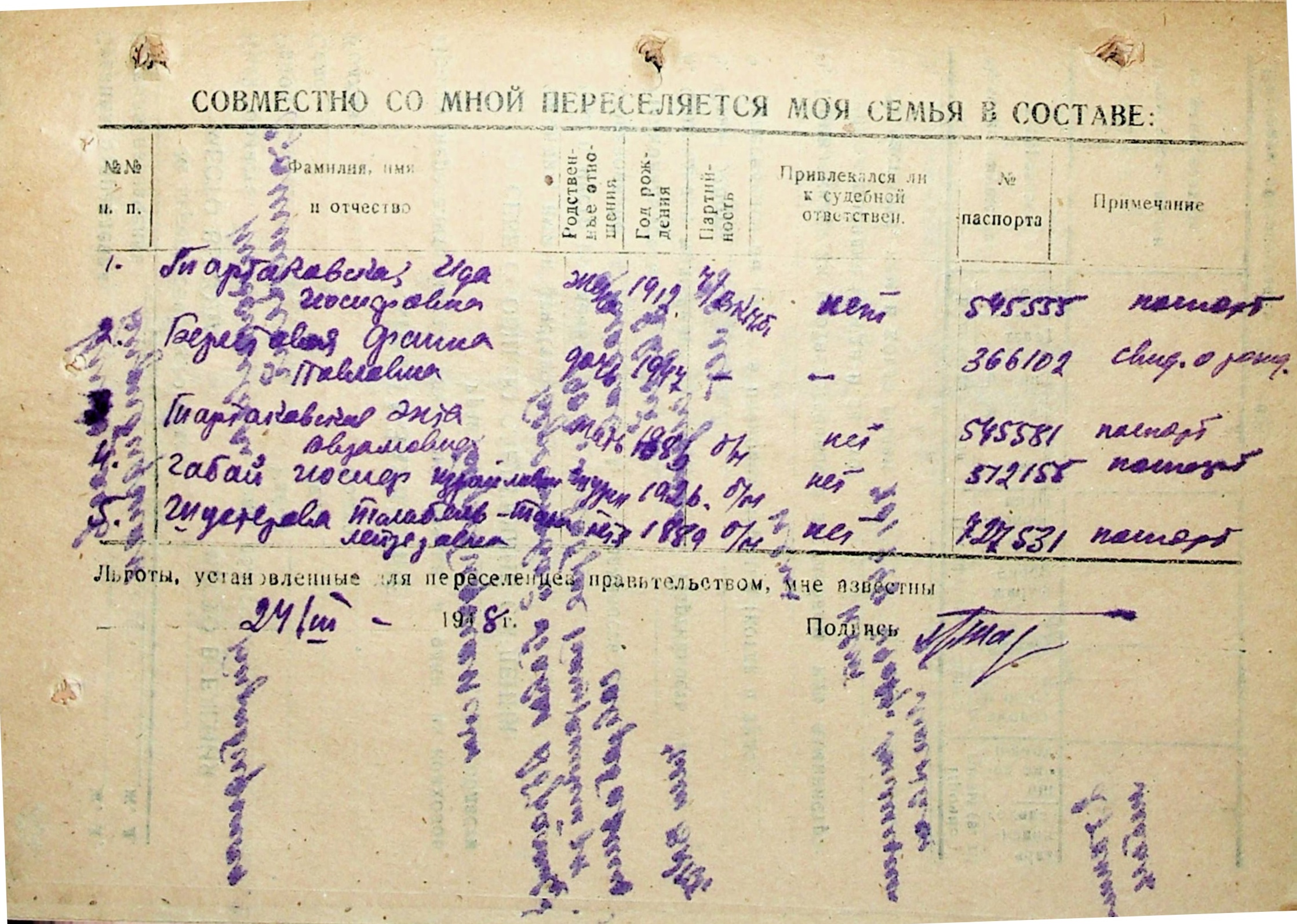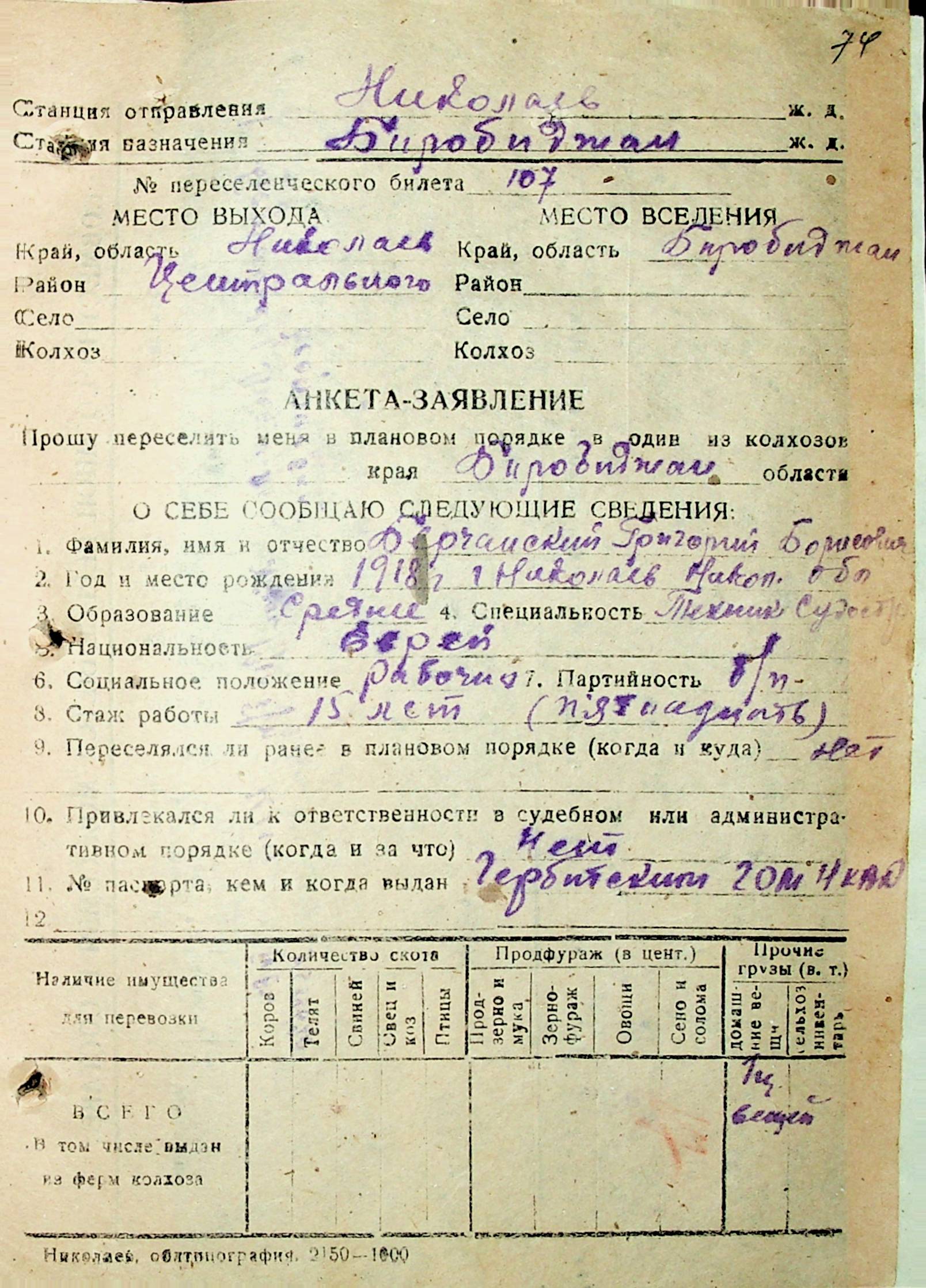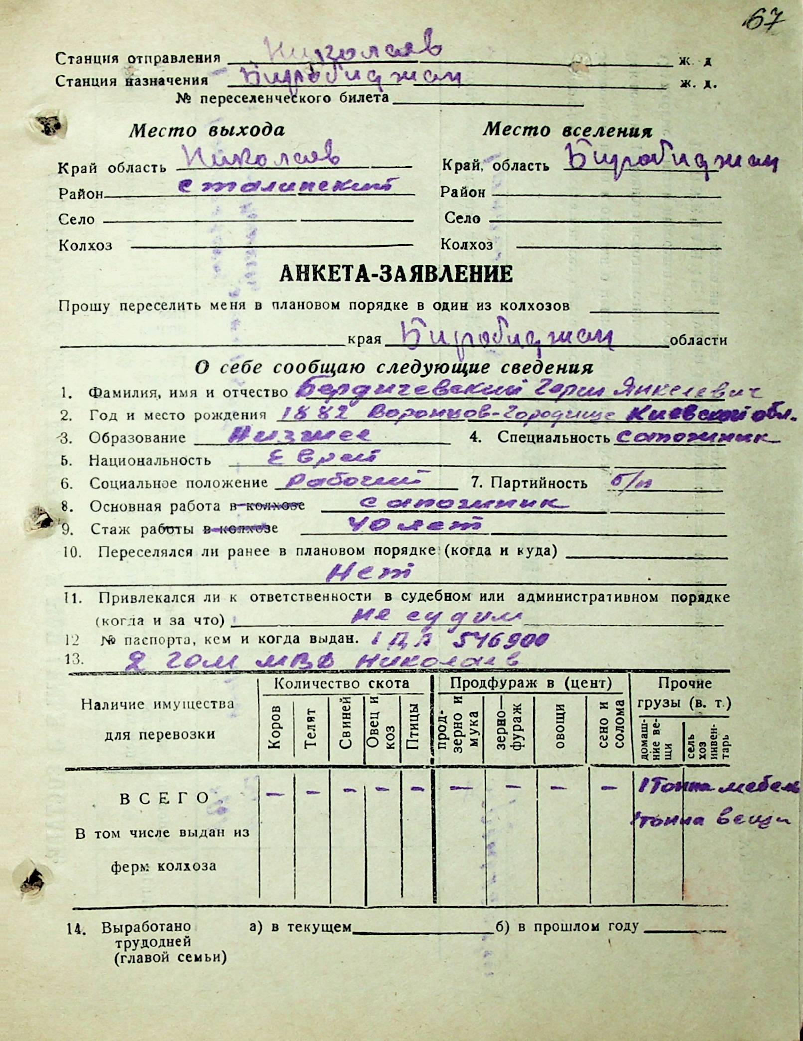 • • • • Справа № 29 “Анкети-заяви осіб, від’їжджаючих до Єврейської автономної області у 1948 році. Прізвища з літери «А» по літеру «Г»”