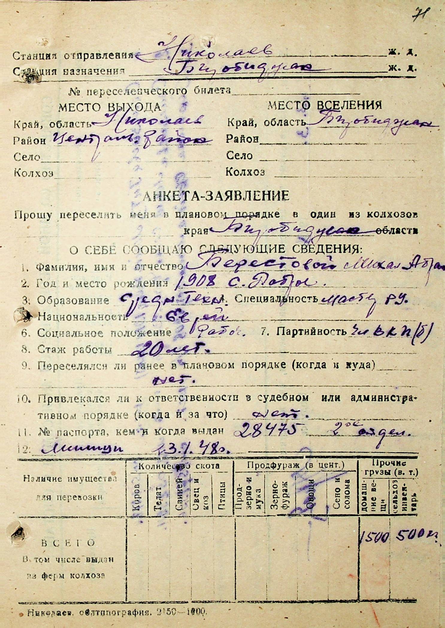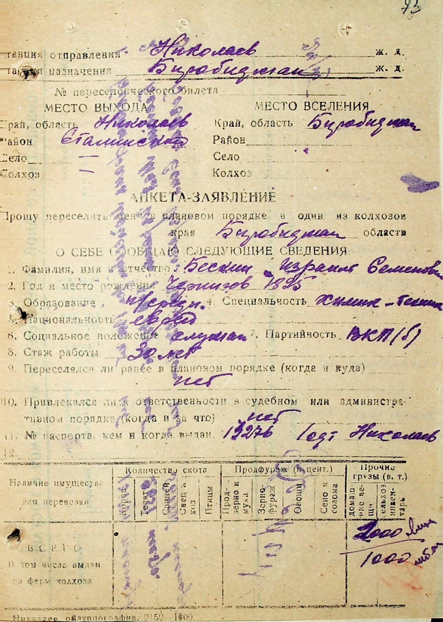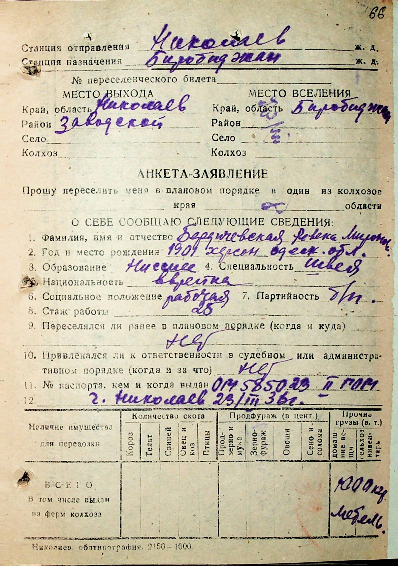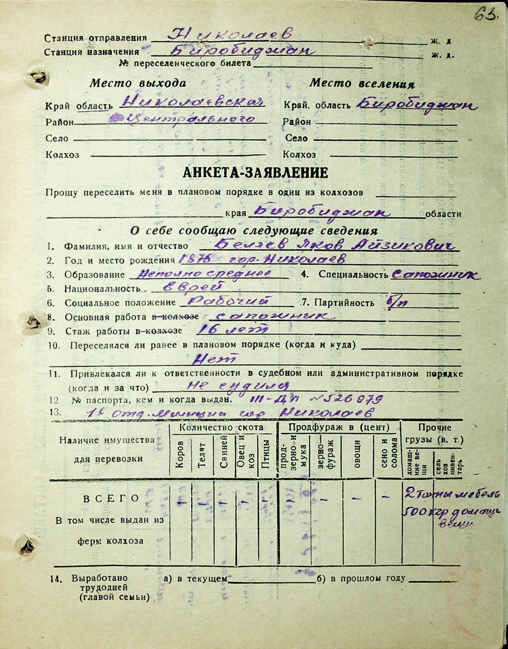 • • • • Справа № 29 “Анкети-заяви осіб, від’їжджаючих до Єврейської автономної області у 1948 році. Прізвища з літери «А» по літеру «Г»”