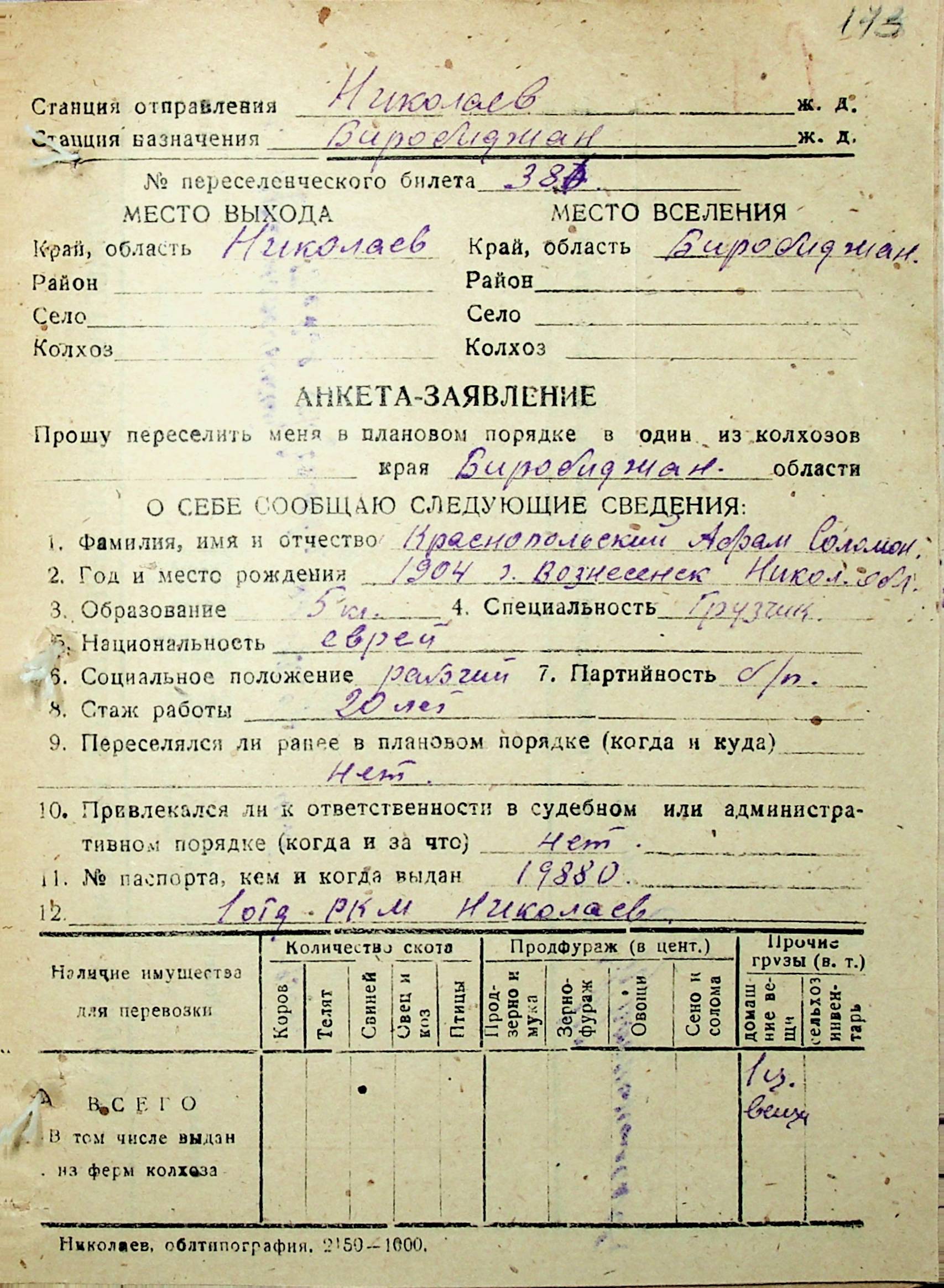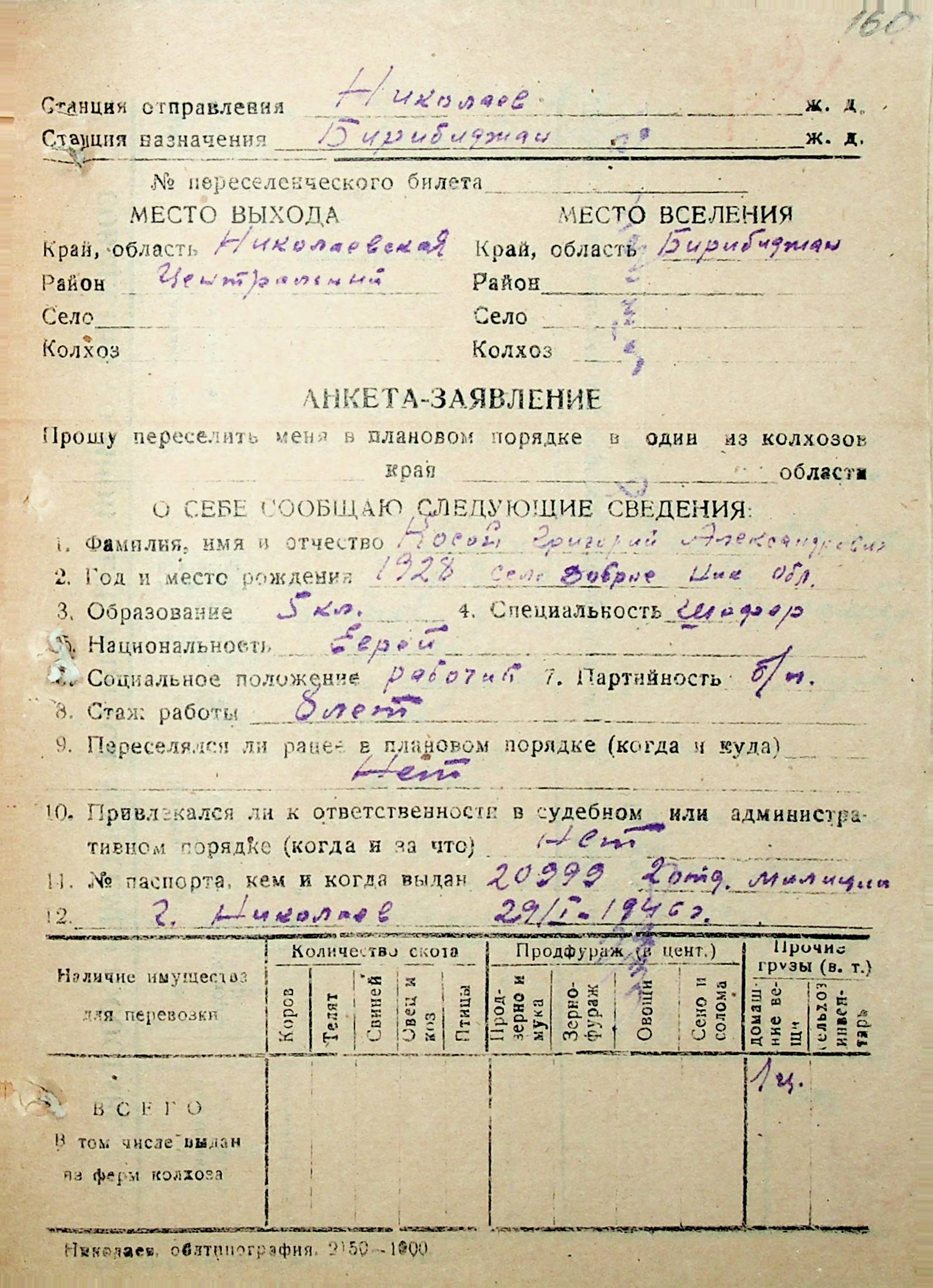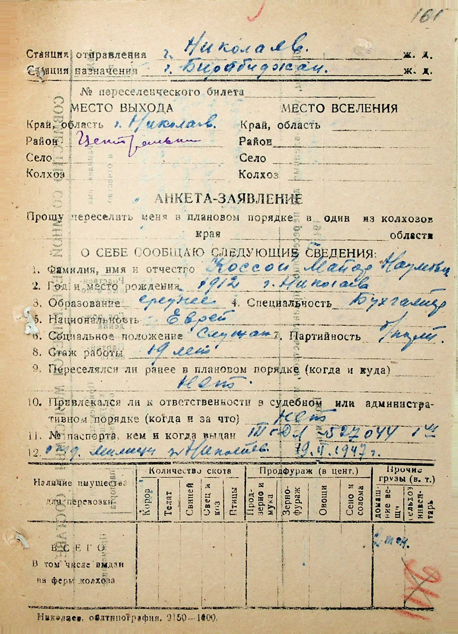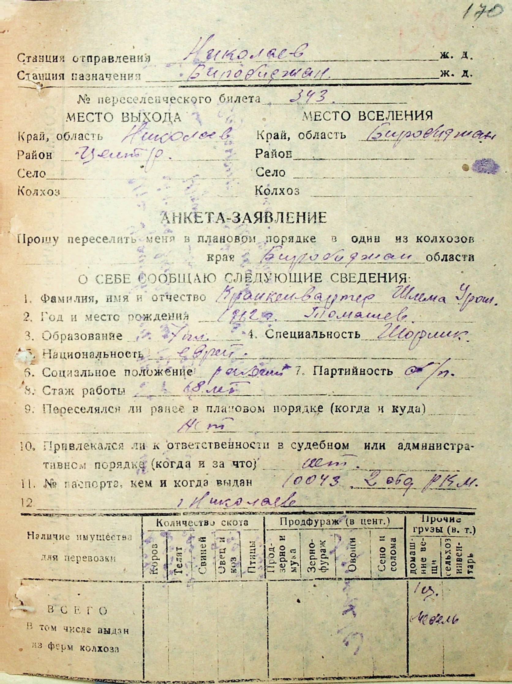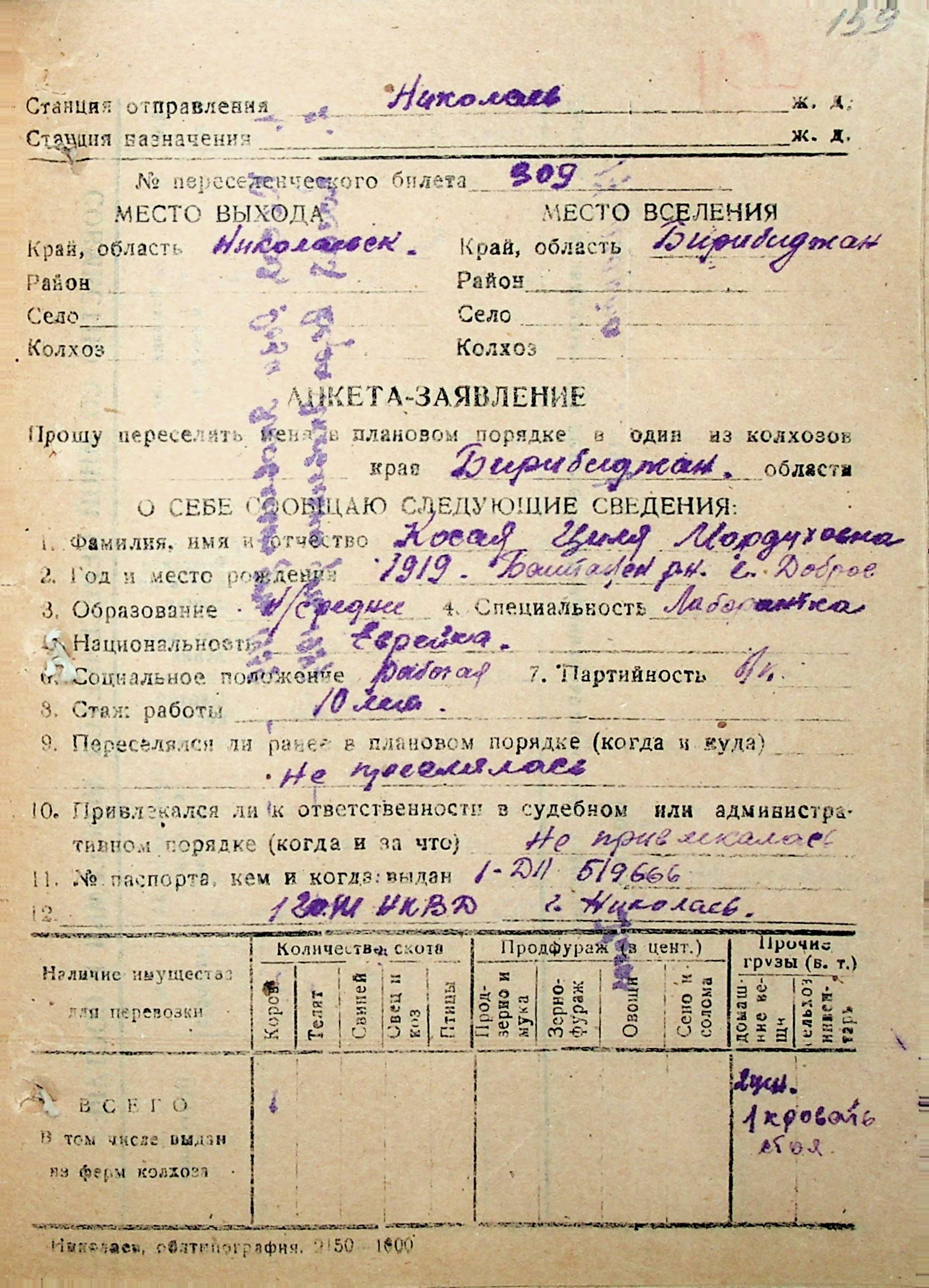 • • • • Справа № 30 “Анкети-заяви осіб, від’їжджаючих до Єврейської автономної області у 1948 році. Прізвища з літери «Д» по літеру «К»”
