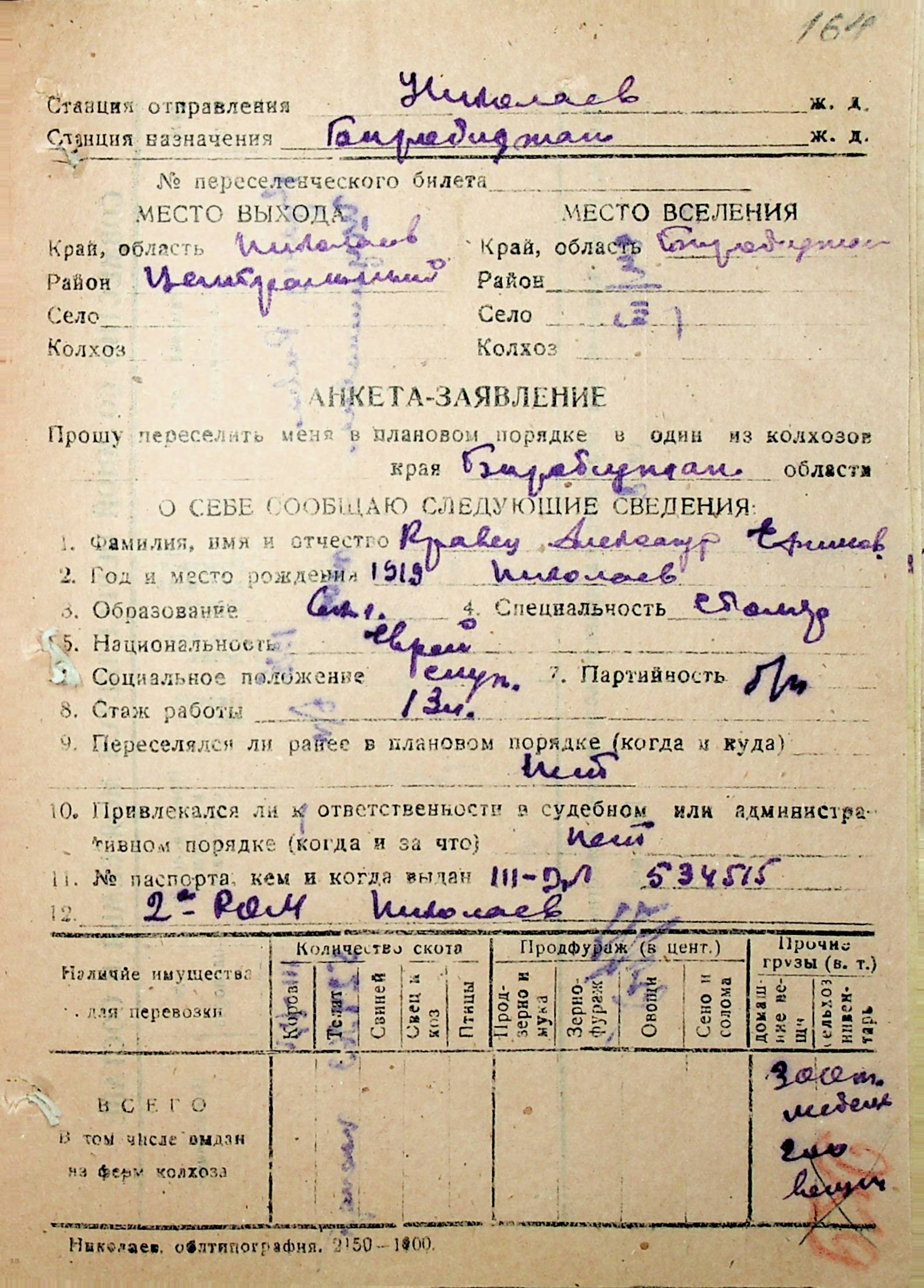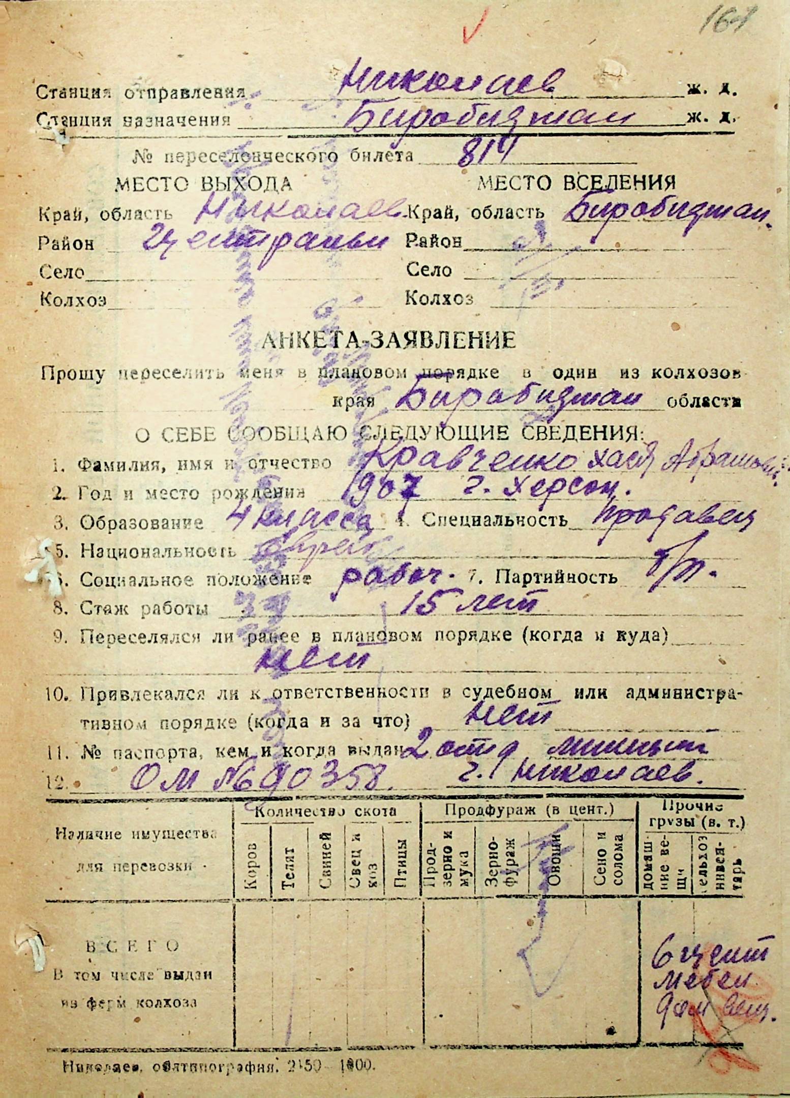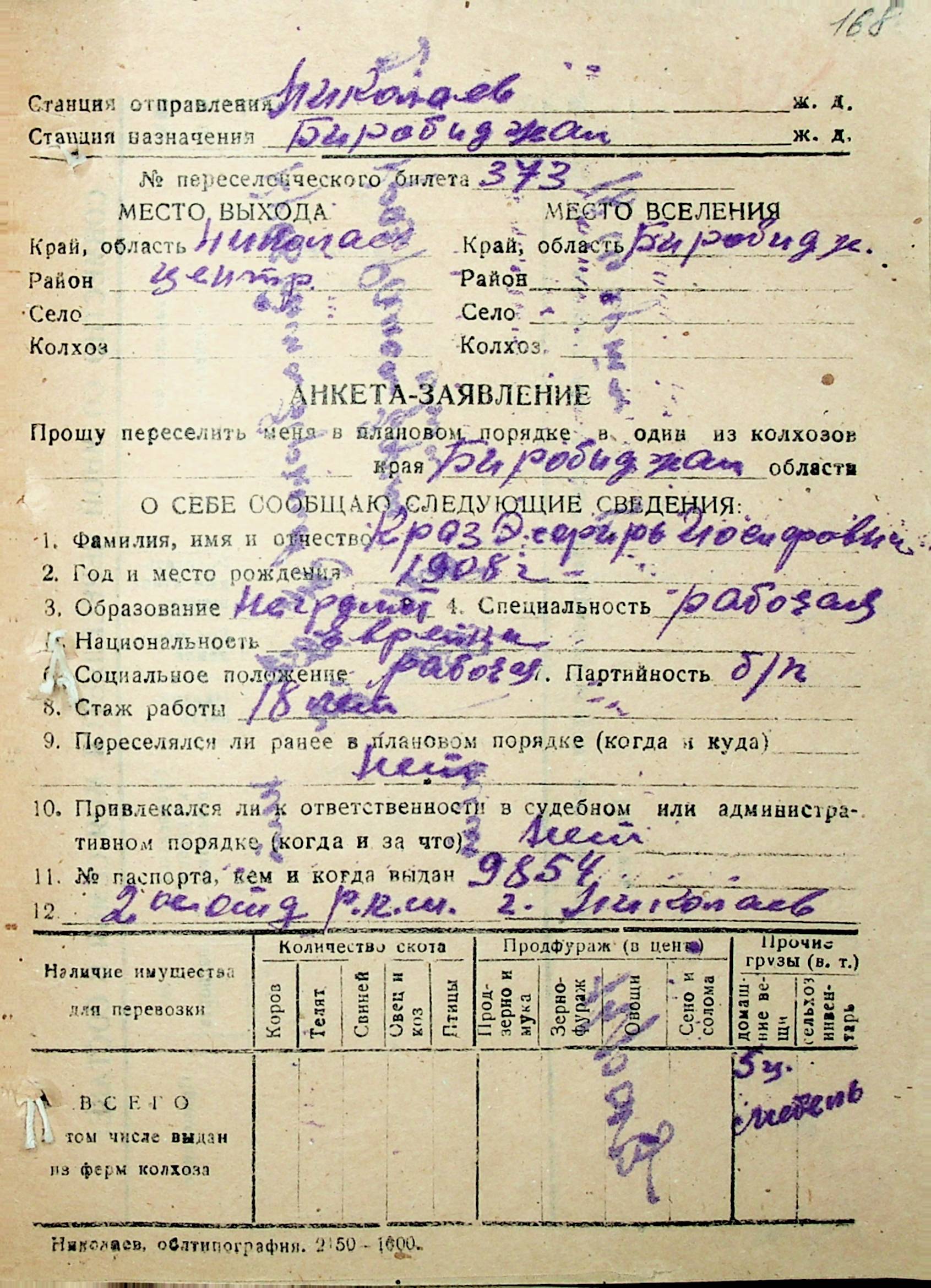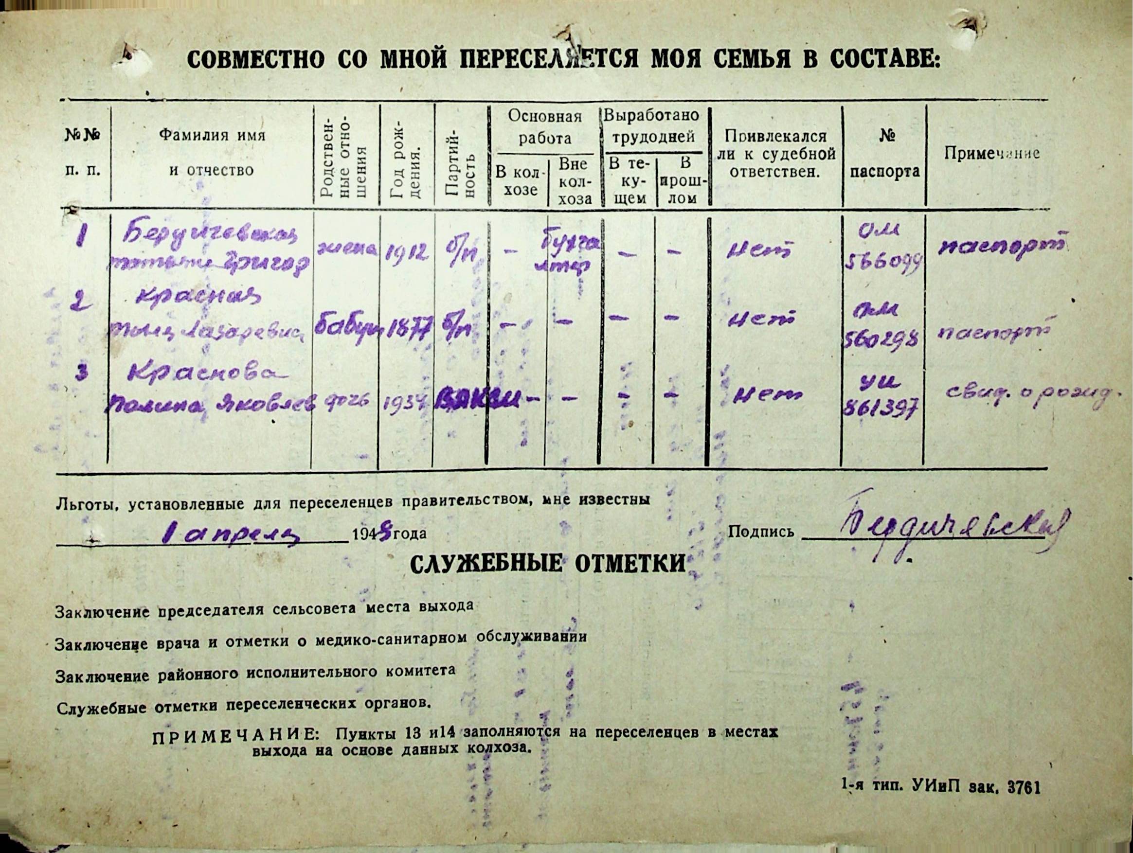 • • • • Справа № 30 “Анкети-заяви осіб, від’їжджаючих до Єврейської автономної області у 1948 році. Прізвища з літери «Д» по літеру «К»”