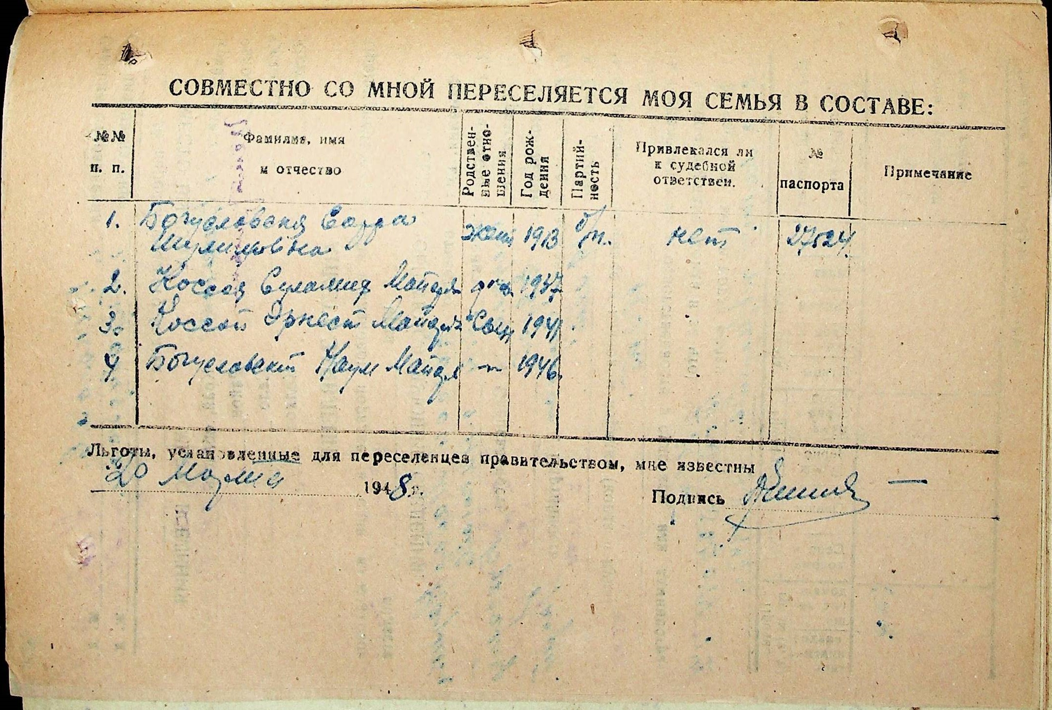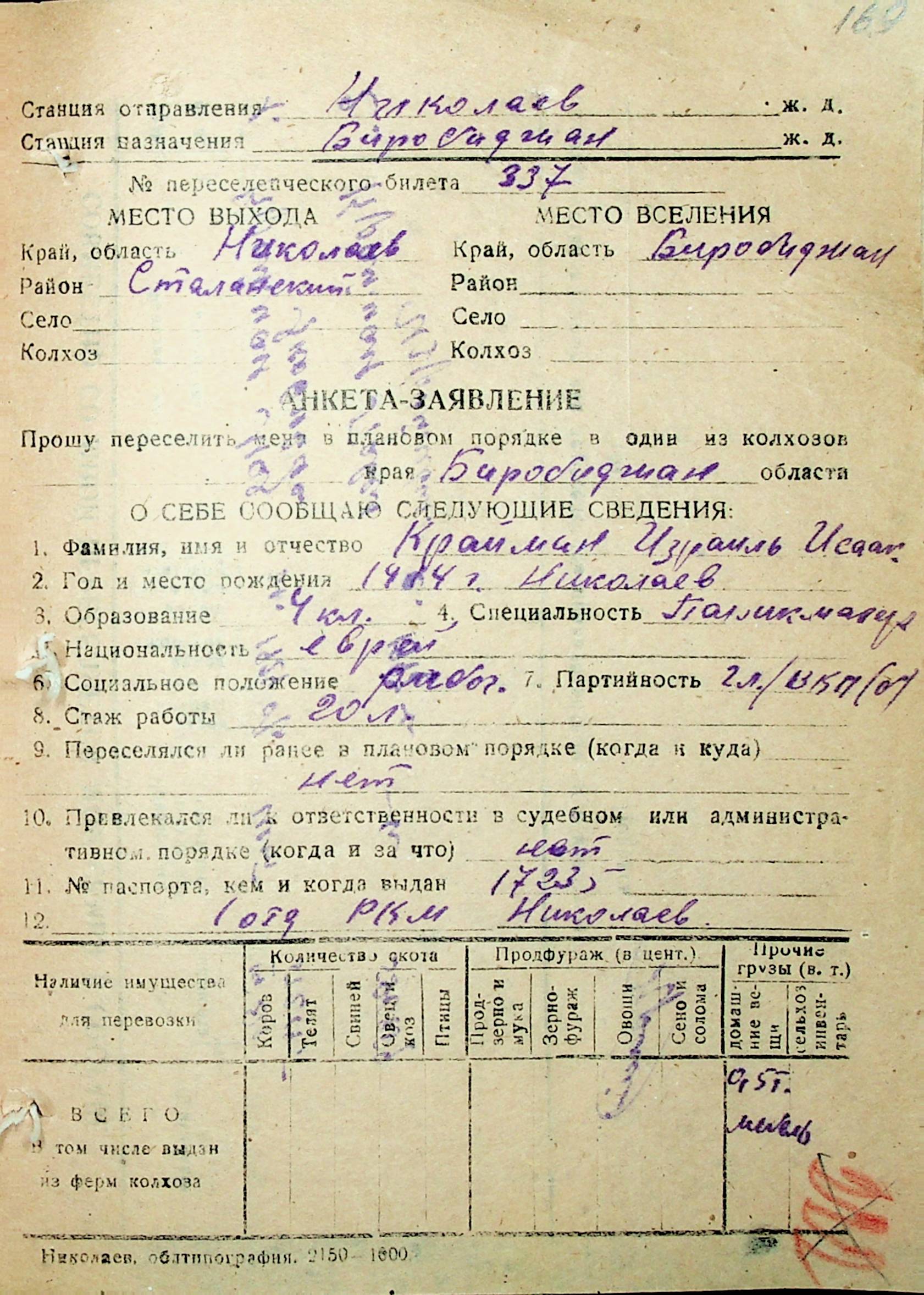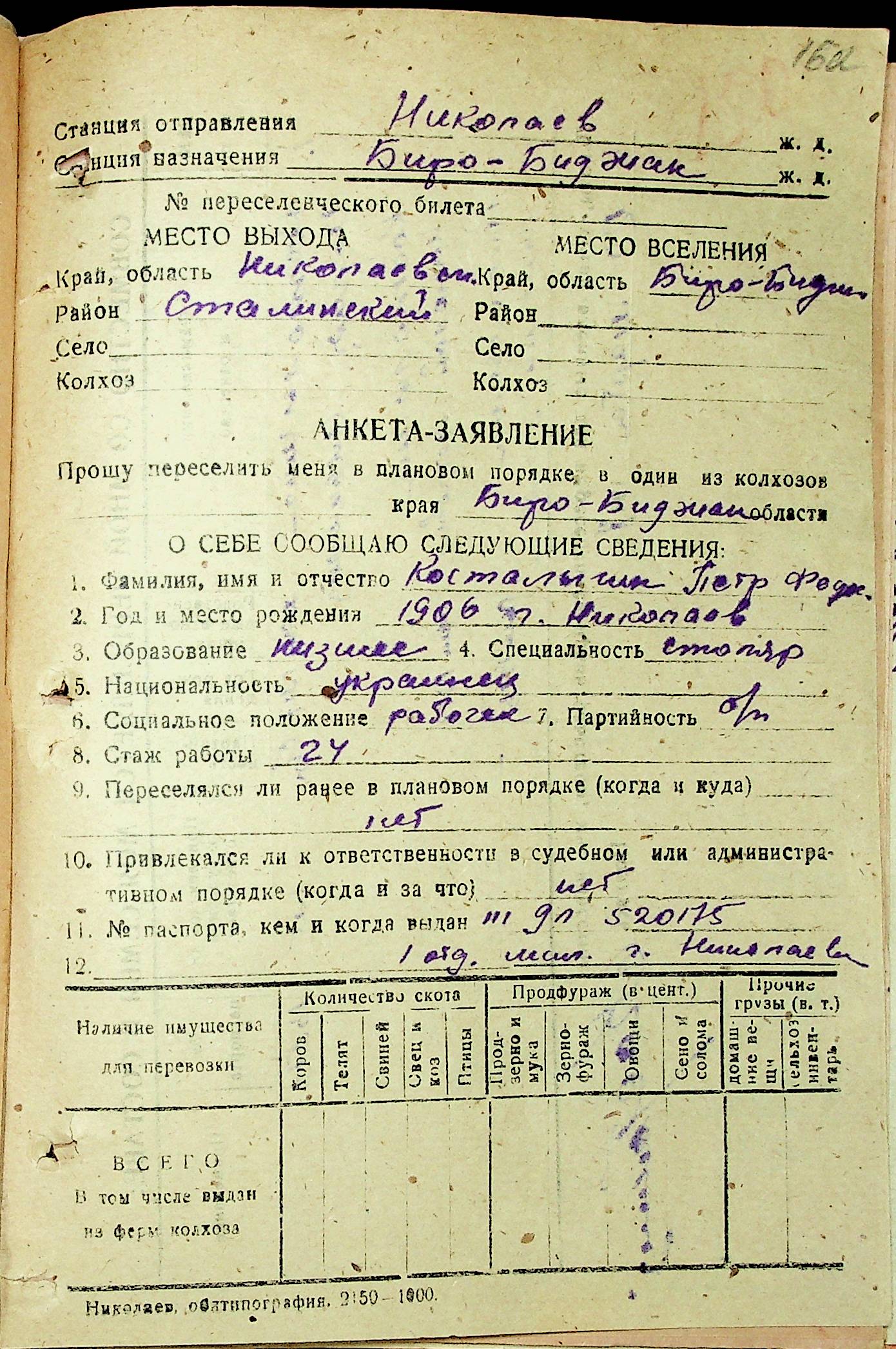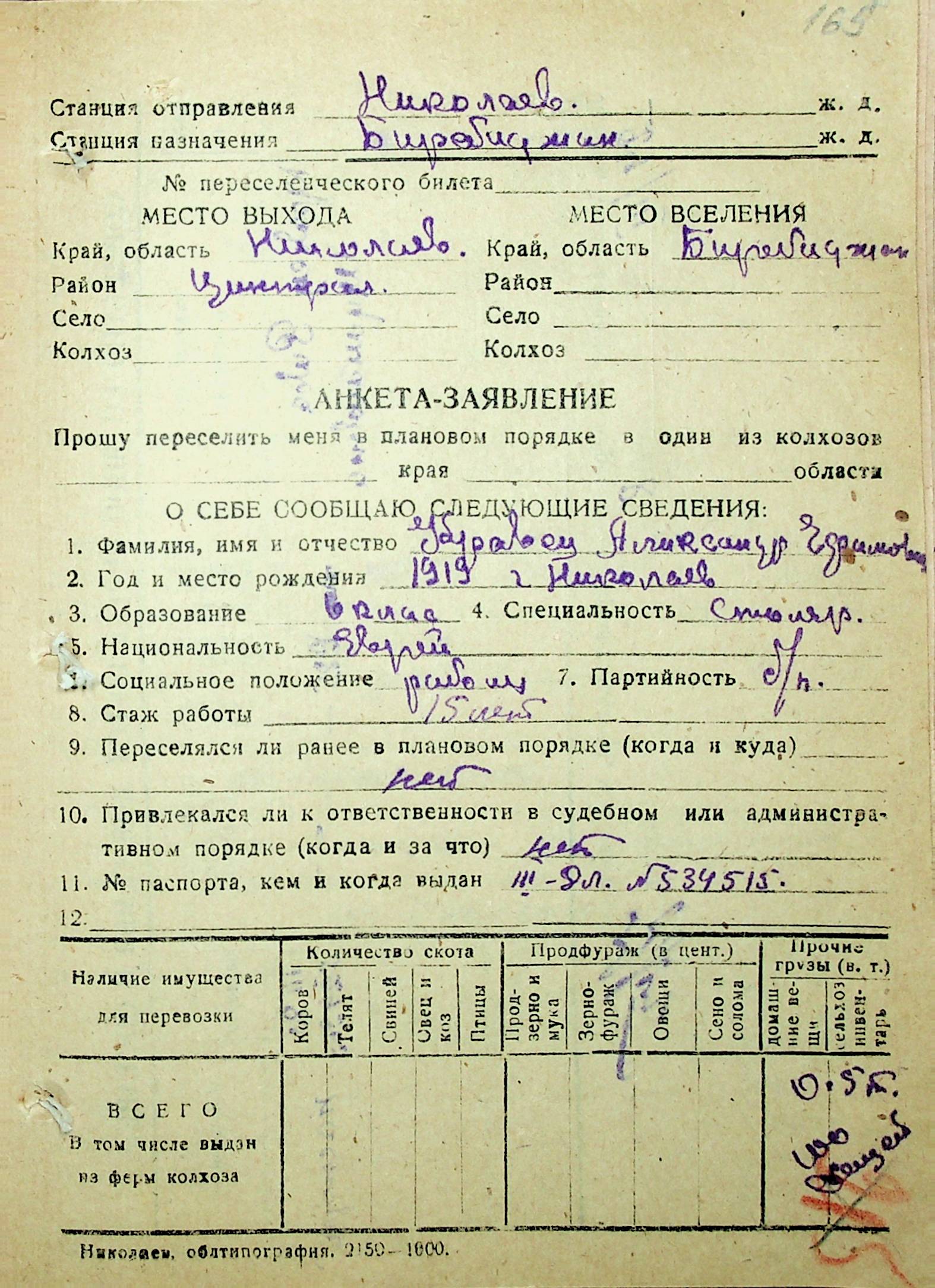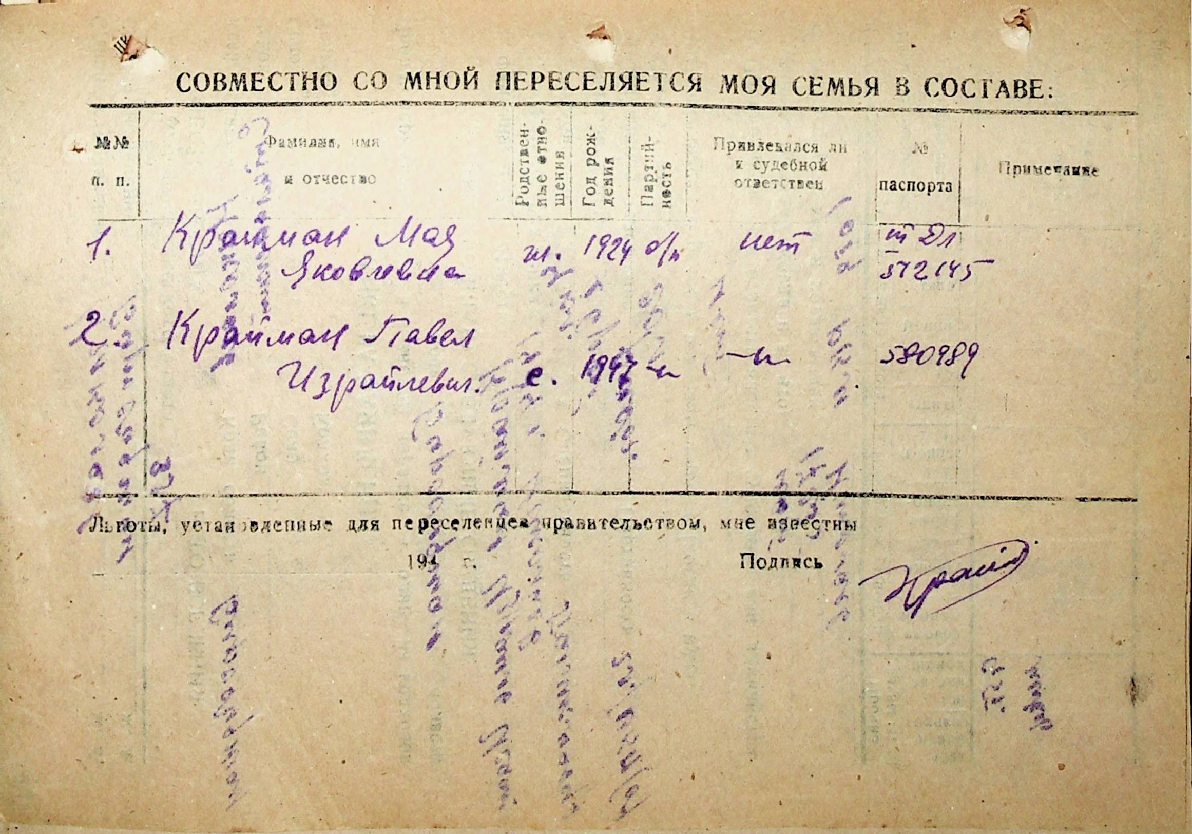 • • • • Справа № 30 “Анкети-заяви осіб, від’їжджаючих до Єврейської автономної області у 1948 році. Прізвища з літери «Д» по літеру «К»”