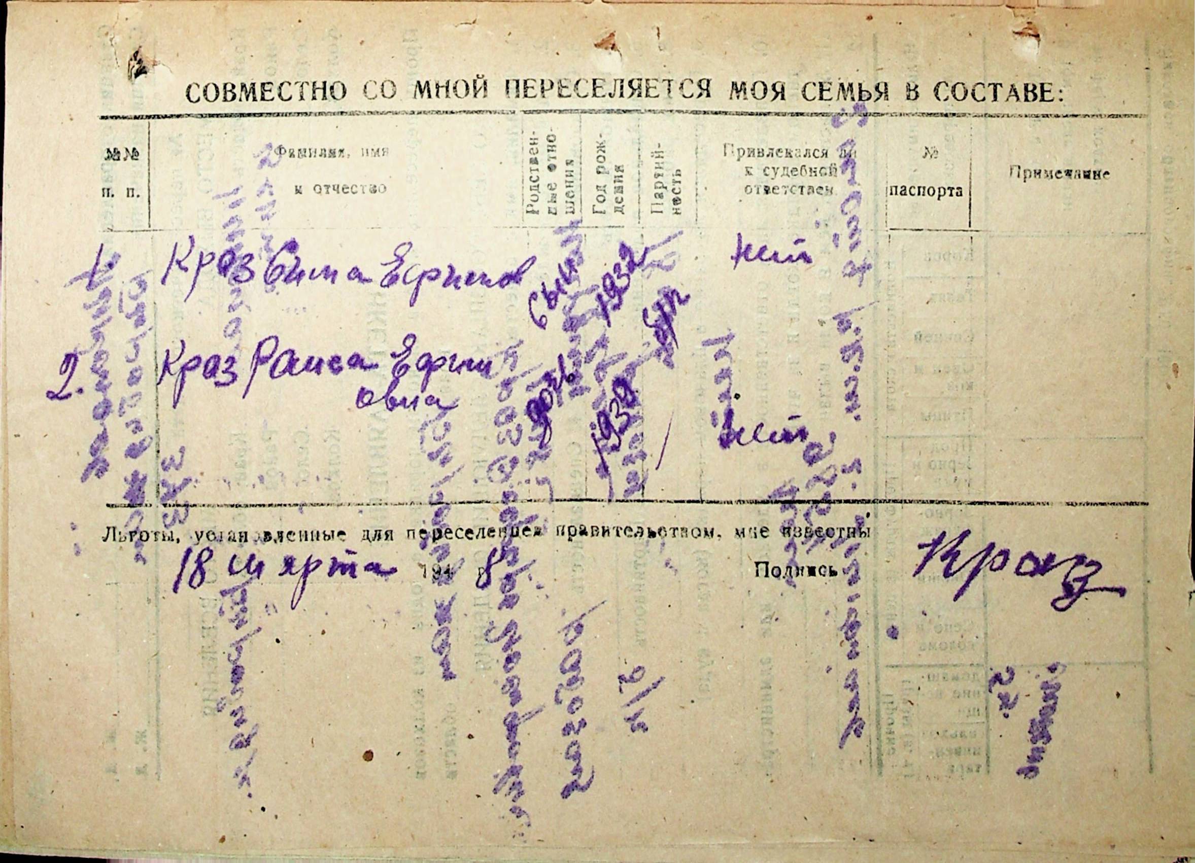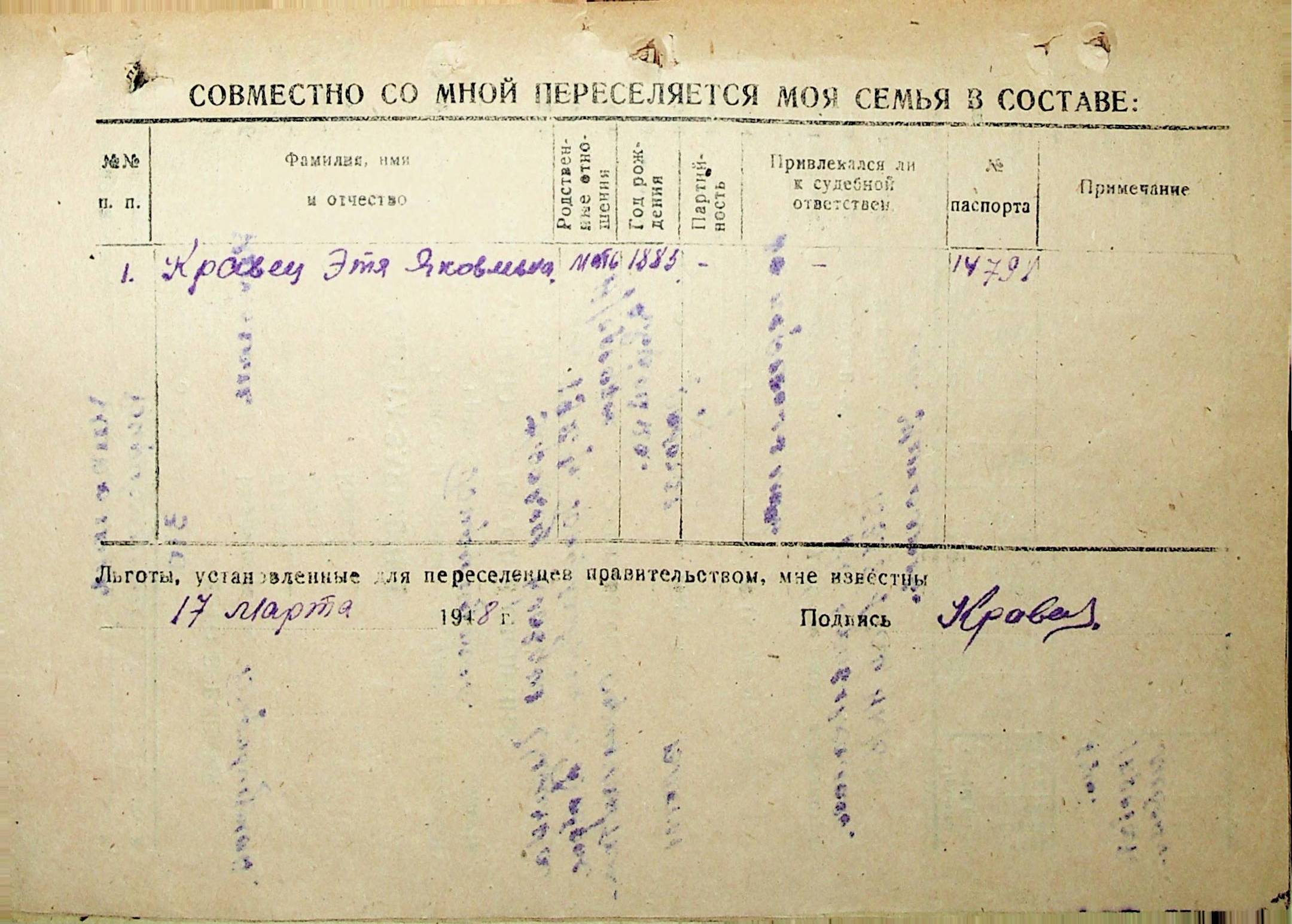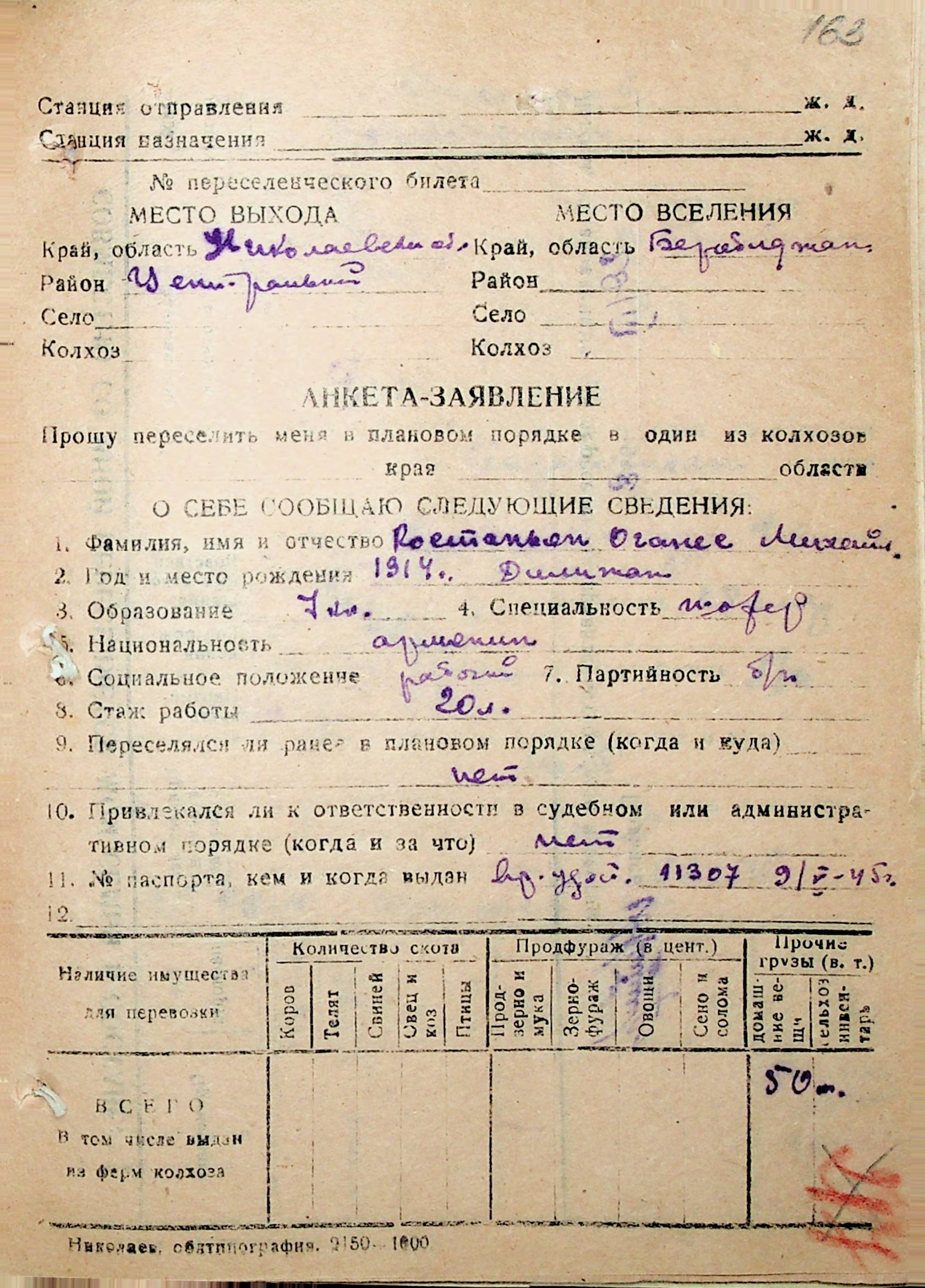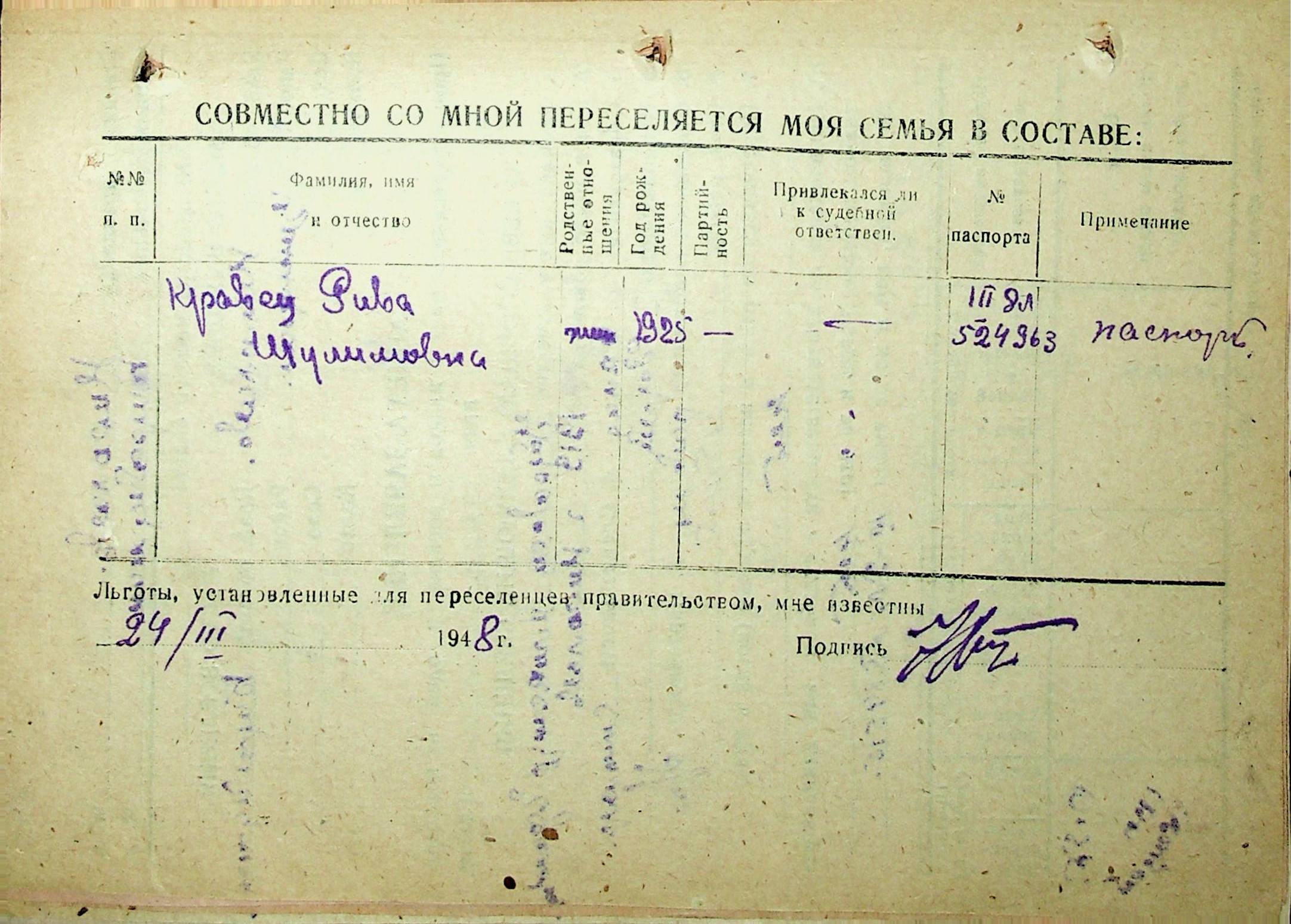 • • • • Справа № 30 “Анкети-заяви осіб, від’їжджаючих до Єврейської автономної області у 1948 році. Прізвища з літери «Д» по літеру «К»”