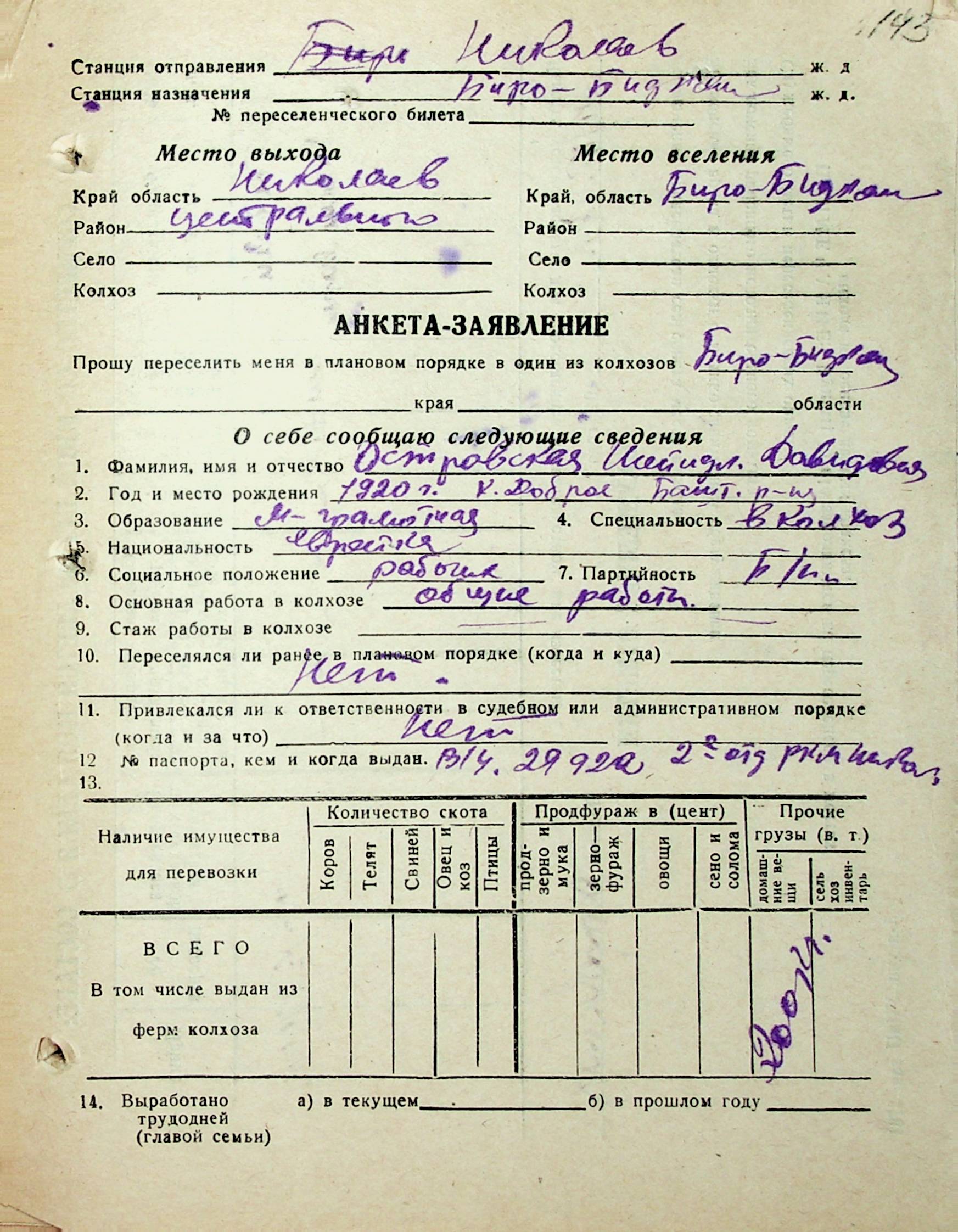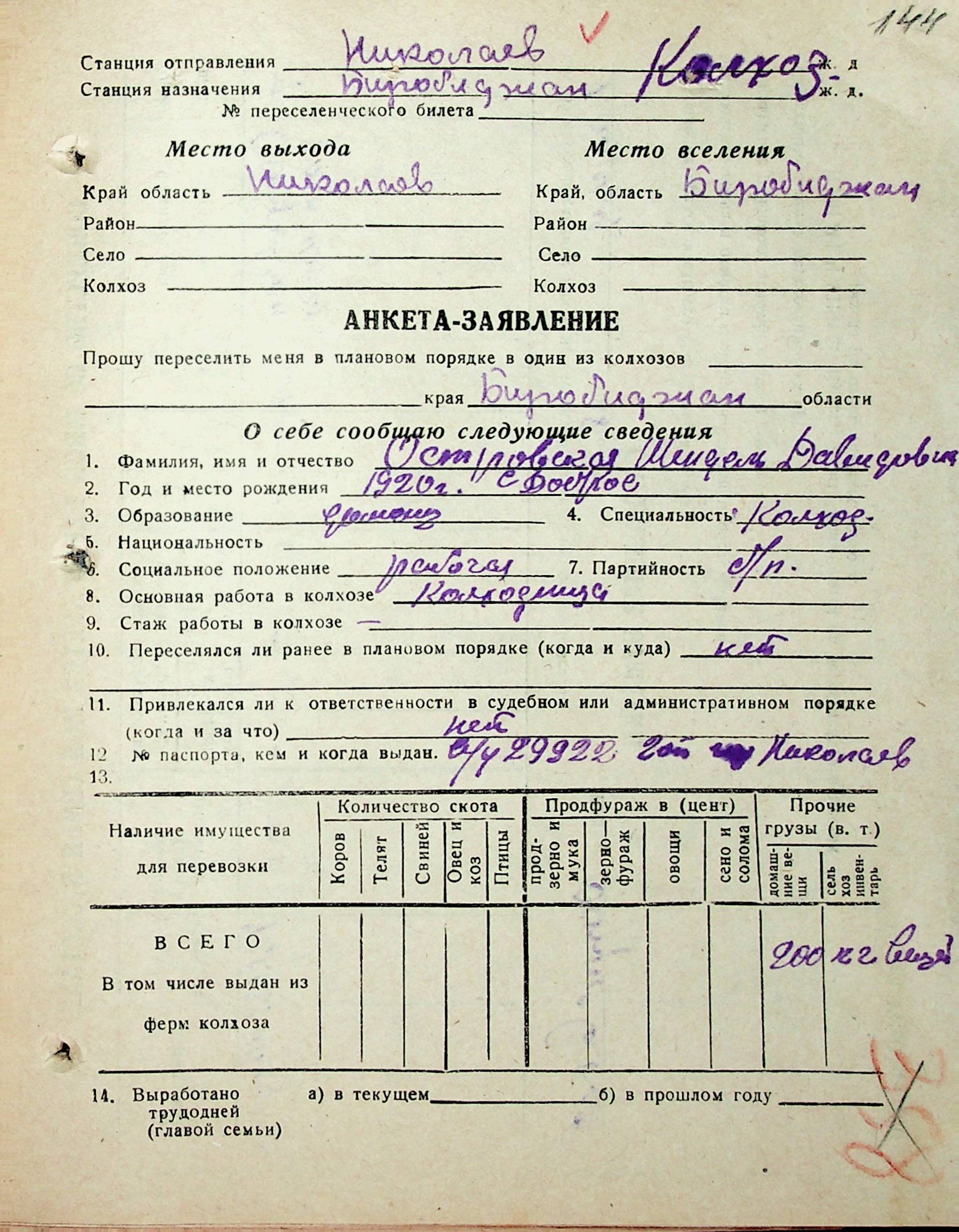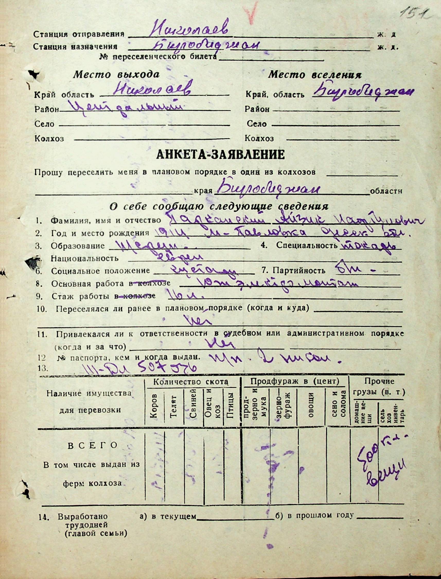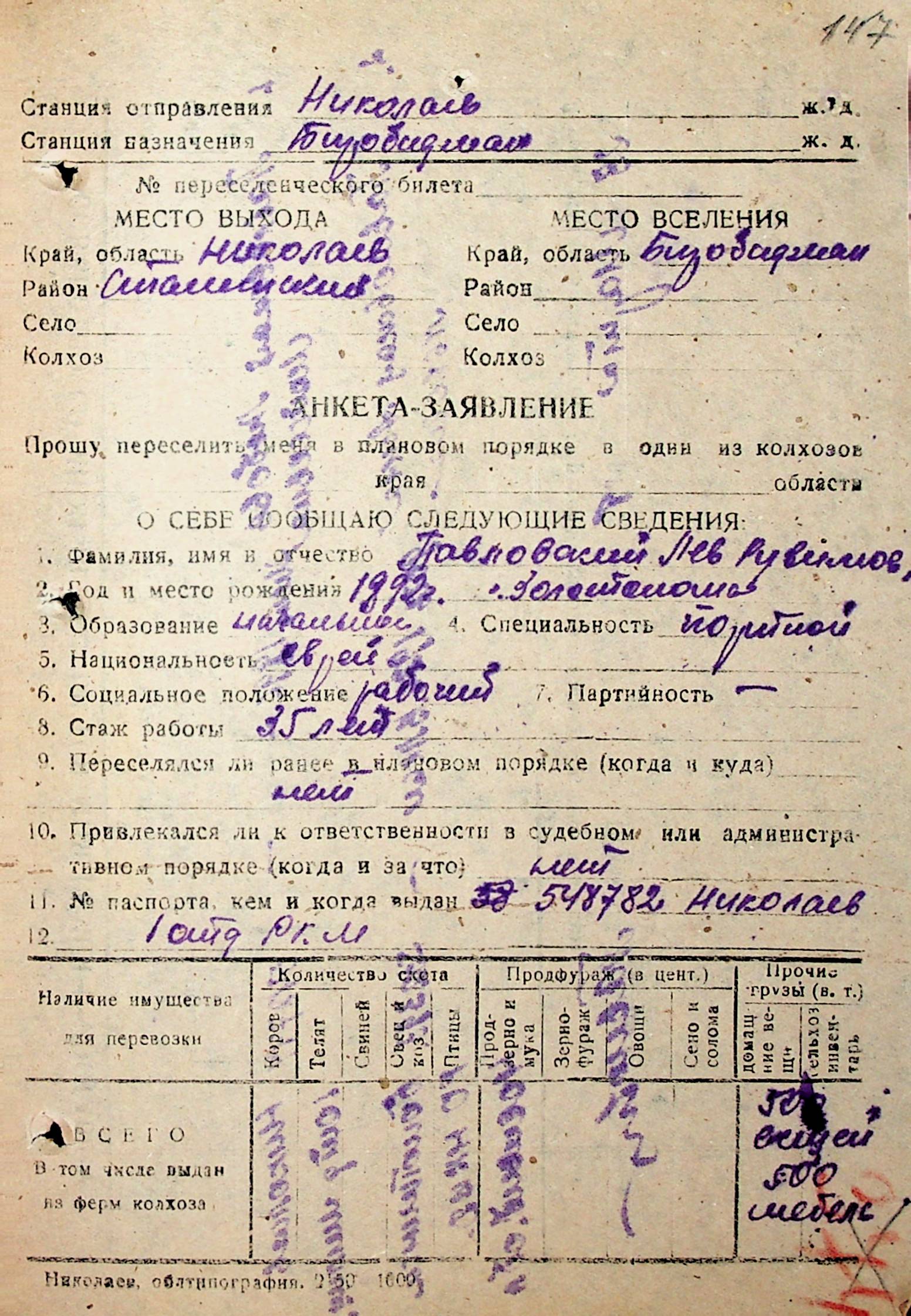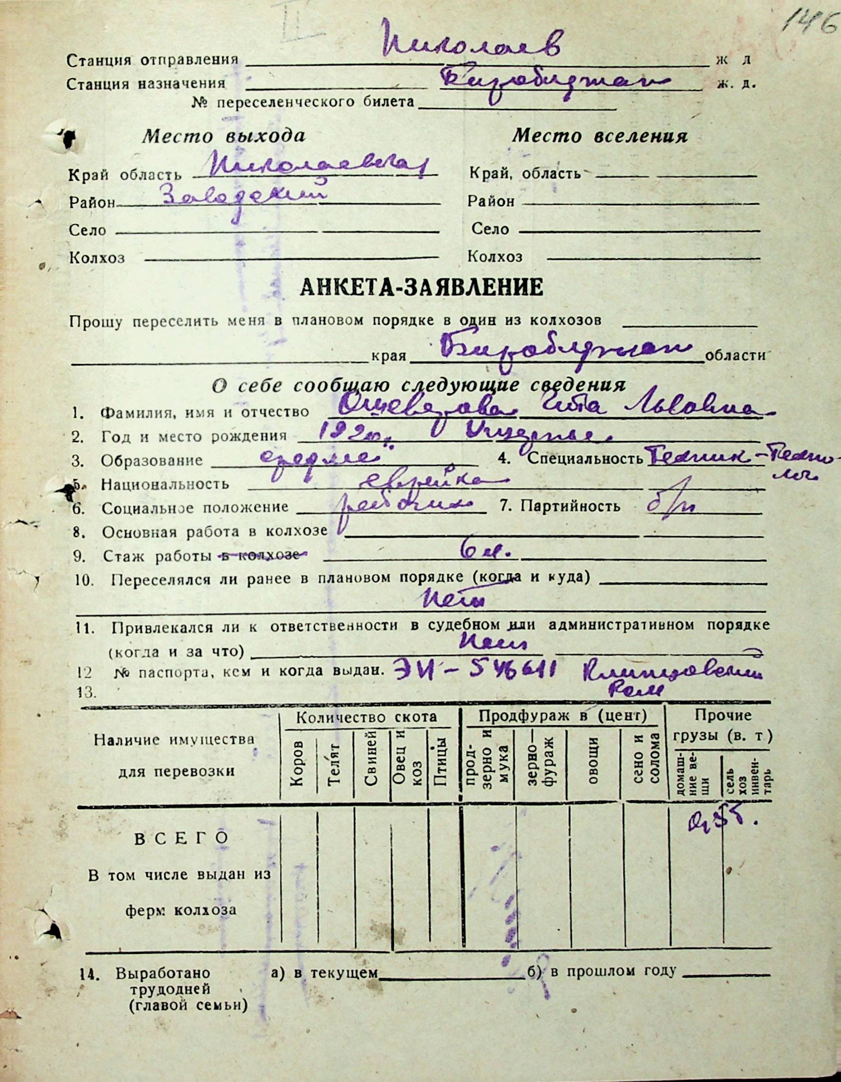 • • • • Справа № 31 “Анкети-заяви осіб, від’їжджаючих до Єврейської автономної області у 1948 році. Прізвища з літери «Л» по літеру «П»”