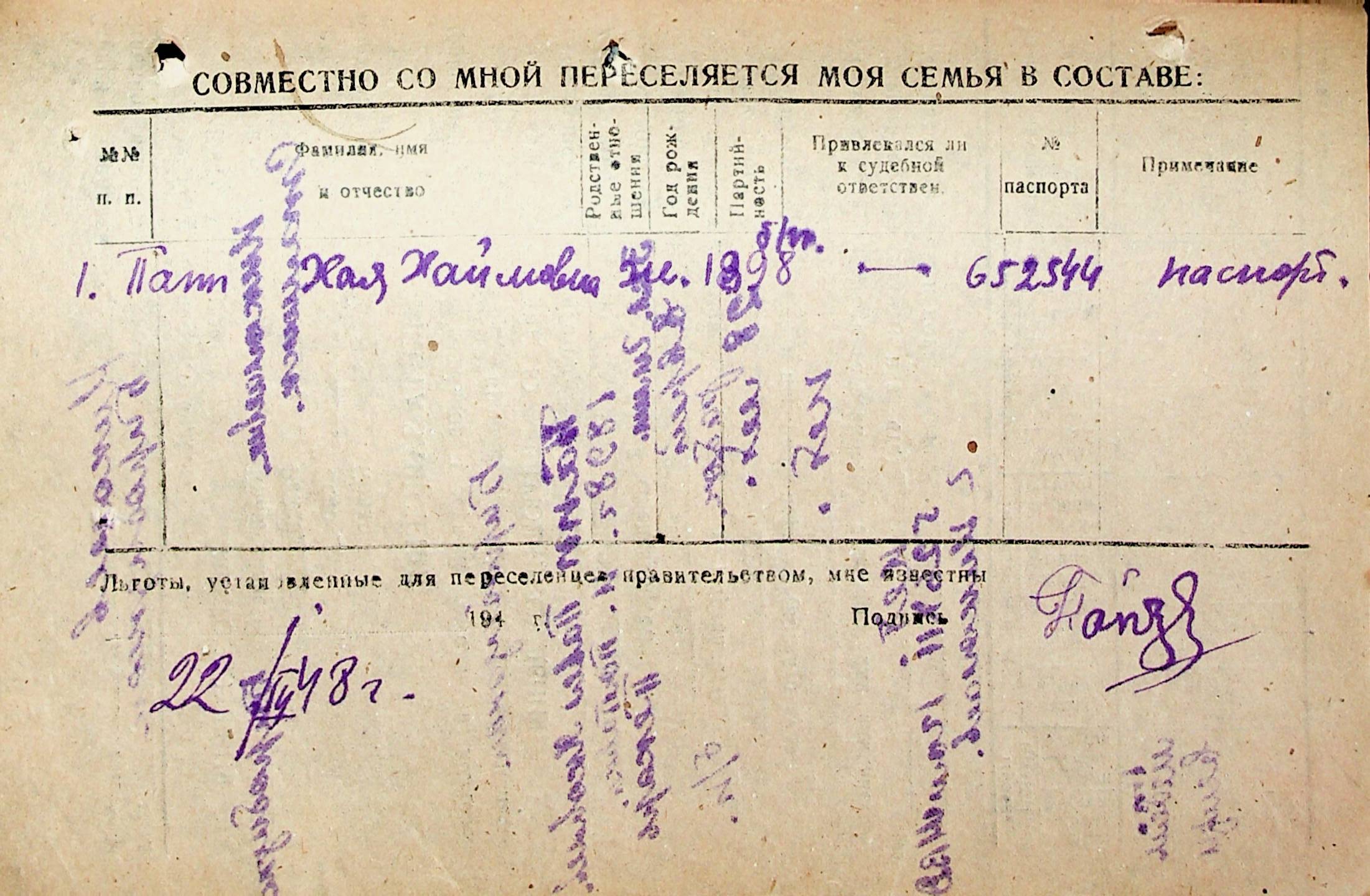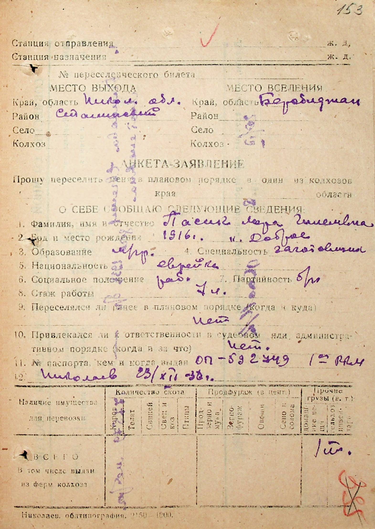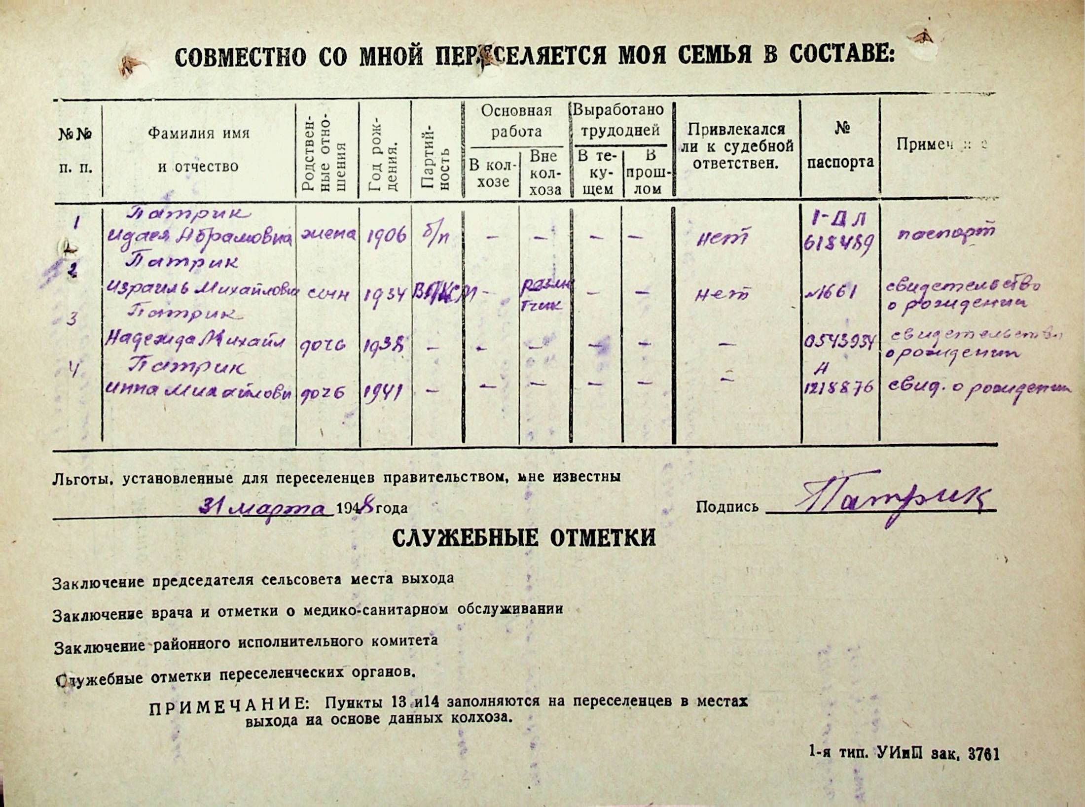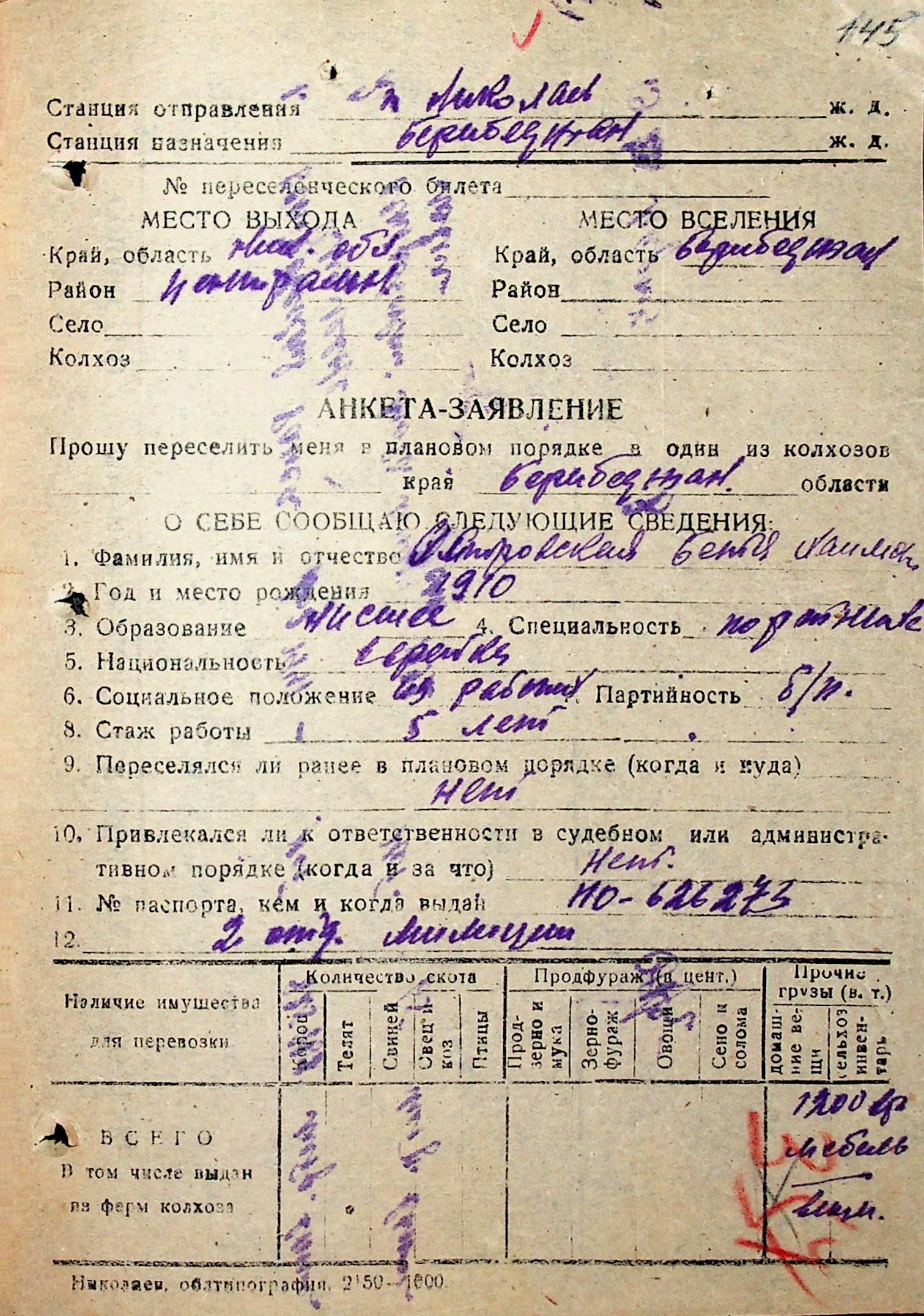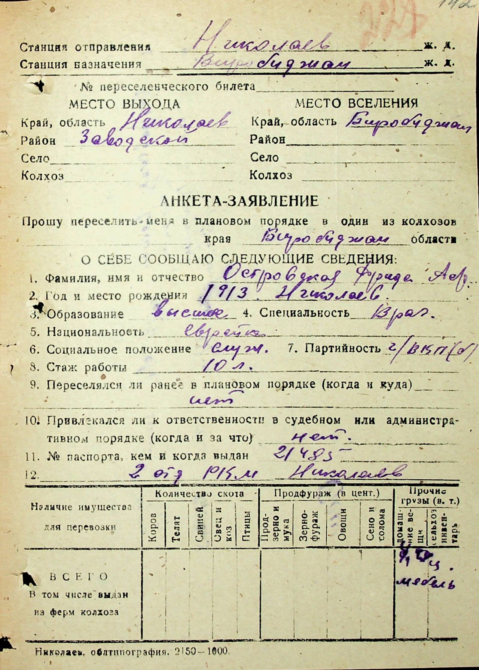 • • • • Справа № 31 “Анкети-заяви осіб, від’їжджаючих до Єврейської автономної області у 1948 році. Прізвища з літери «Л» по літеру «П»”