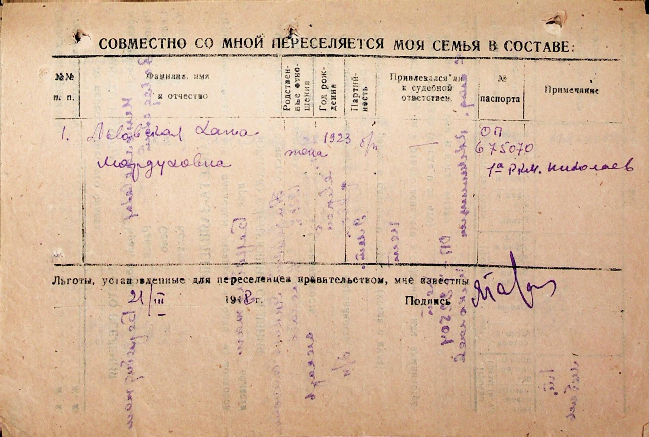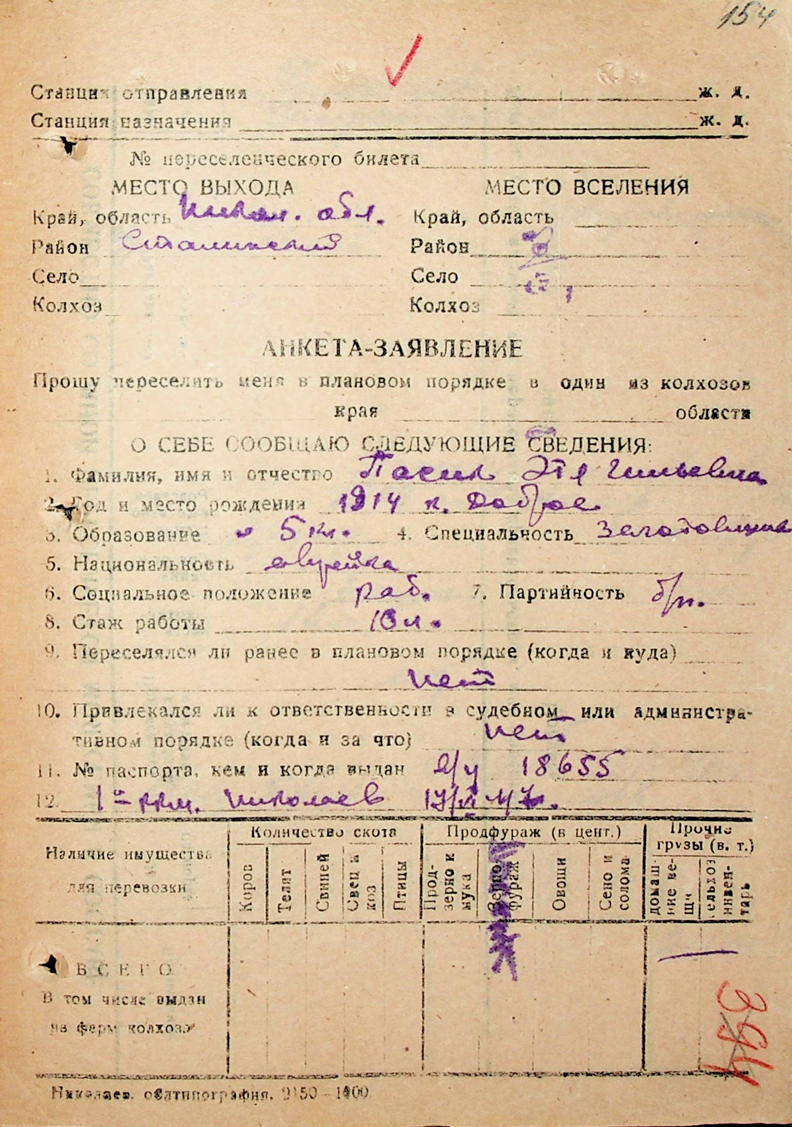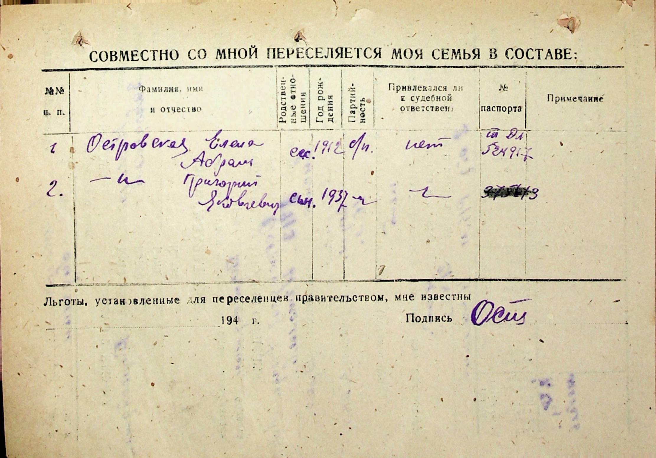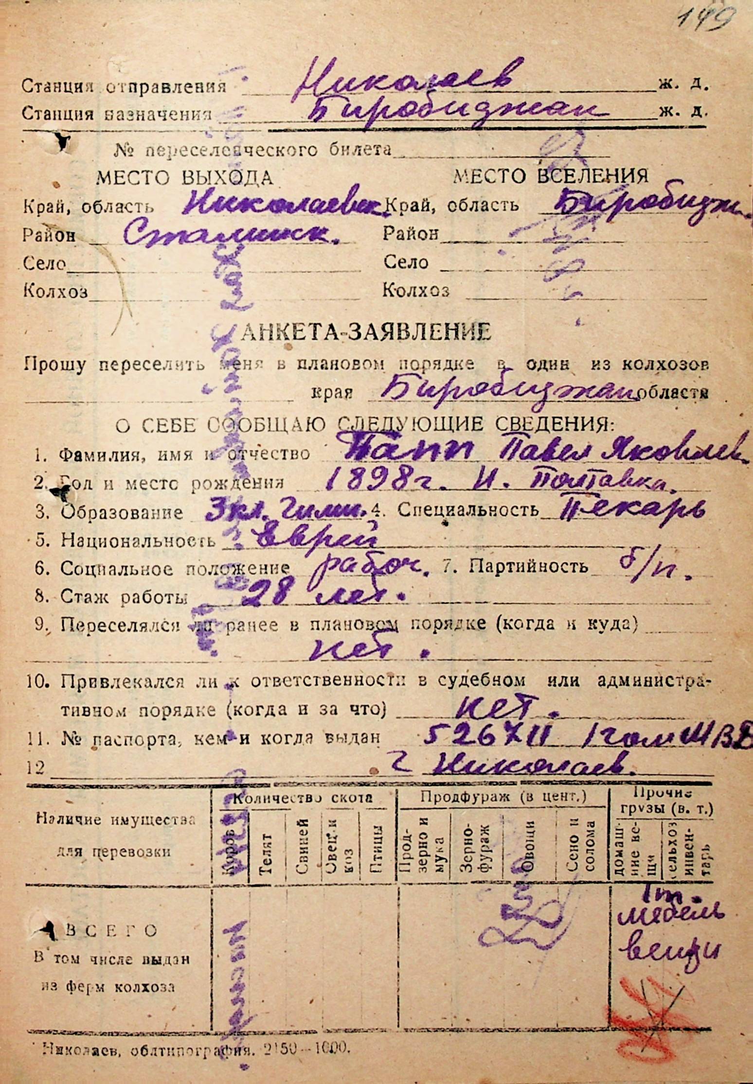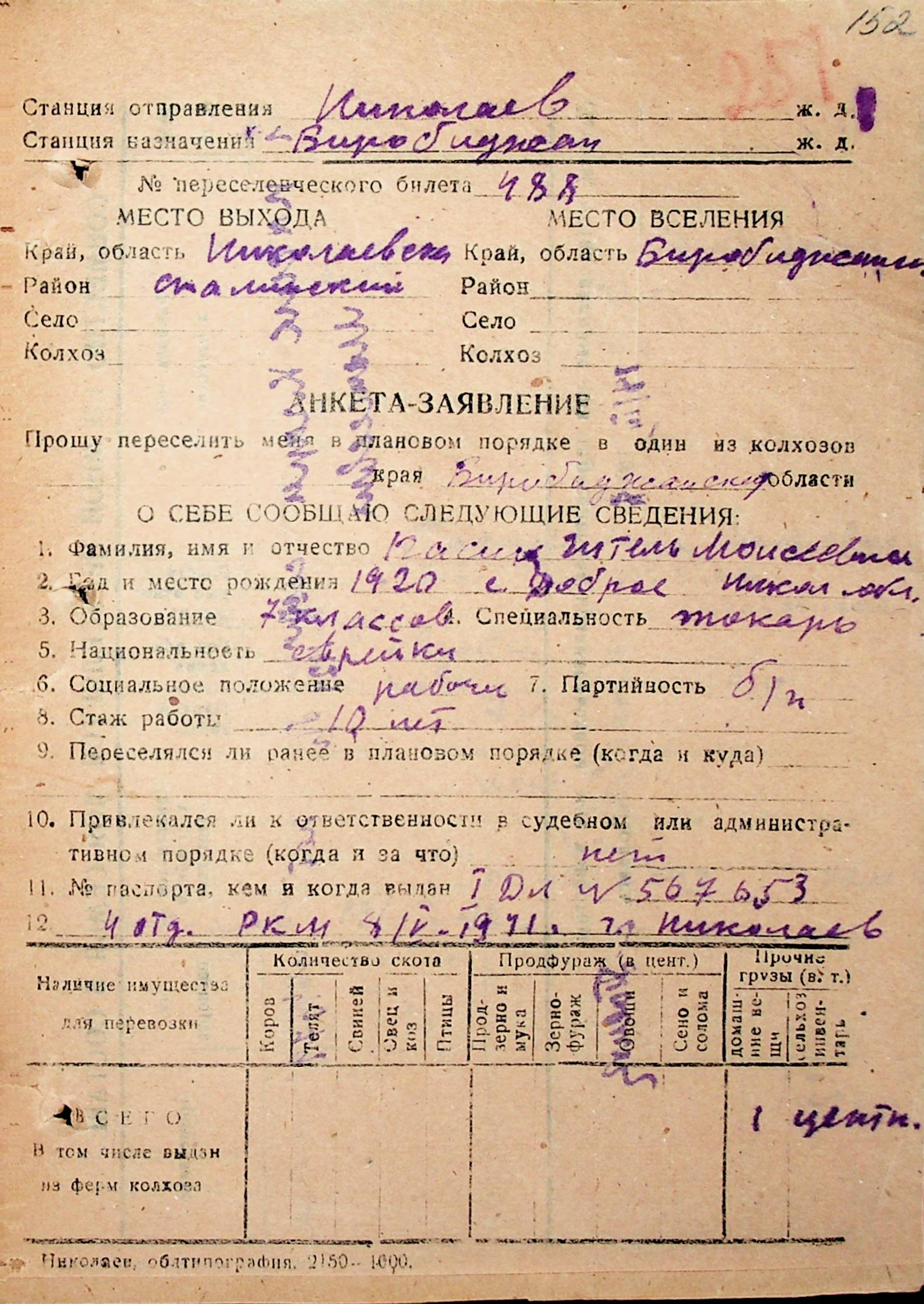 • • • • Справа № 31 “Анкети-заяви осіб, від’їжджаючих до Єврейської автономної області у 1948 році. Прізвища з літери «Л» по літеру «П»”