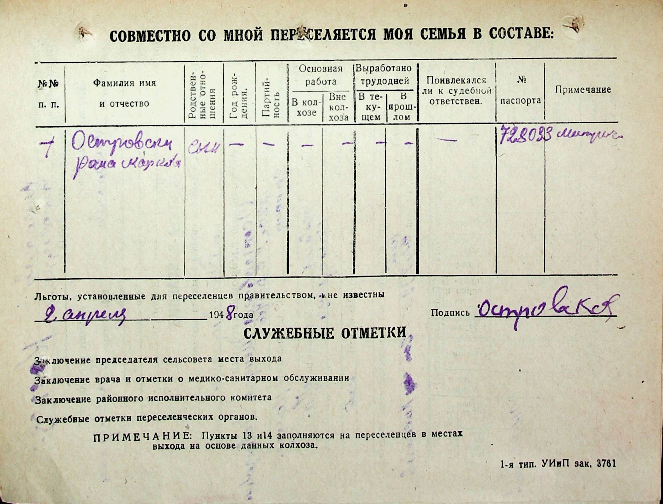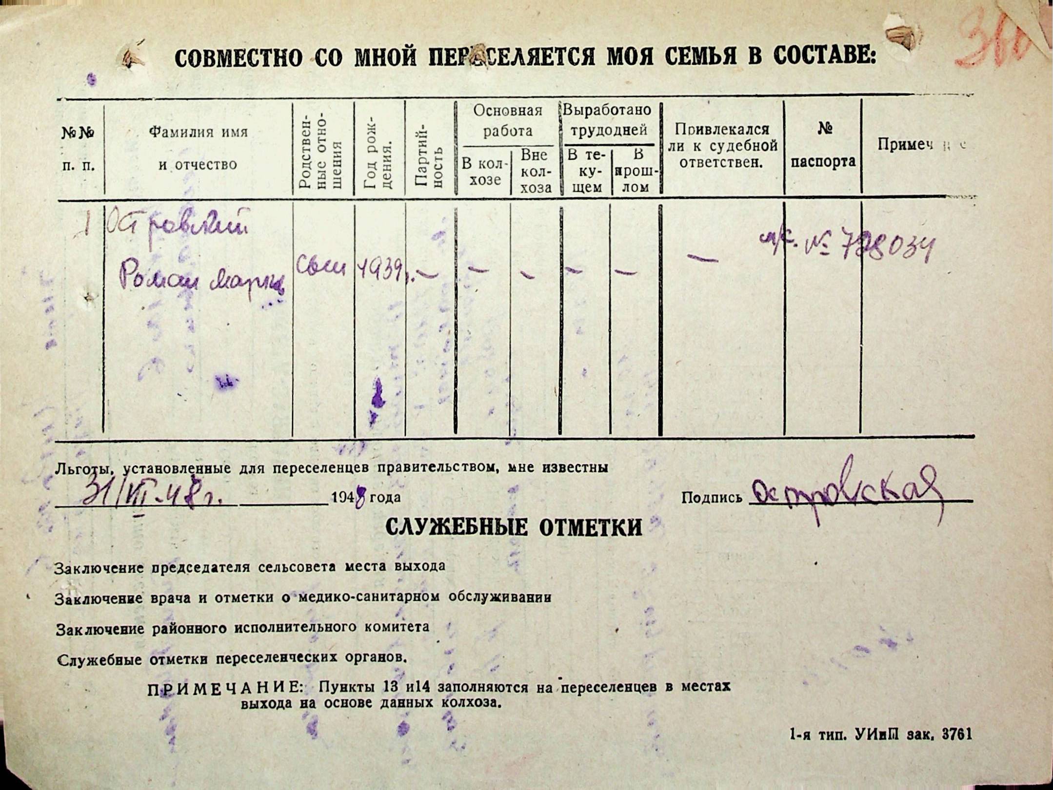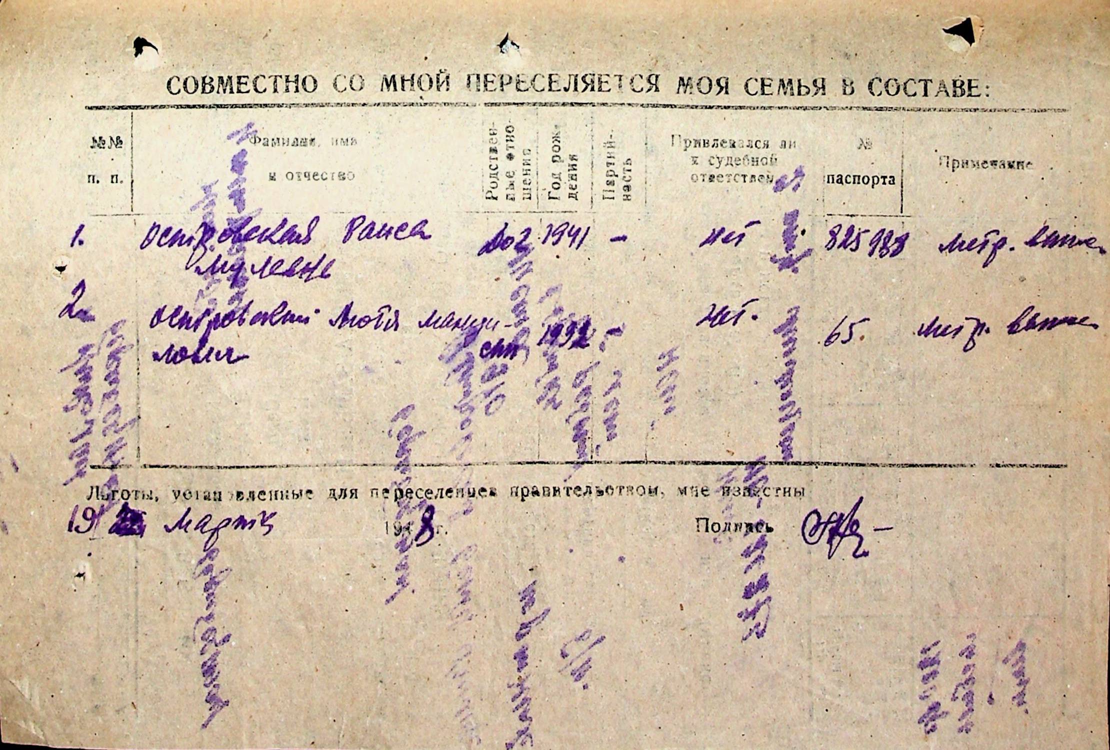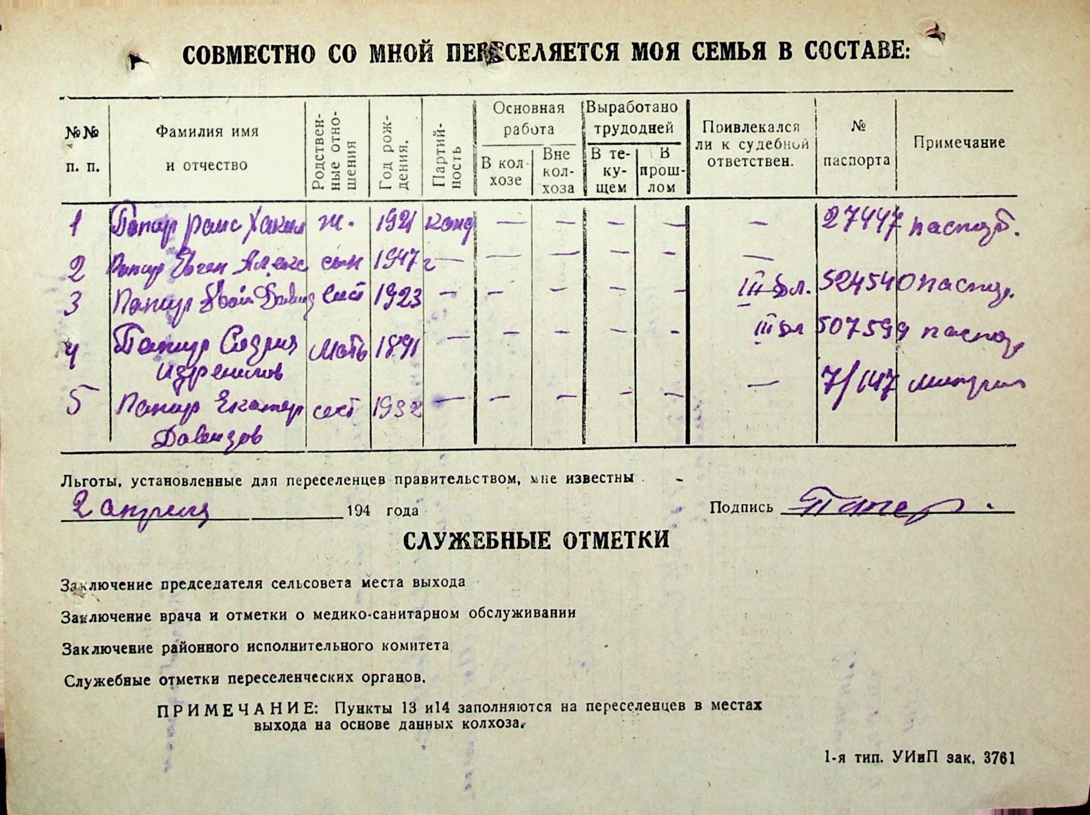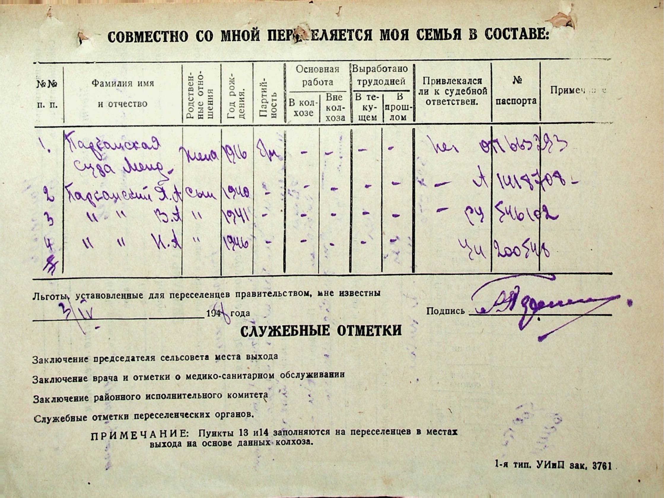 • • • • Справа № 31 “Анкети-заяви осіб, від’їжджаючих до Єврейської автономної області у 1948 році. Прізвища з літери «Л» по літеру «П»”