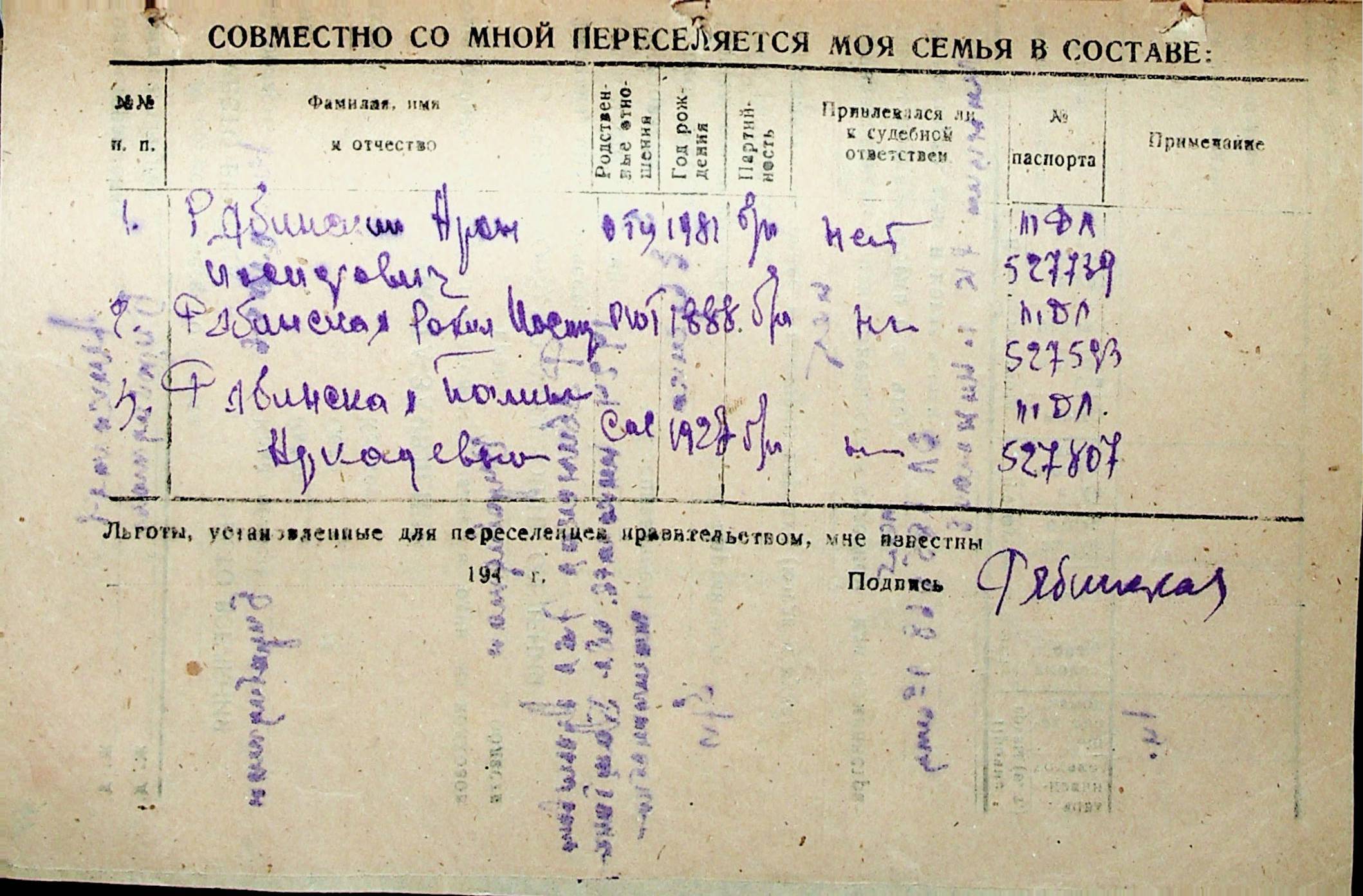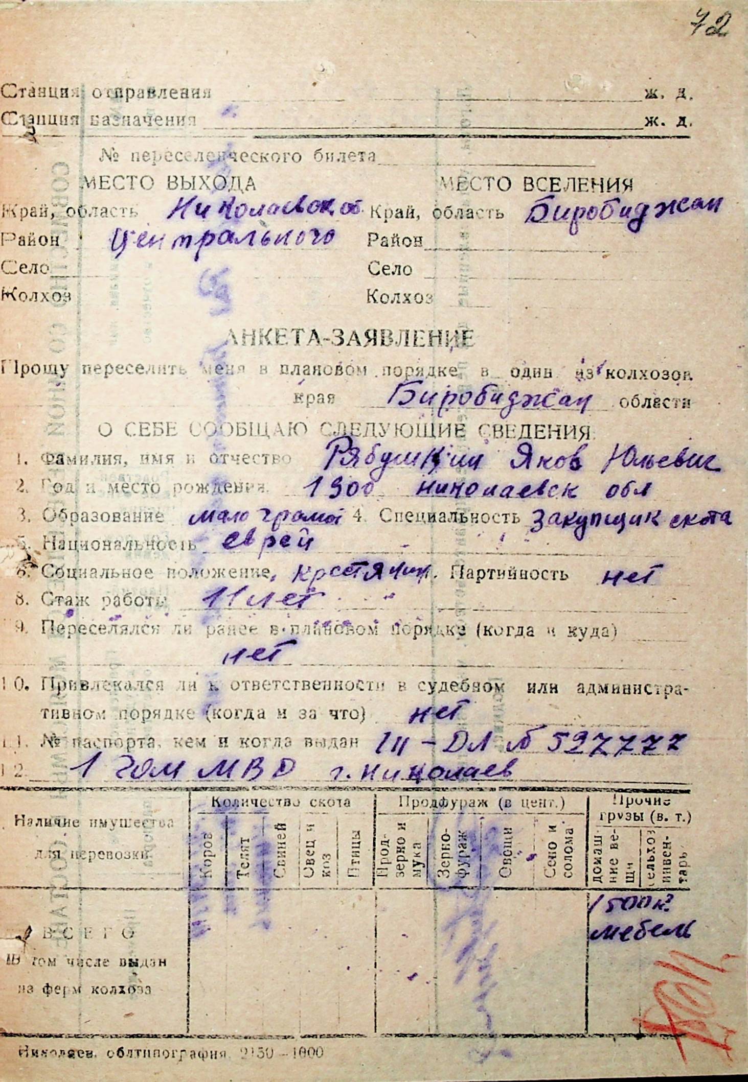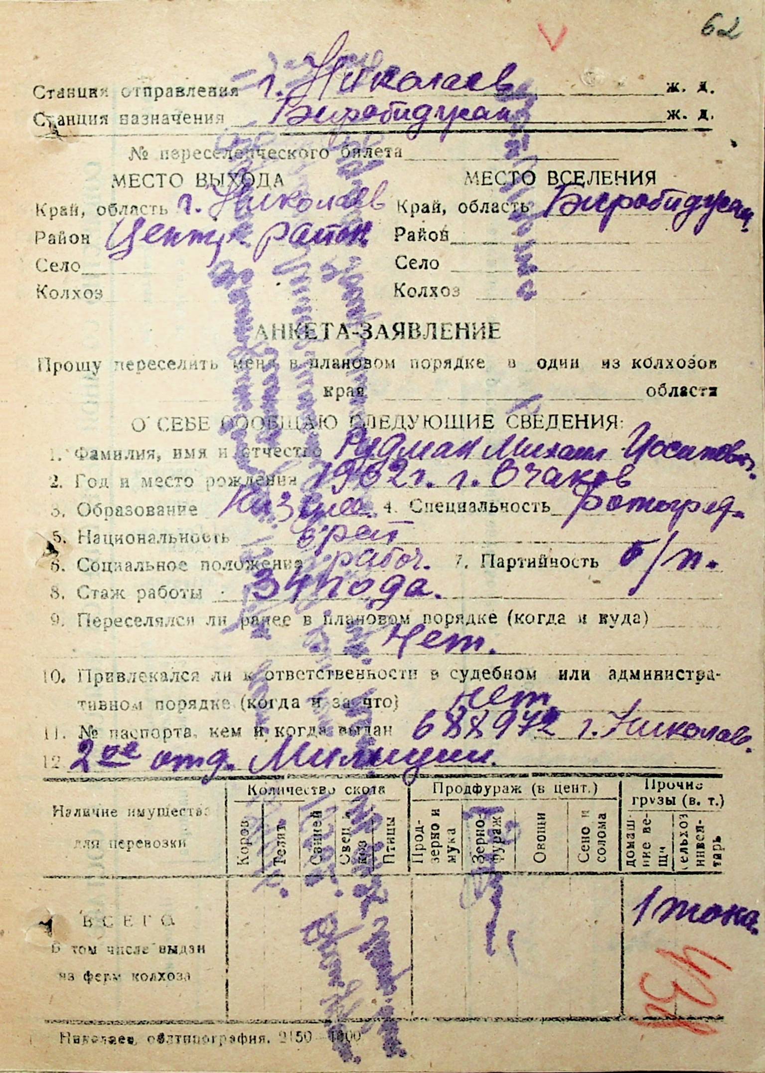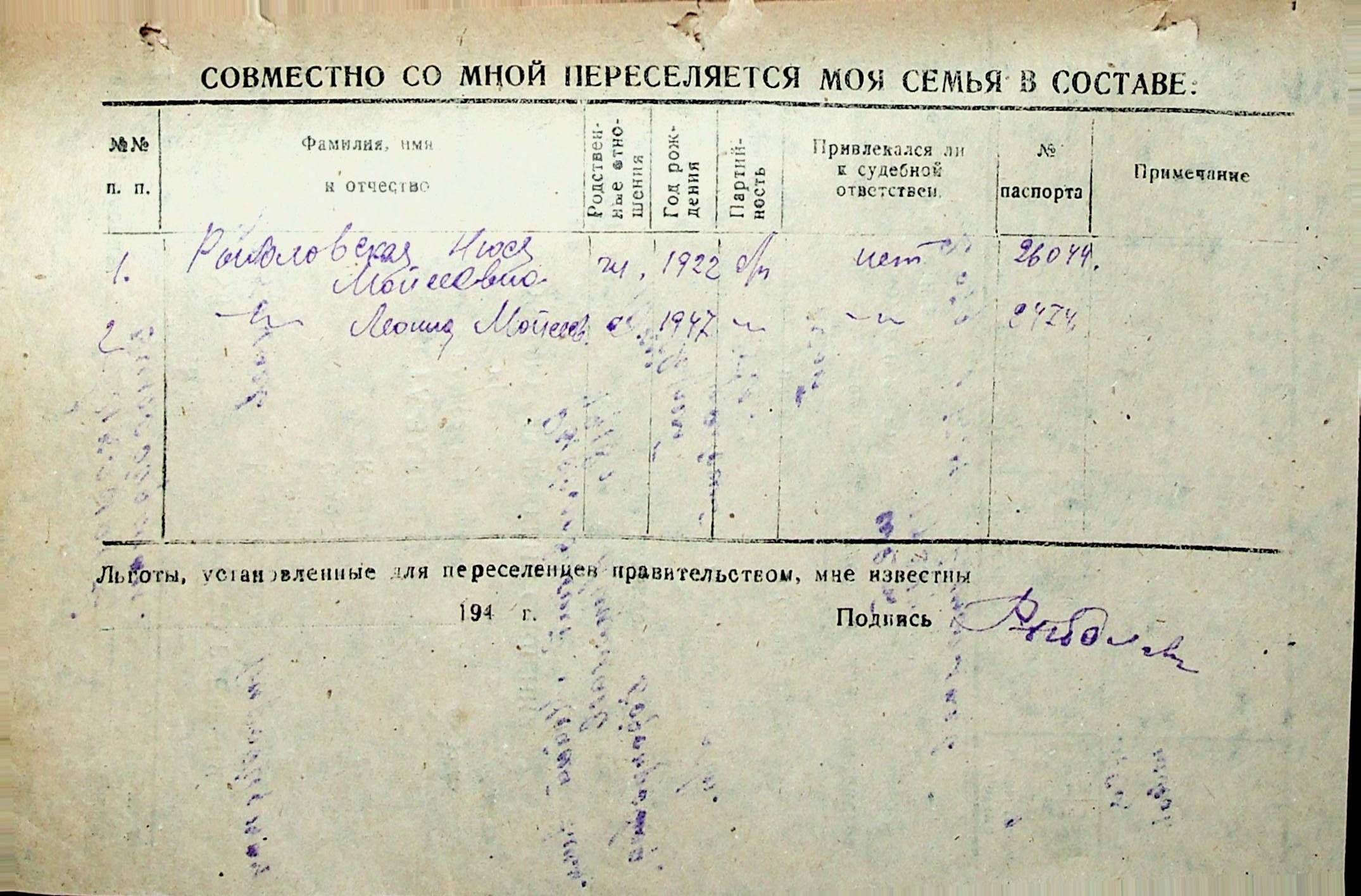 • • • • Справа № 32 “Анкети-заяви осіб, від’їжджаючих до Єврейської автономної області у 1948 році. Прізвища з літери «Р» по літеру «Ф»”