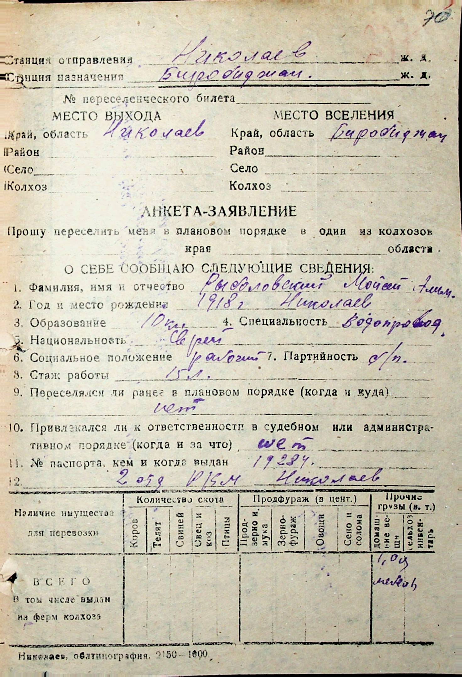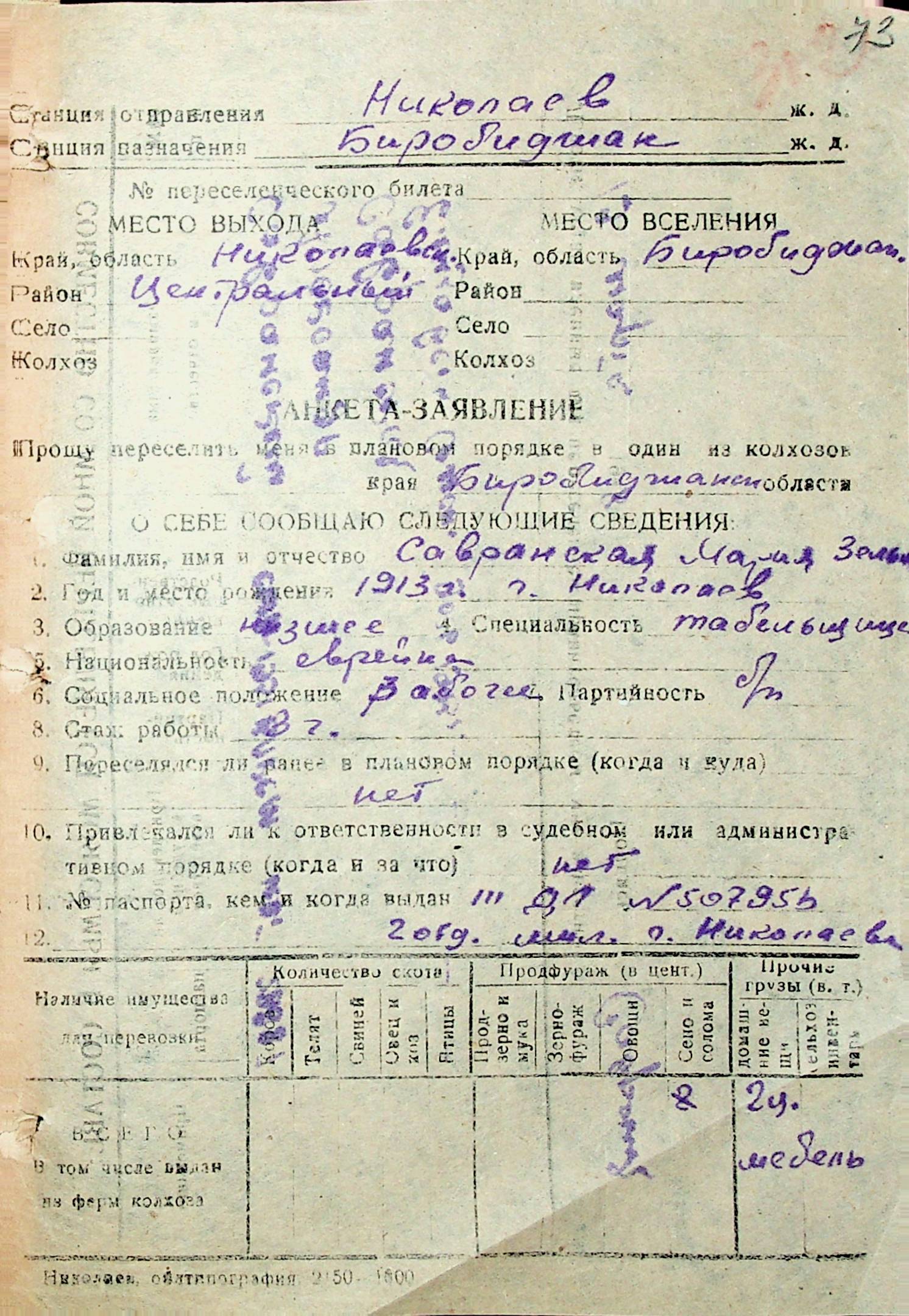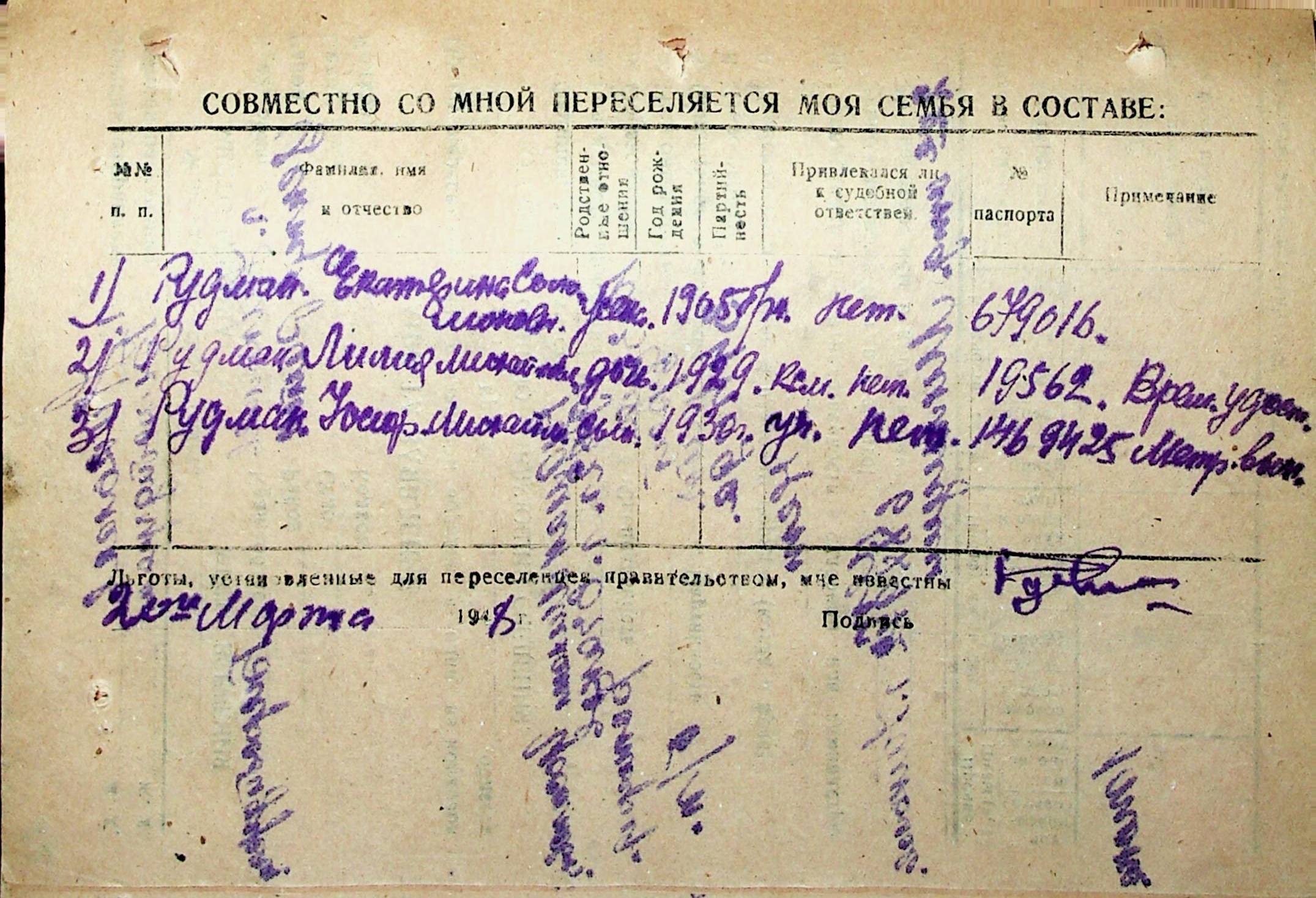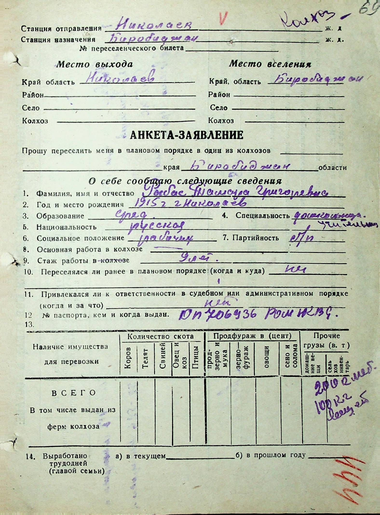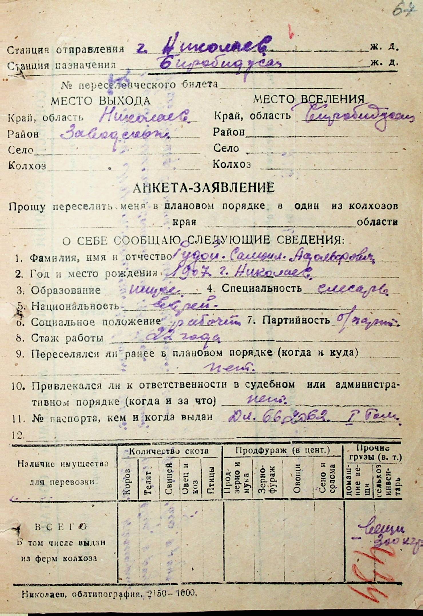 • • • • Справа № 32 “Анкети-заяви осіб, від’їжджаючих до Єврейської автономної області у 1948 році. Прізвища з літери «Р» по літеру «Ф»”