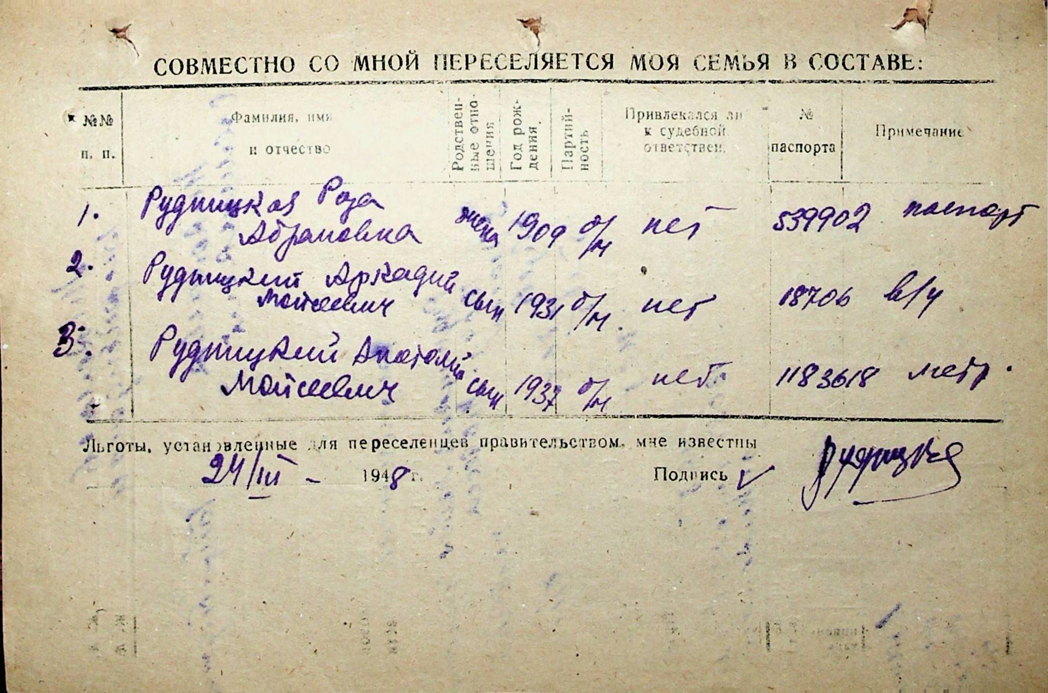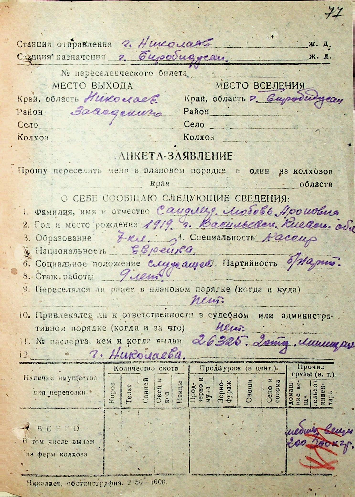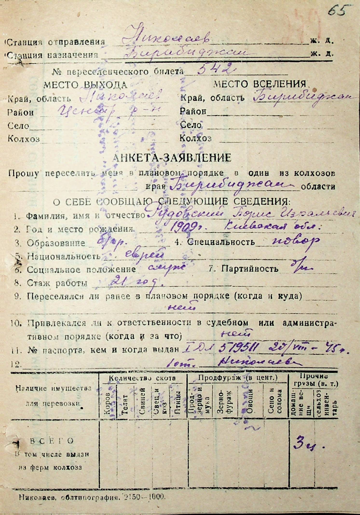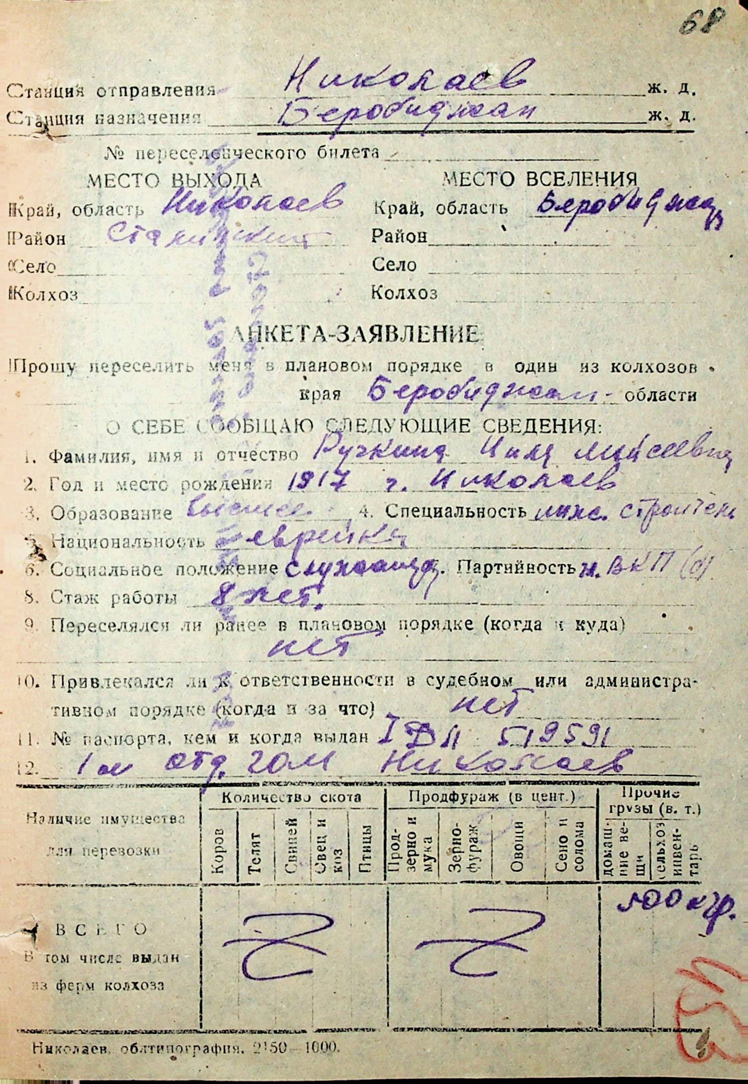 • • • • Справа № 32 “Анкети-заяви осіб, від’їжджаючих до Єврейської автономної області у 1948 році. Прізвища з літери «Р» по літеру «Ф»”