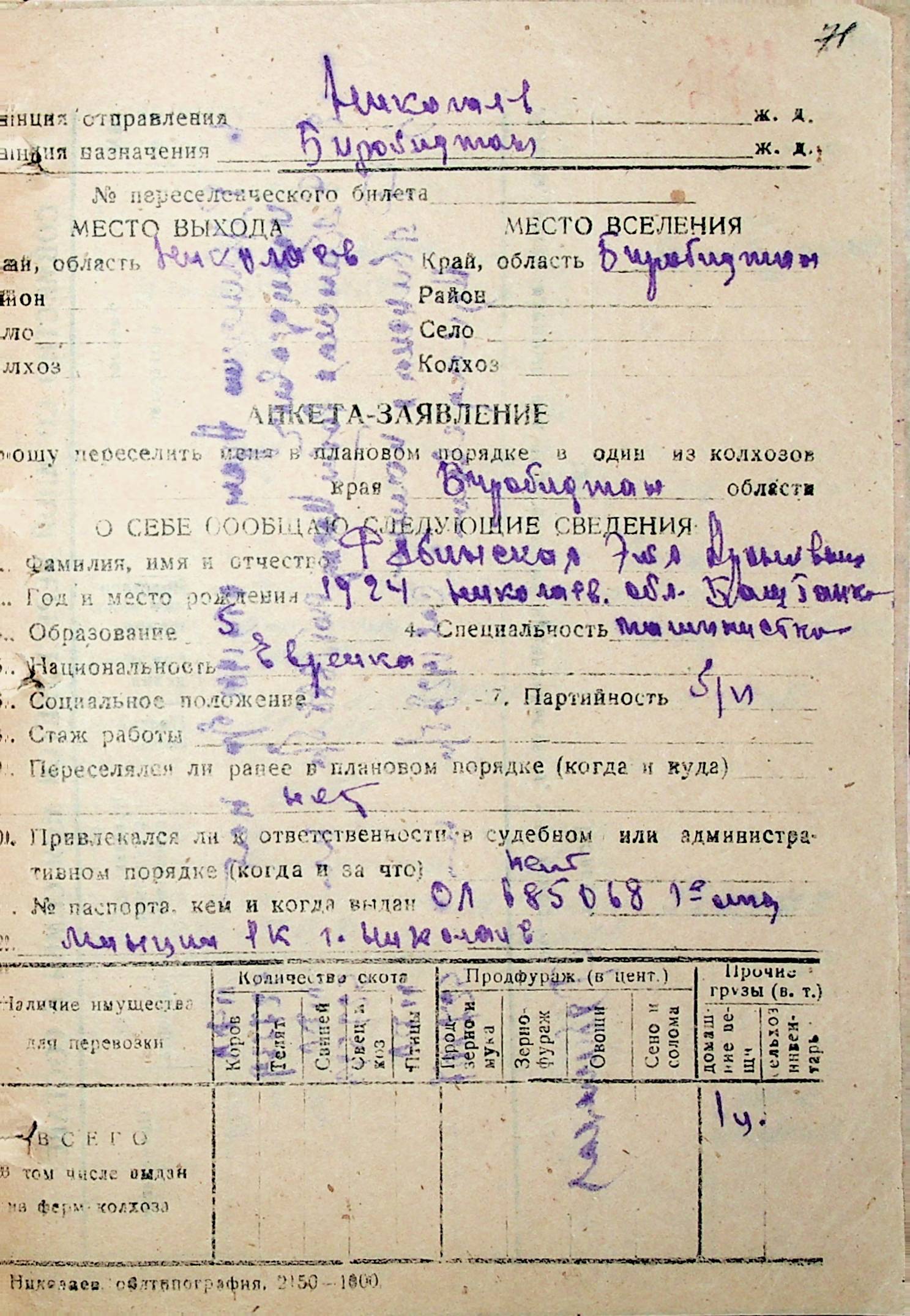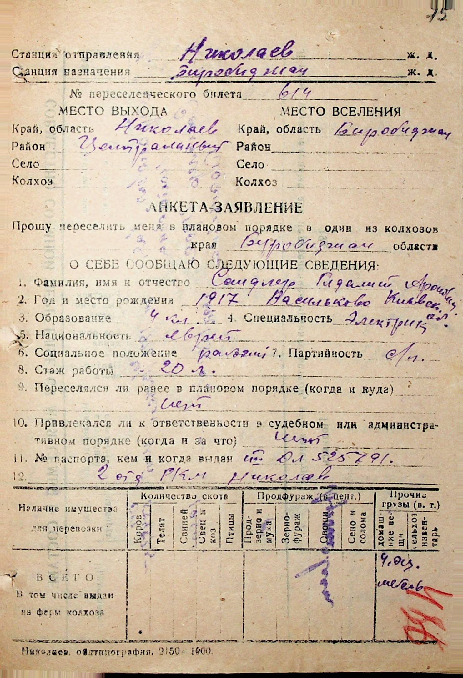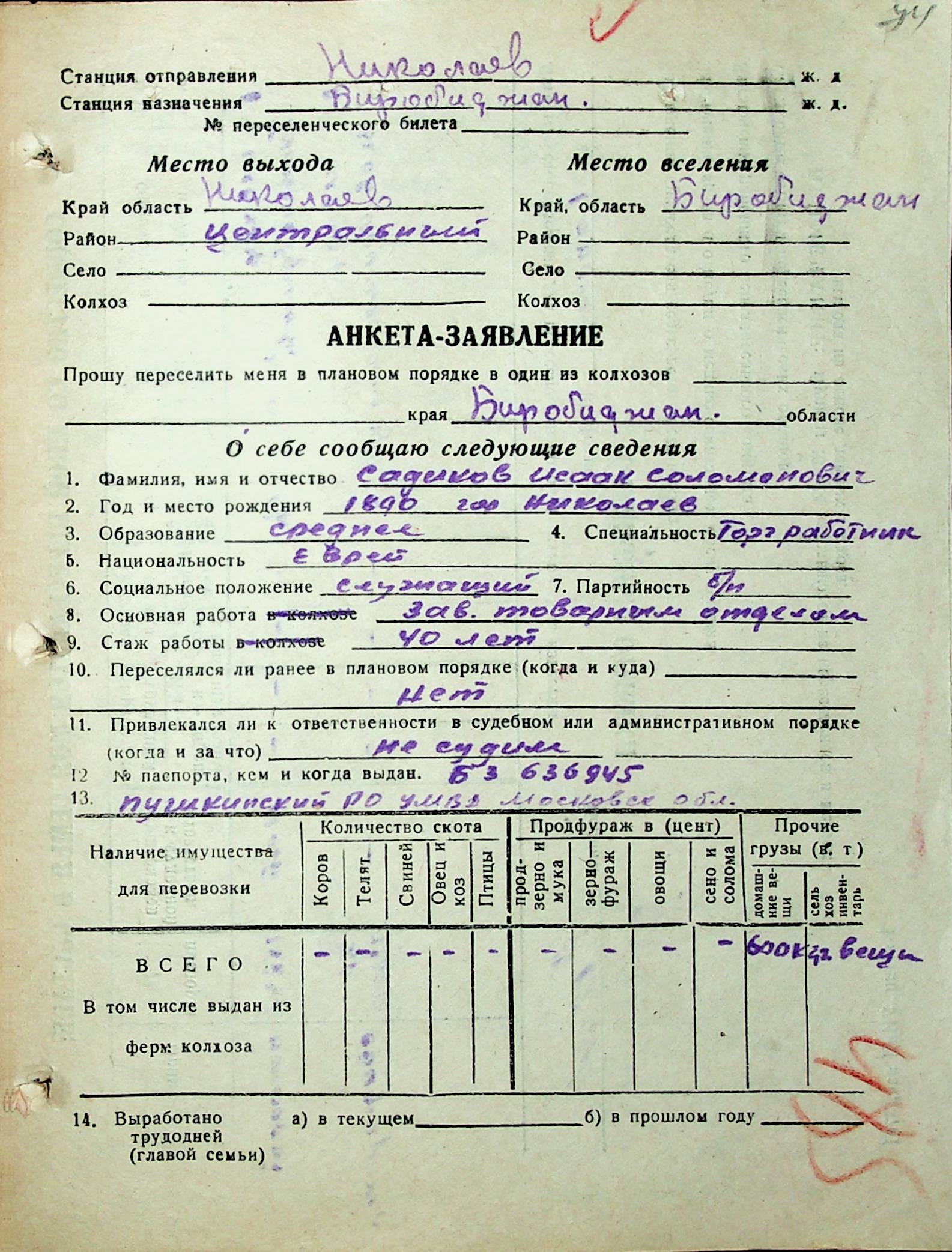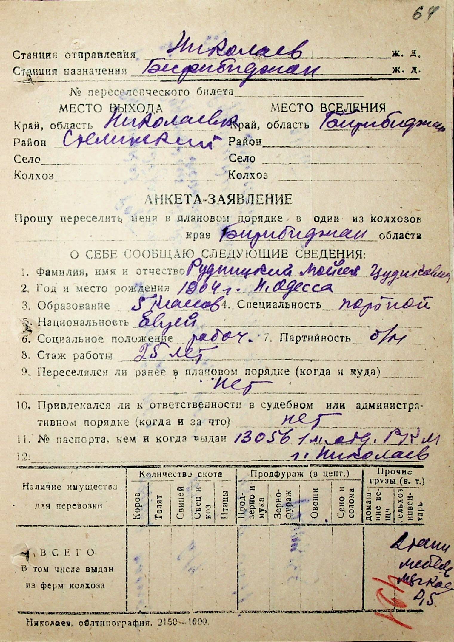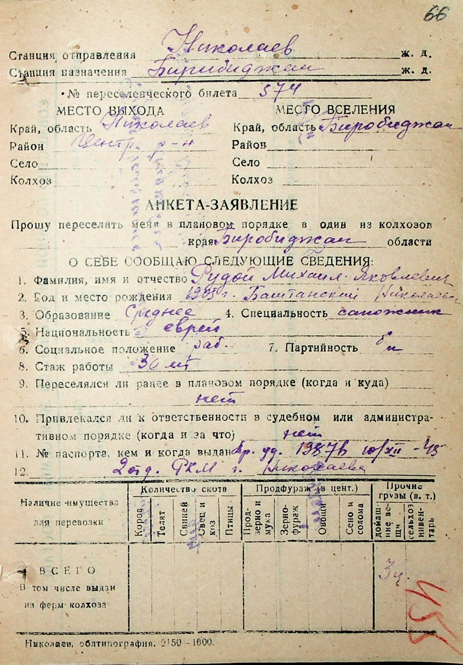• • • • Справа № 32 “Анкети-заяви осіб, від’їжджаючих до Єврейської автономної області у 1948 році. Прізвища з літери «Р» по літеру «Ф»”