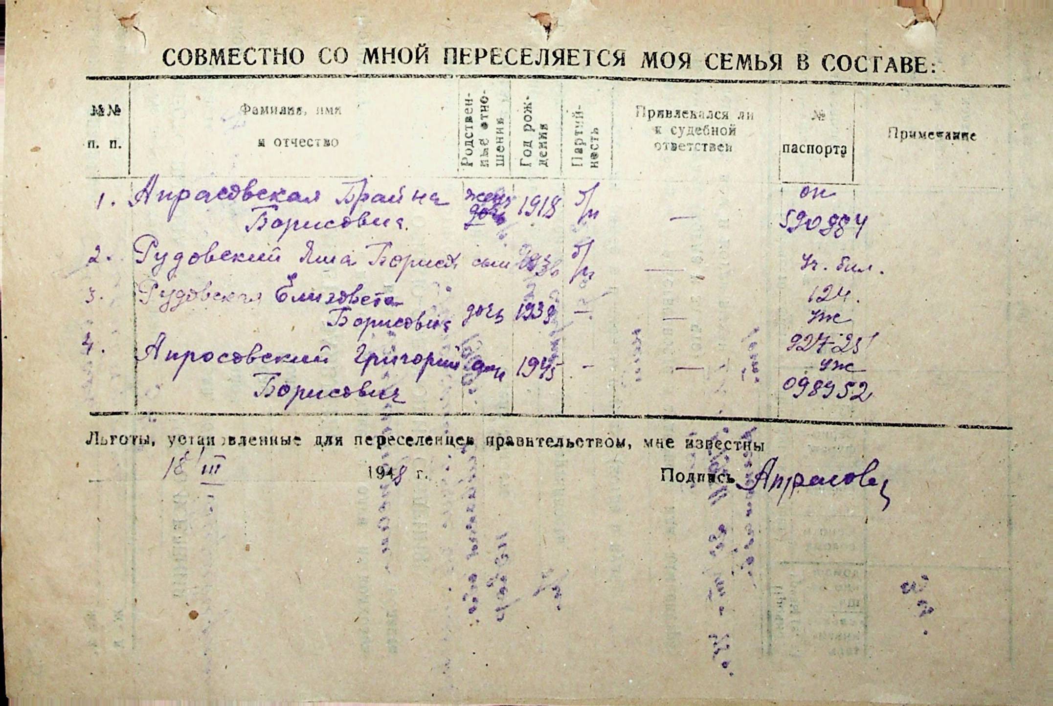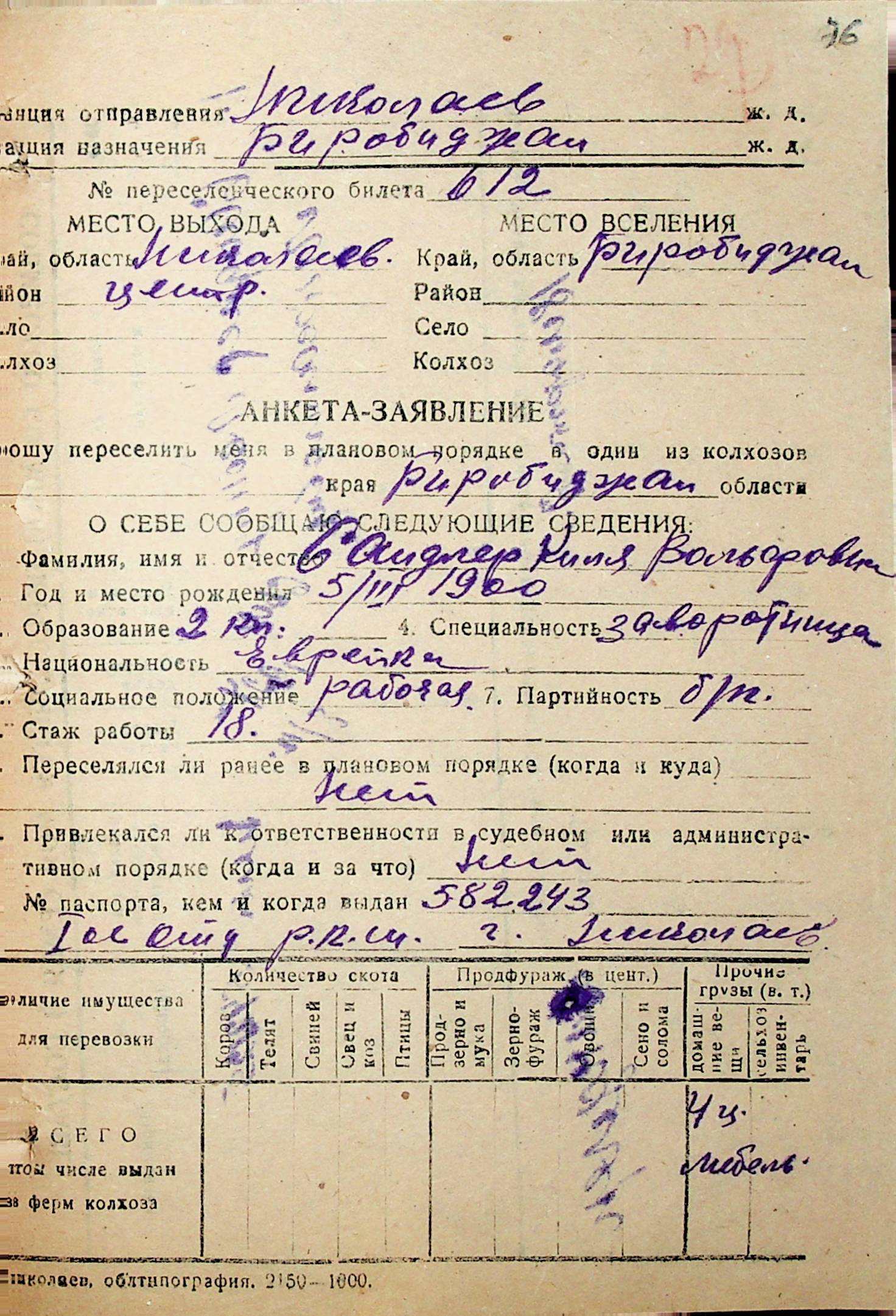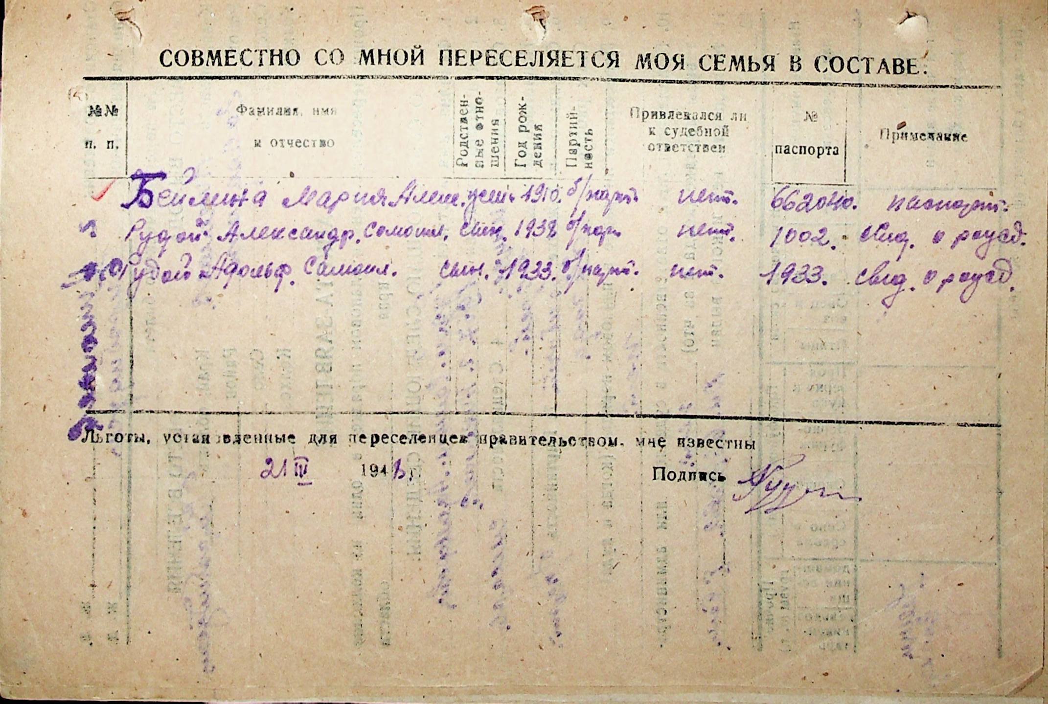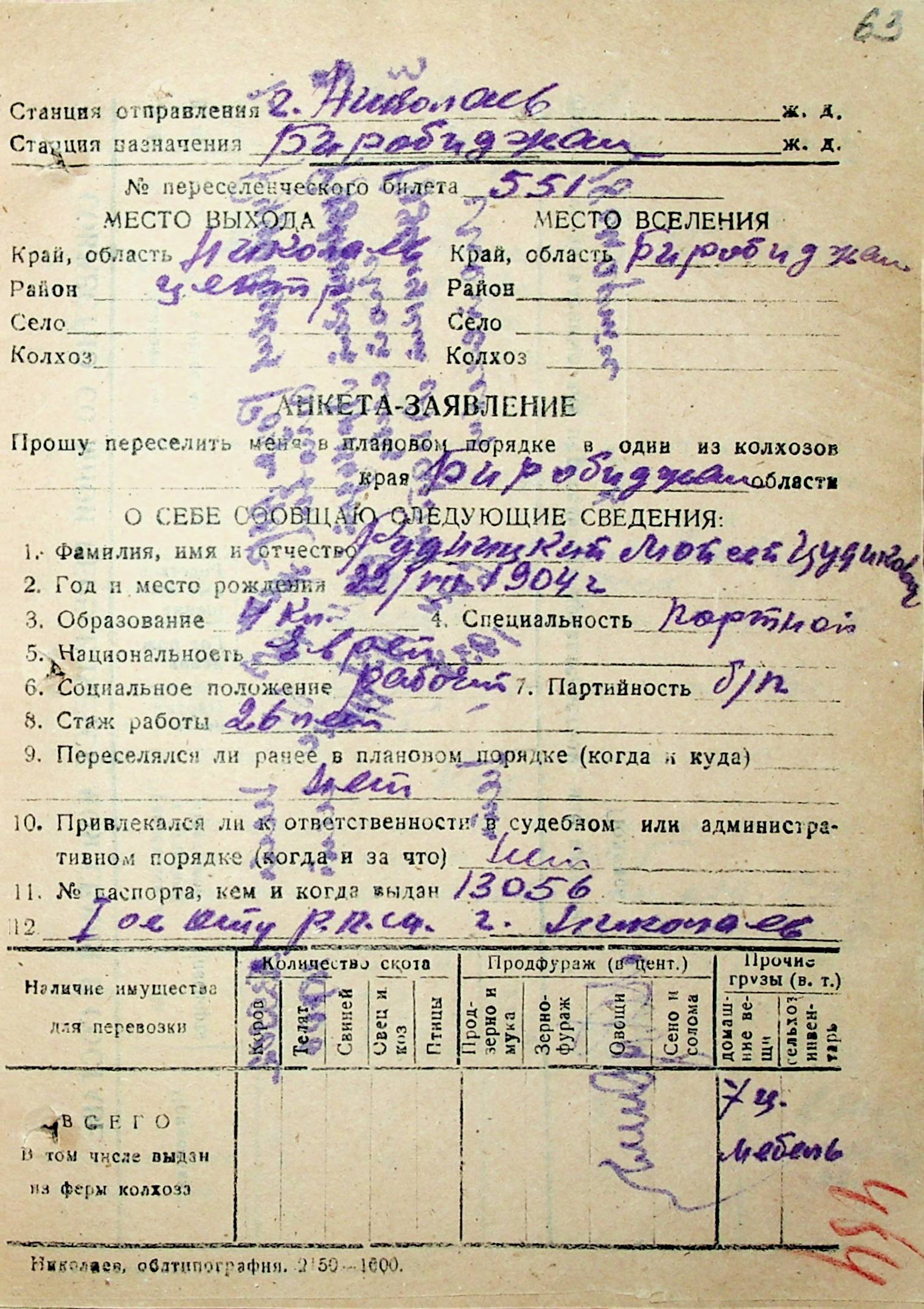 • • • • Справа № 32 “Анкети-заяви осіб, від’їжджаючих до Єврейської автономної області у 1948 році. Прізвища з літери «Р» по літеру «Ф»”