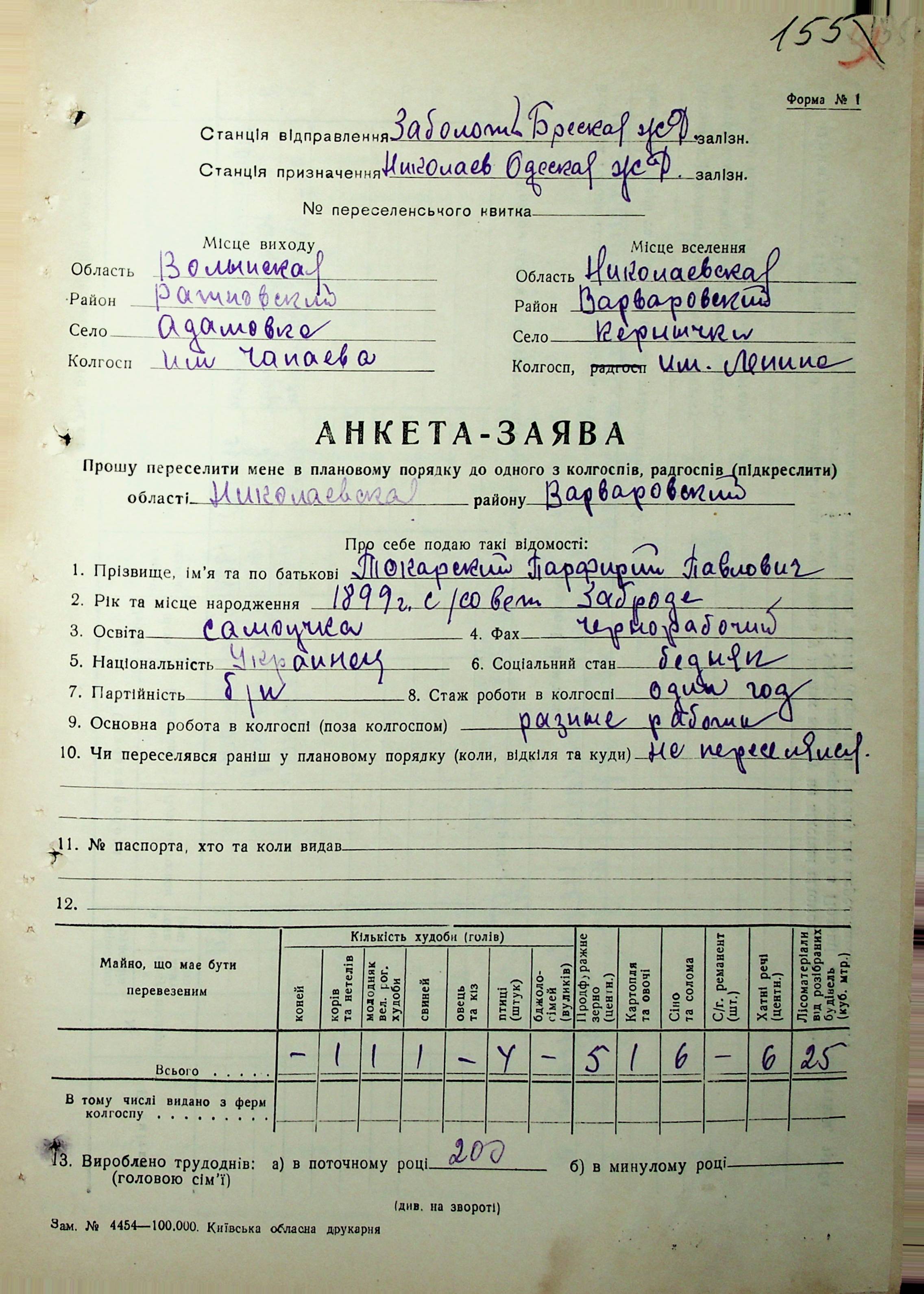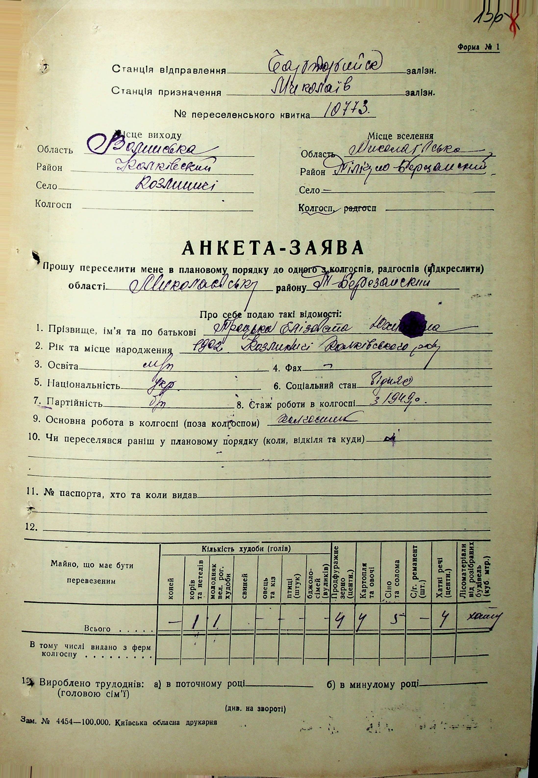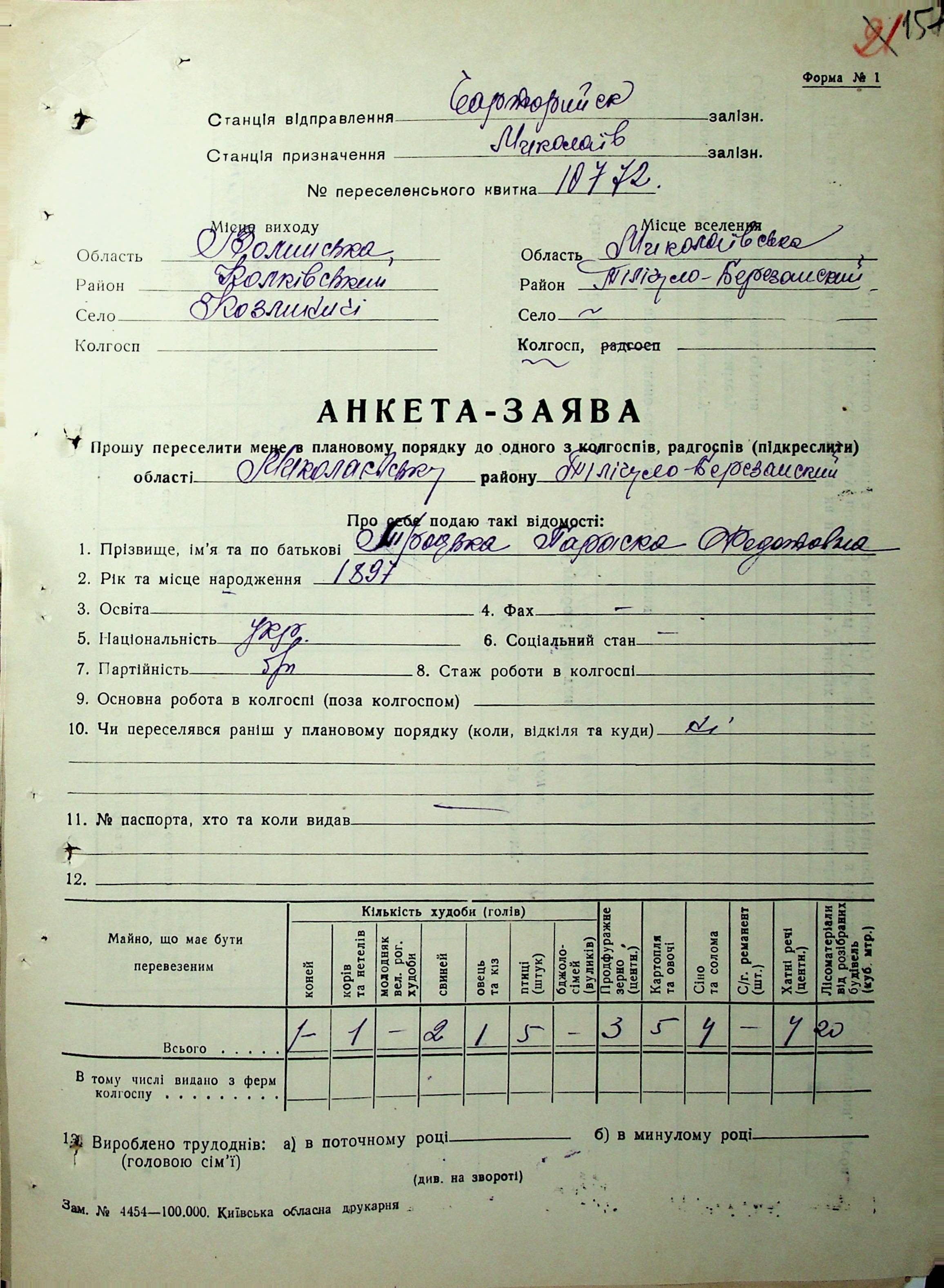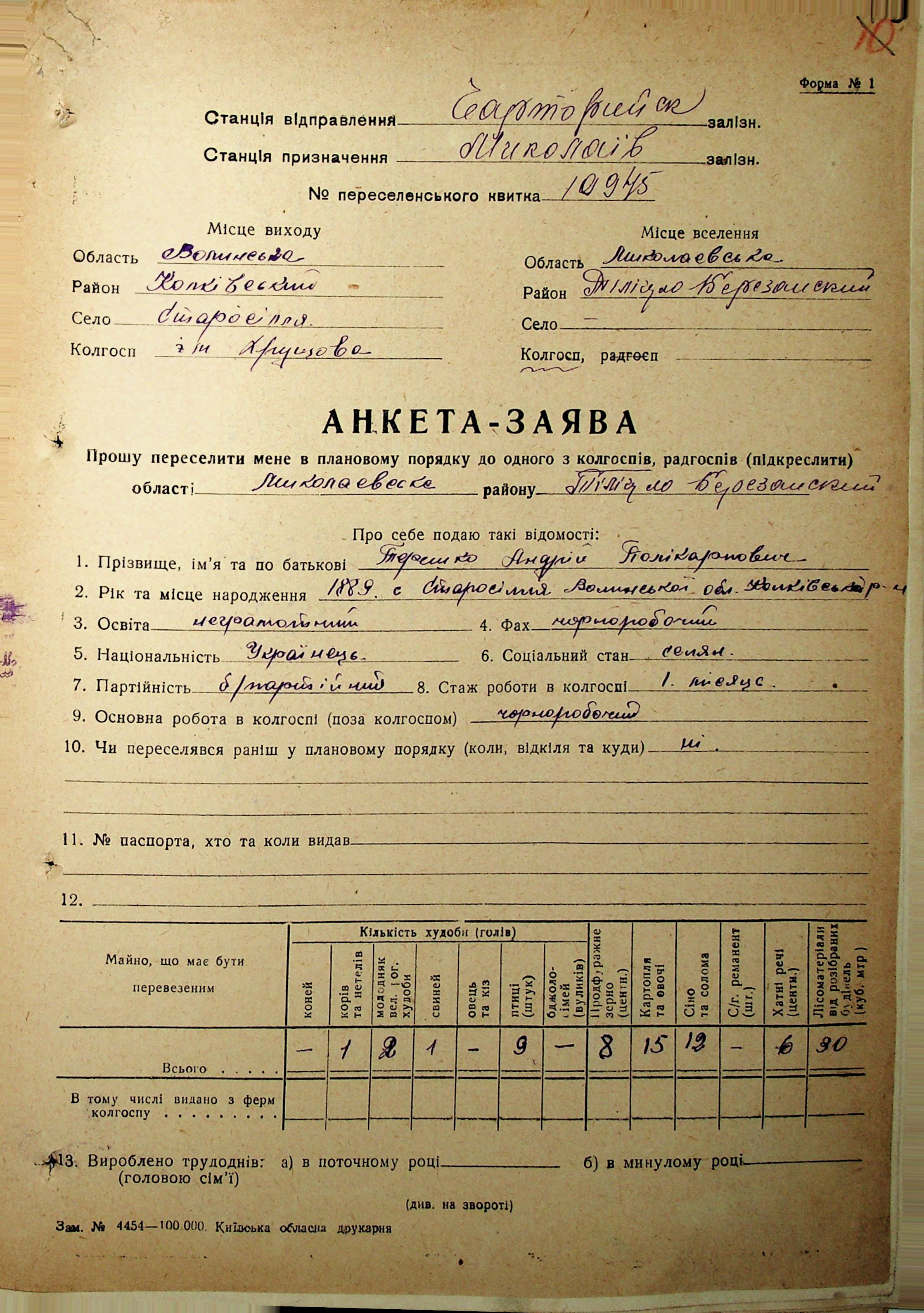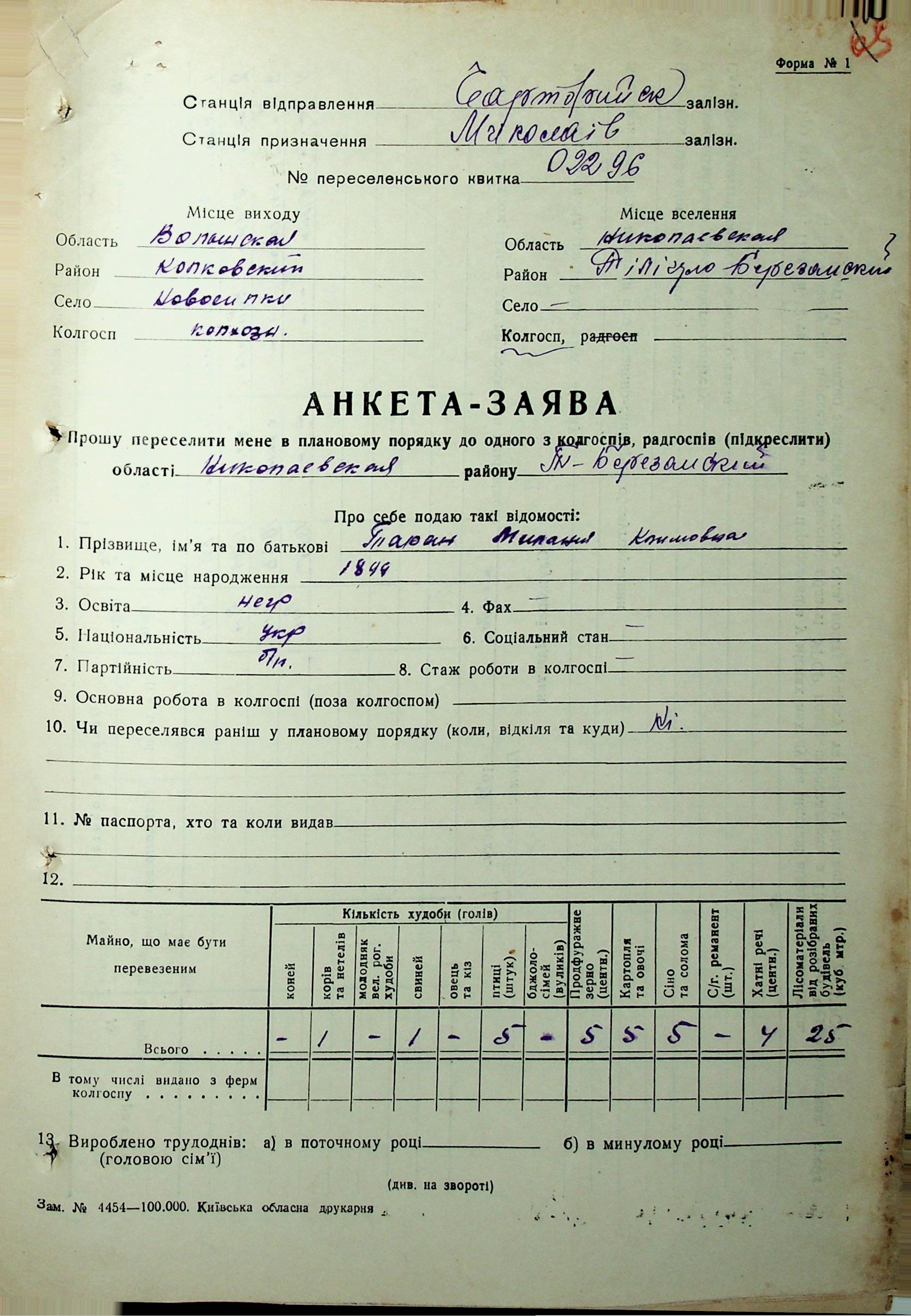 • • • • Справа № 35 “Анкети-заяви про планове переселення сімей із Вінницької та Волинської областей до Миколаївської області”