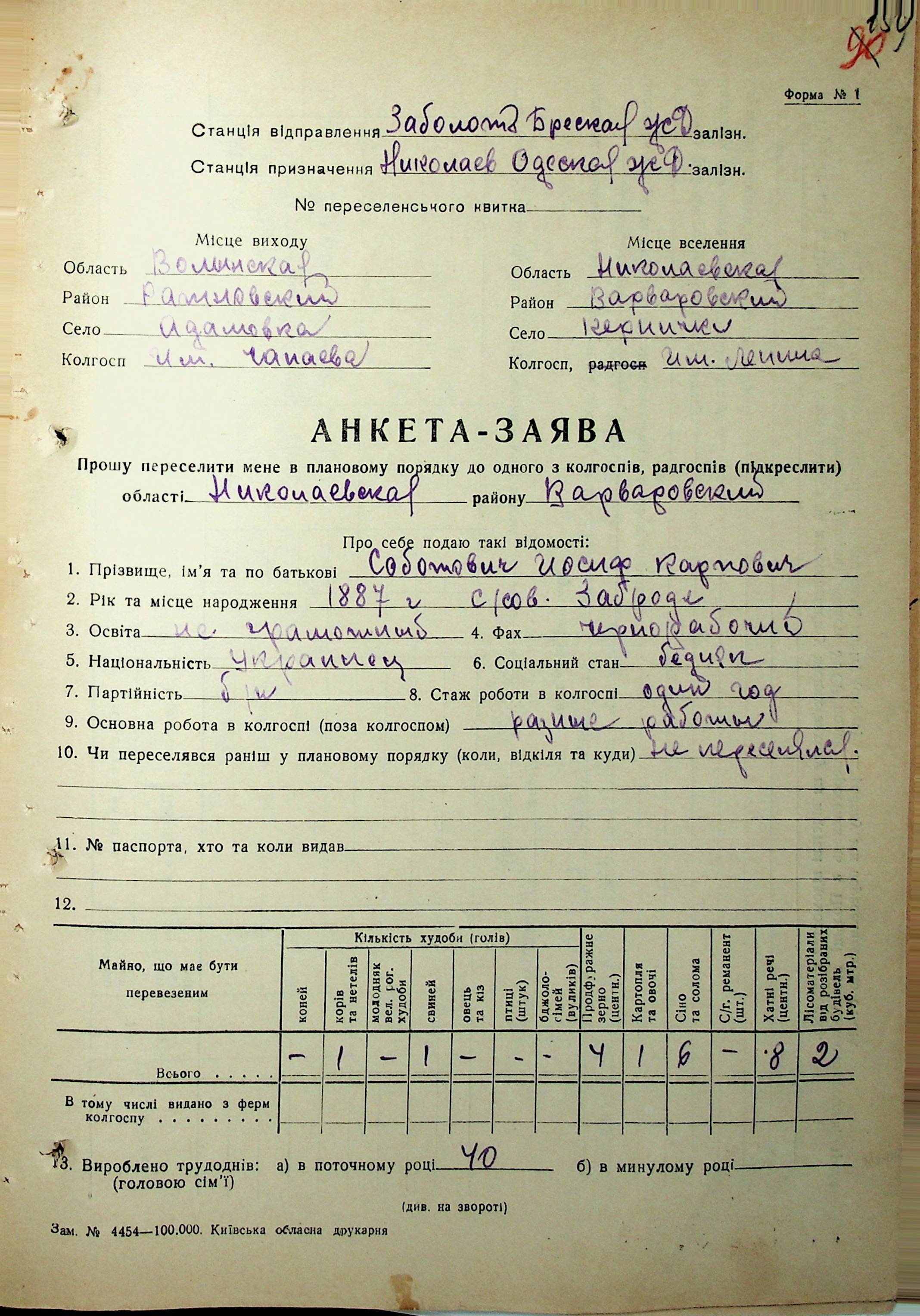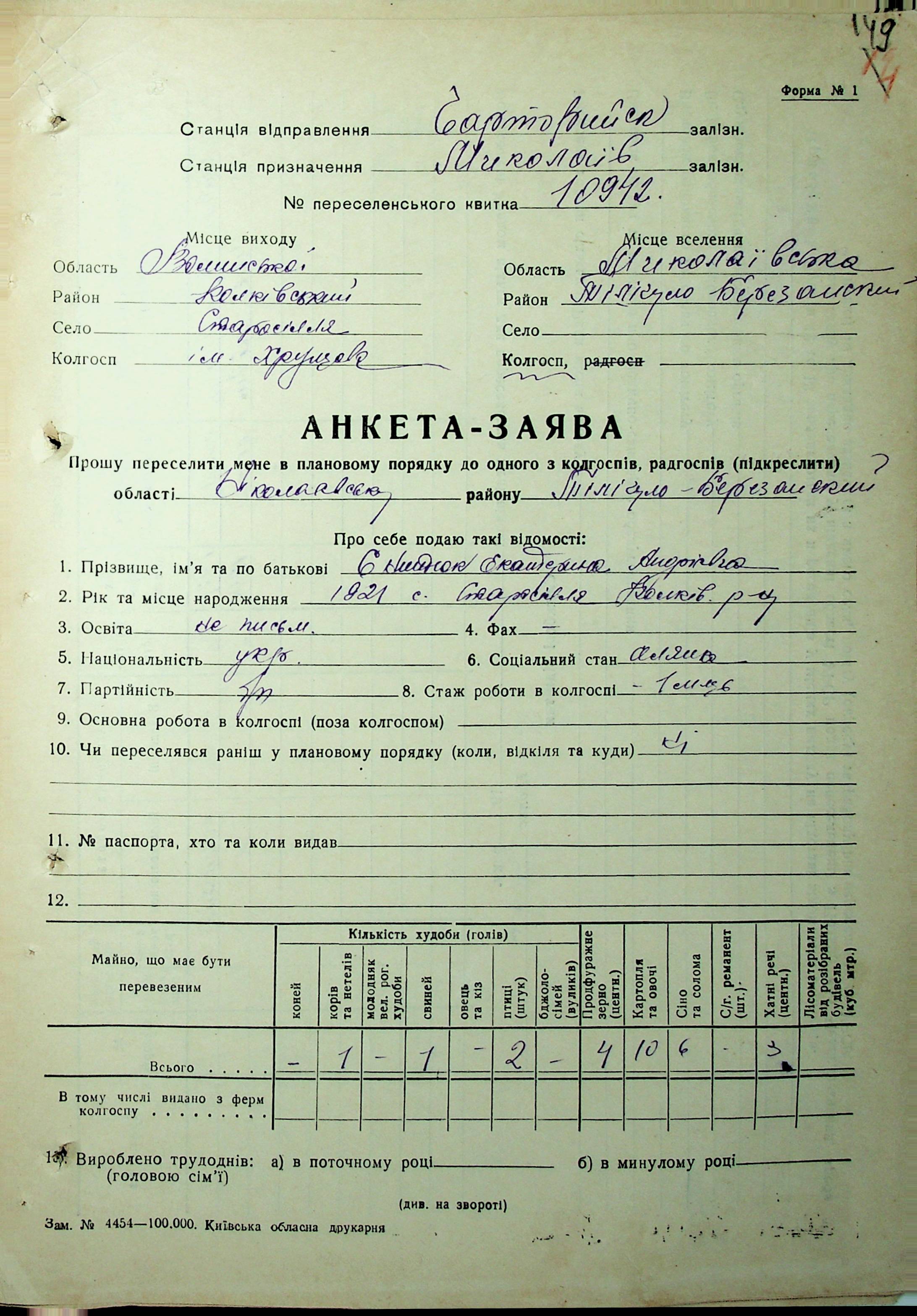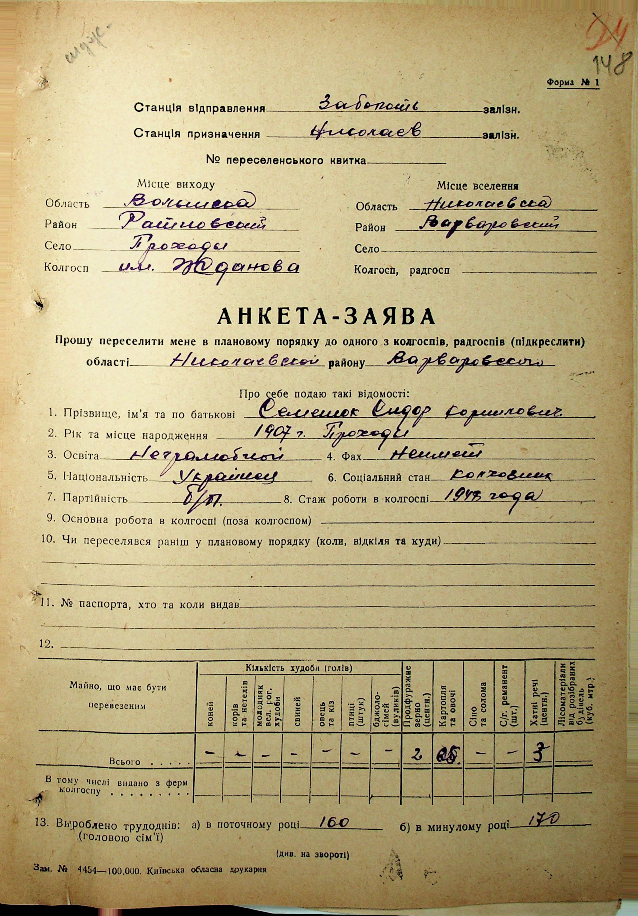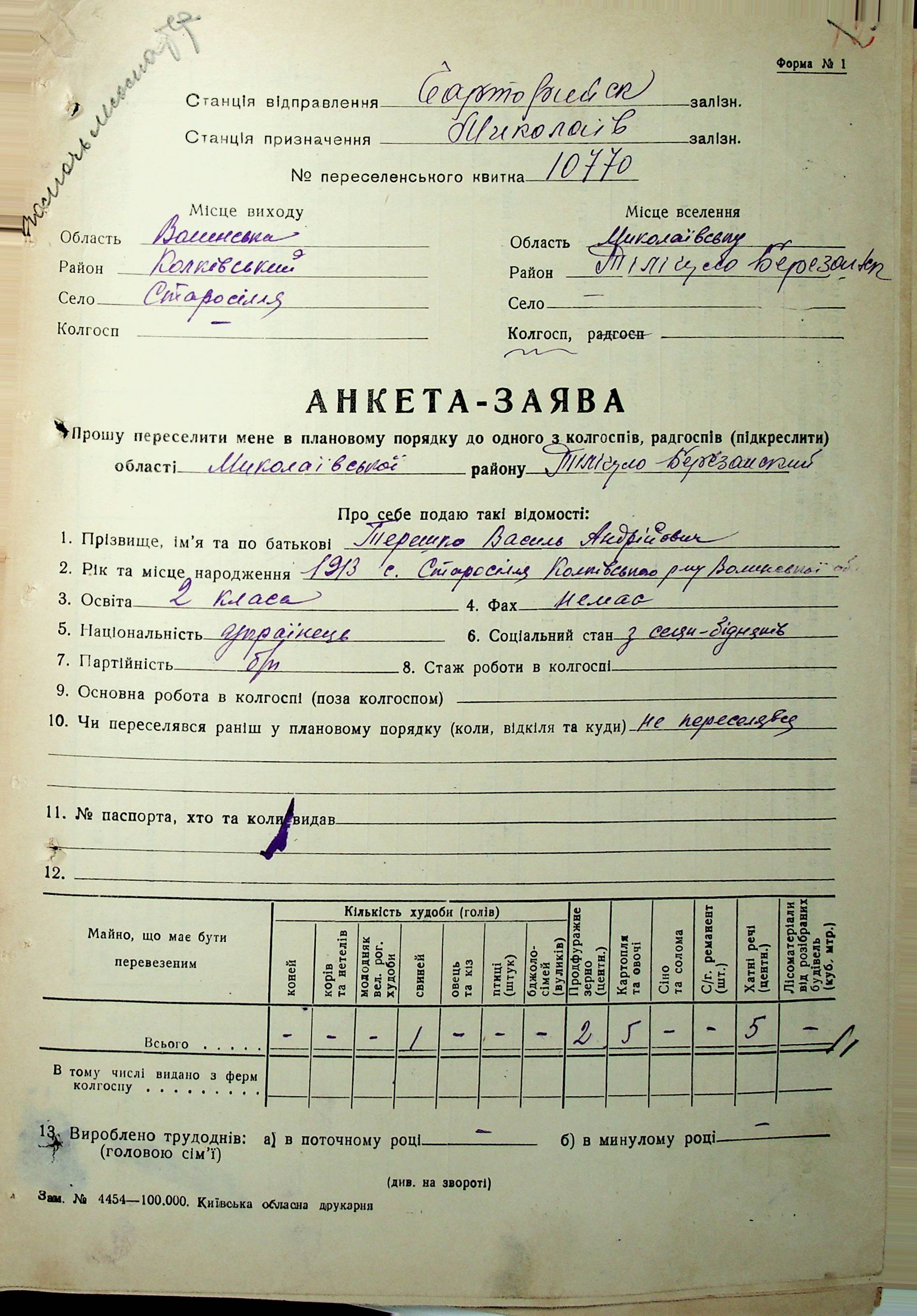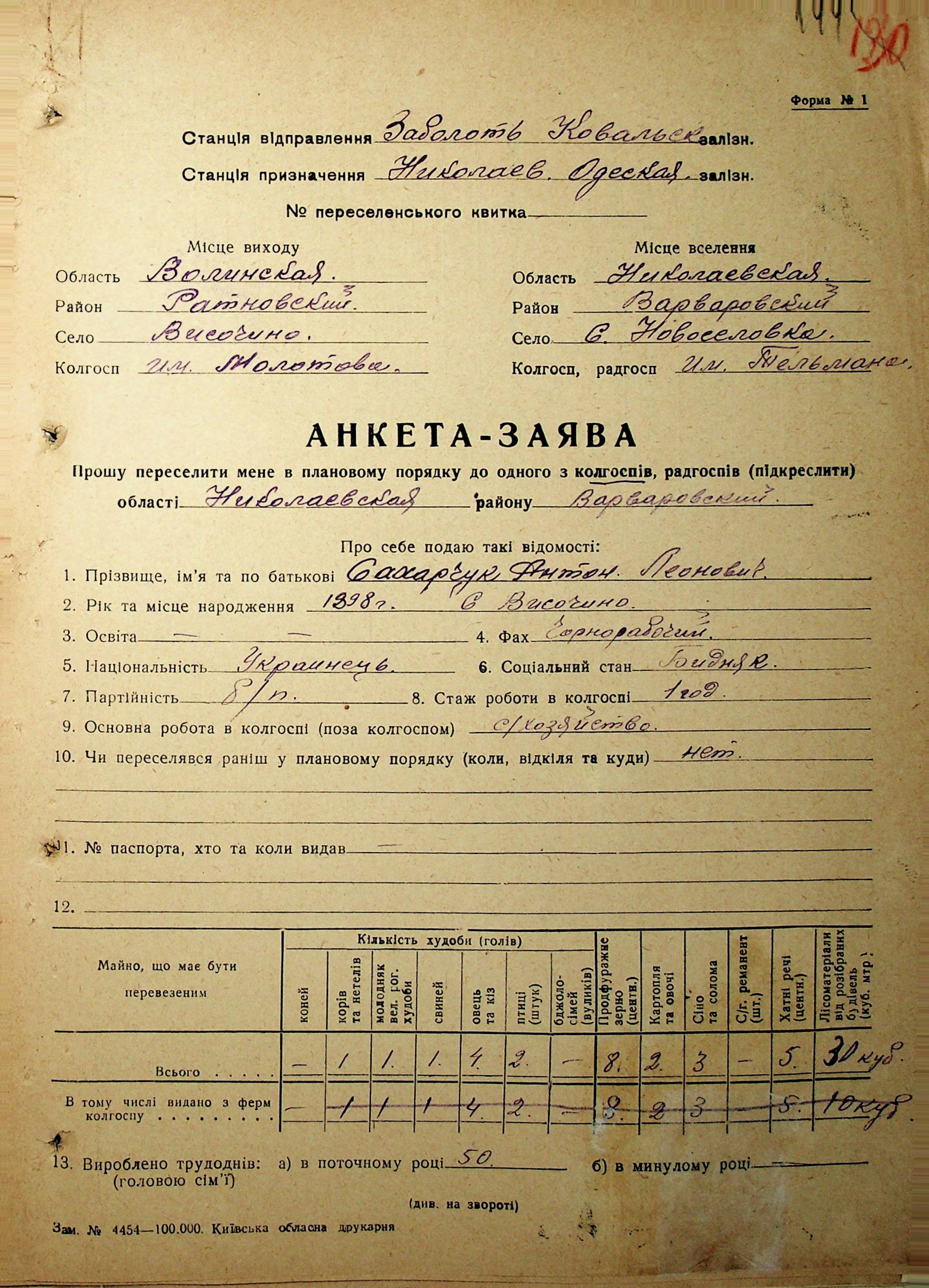 • • • • Справа № 35 “Анкети-заяви про планове переселення сімей із Вінницької та Волинської областей до Миколаївської області”