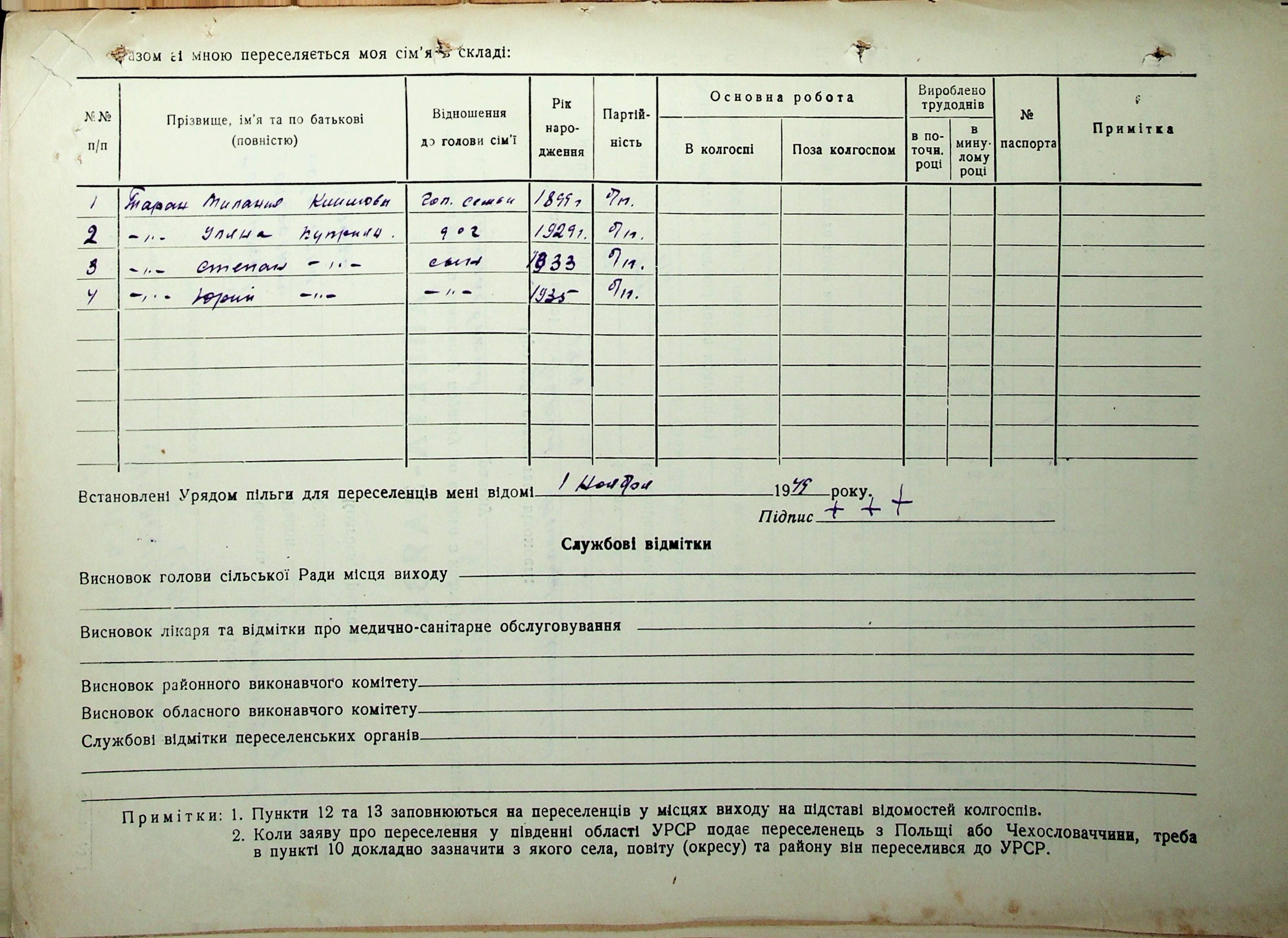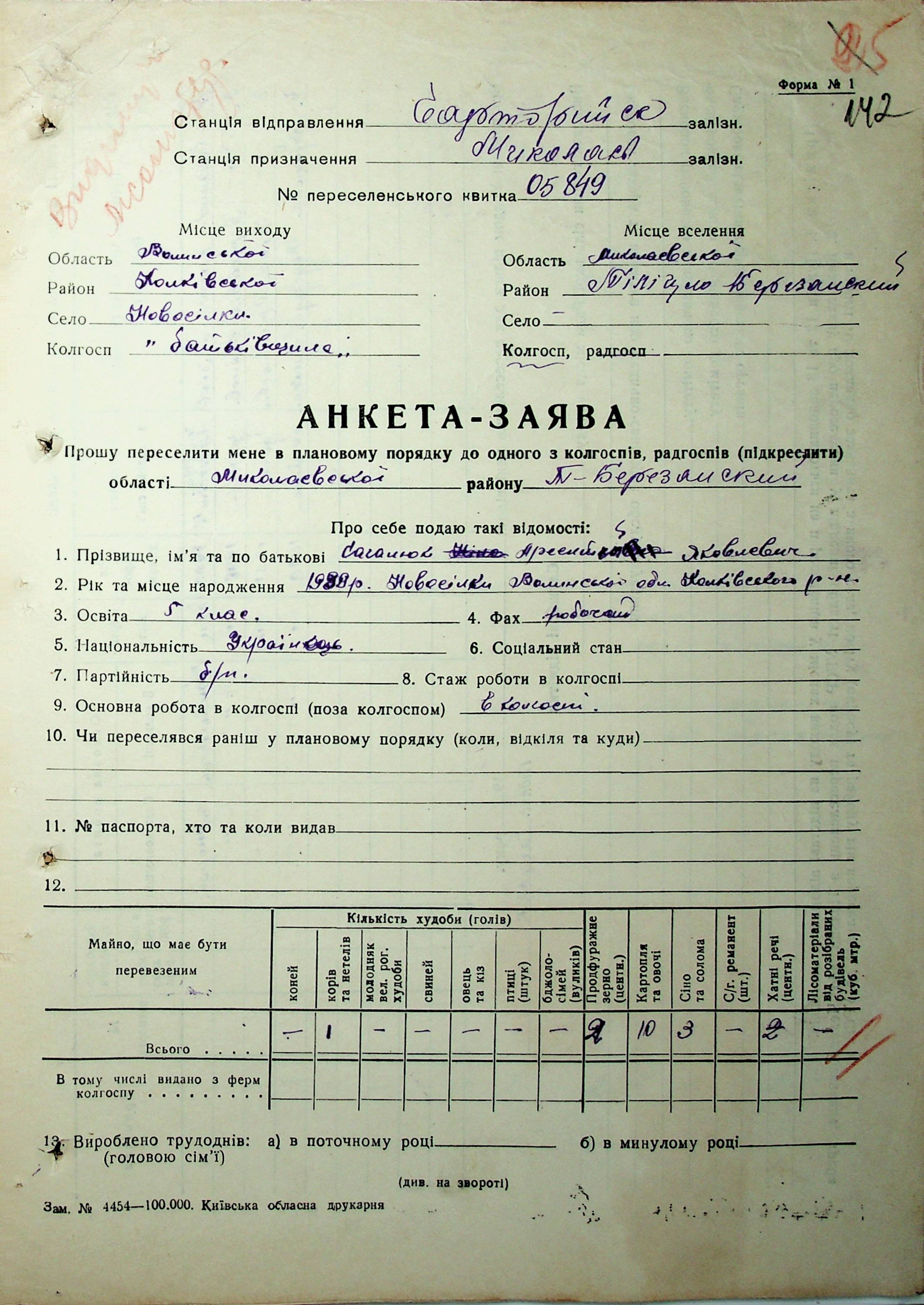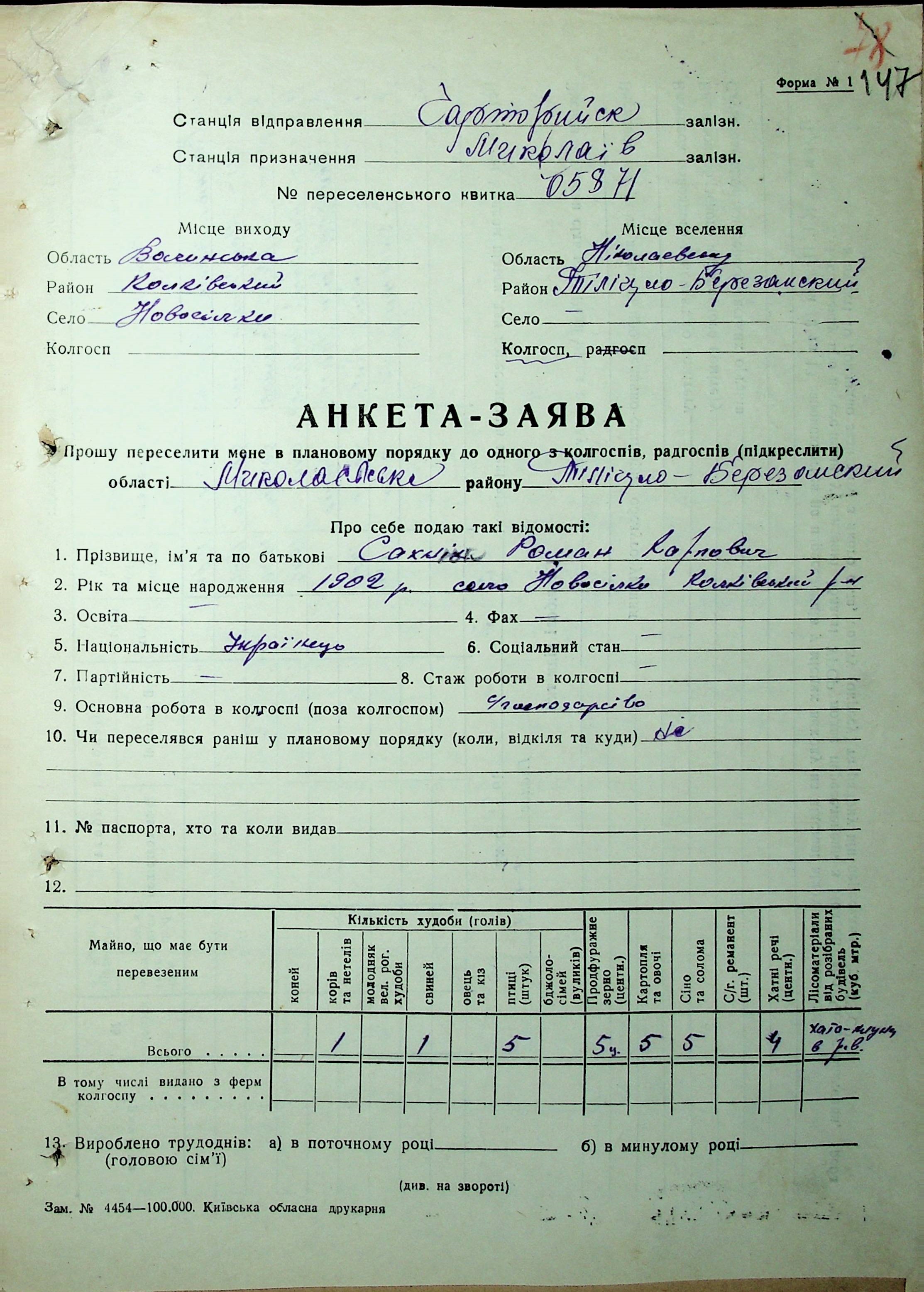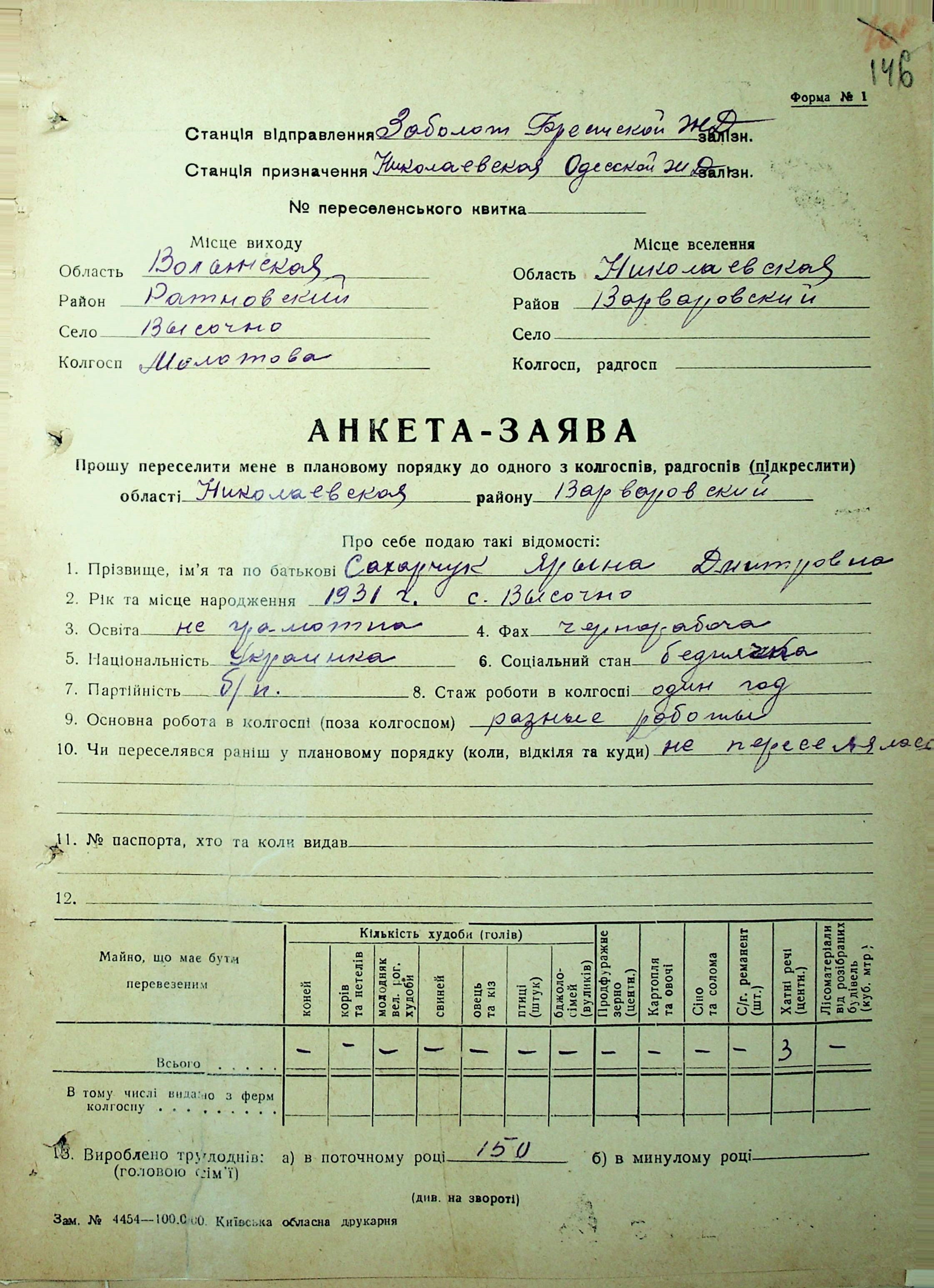 • • • • Справа № 35 “Анкети-заяви про планове переселення сімей із Вінницької та Волинської областей до Миколаївської області”