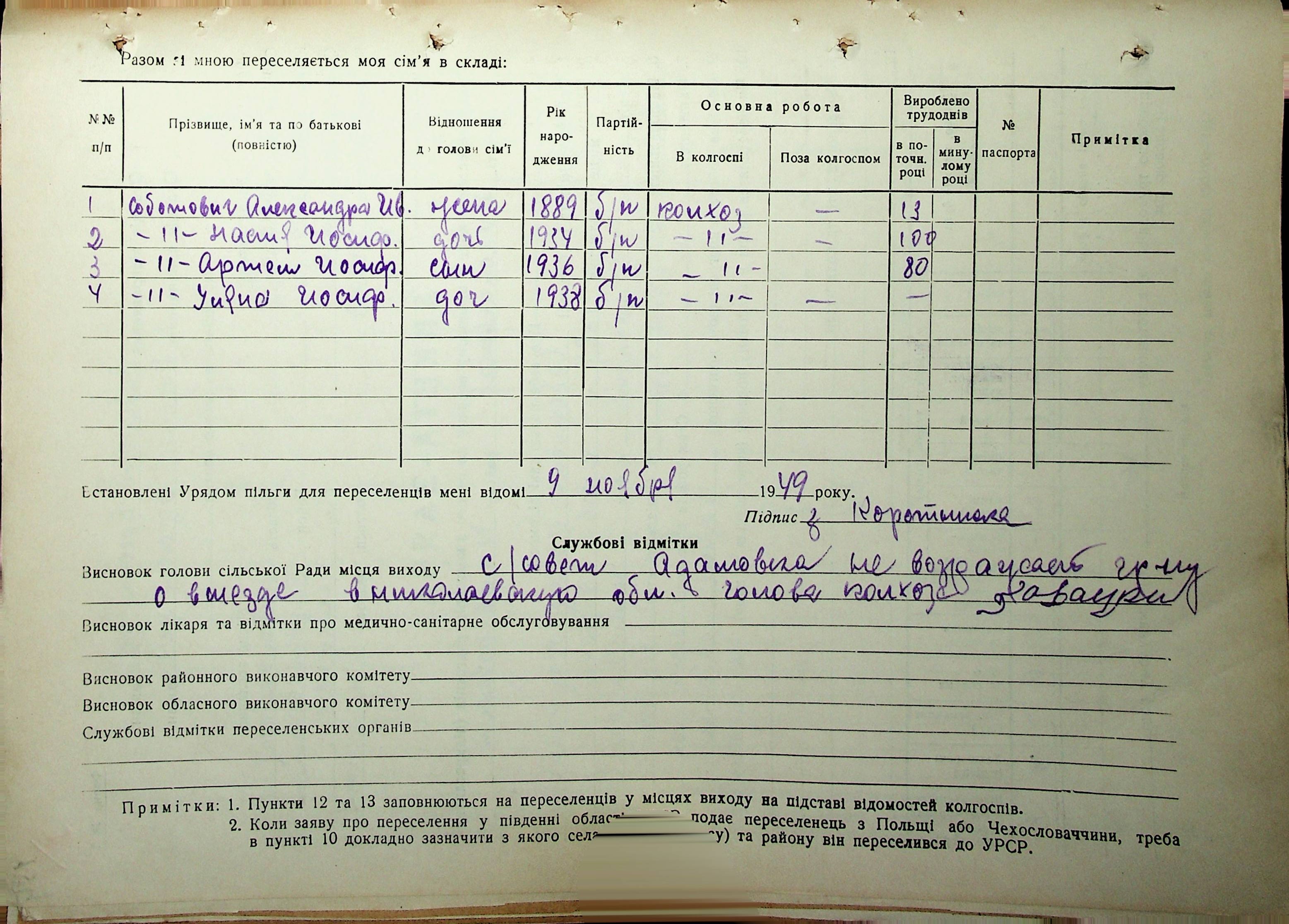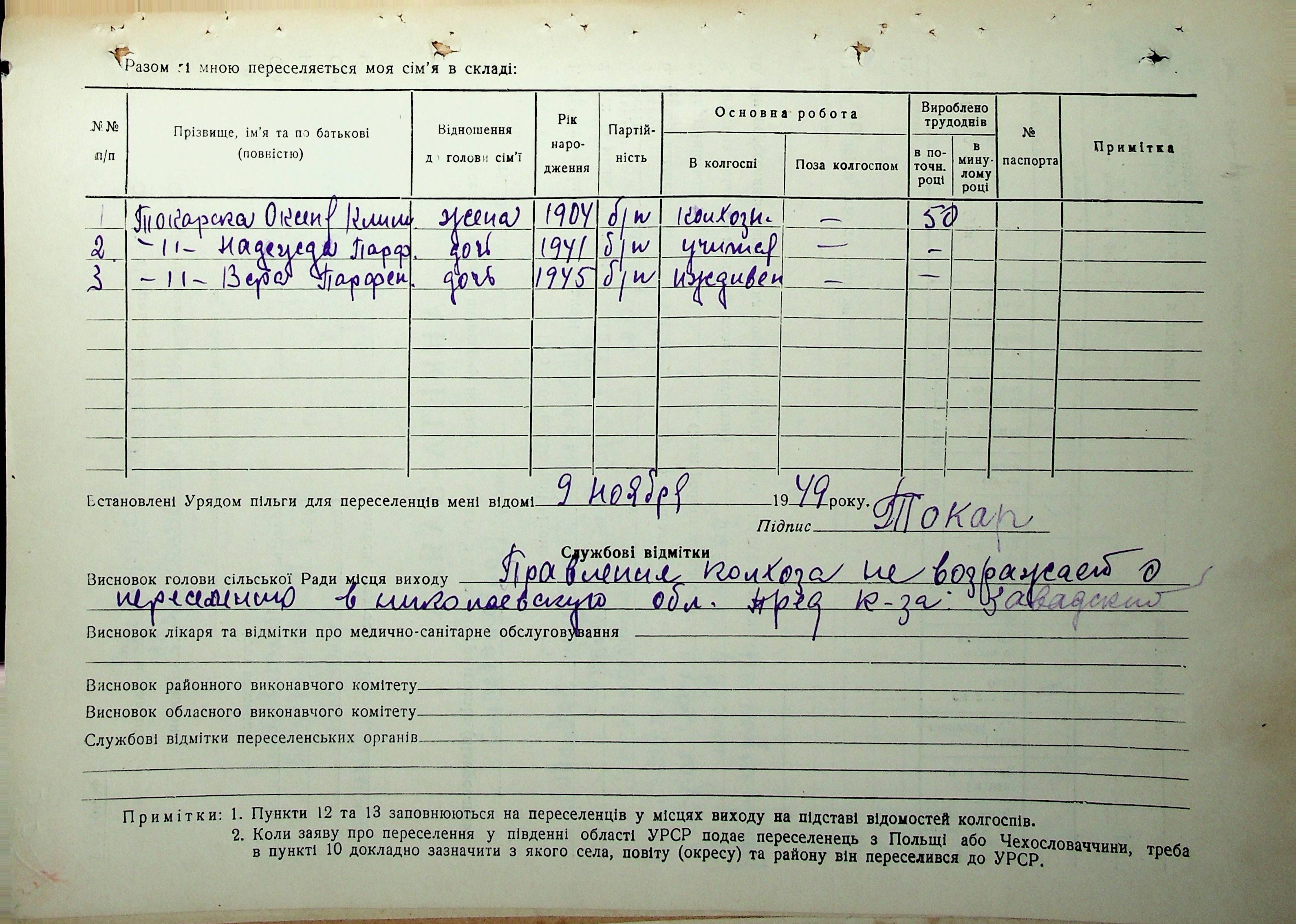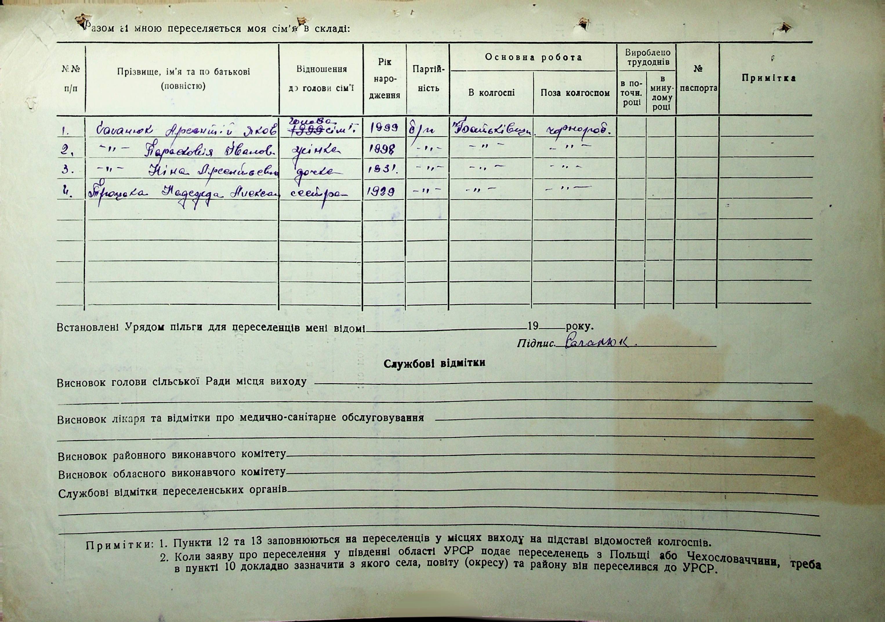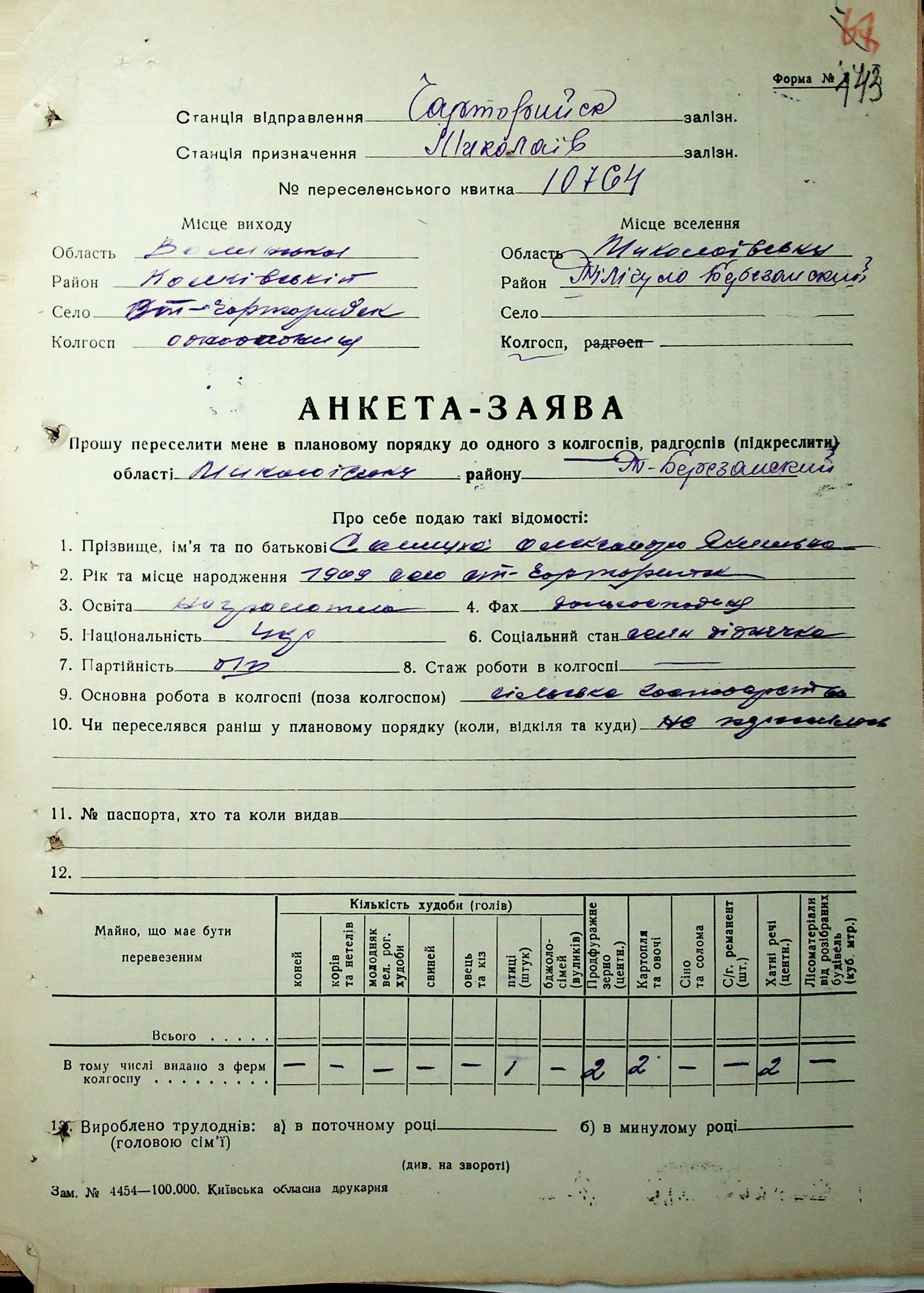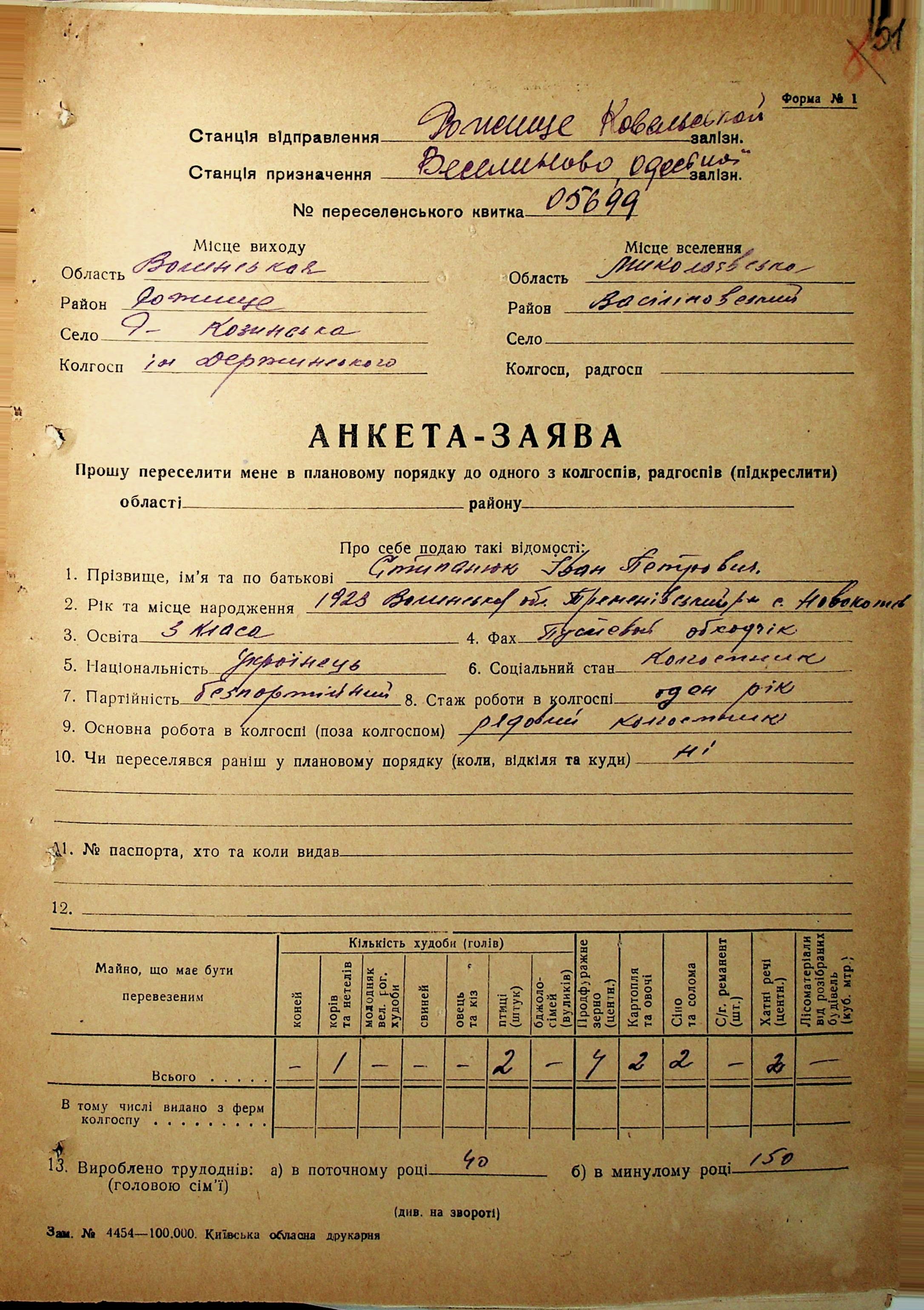 • • • • Справа № 35 “Анкети-заяви про планове переселення сімей із Вінницької та Волинської областей до Миколаївської області”