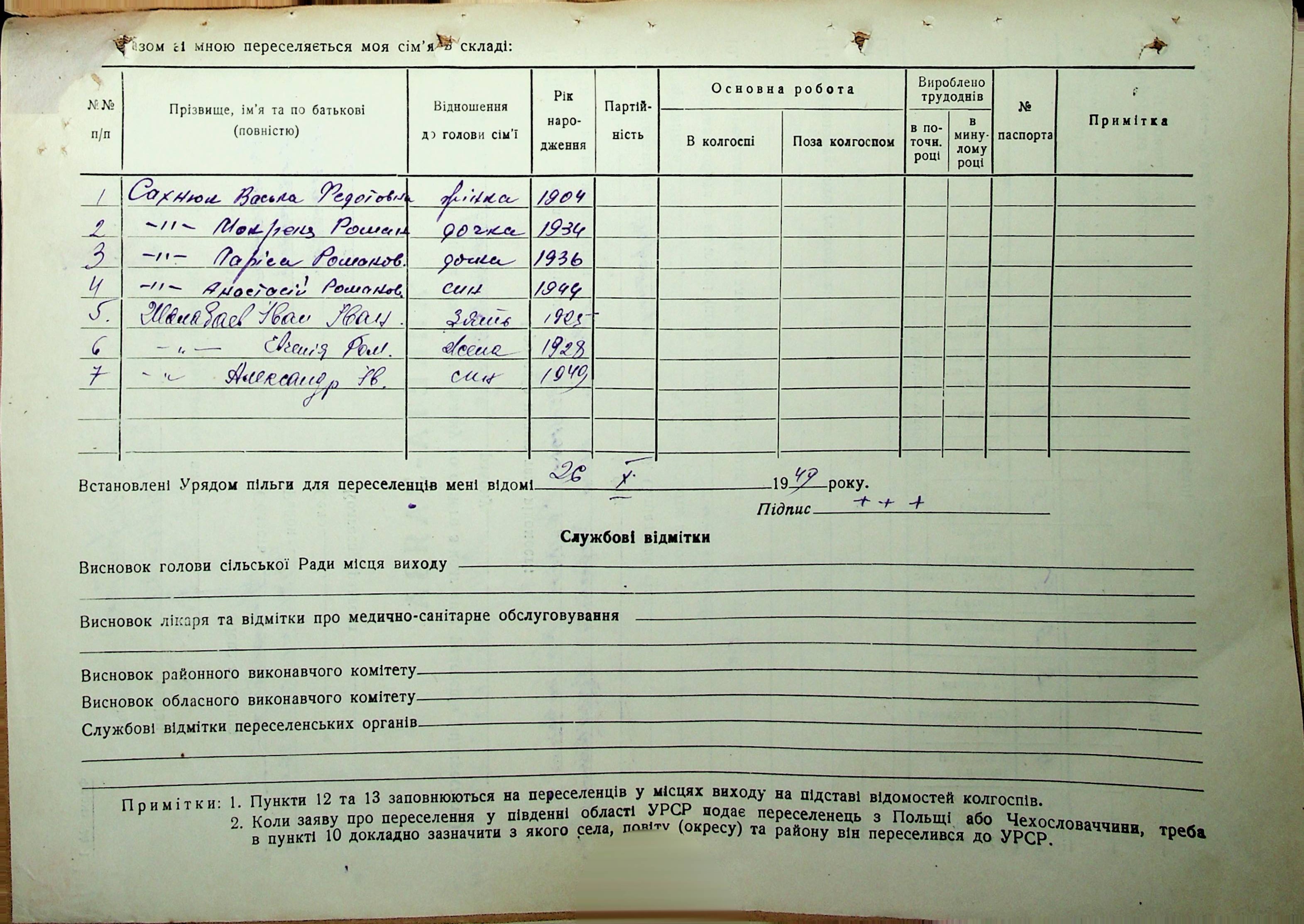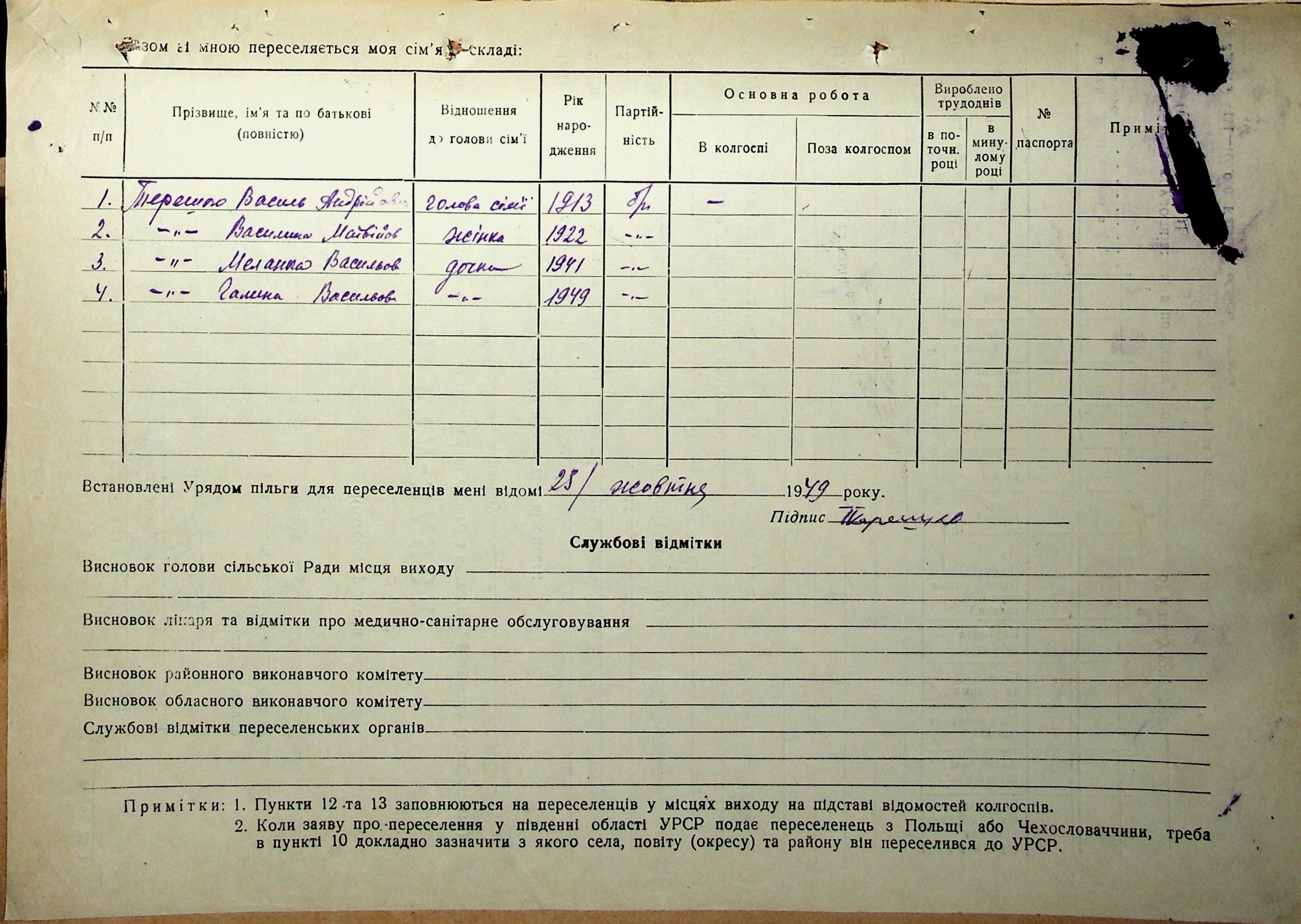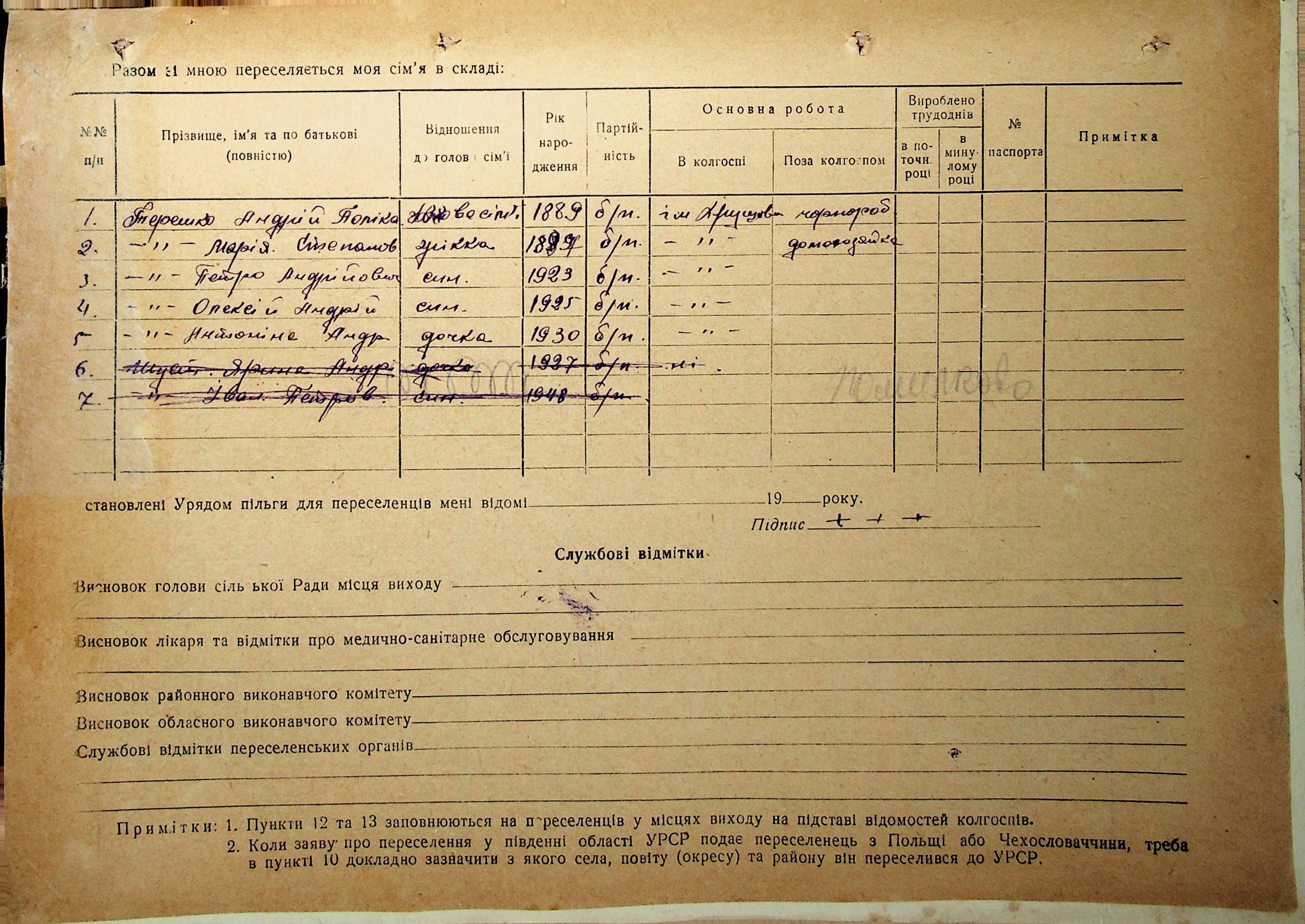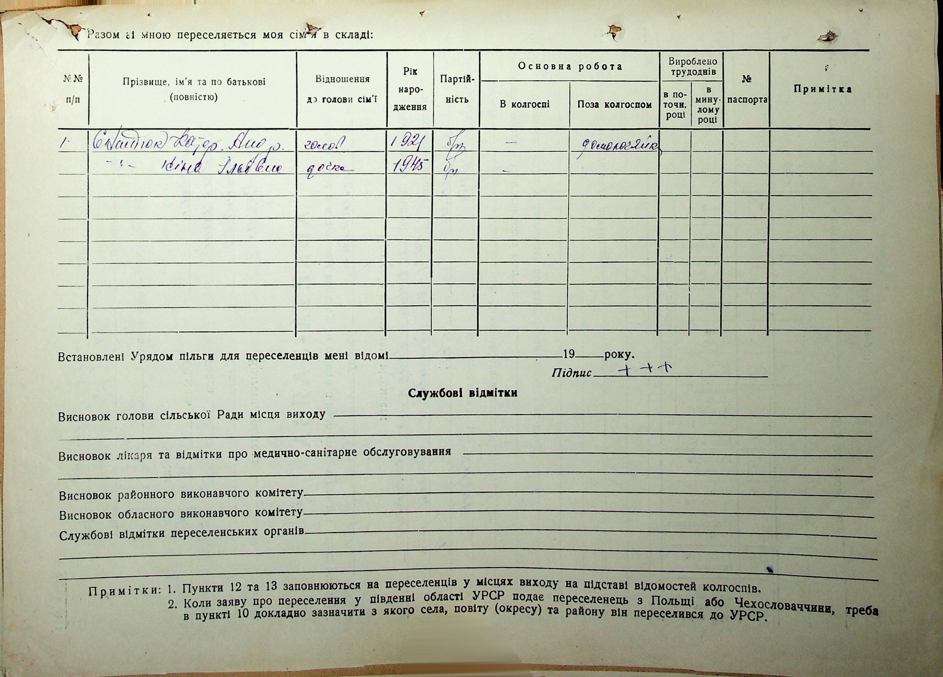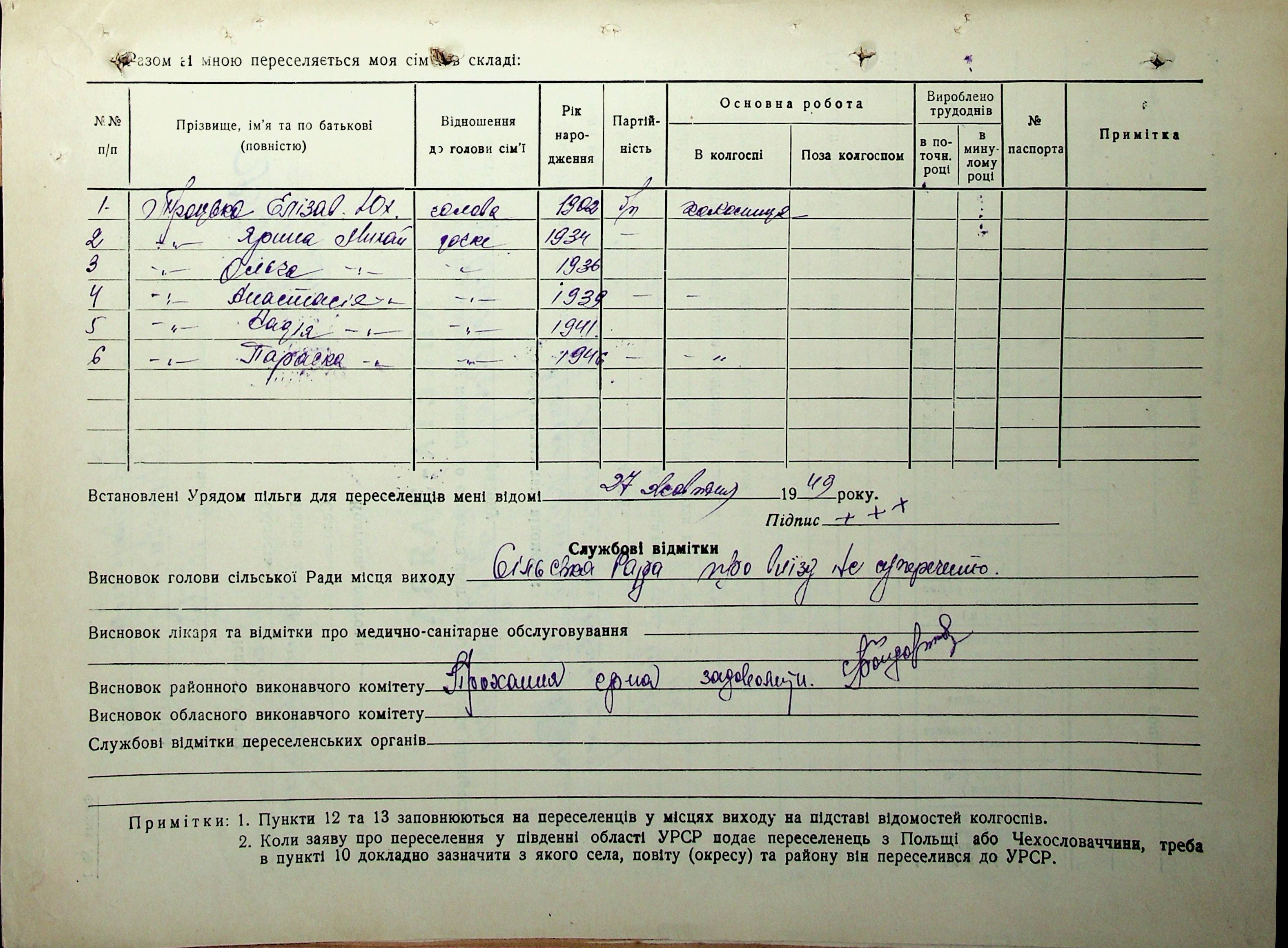 • • • • Справа № 35 “Анкети-заяви про планове переселення сімей із Вінницької та Волинської областей до Миколаївської області”