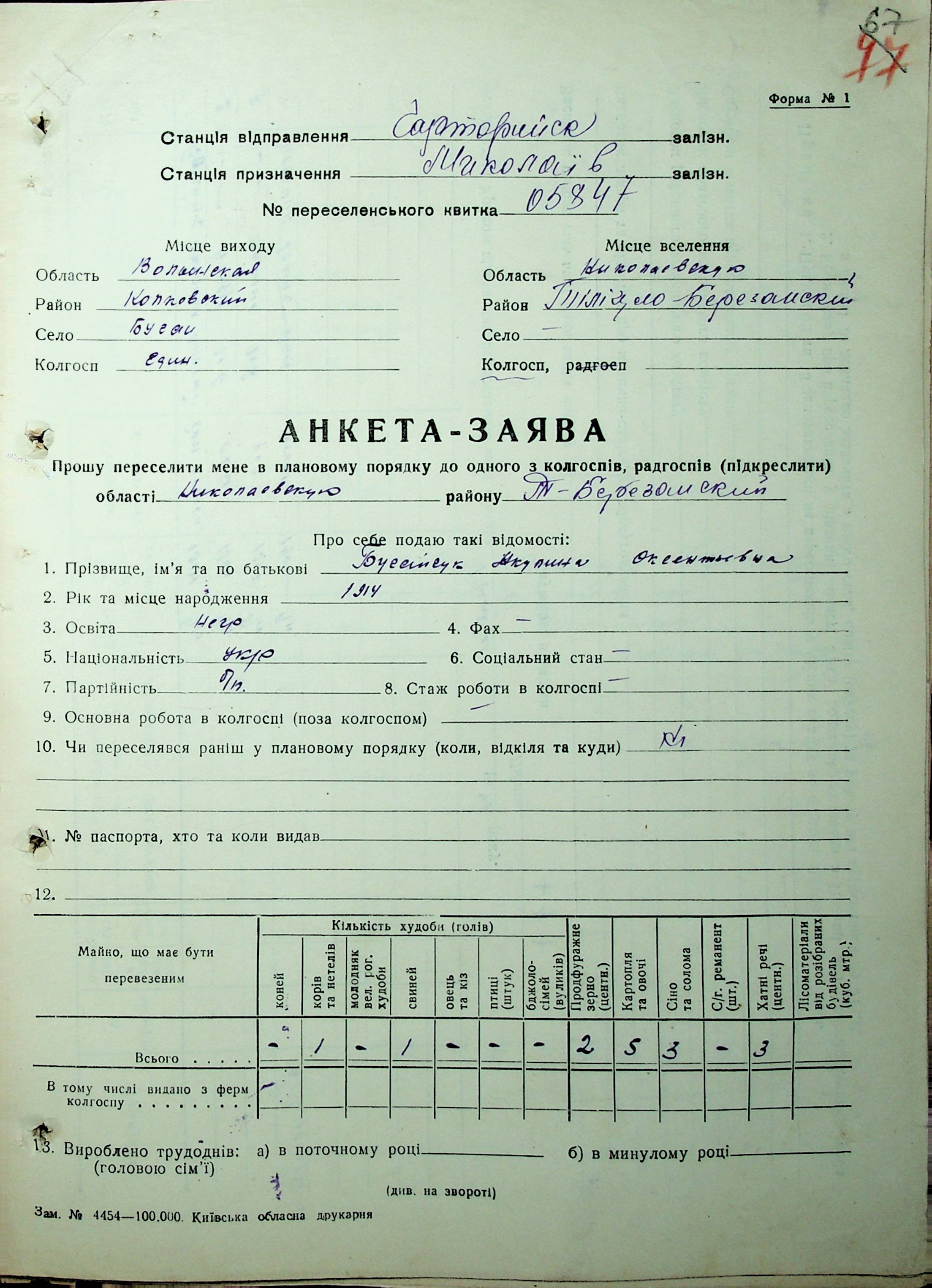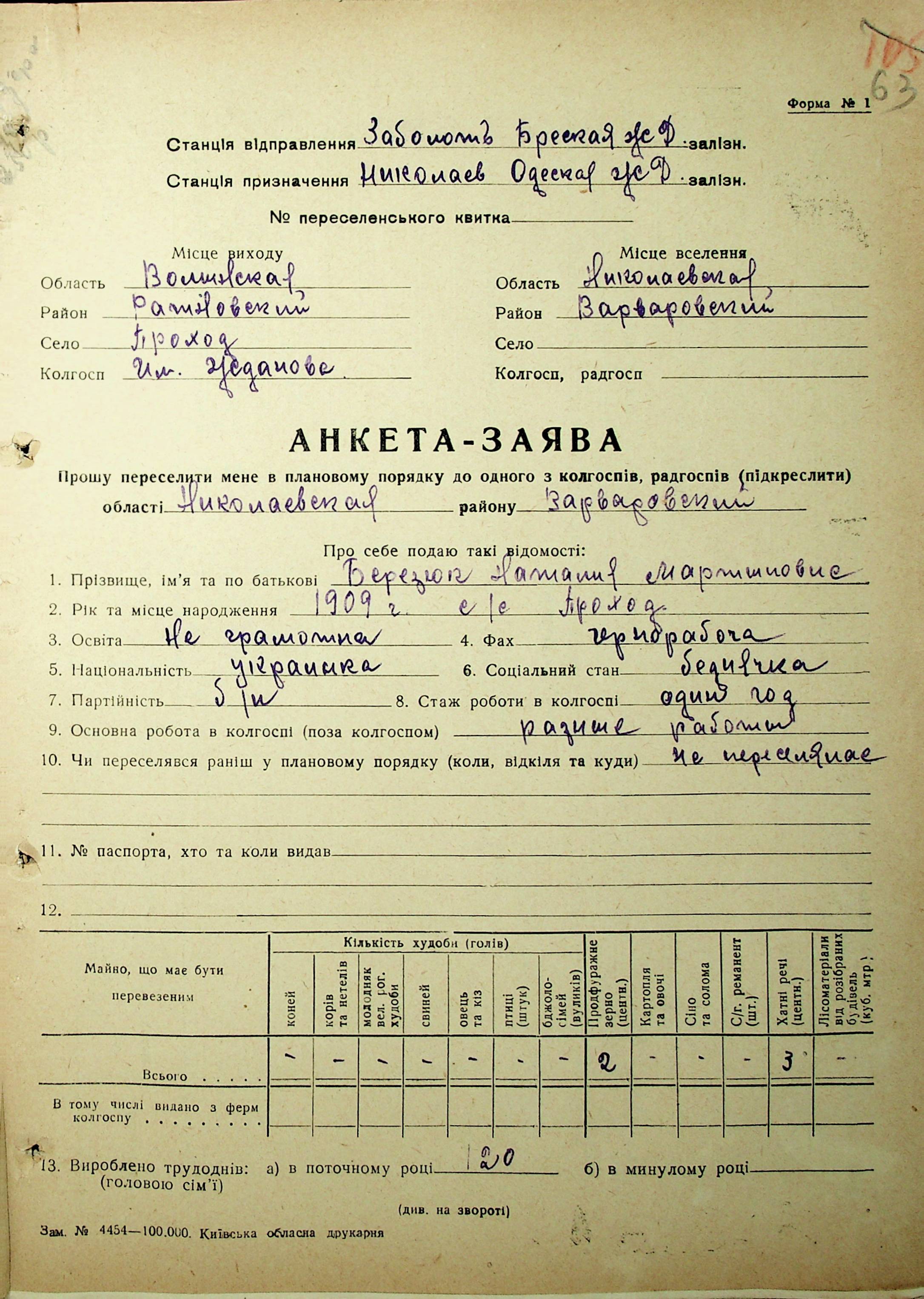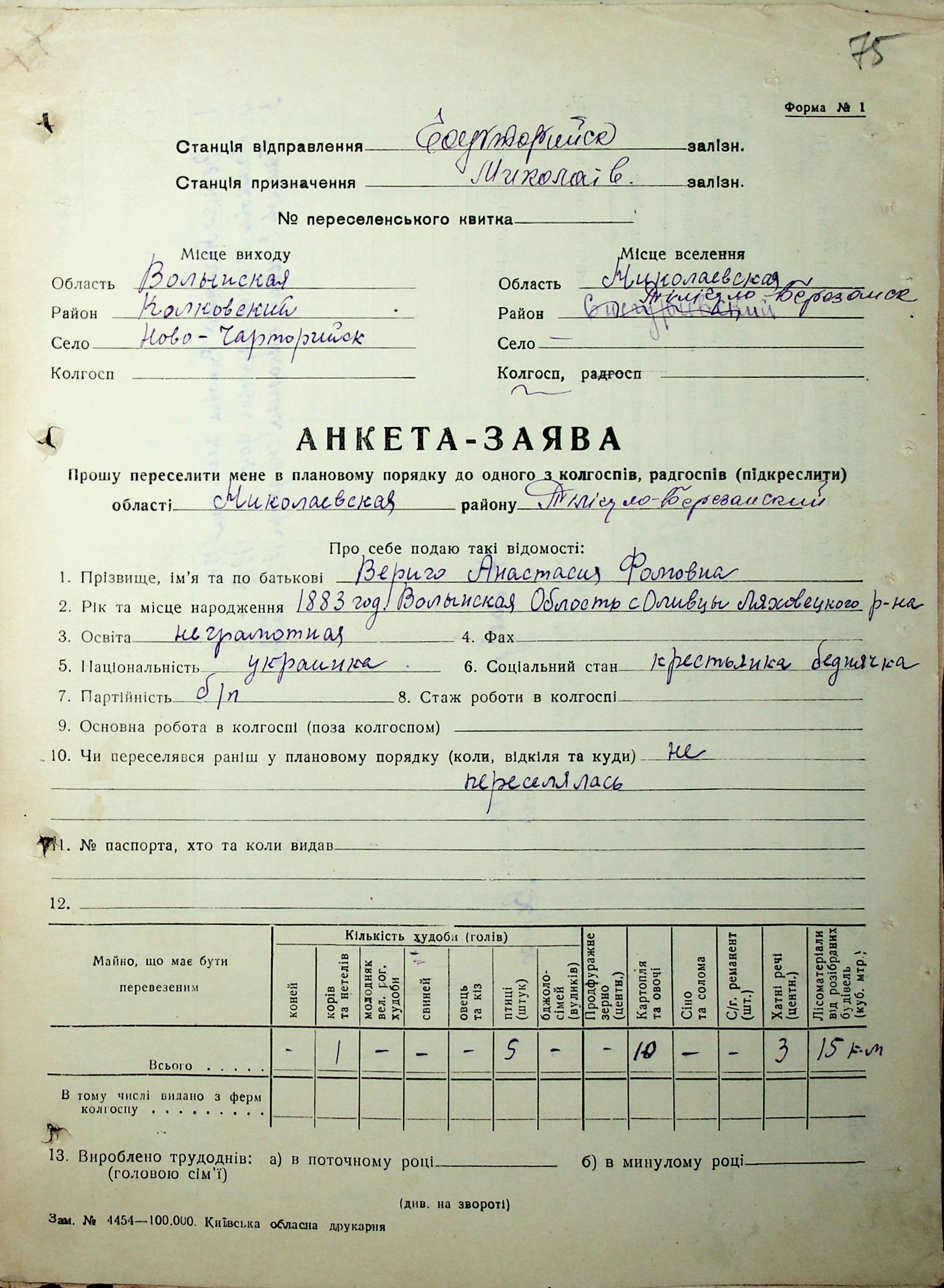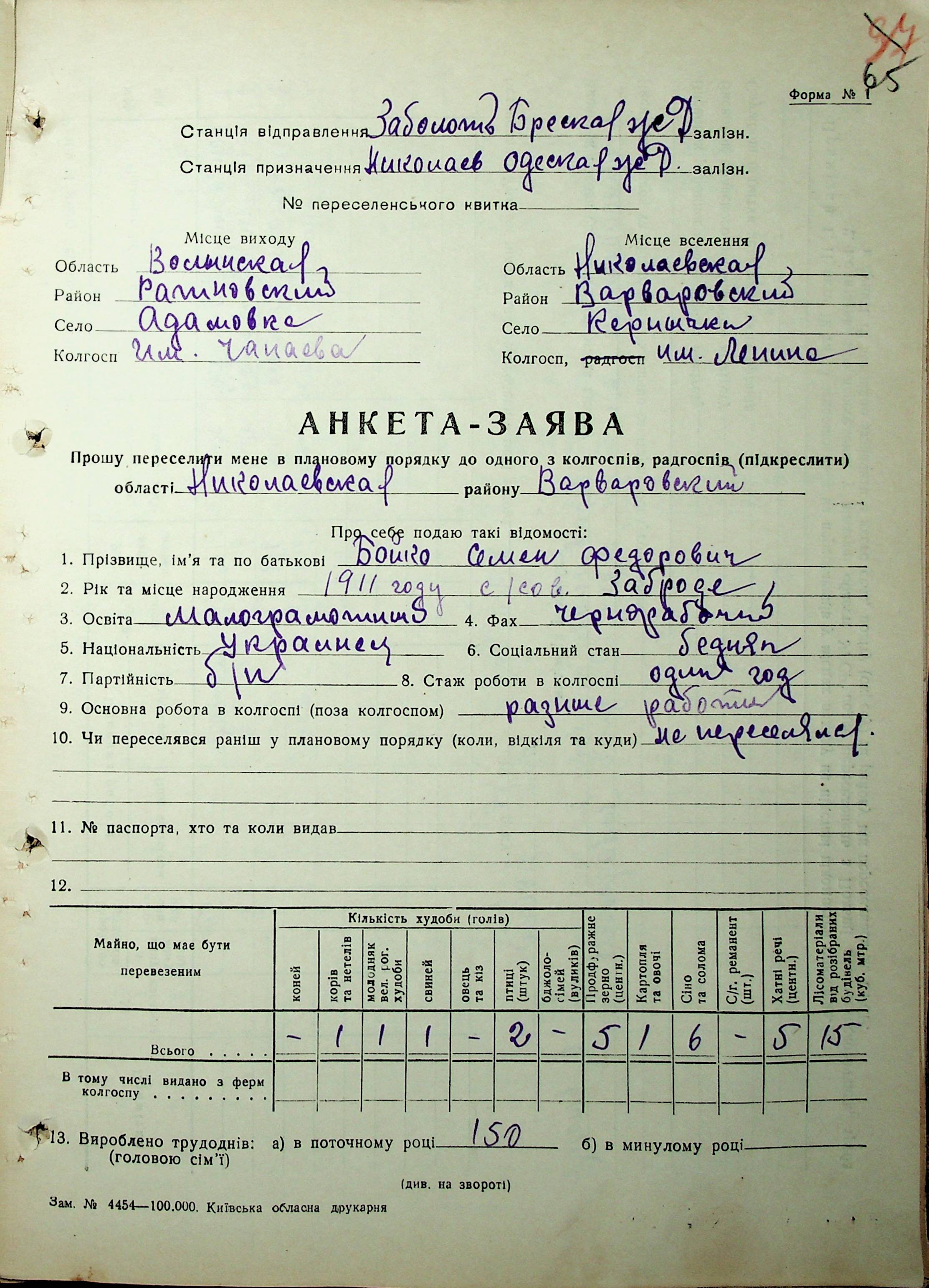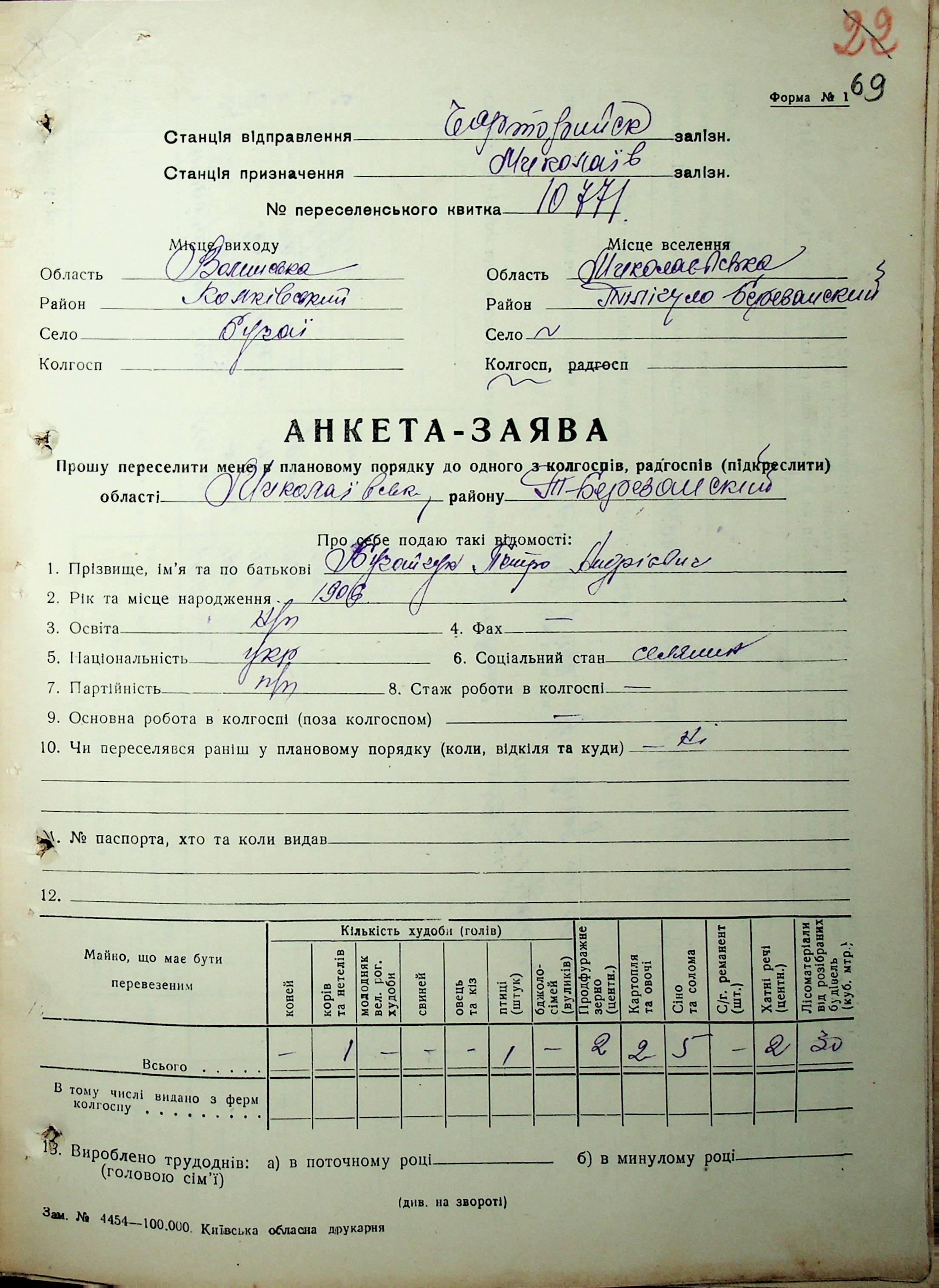 • • • • Справа № 35 “Анкети-заяви про планове переселення сімей із Вінницької та Волинської областей до Миколаївської області”