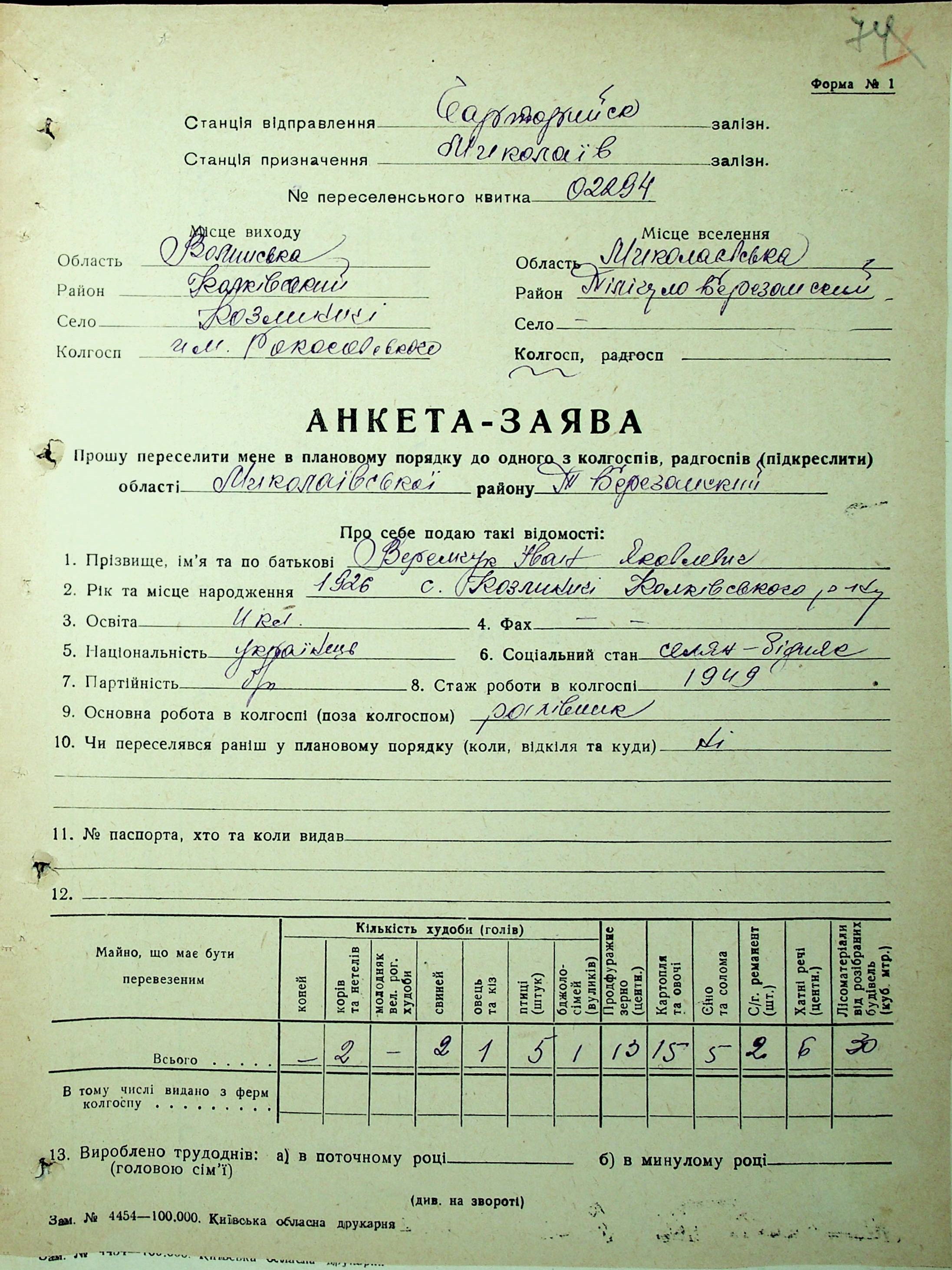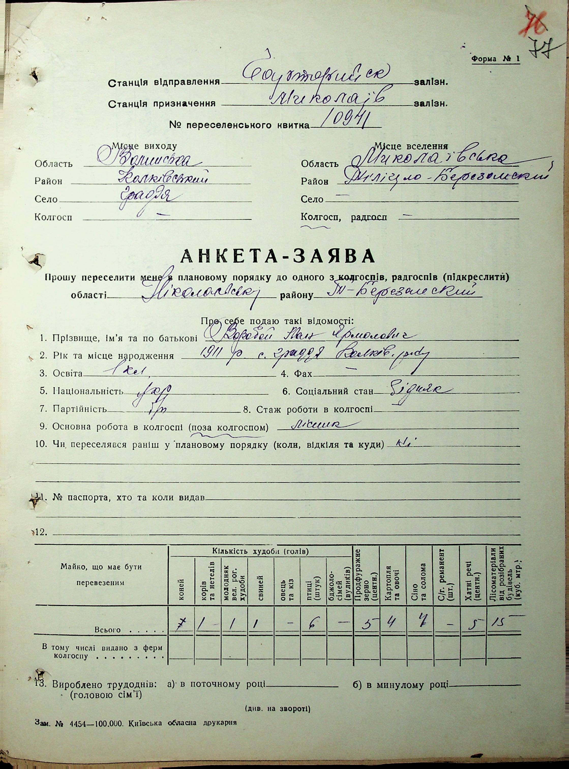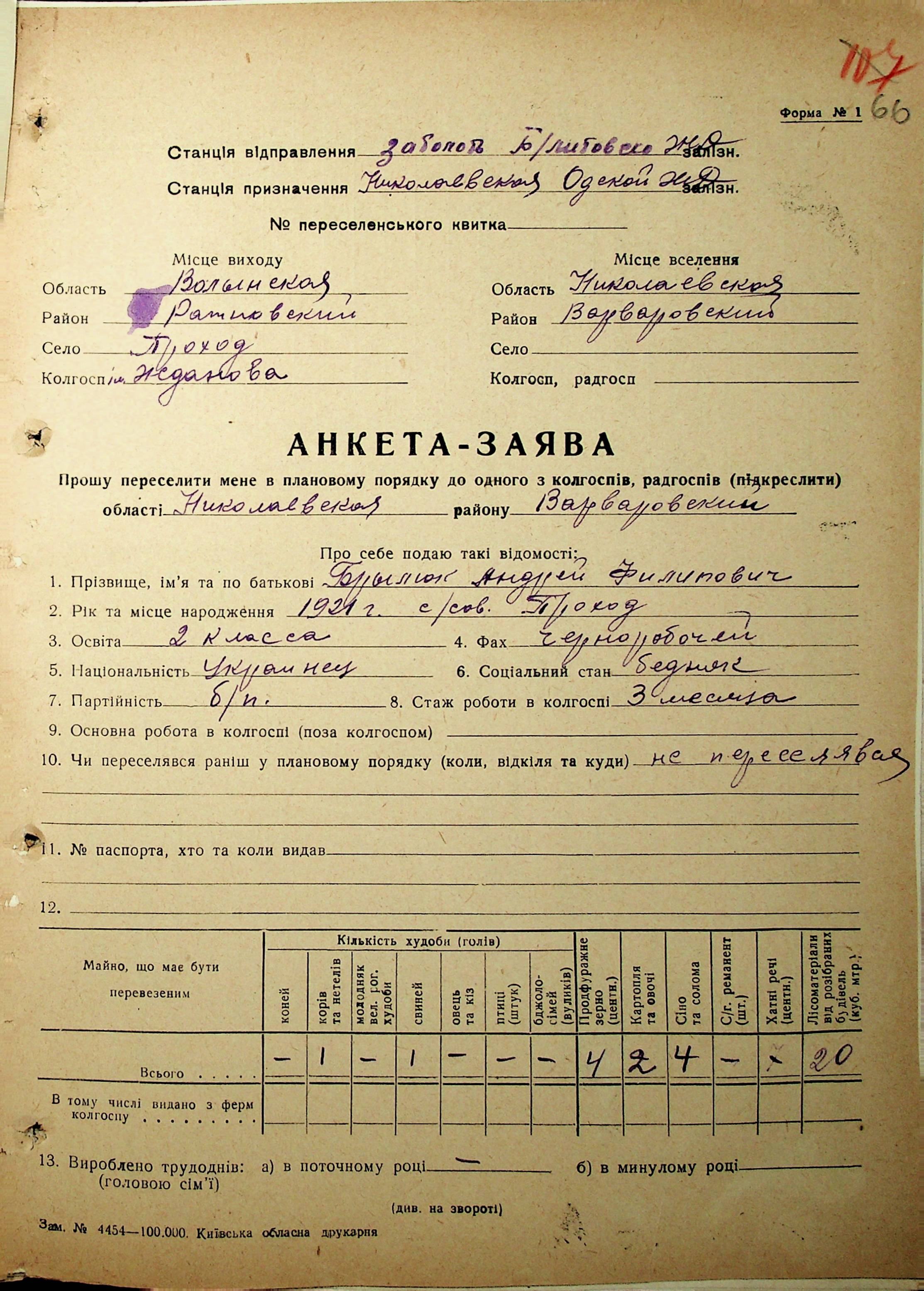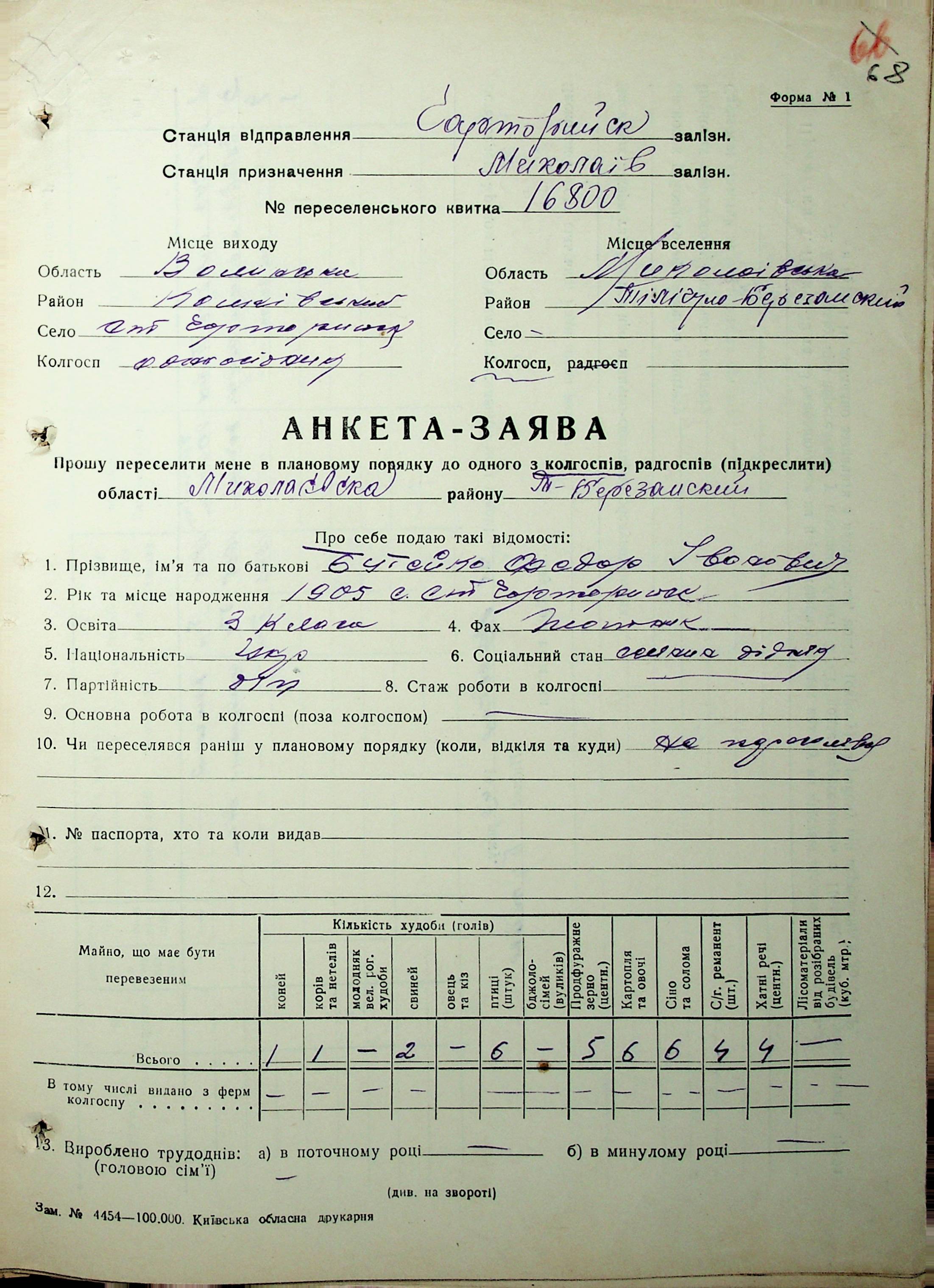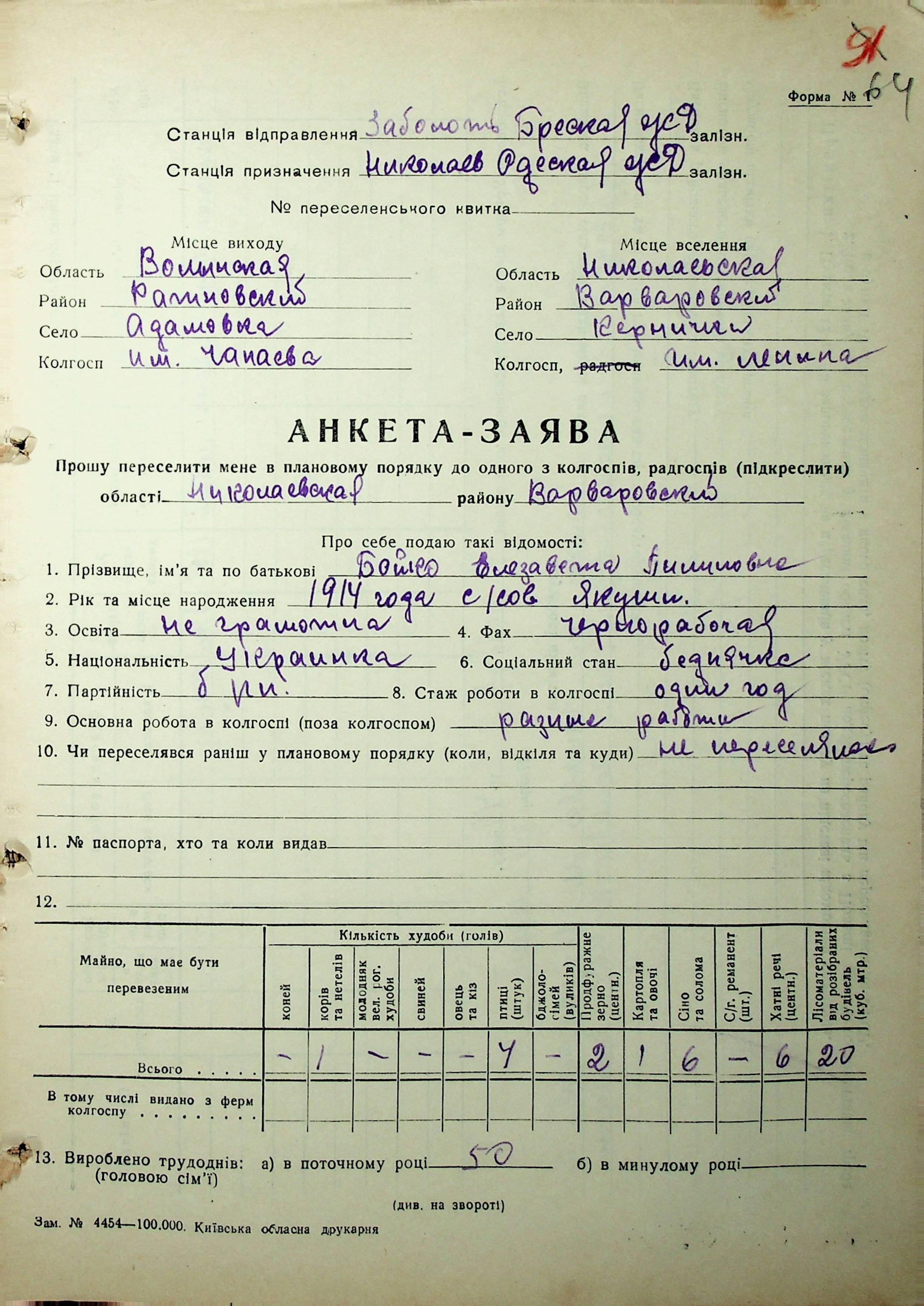 • • • • Справа № 35 “Анкети-заяви про планове переселення сімей із Вінницької та Волинської областей до Миколаївської області”